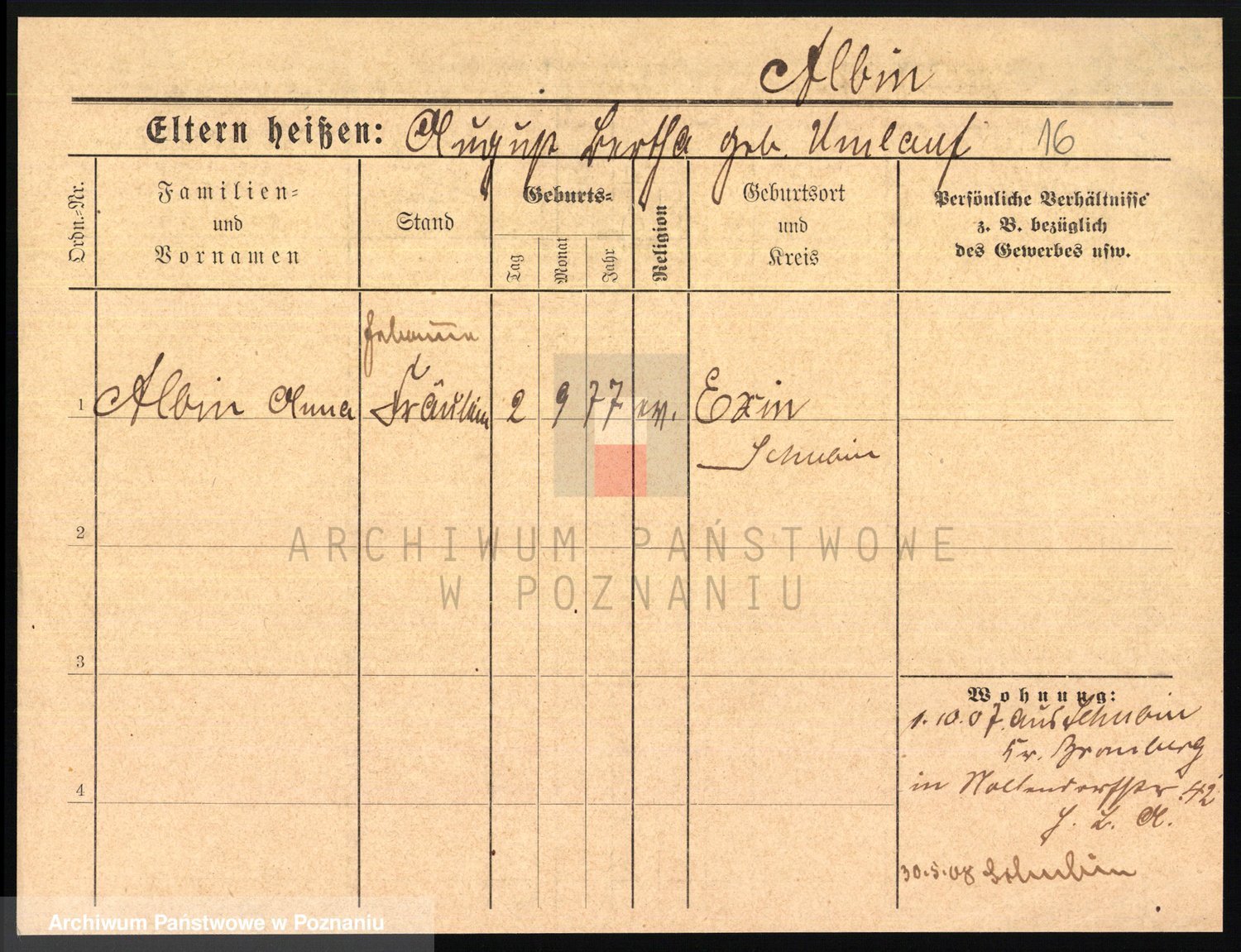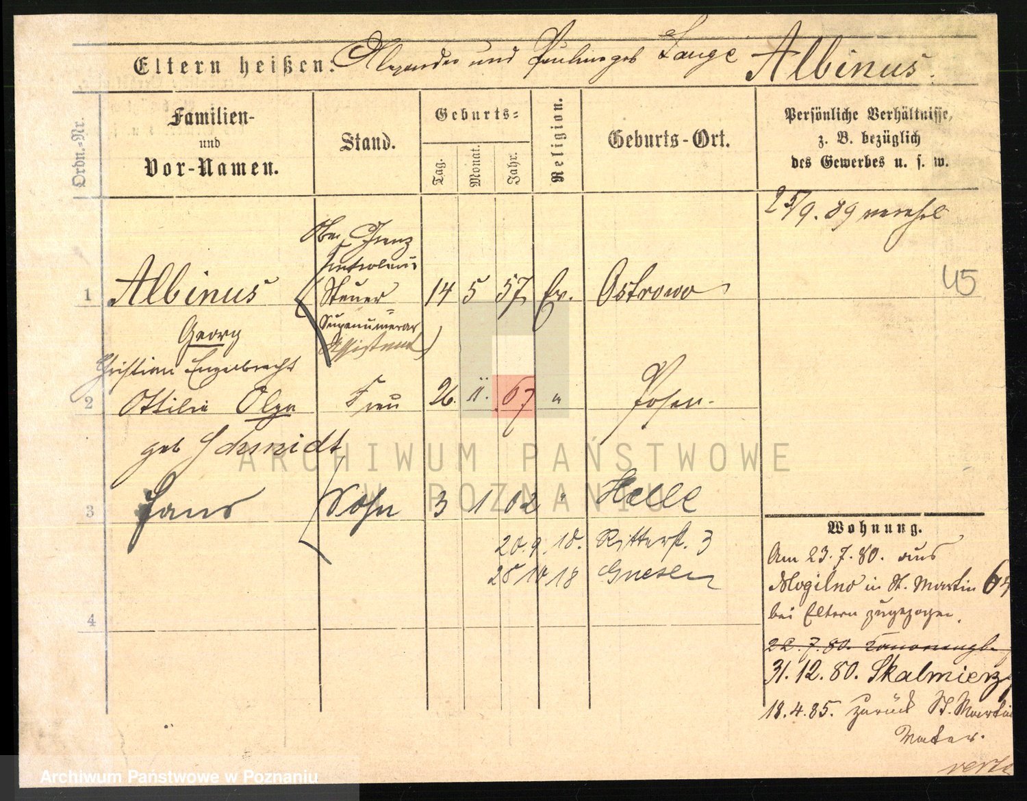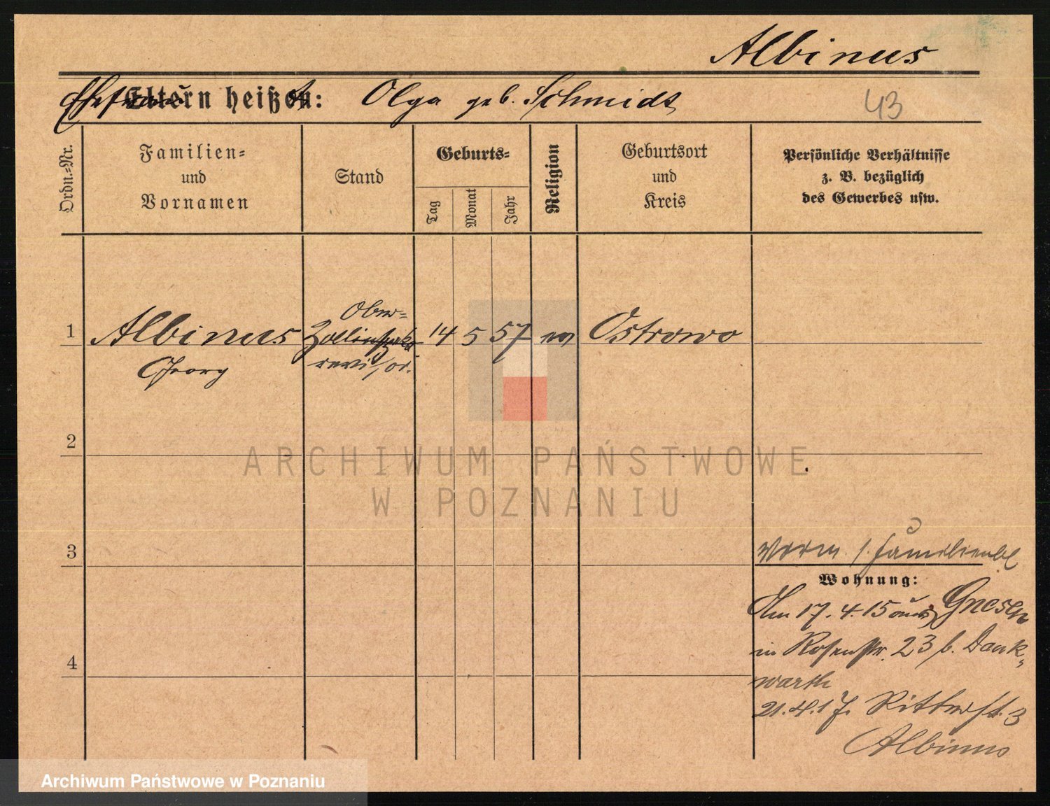 Albinus z d. Schmidt, Ottilie Olge