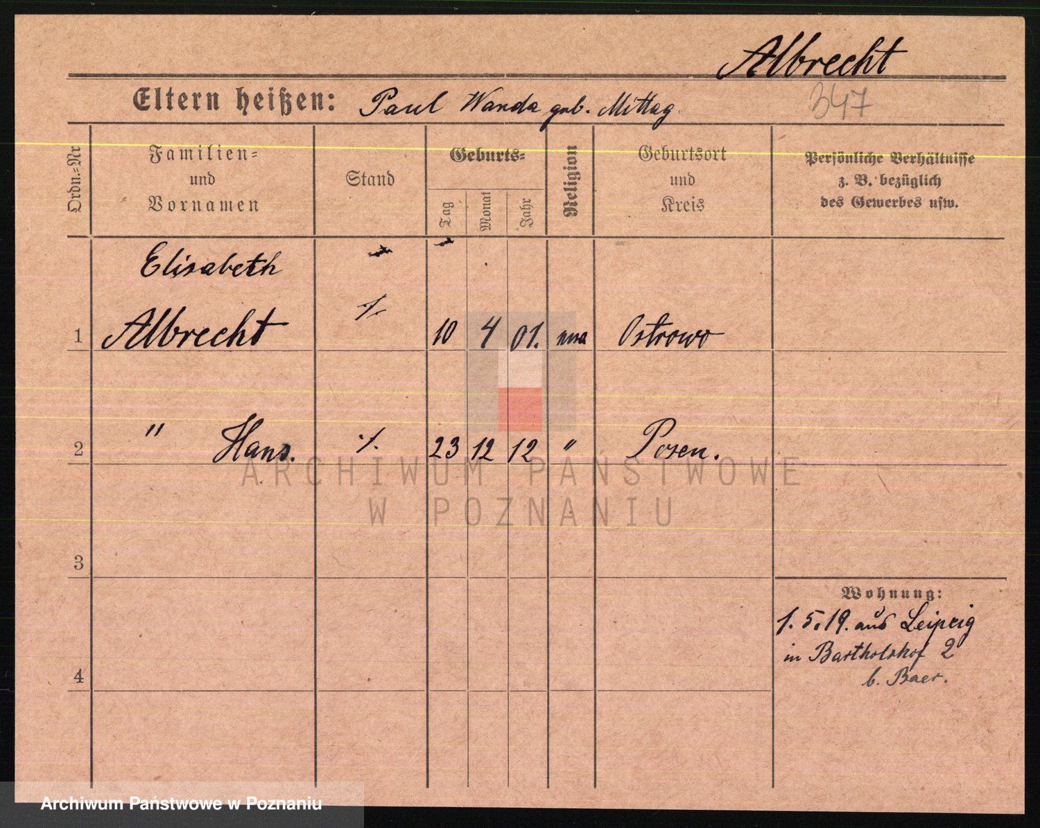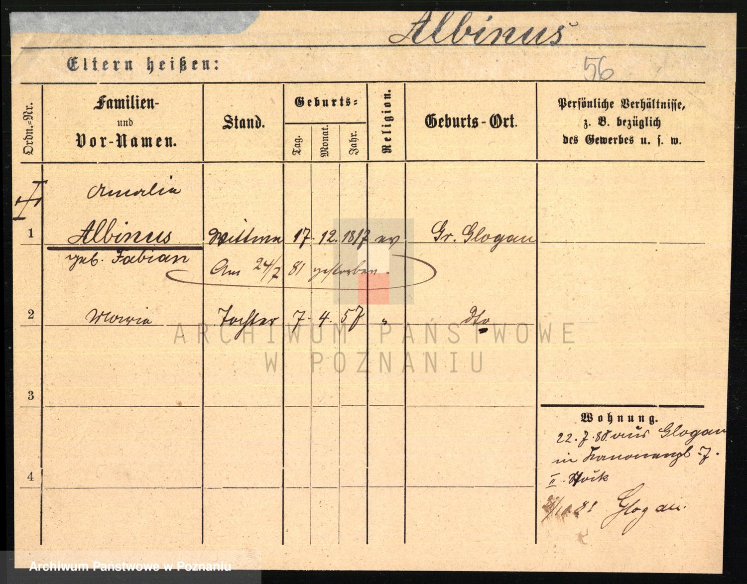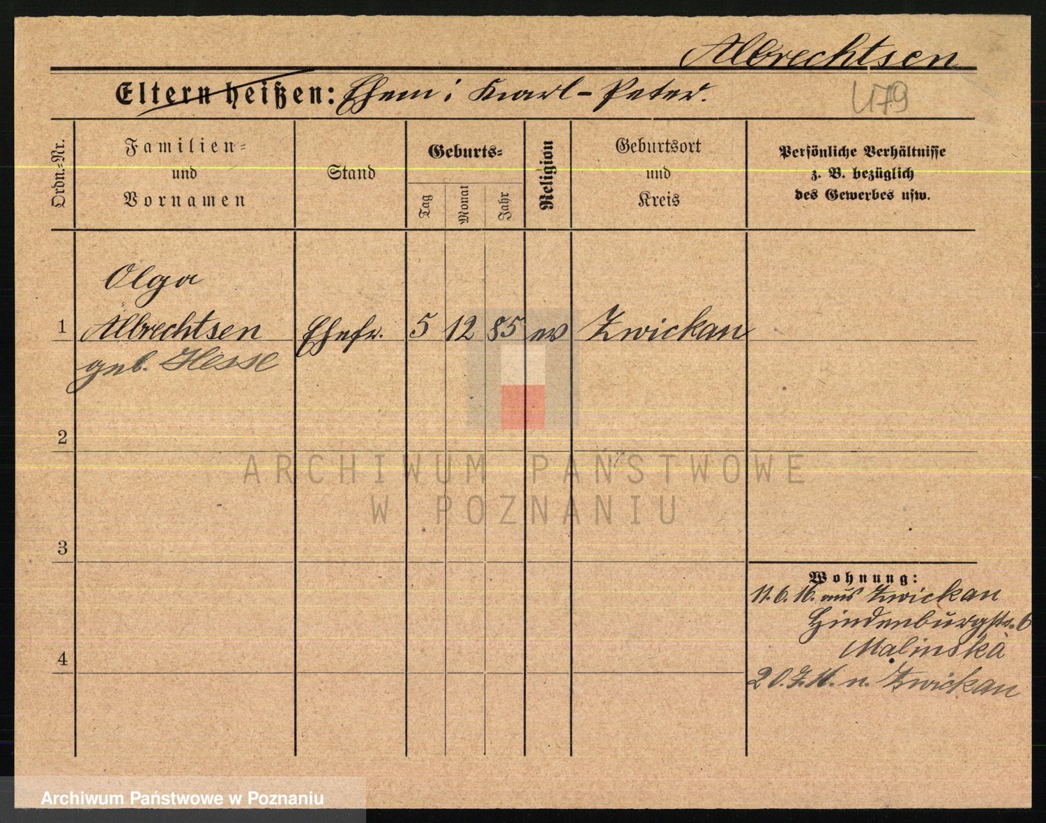 Albinus z d. Schmidt, Ottilie Olge