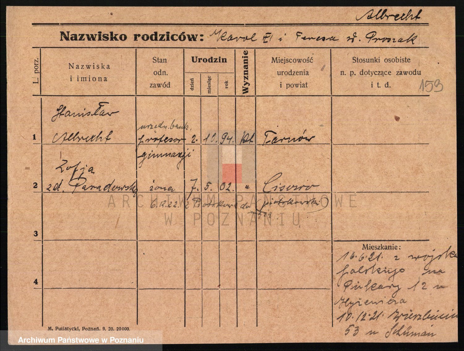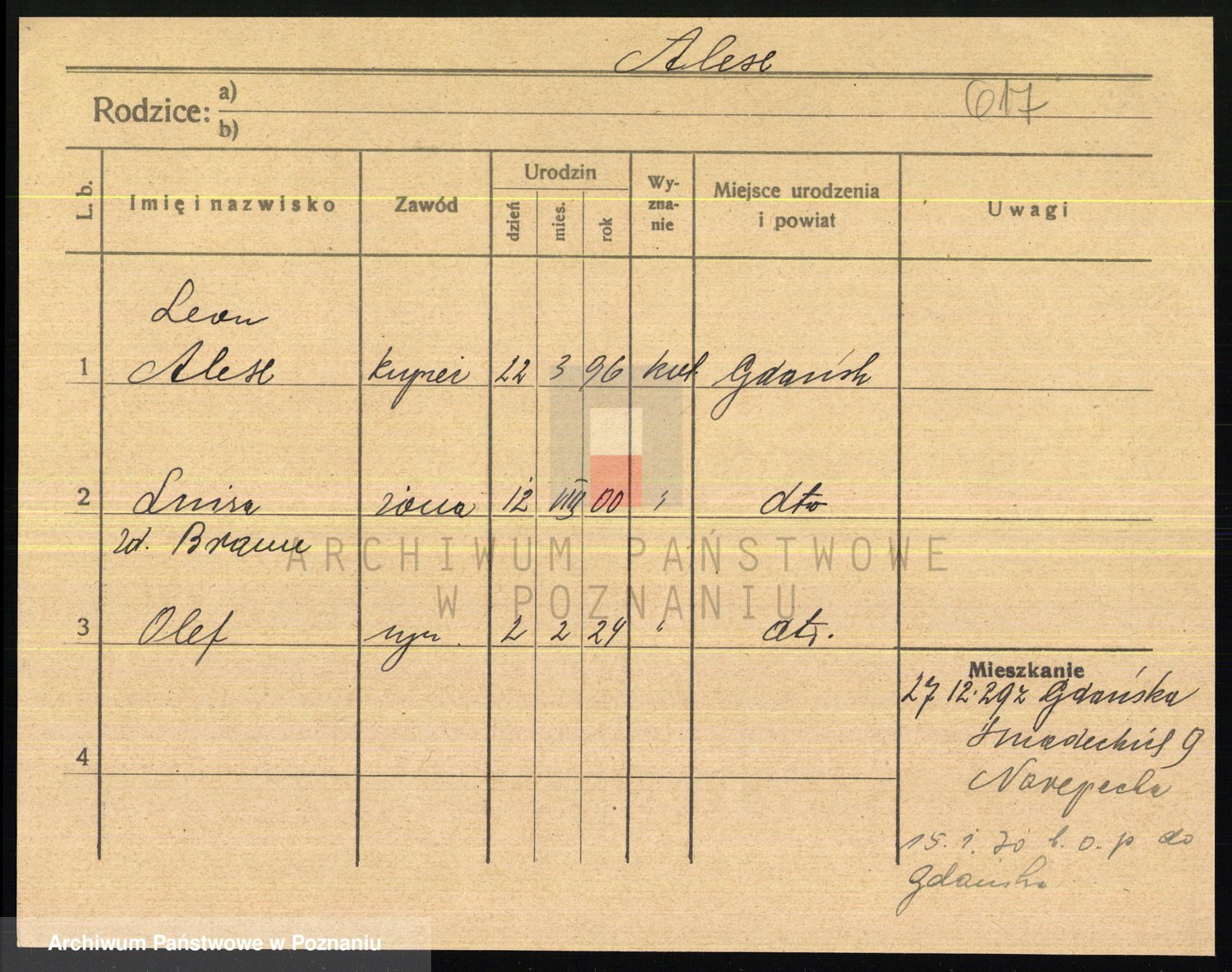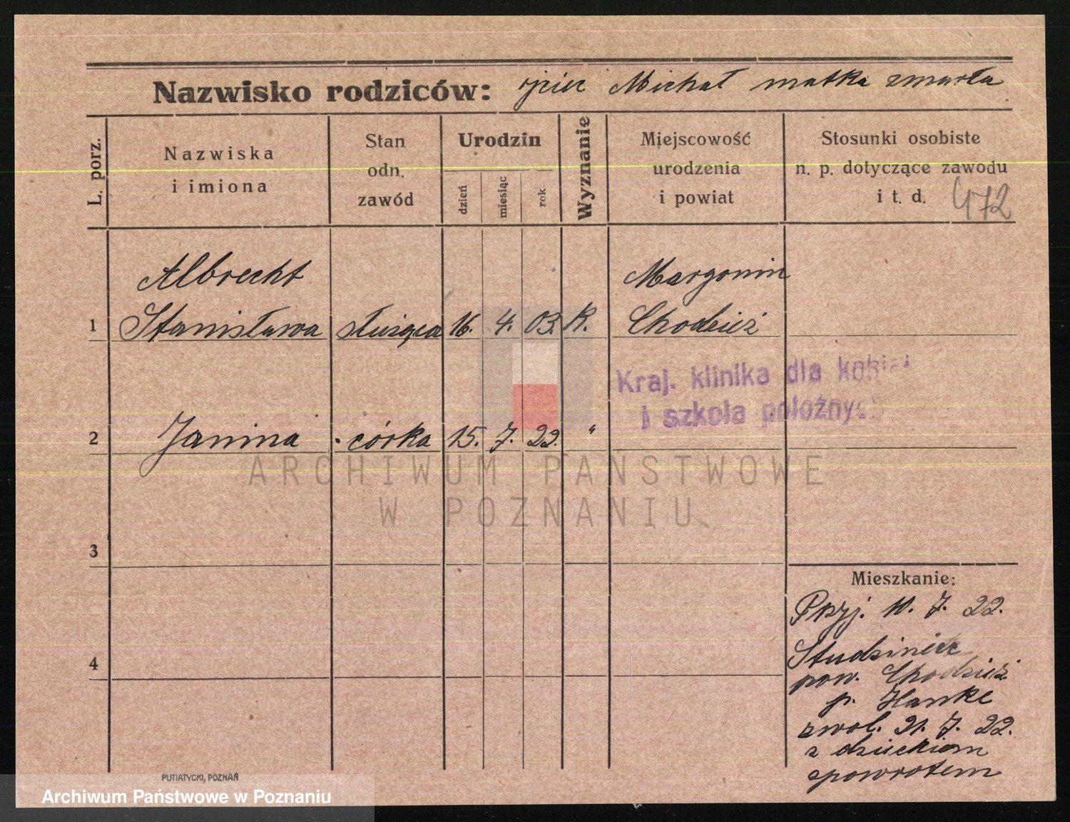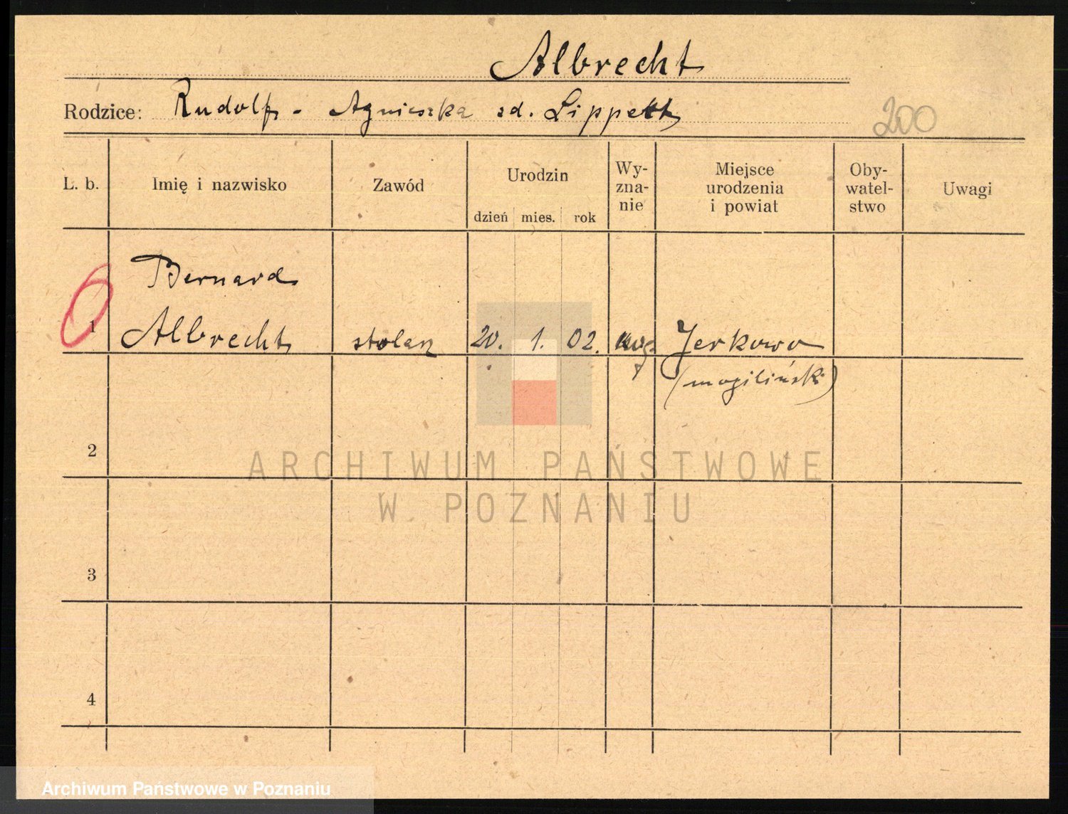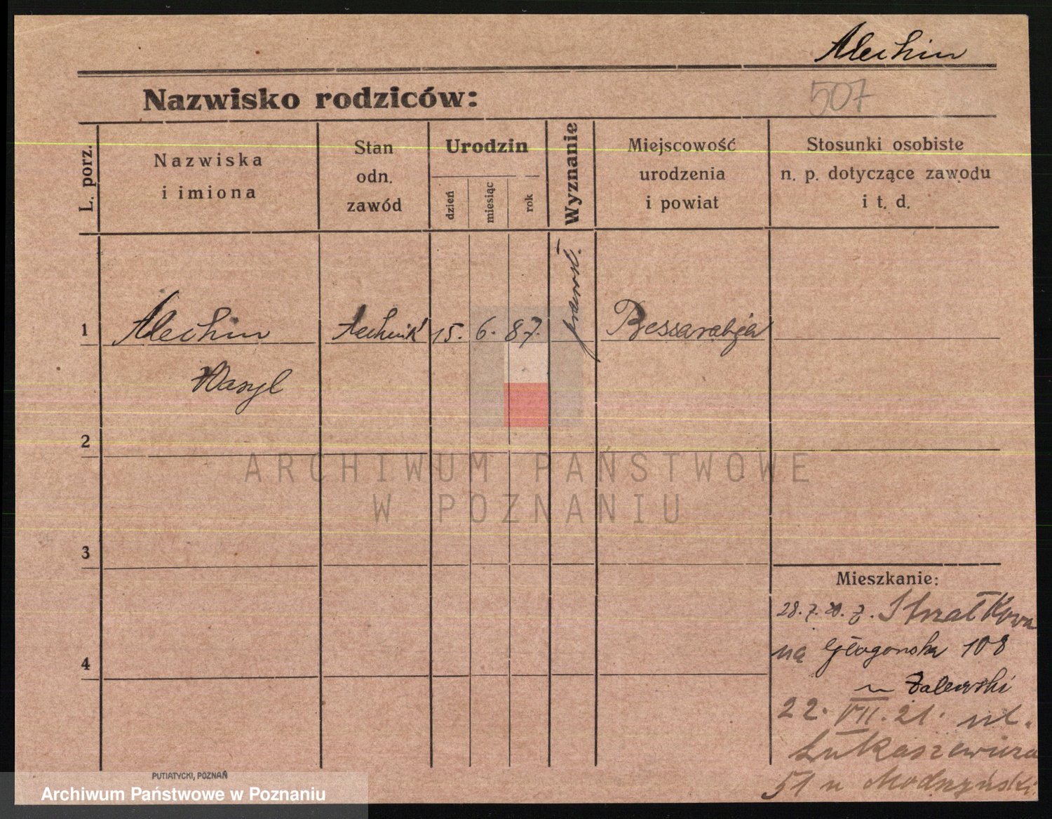 Podgląd karty osobowej dostępny jest po kliknięciu na nazwisko lub ikonkę karty. Można dokonywać powiększenia (ikony na górze) lub przechodzić między kolejnymi skanami (strzałki po bokach).