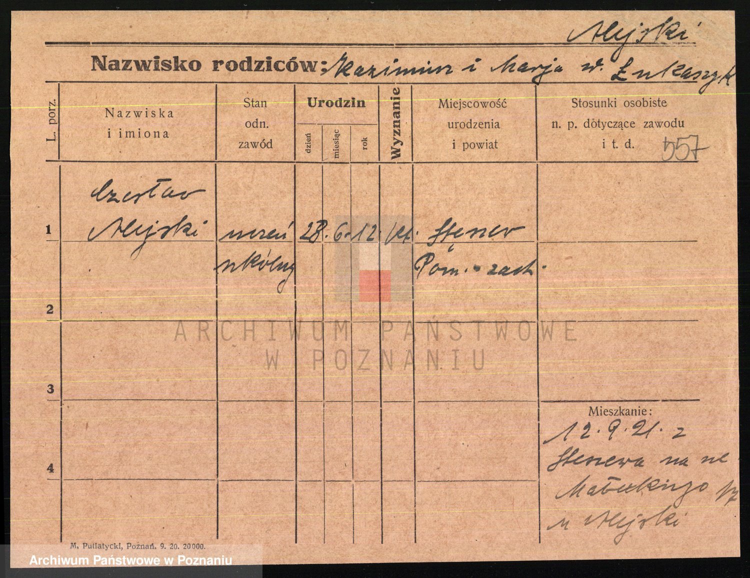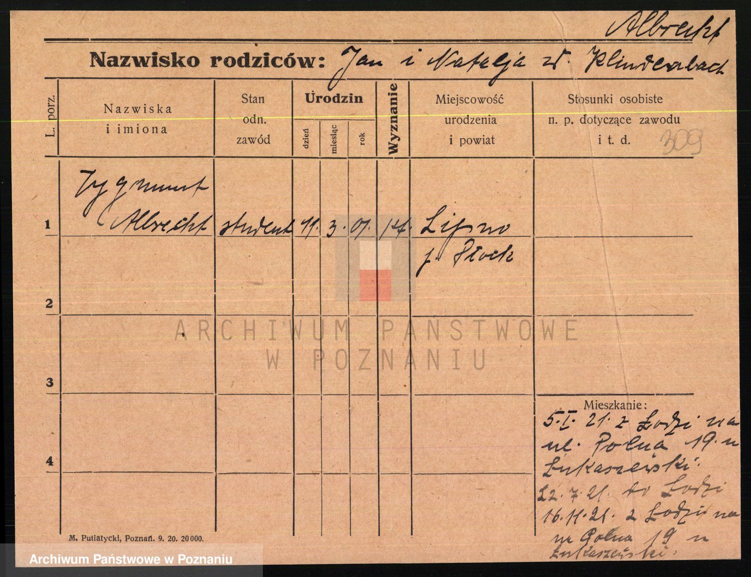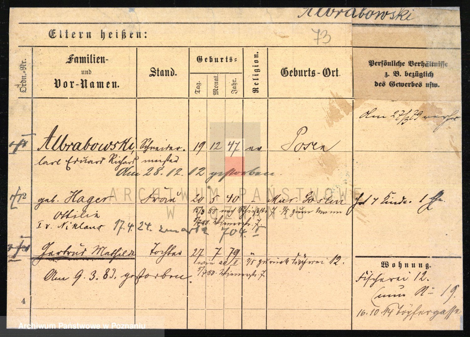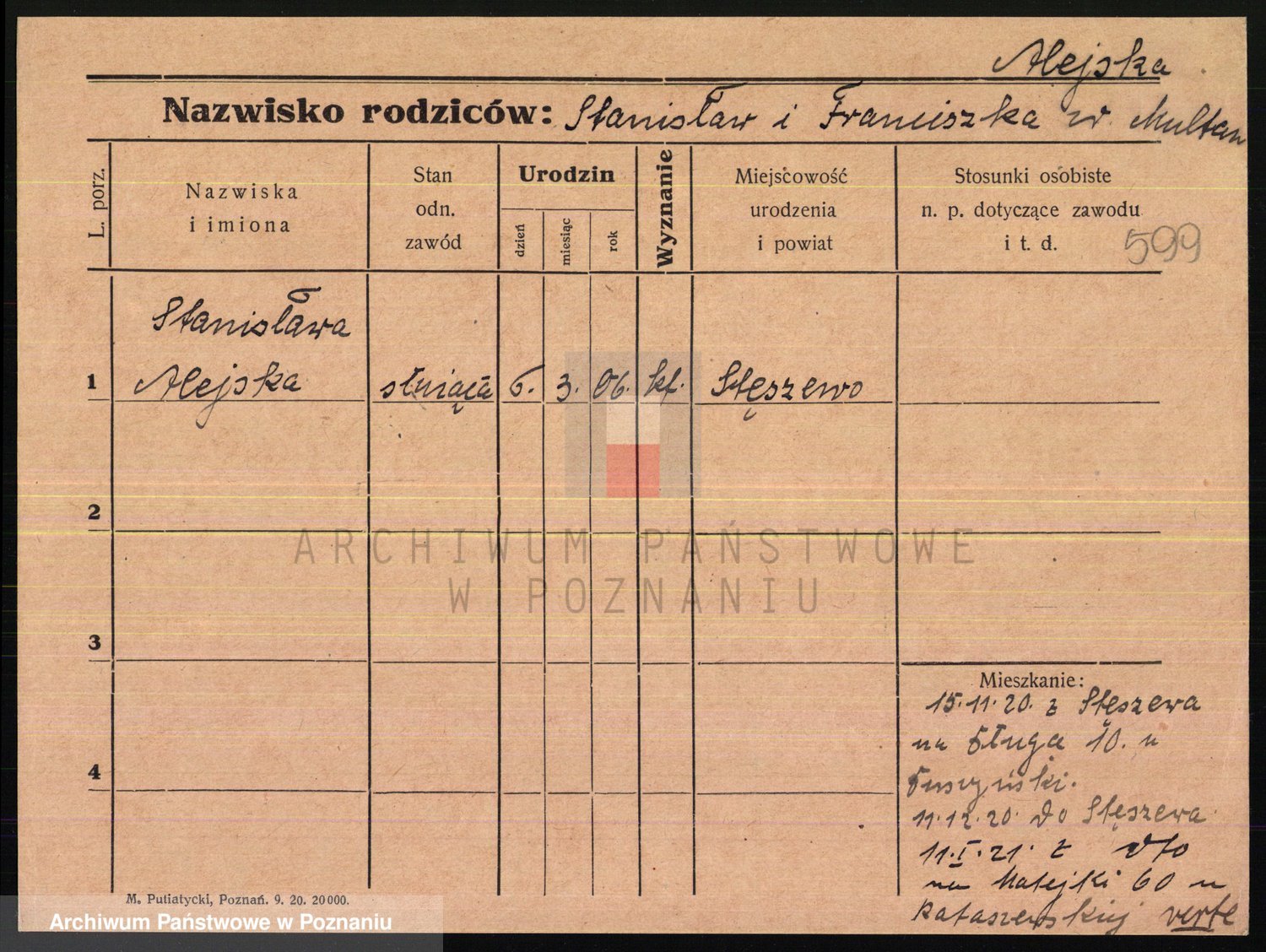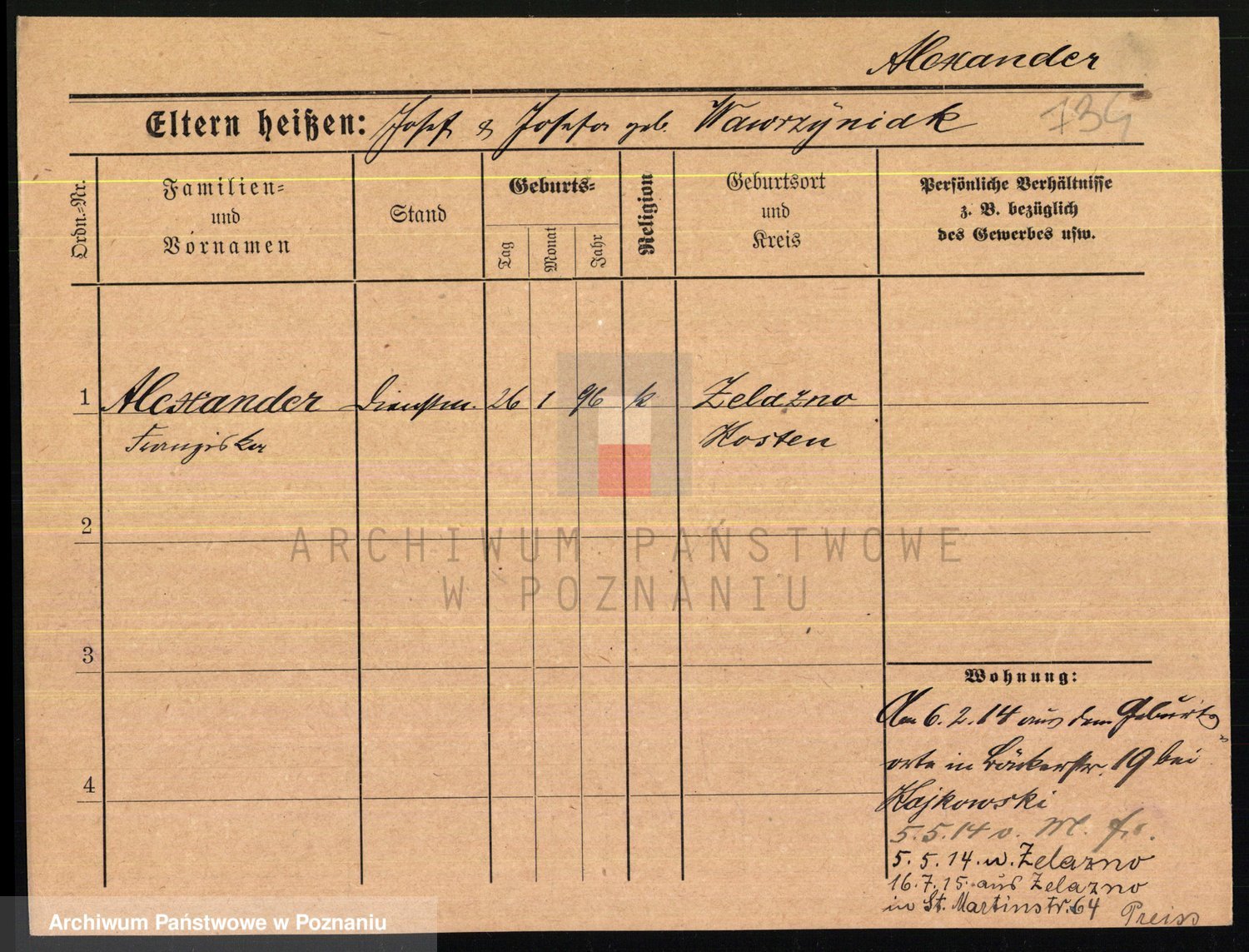 Podgląd karty osobowej dostępny jest po kliknięciu na nazwisko lub ikonkę karty. Można dokonywać powiększenia (ikony na górze) lub przechodzić między kolejnymi skanami (strzałki po bokach).