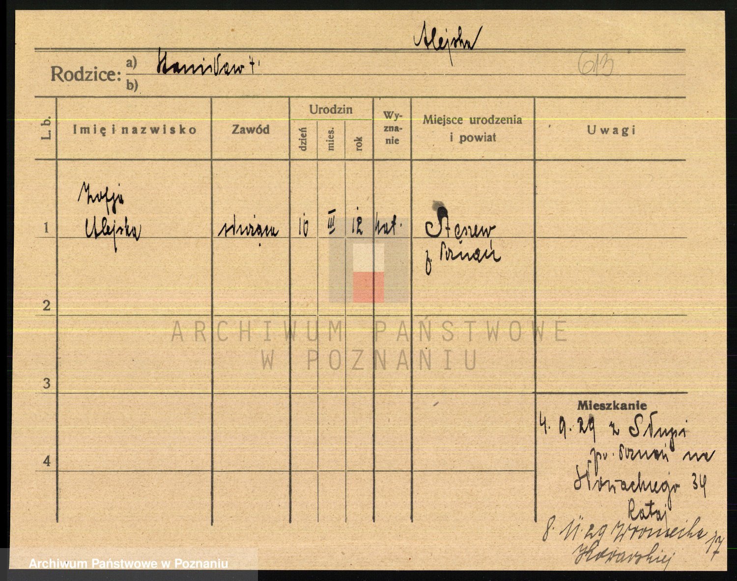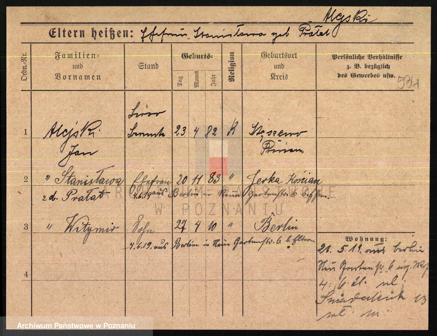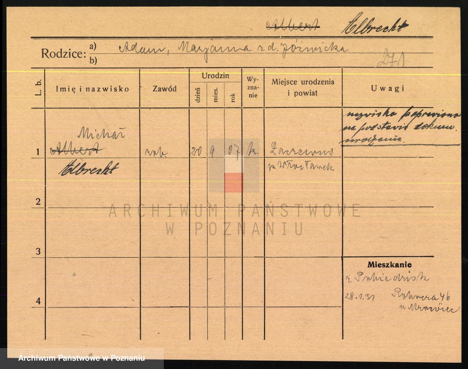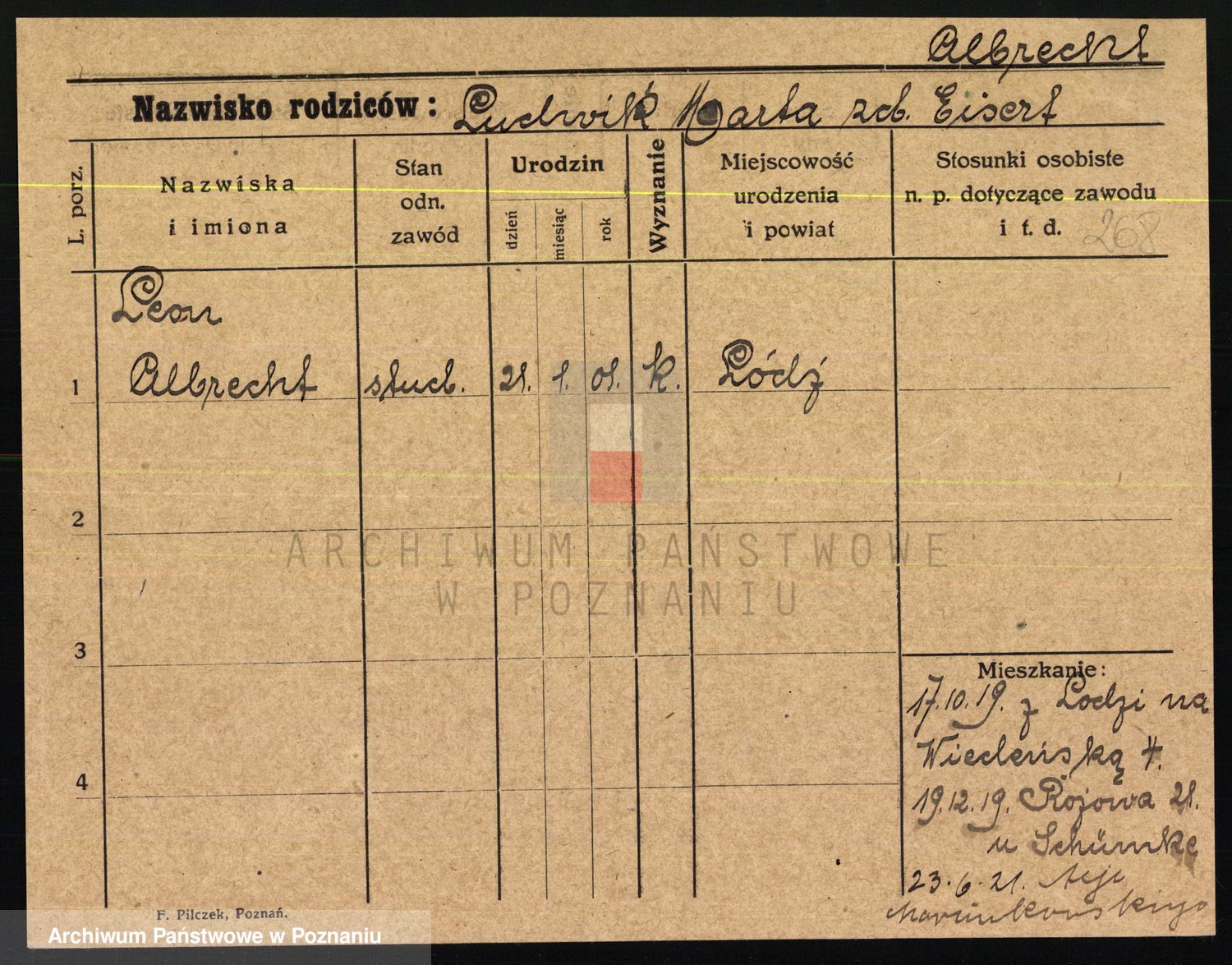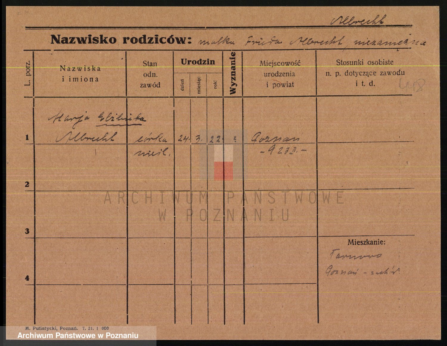 Podgląd karty osobowej dostępny jest po kliknięciu na nazwisko lub ikonkę karty. Można dokonywać powiększenia (ikony na górze) lub przechodzić między kolejnymi skanami (strzałki po bokach).