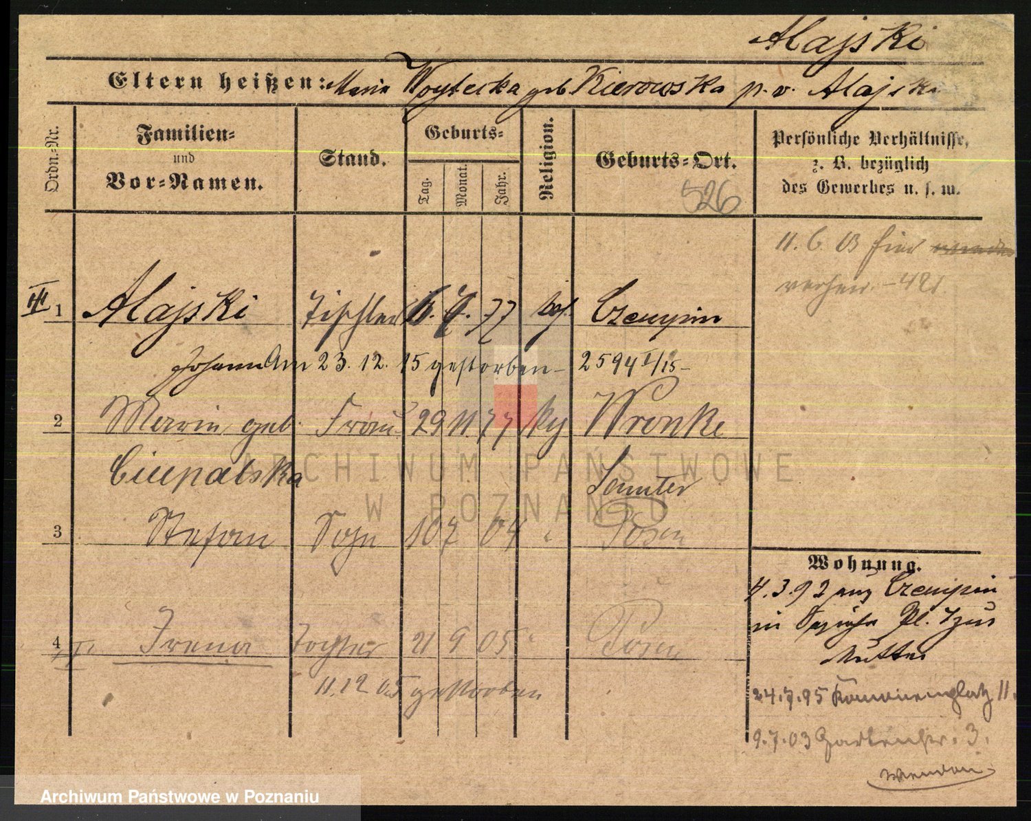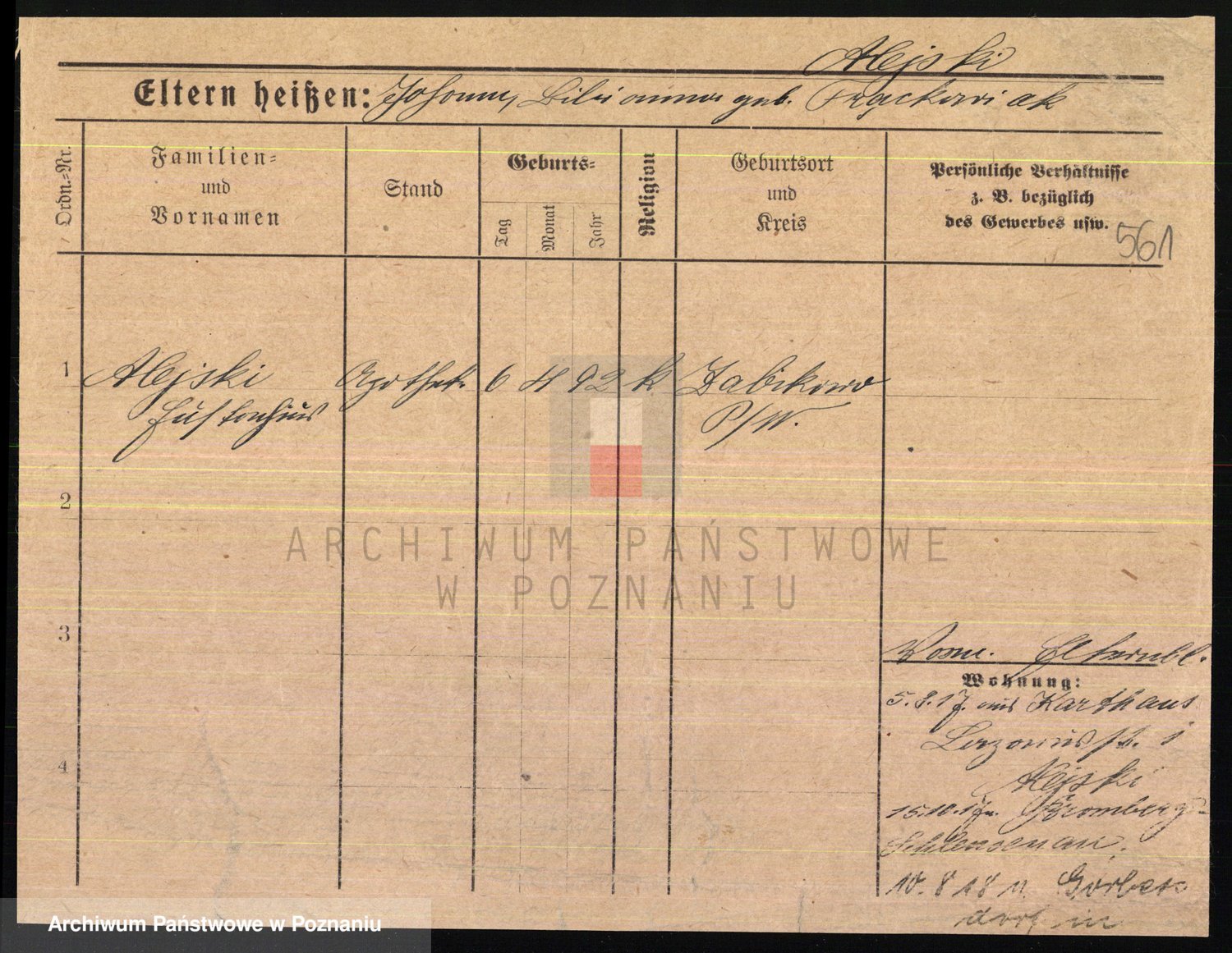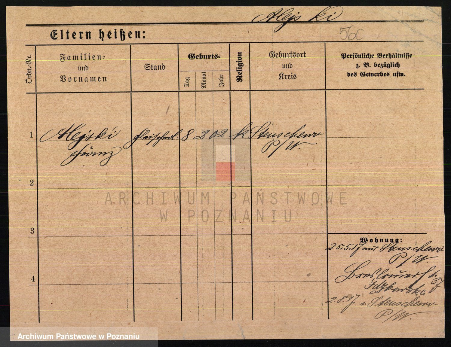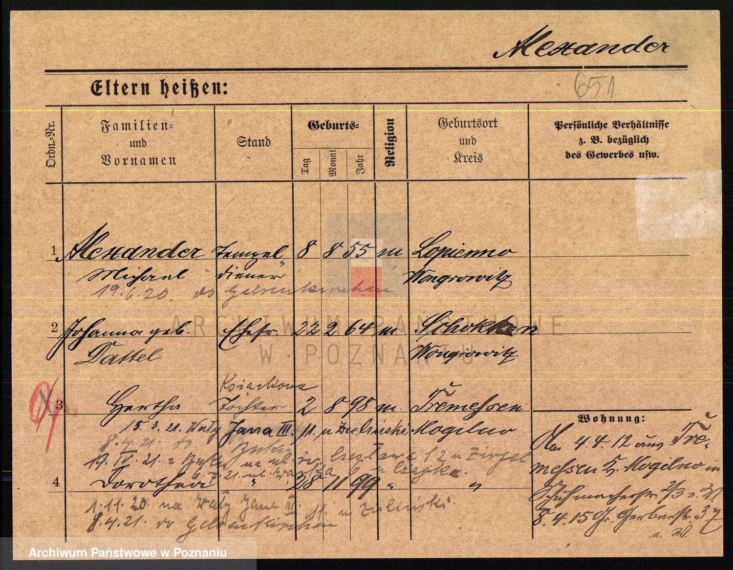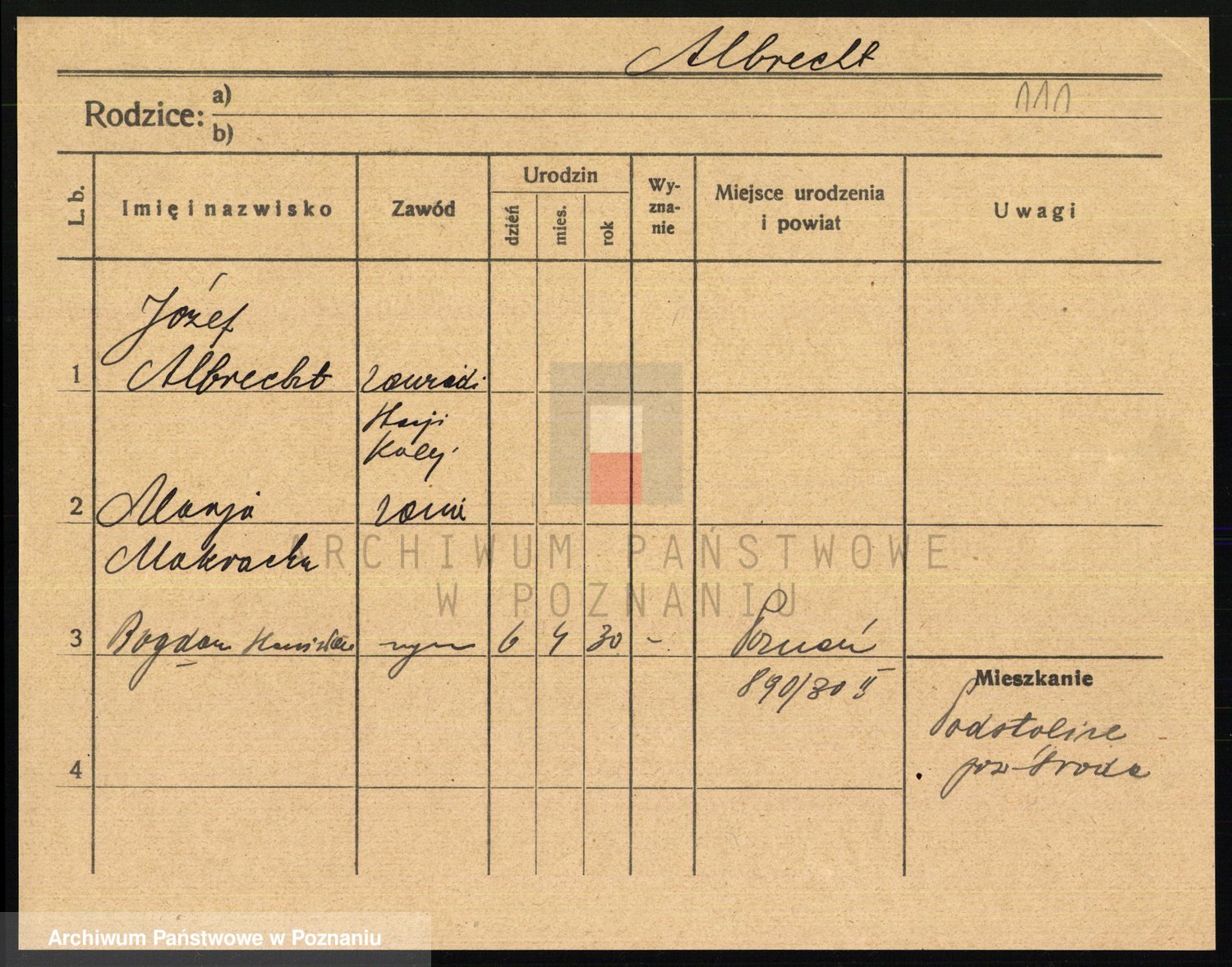 Podgląd karty osobowej dostępny jest po kliknięciu na nazwisko lub ikonkę karty. Można dokonywać powiększenia (ikony na górze) lub przechodzić między kolejnymi skanami (strzałki po bokach).
