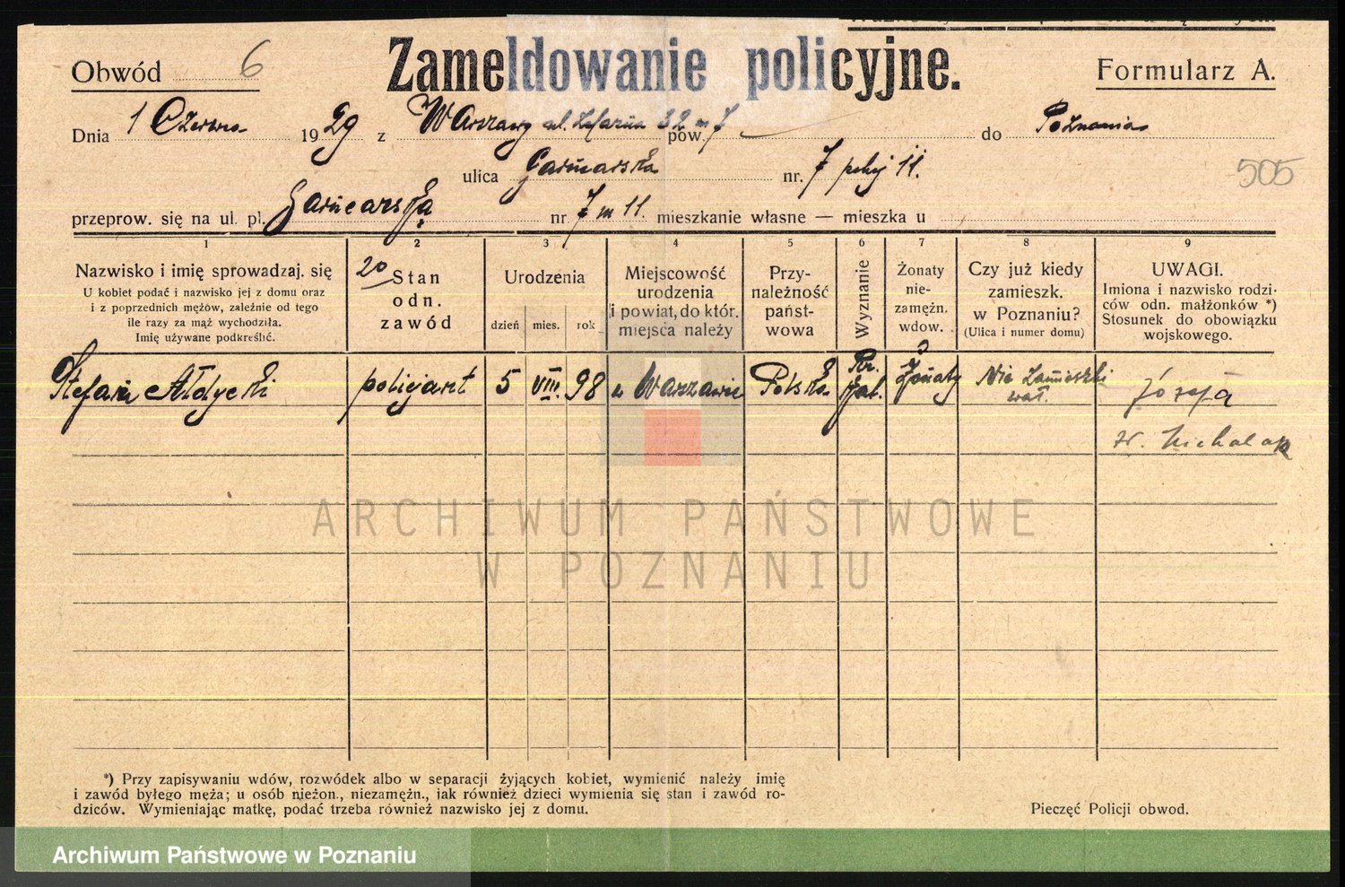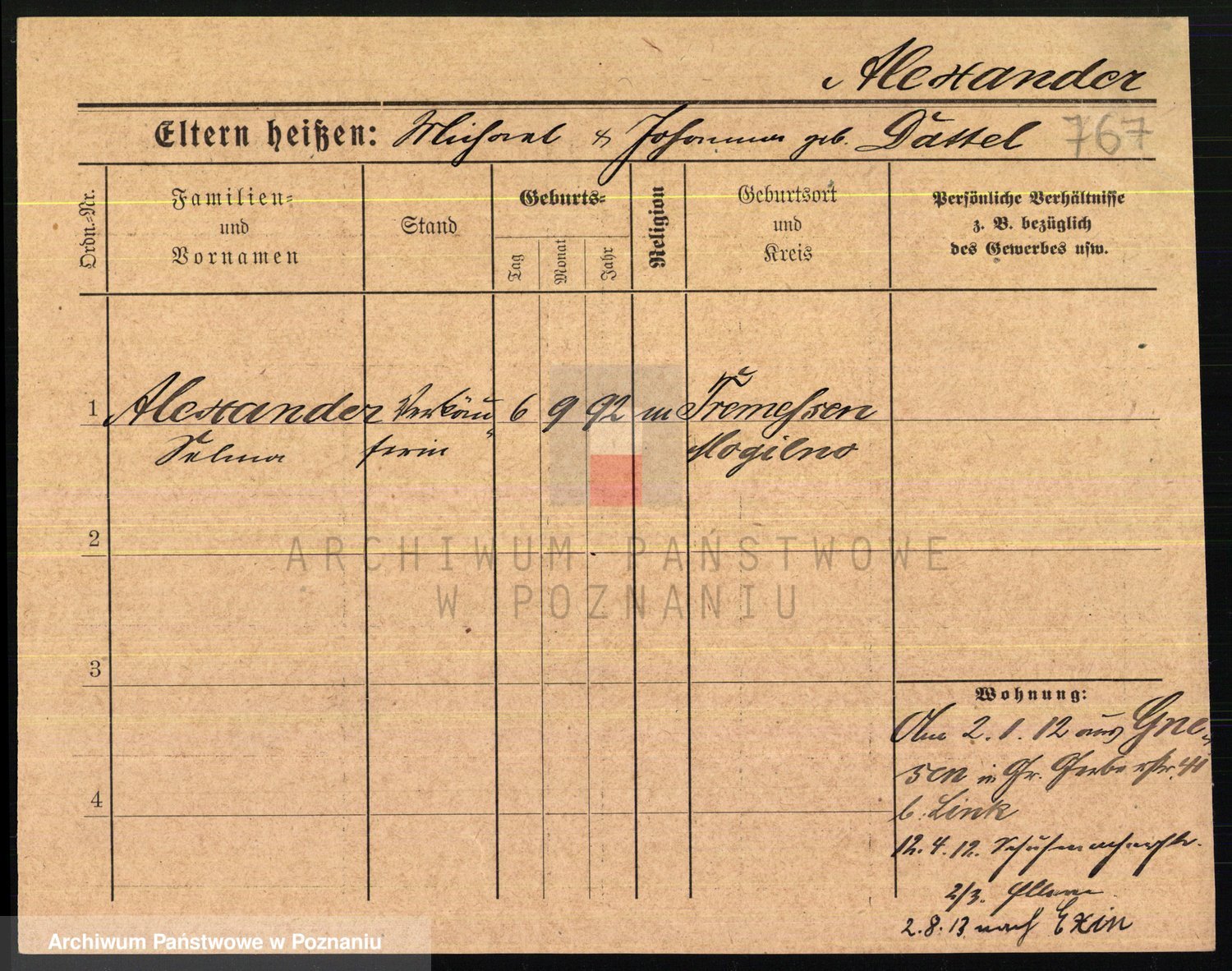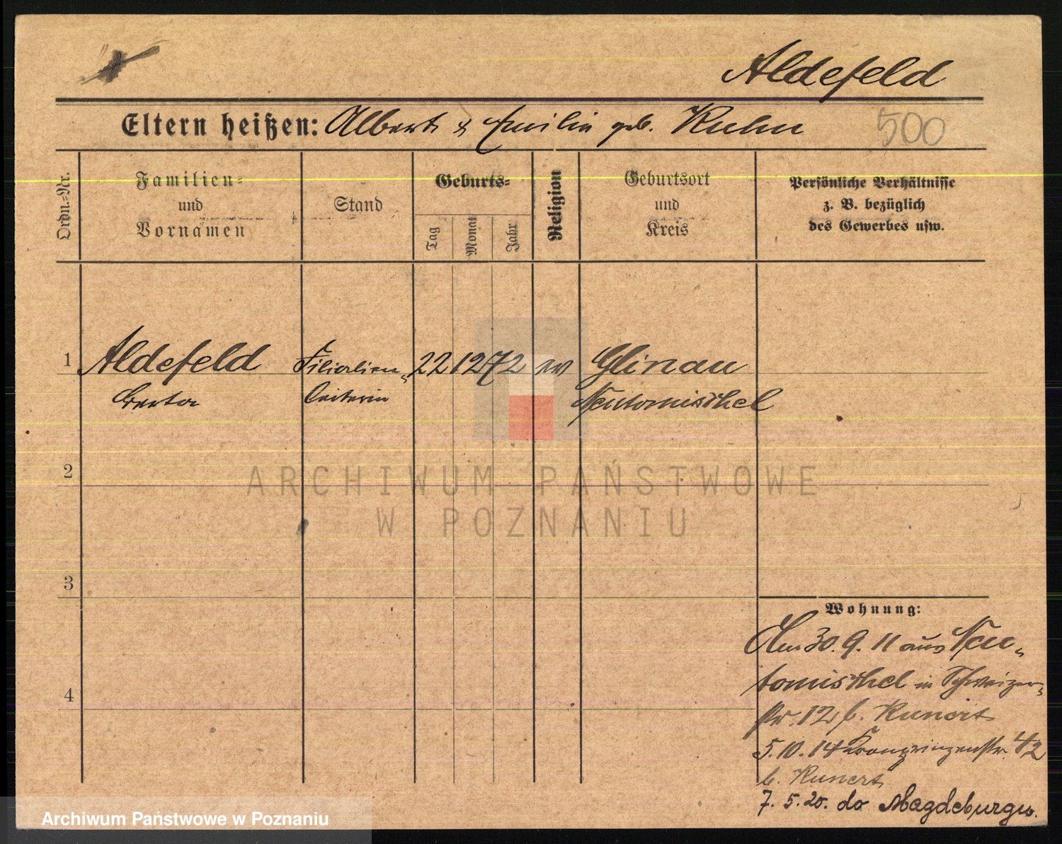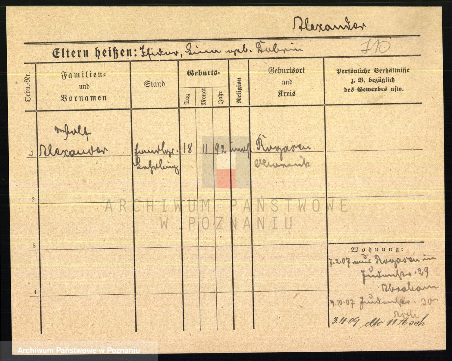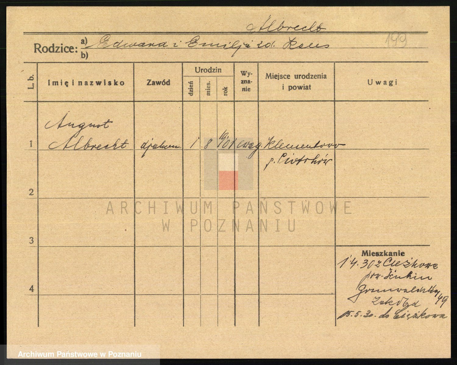 Podgląd karty osobowej dostępny jest po kliknięciu na nazwisko lub ikonkę karty. Można dokonywać powiększenia (ikony na górze) lub przechodzić między kolejnymi skanami (strzałki po bokach).