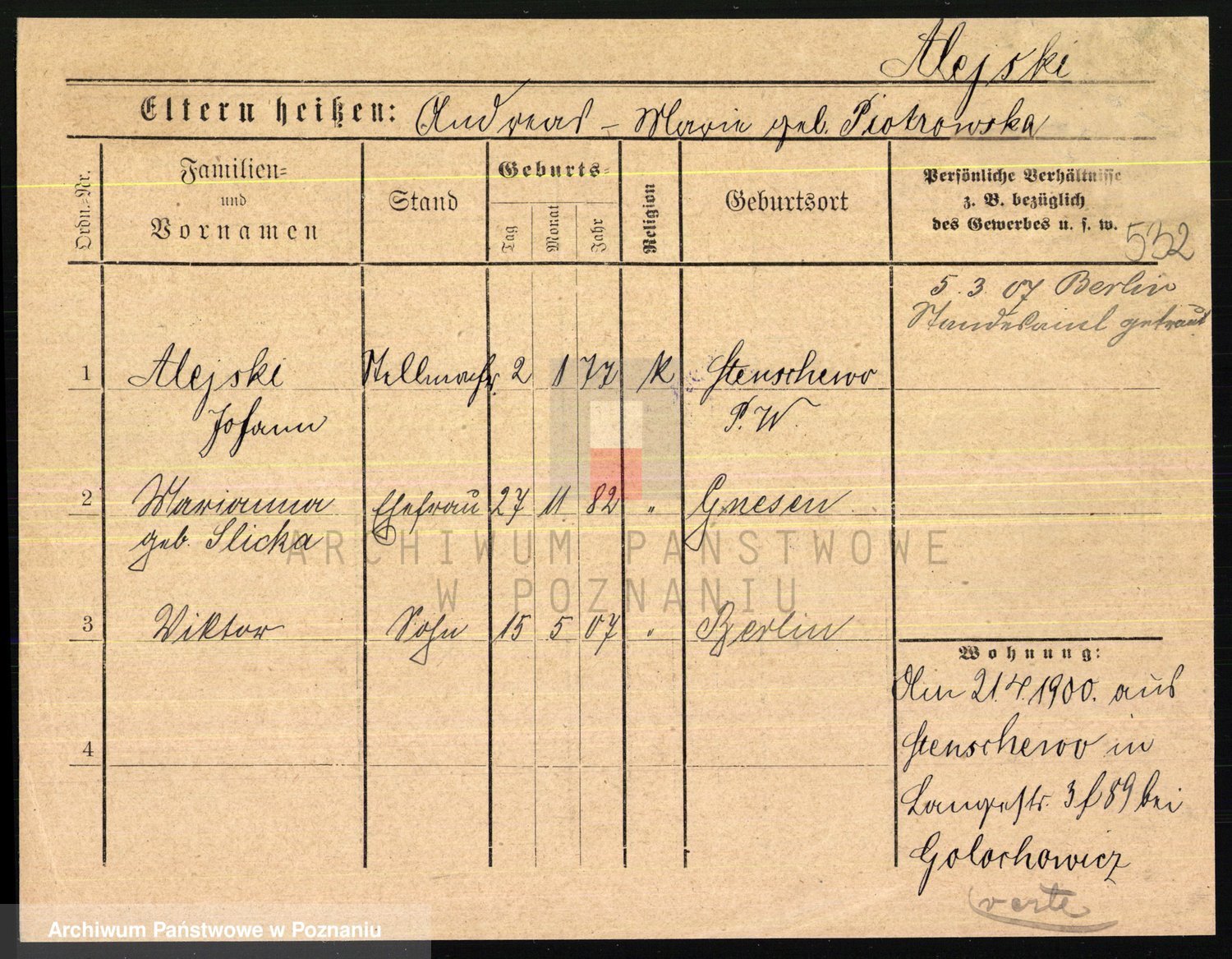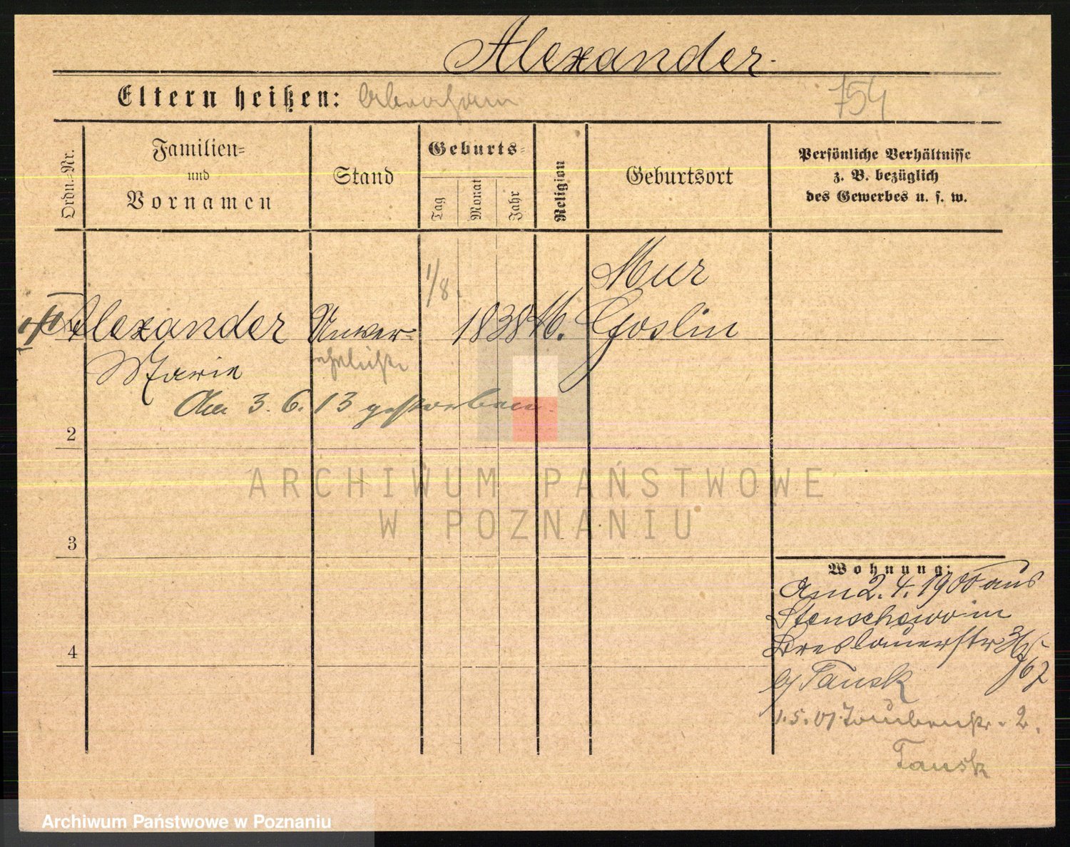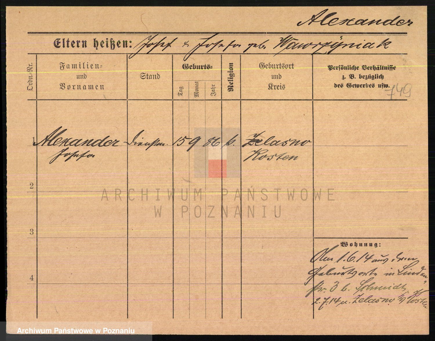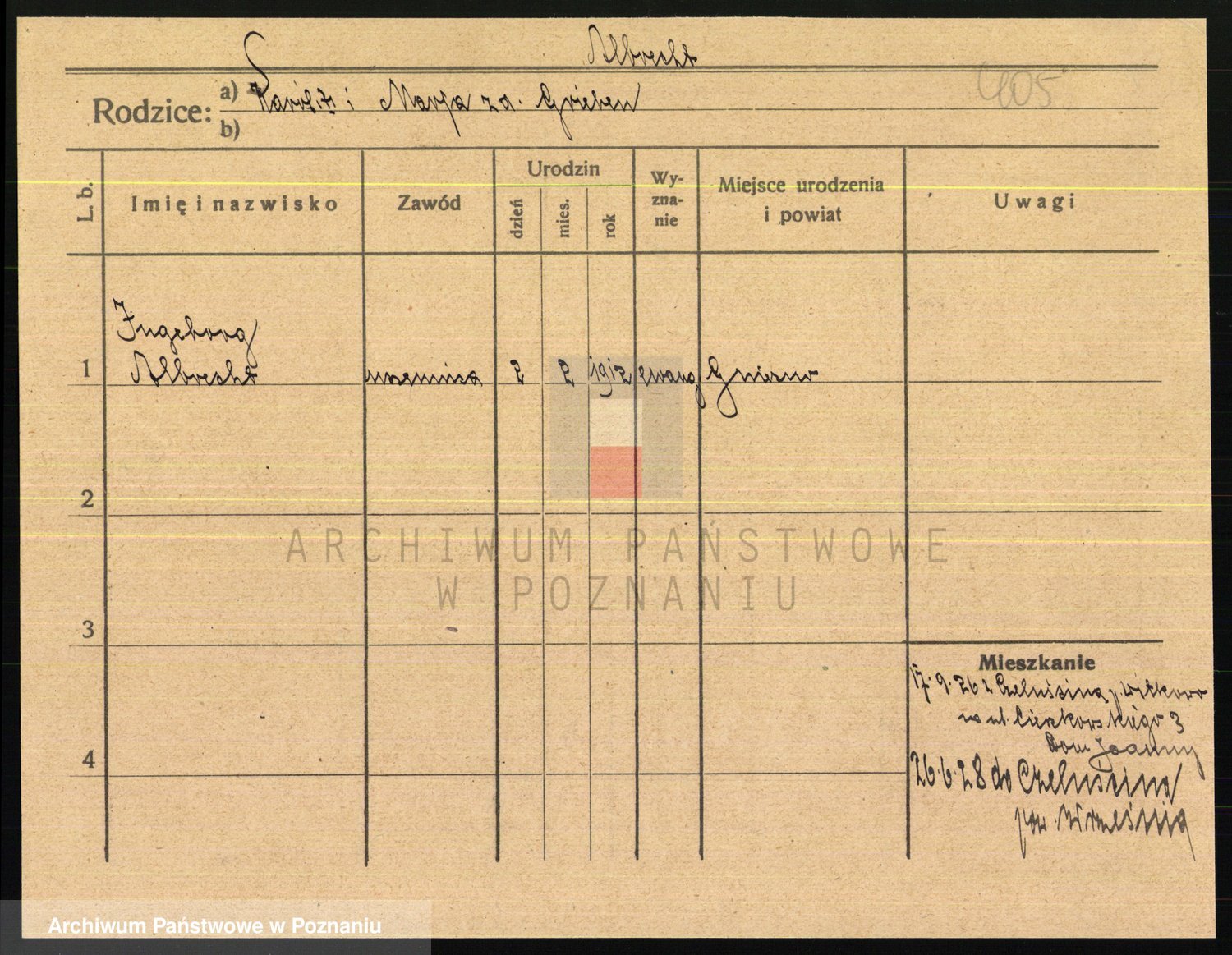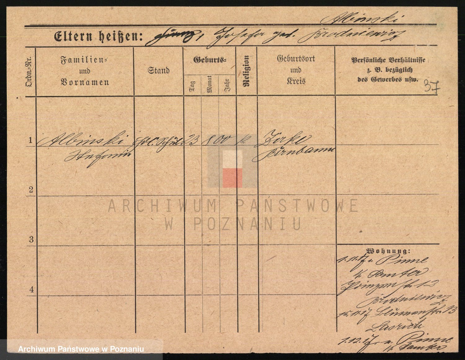 Podgląd karty osobowej dostępny jest po kliknięciu na nazwisko lub ikonkę karty. Można dokonywać powiększenia (ikony na górze) lub przechodzić między kolejnymi skanami (strzałki po bokach).