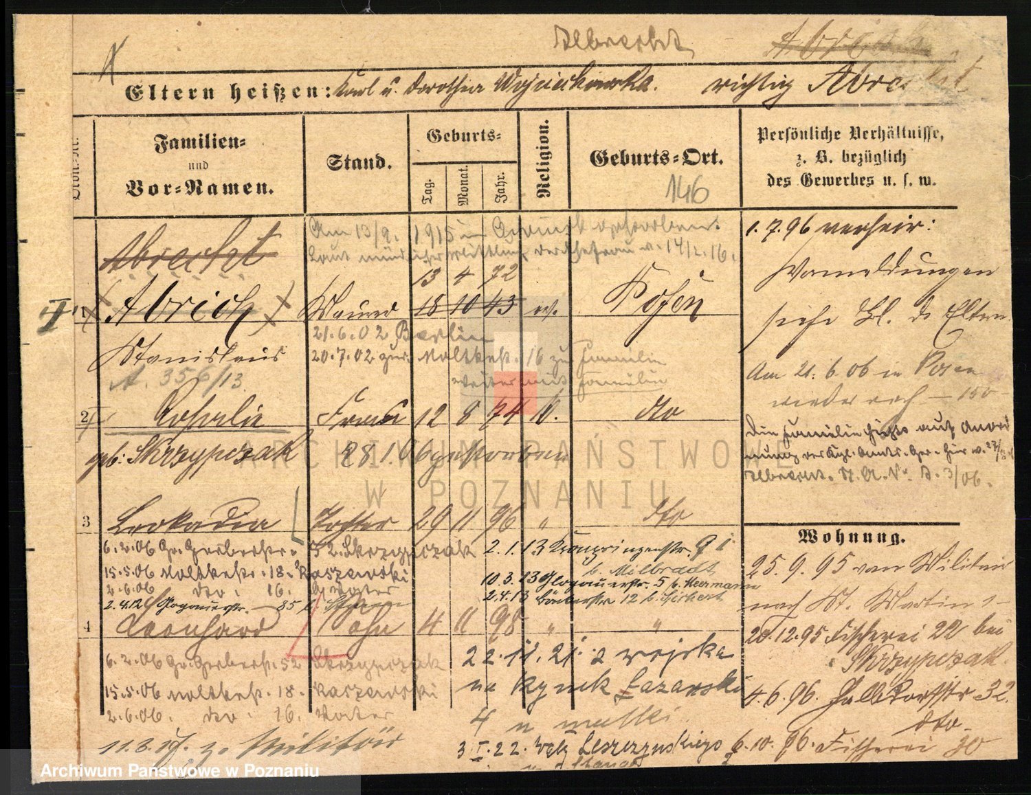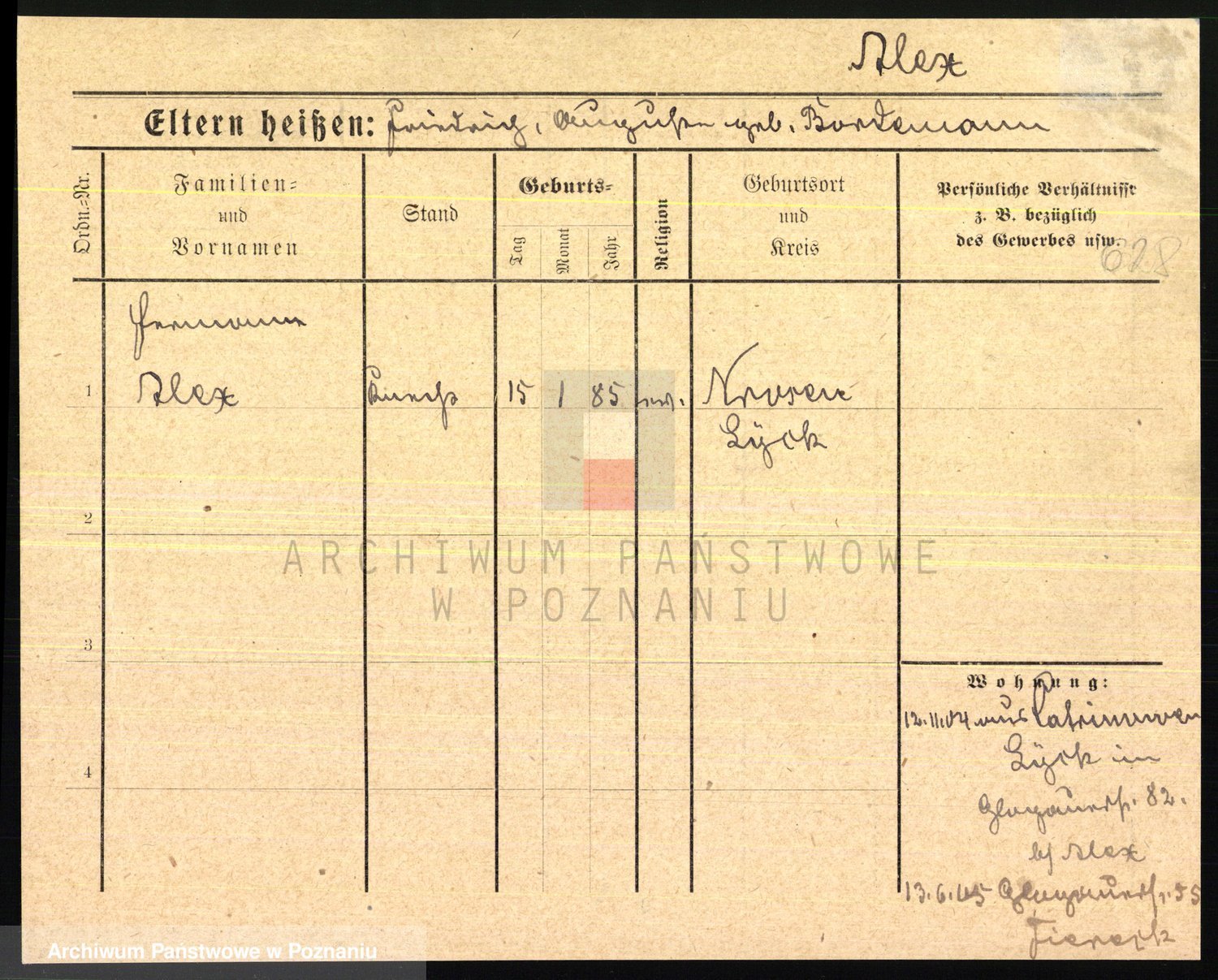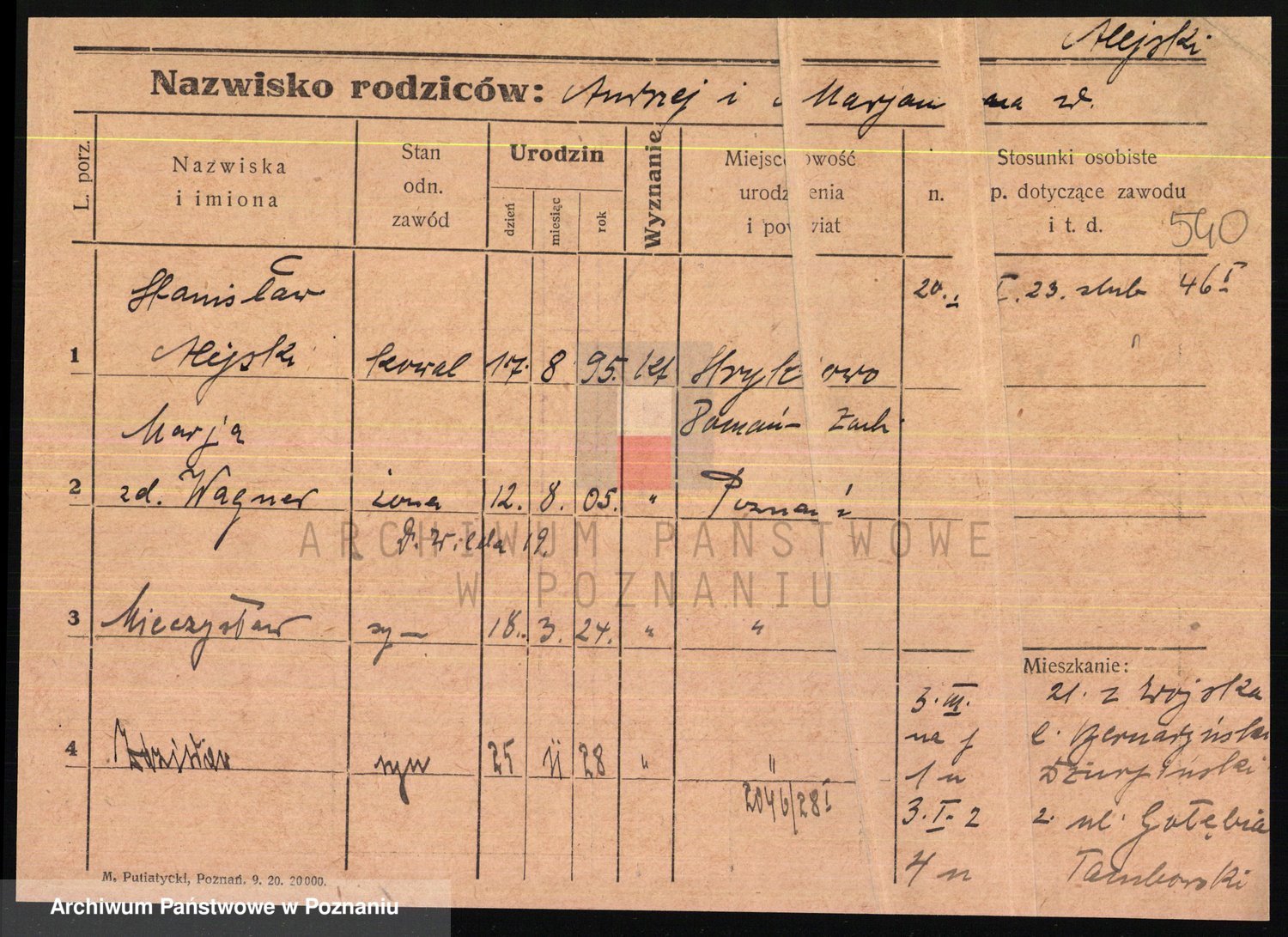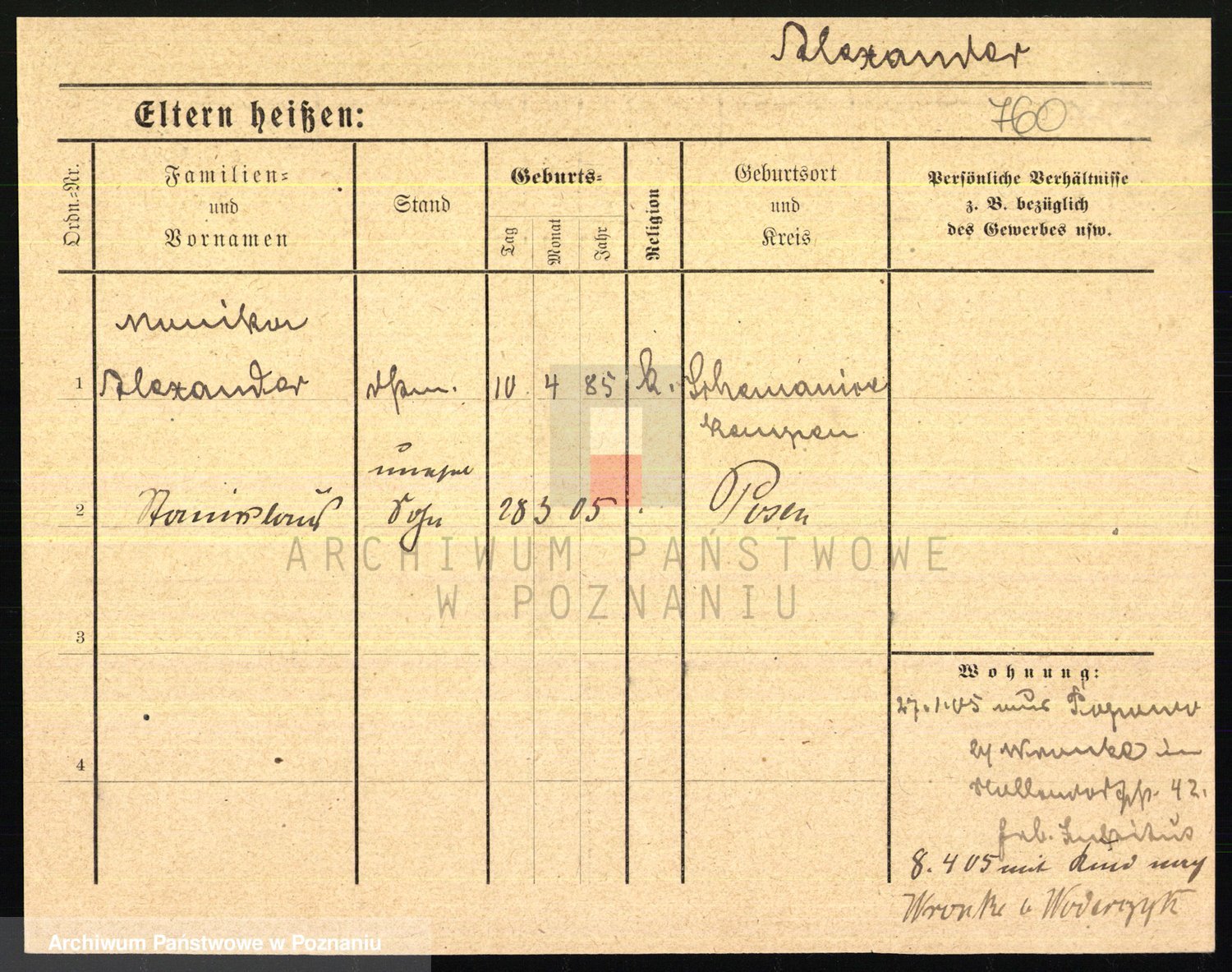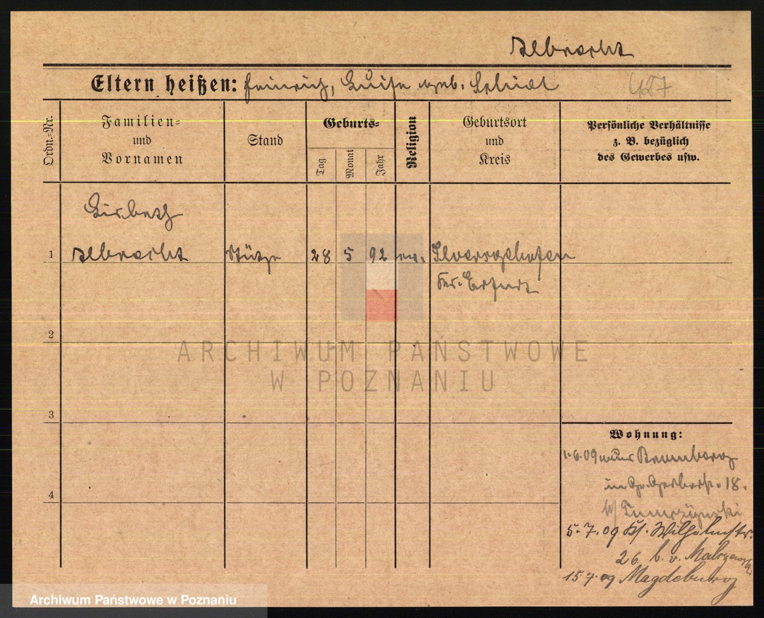 Podgląd karty osobowej dostępny jest po kliknięciu na nazwisko lub ikonkę karty. Można dokonywać powiększenia (ikony na górze) lub przechodzić między kolejnymi skanami (strzałki po bokach).