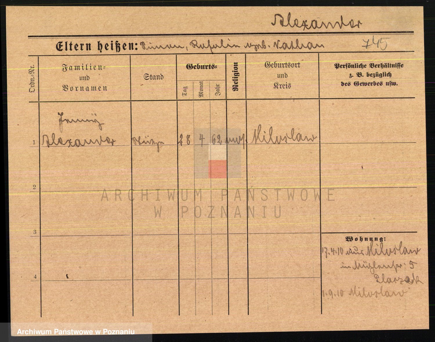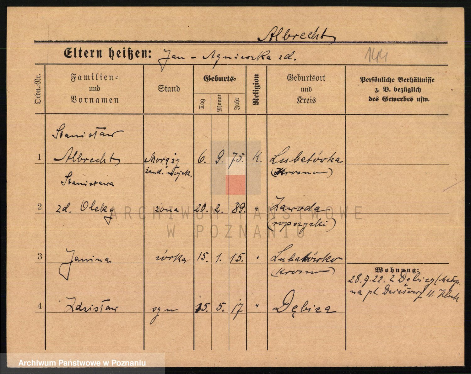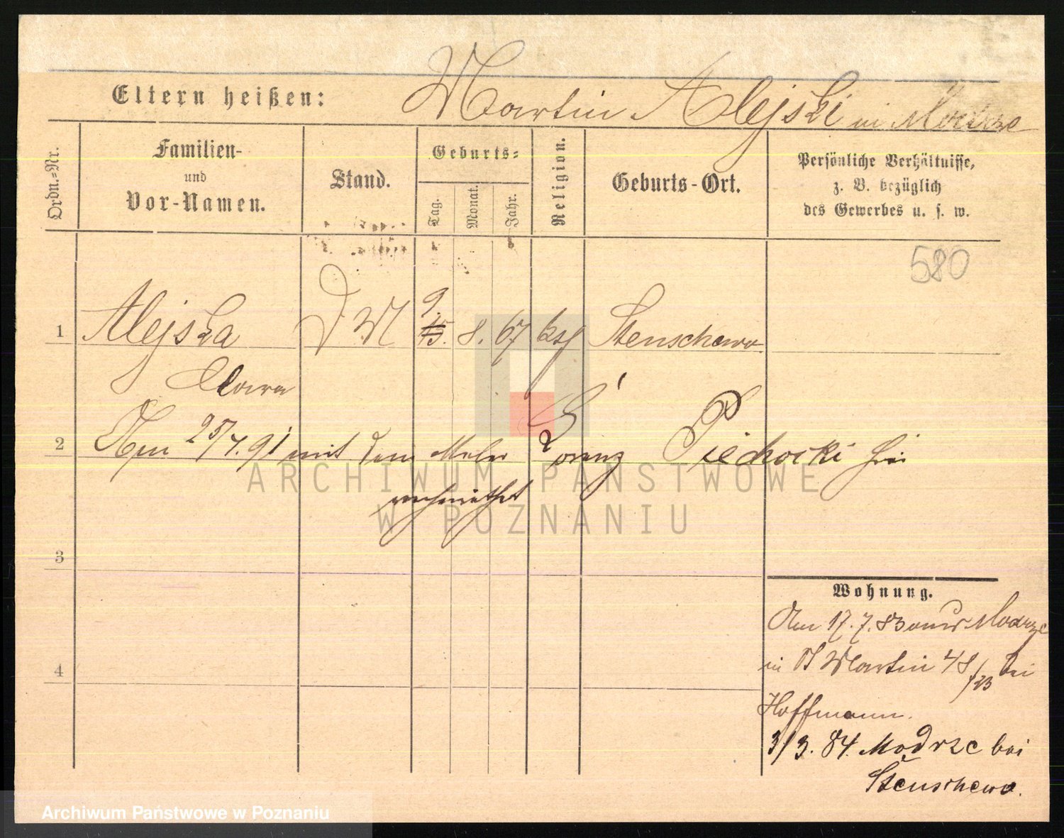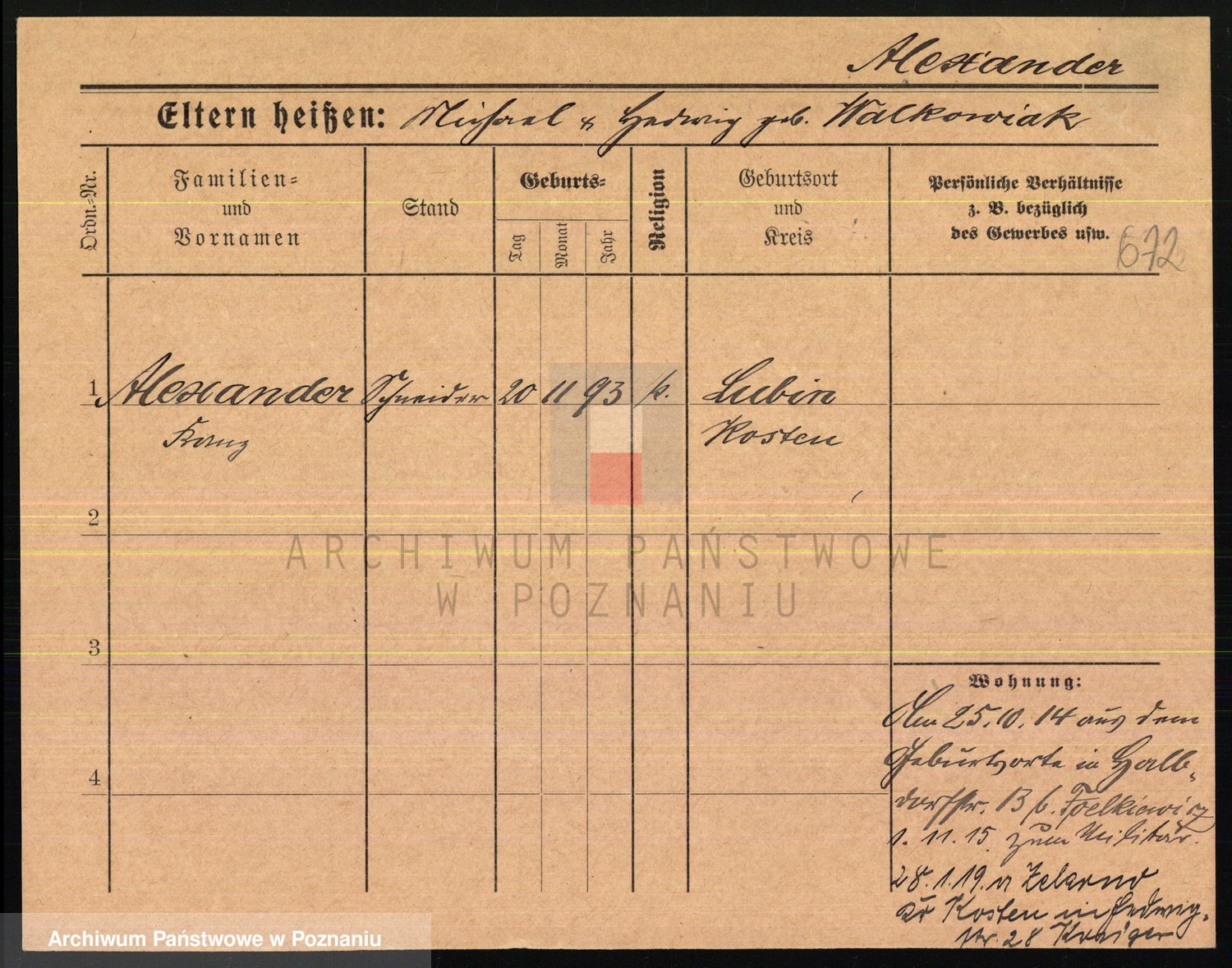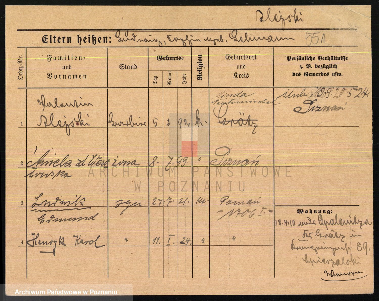 Podgląd karty osobowej dostępny jest po kliknięciu na nazwisko lub ikonkę karty. Można dokonywać powiększenia (ikony na górze) lub przechodzić między kolejnymi skanami (strzałki po bokach).