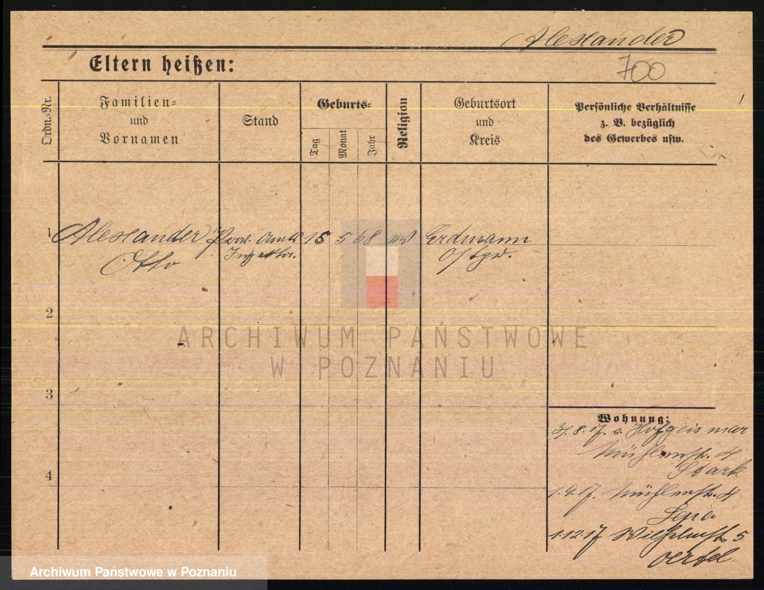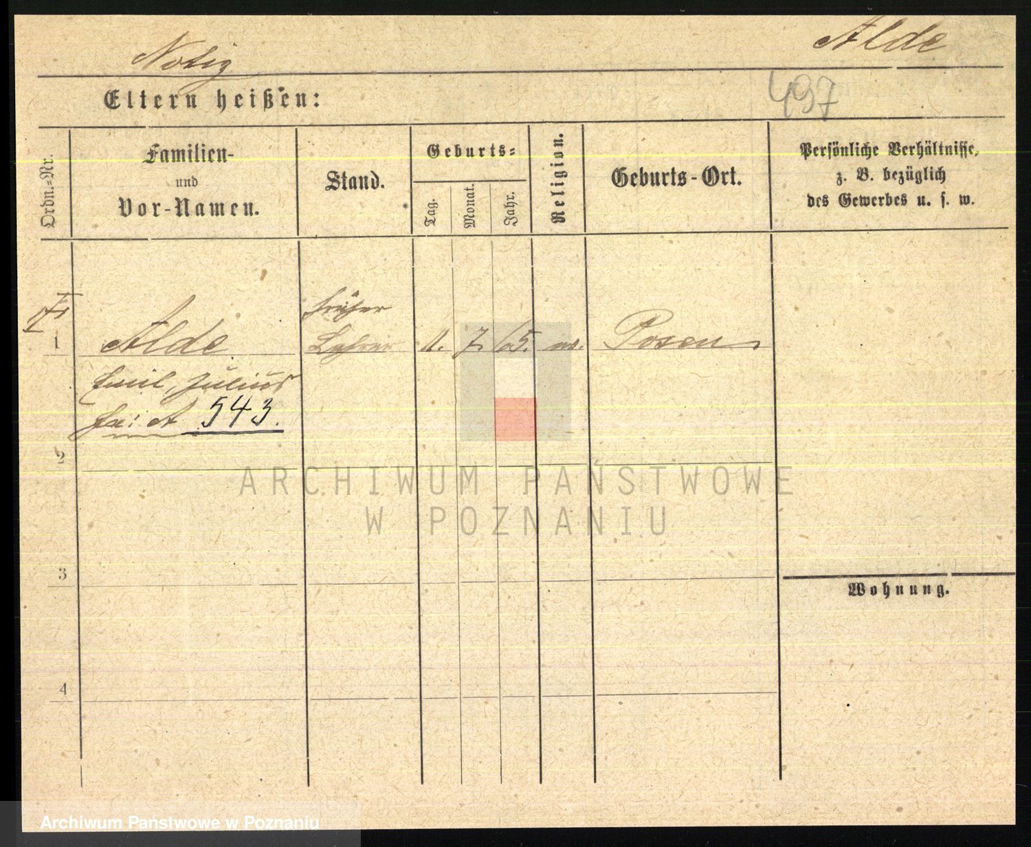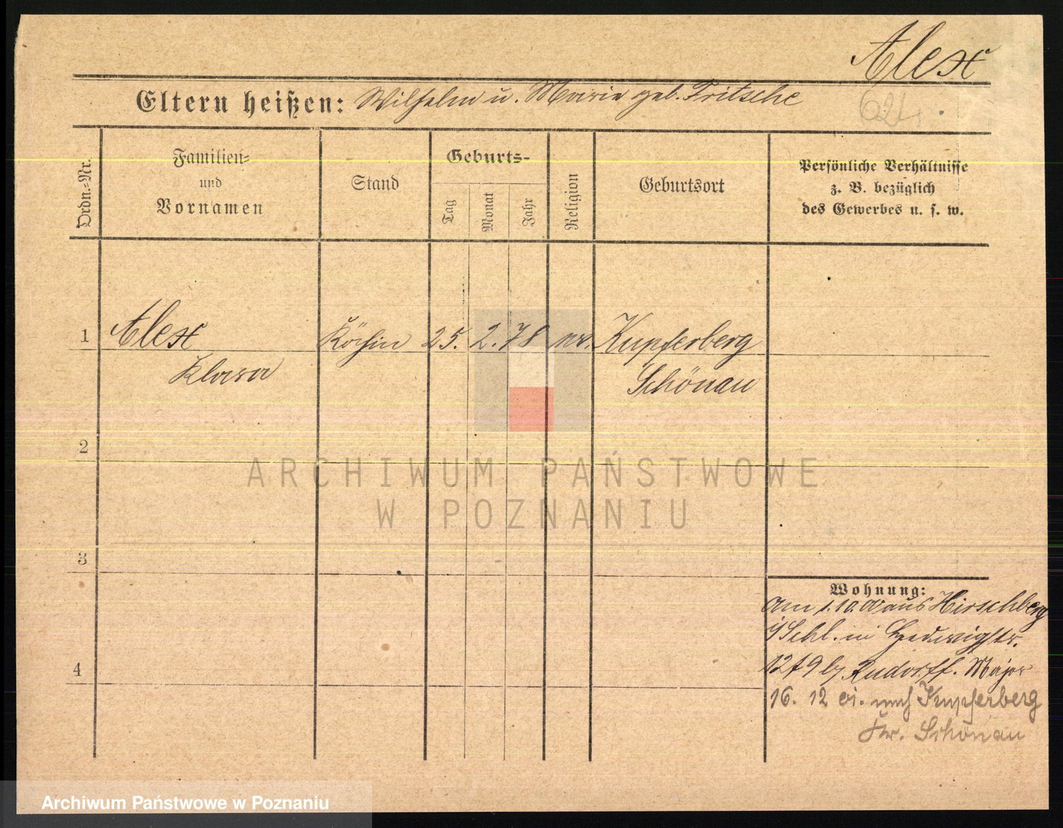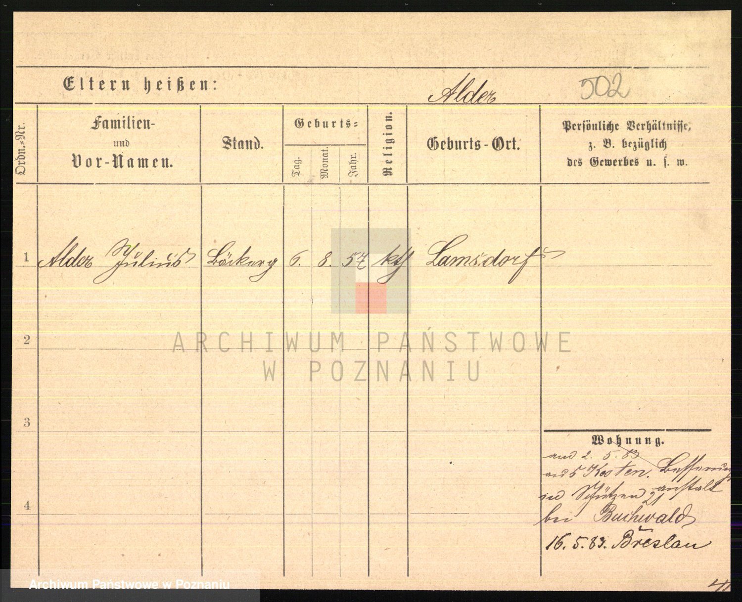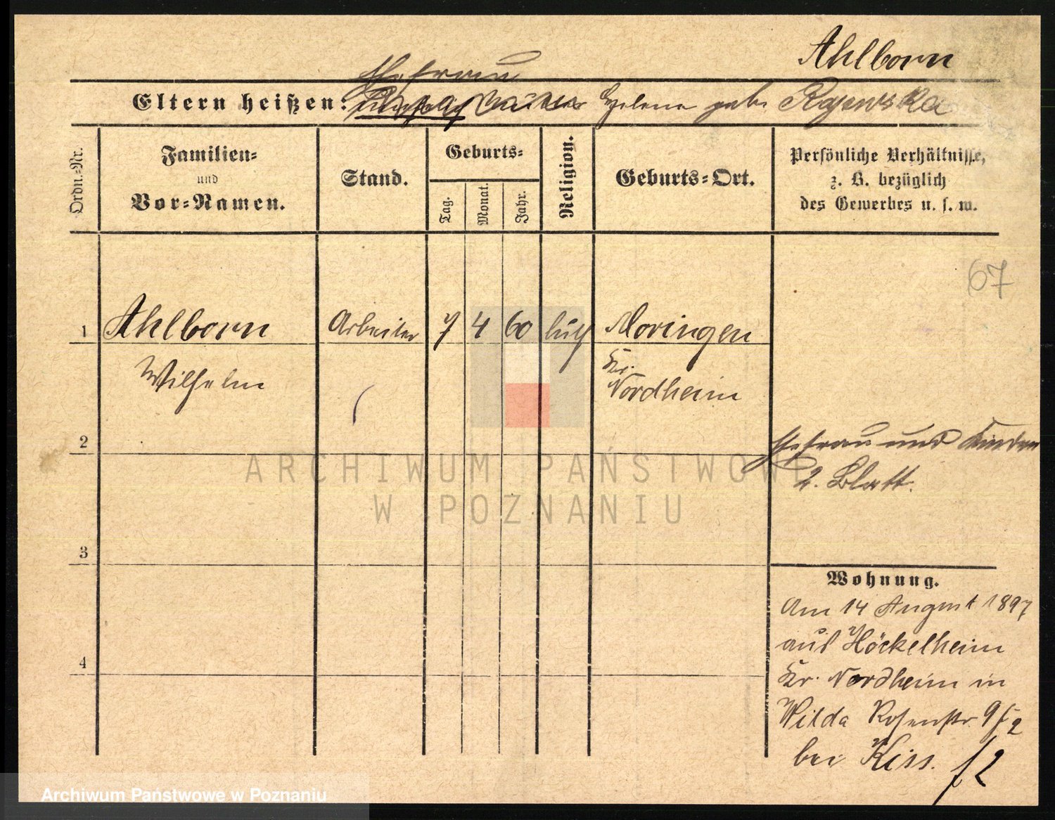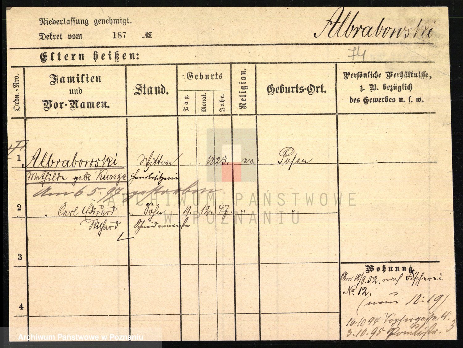 Podgląd karty osobowej dostępny jest po kliknięciu na nazwisko lub ikonkę karty. Można dokonywać powiększenia (ikony na górze) lub przechodzić między kolejnymi skanami (strzałki po bokach).