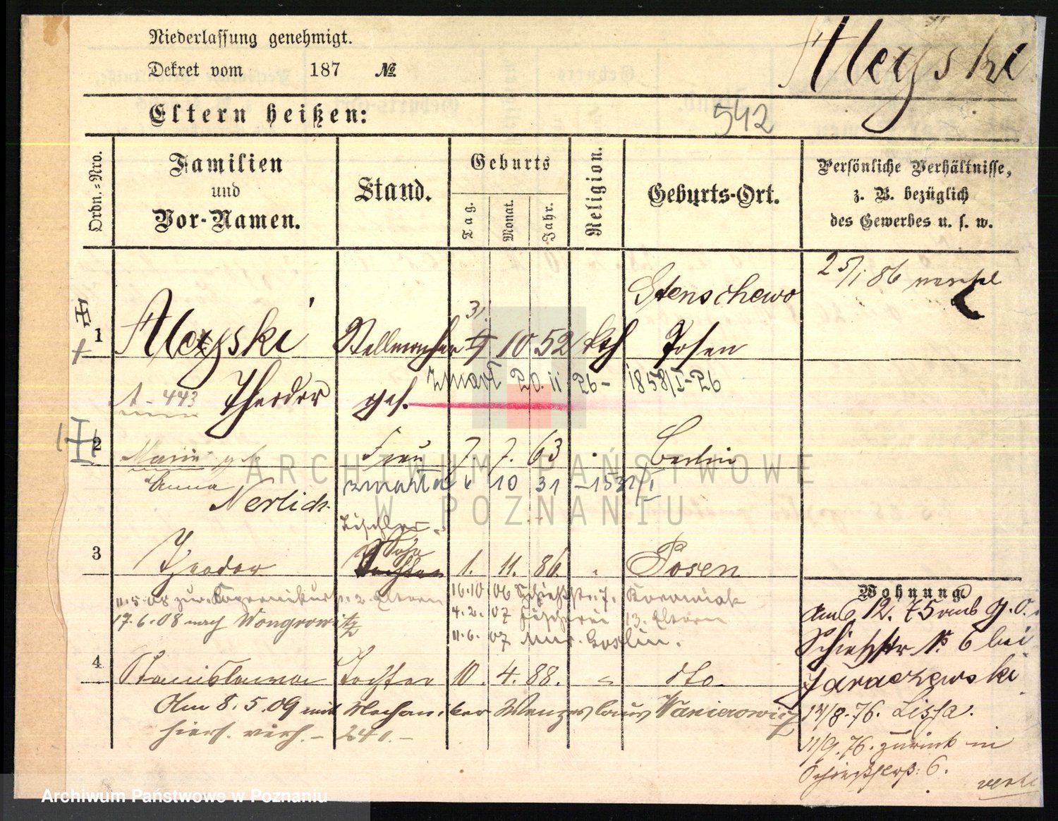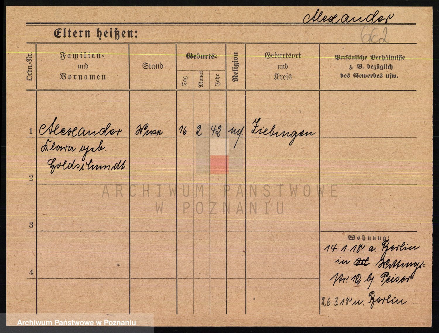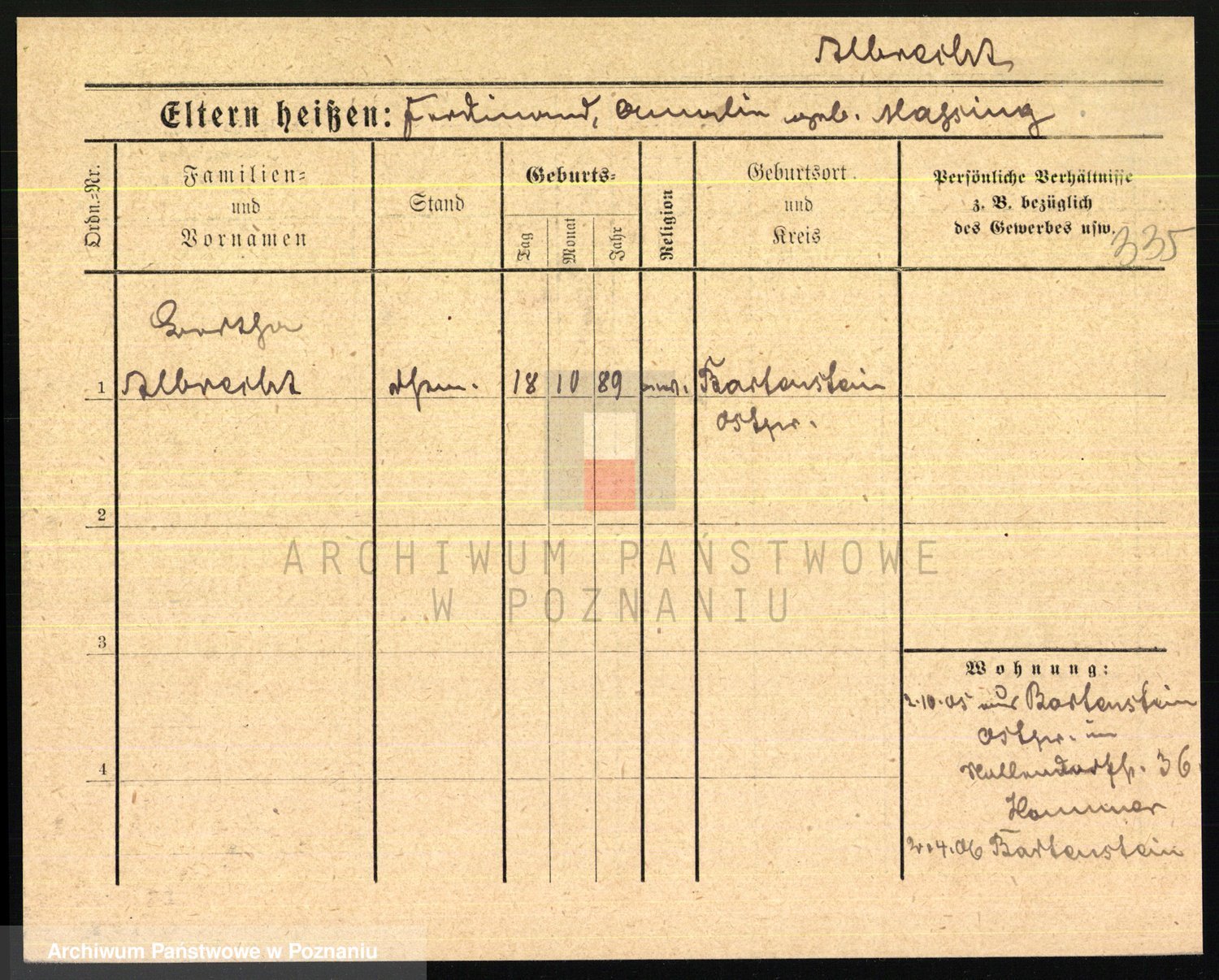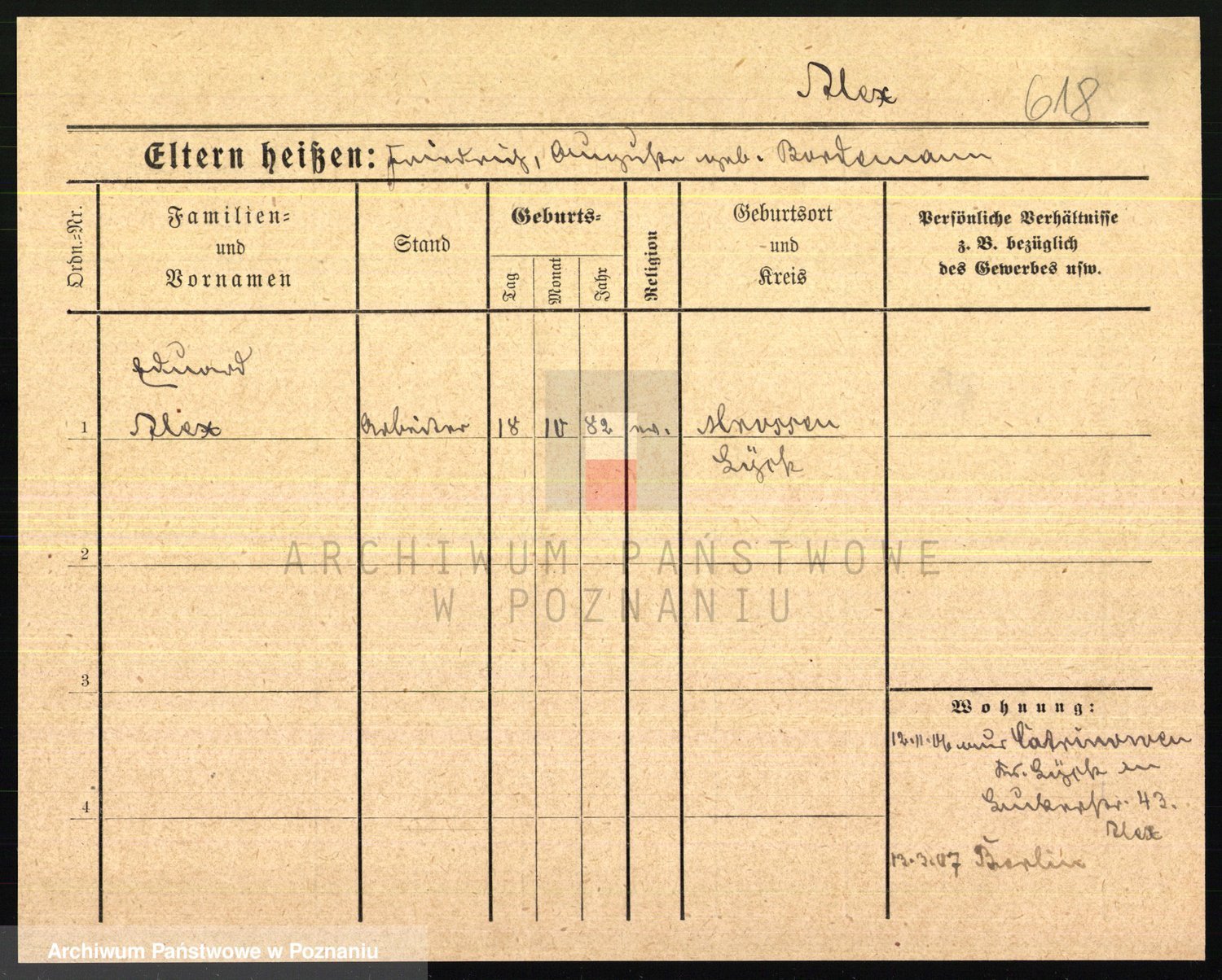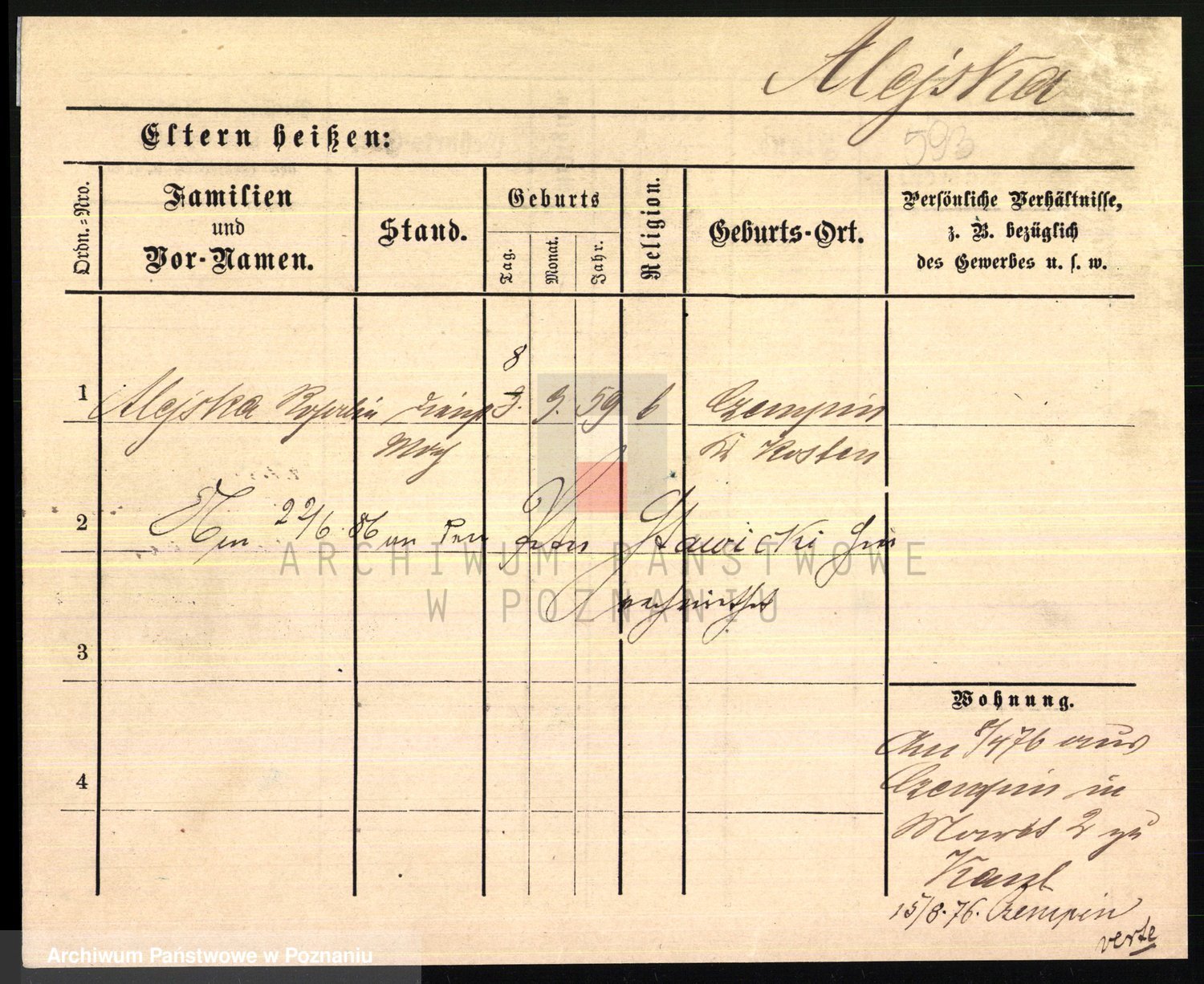 Podgląd karty osobowej dostępny jest po kliknięciu na nazwisko lub ikonkę karty. Można dokonywać powiększenia (ikony na górze) lub przechodzić między kolejnymi skanami (strzałki po bokach).