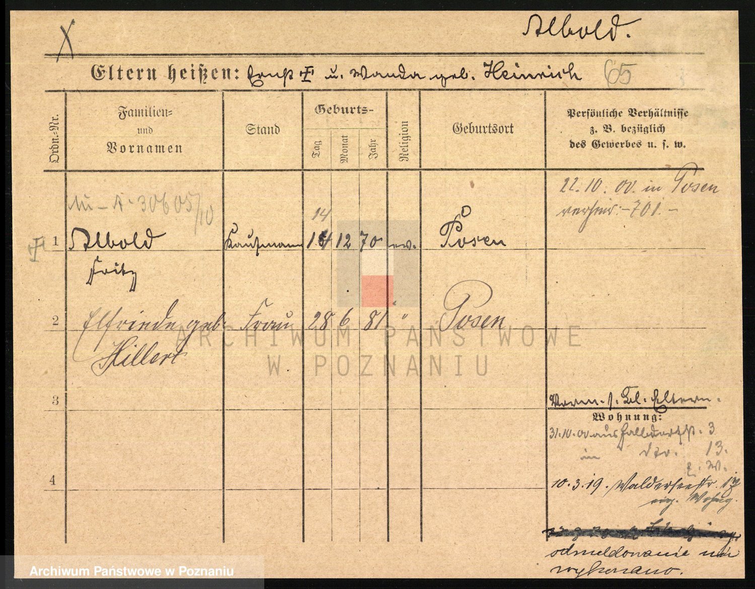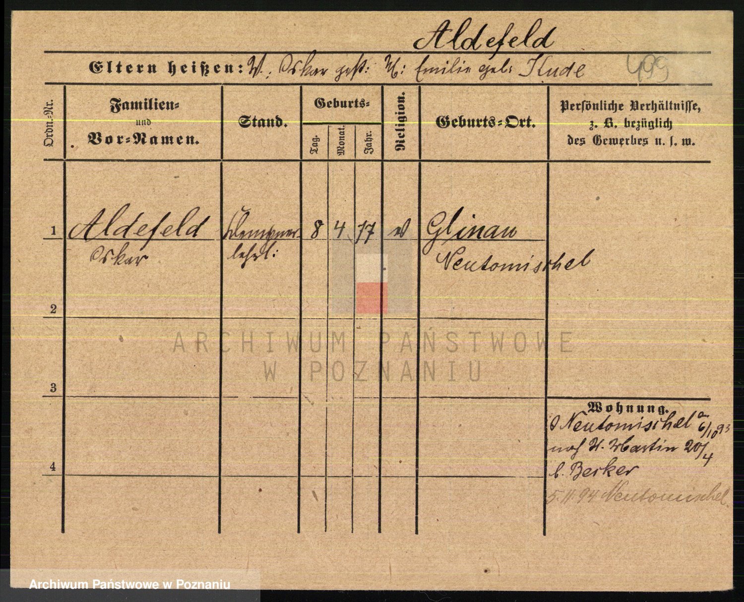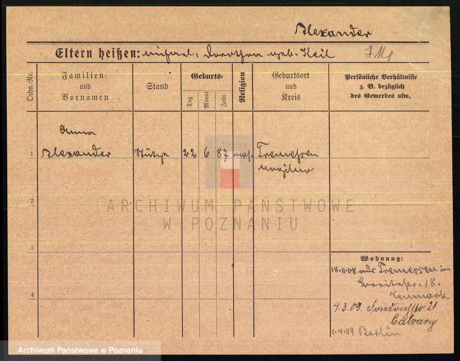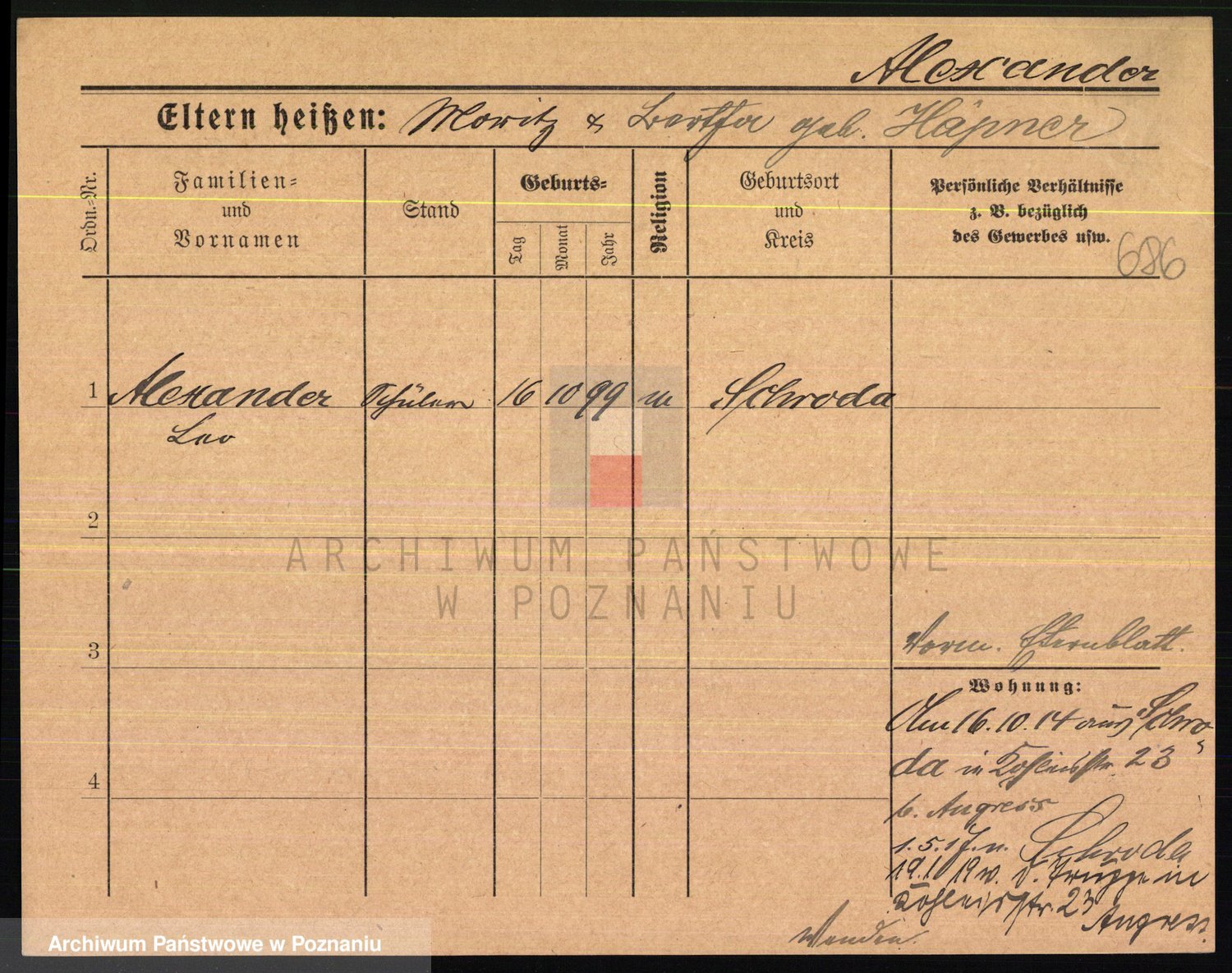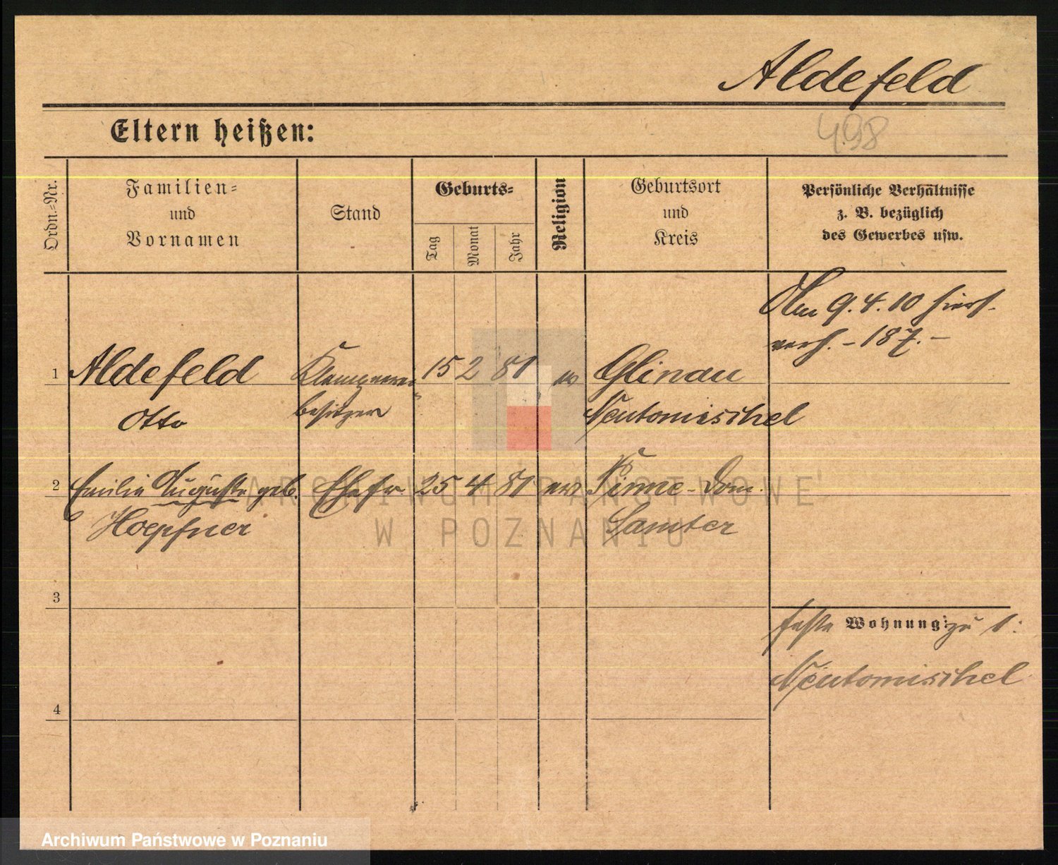 Podgląd karty osobowej dostępny jest po kliknięciu na nazwisko lub ikonkę karty. Można dokonywać powiększenia (ikony na górze) lub przechodzić między kolejnymi skanami (strzałki po bokach).