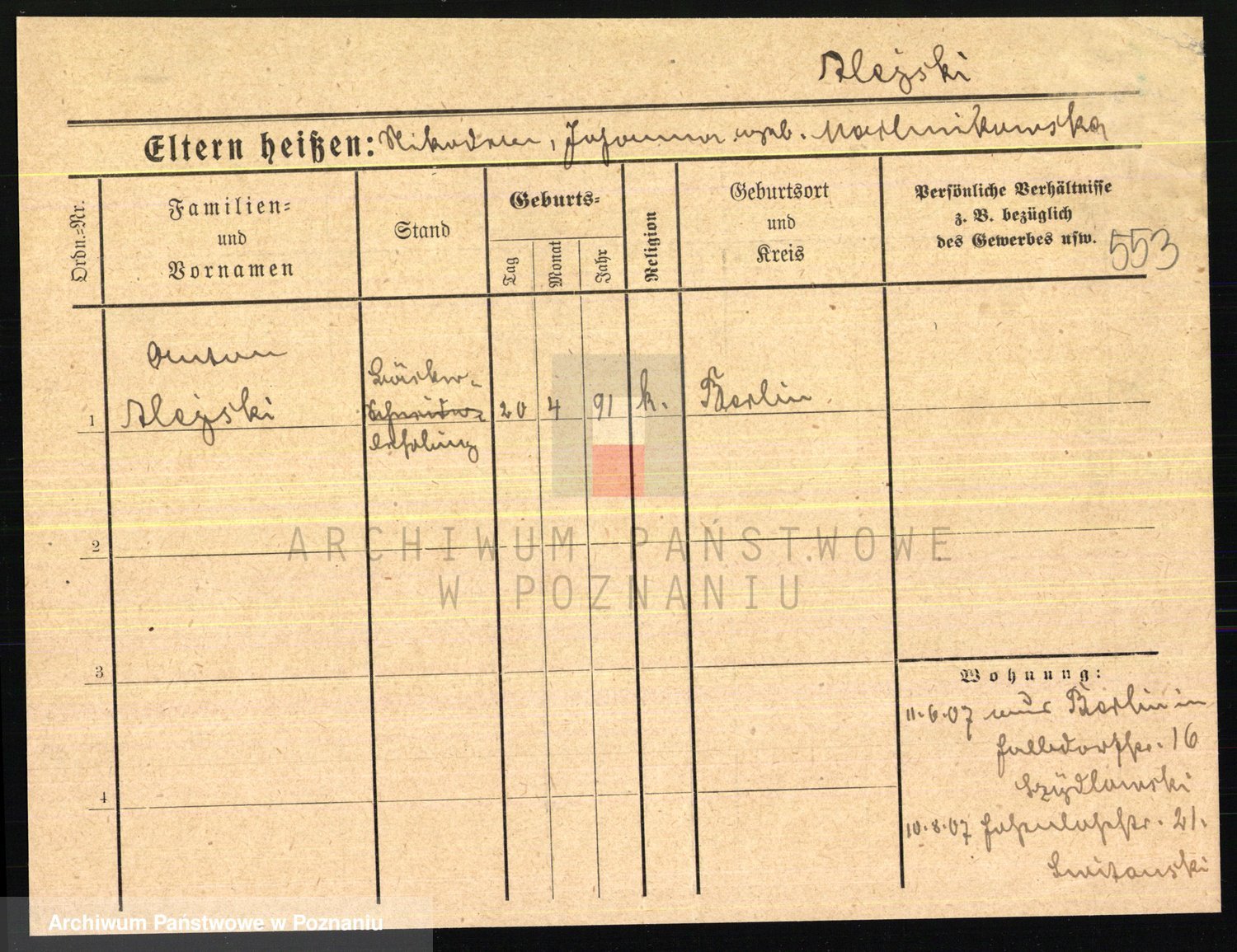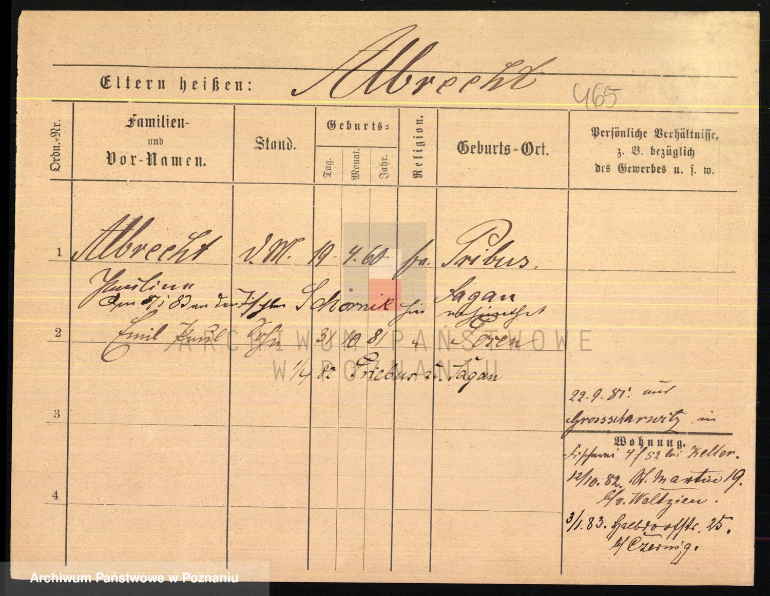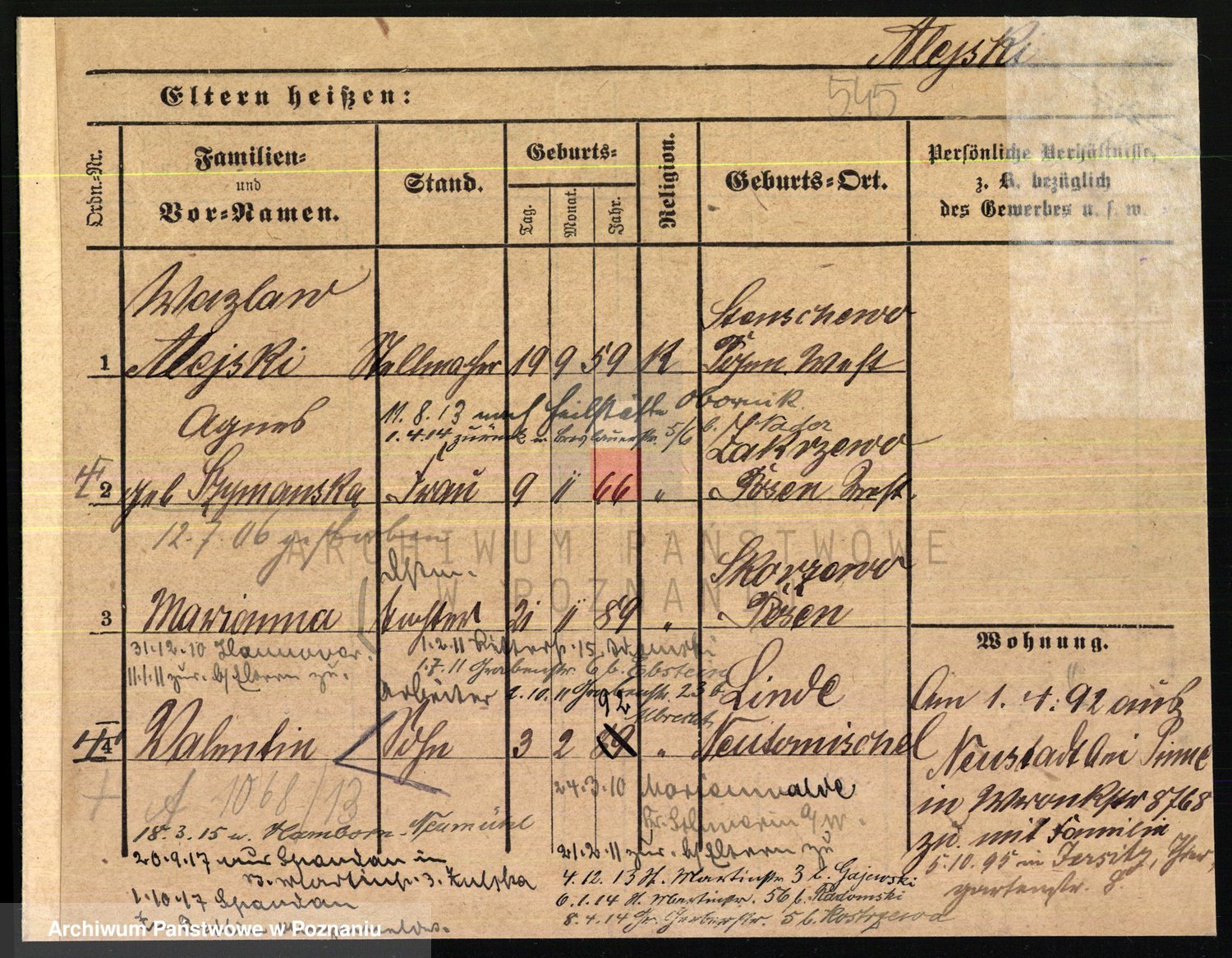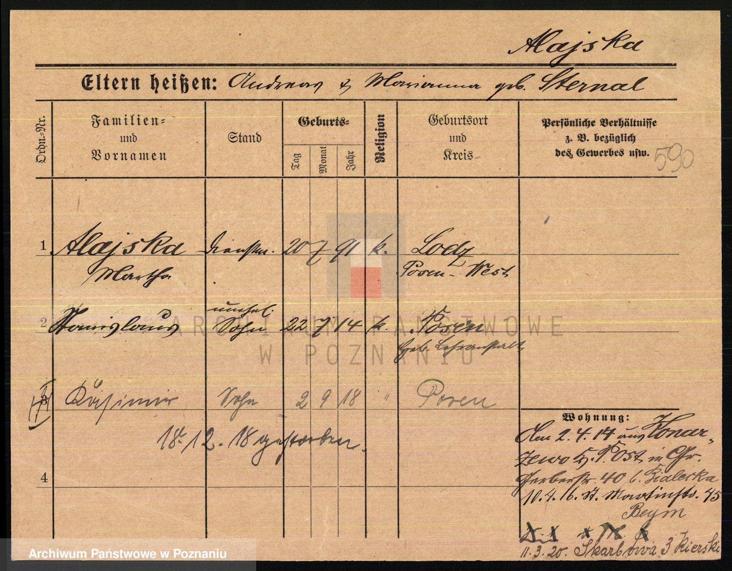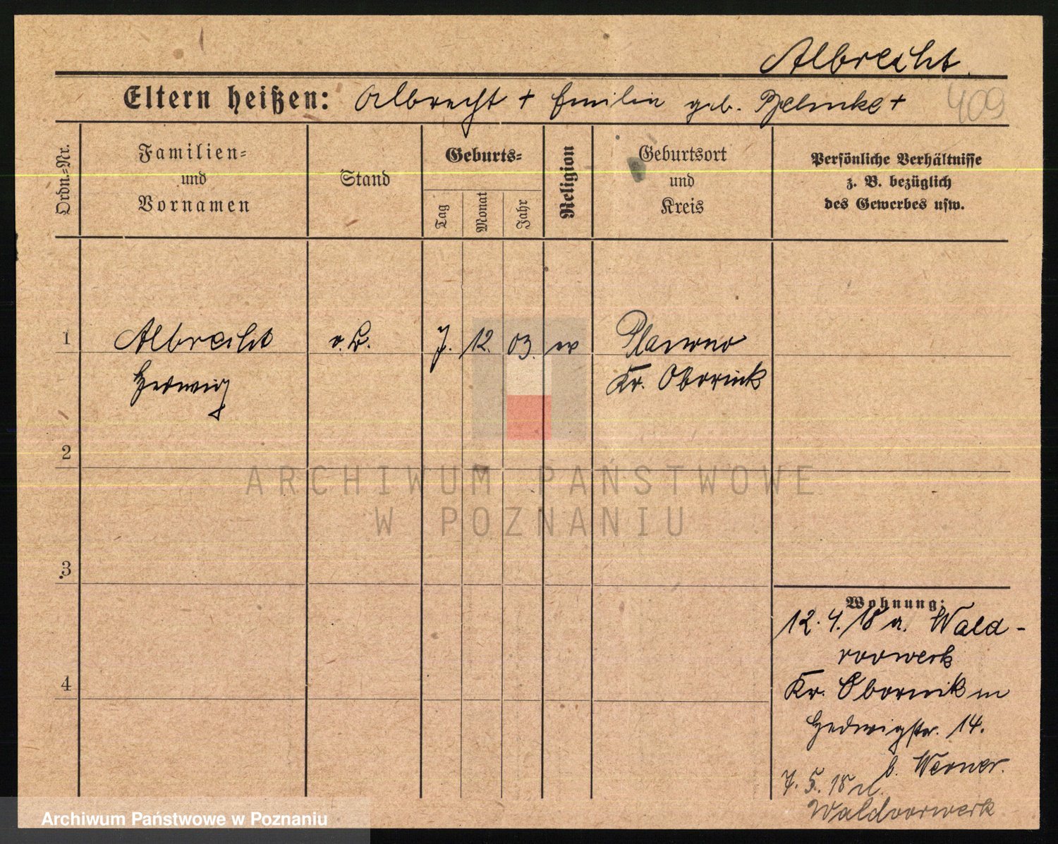 Podgląd karty osobowej dostępny jest po kliknięciu na nazwisko lub ikonkę karty. Można dokonywać powiększenia (ikony na górze) lub przechodzić między kolejnymi skanami (strzałki po bokach).