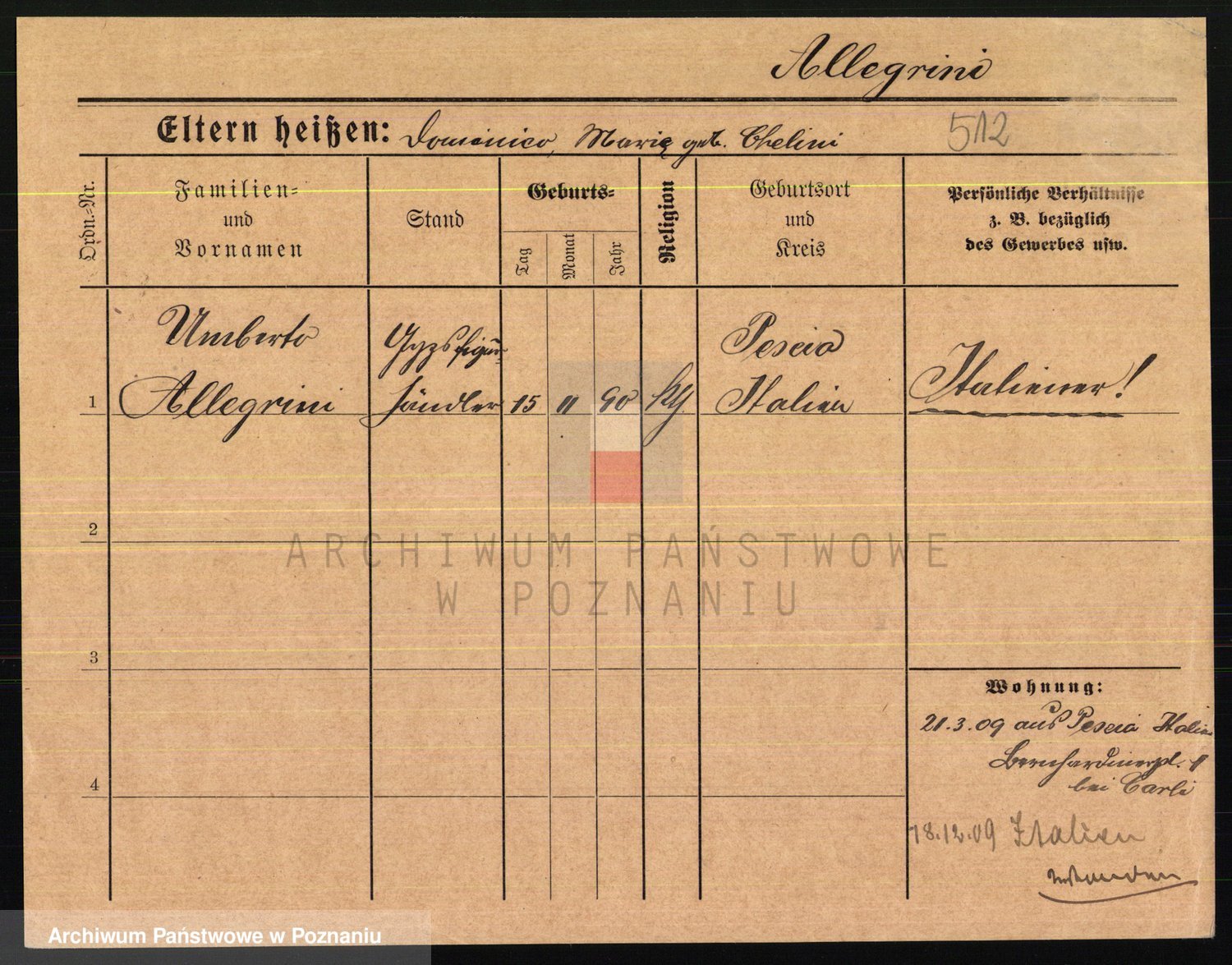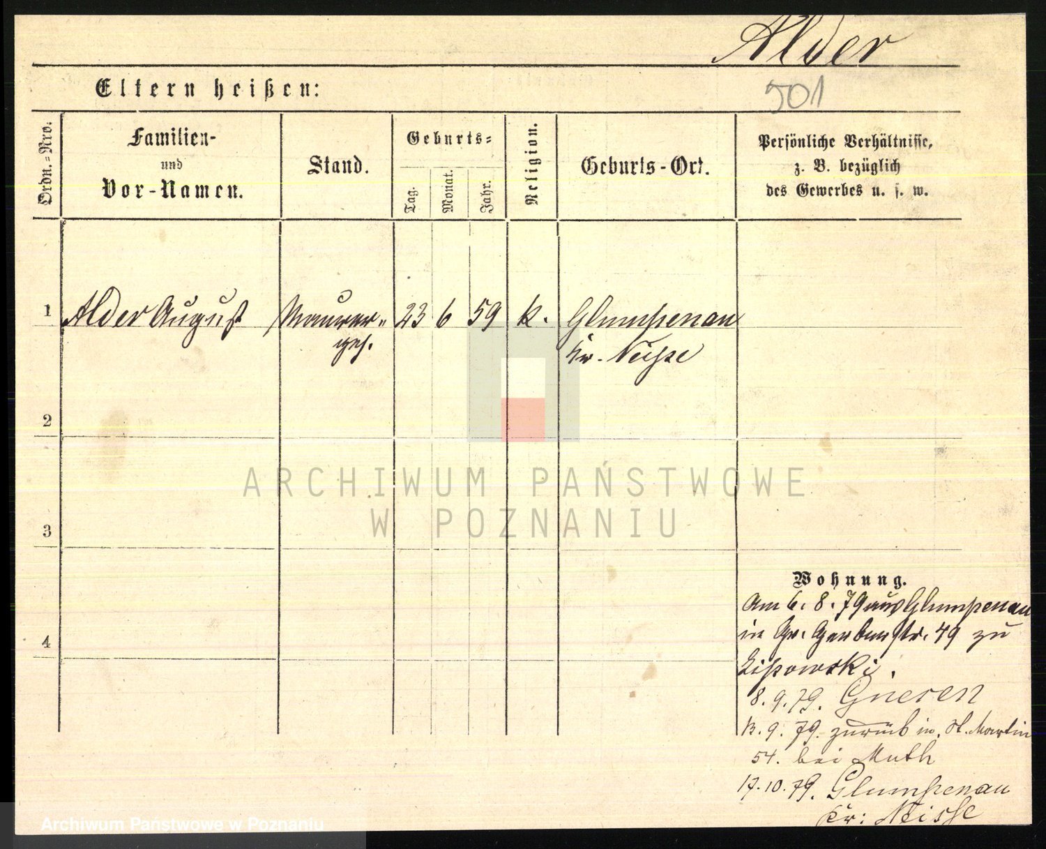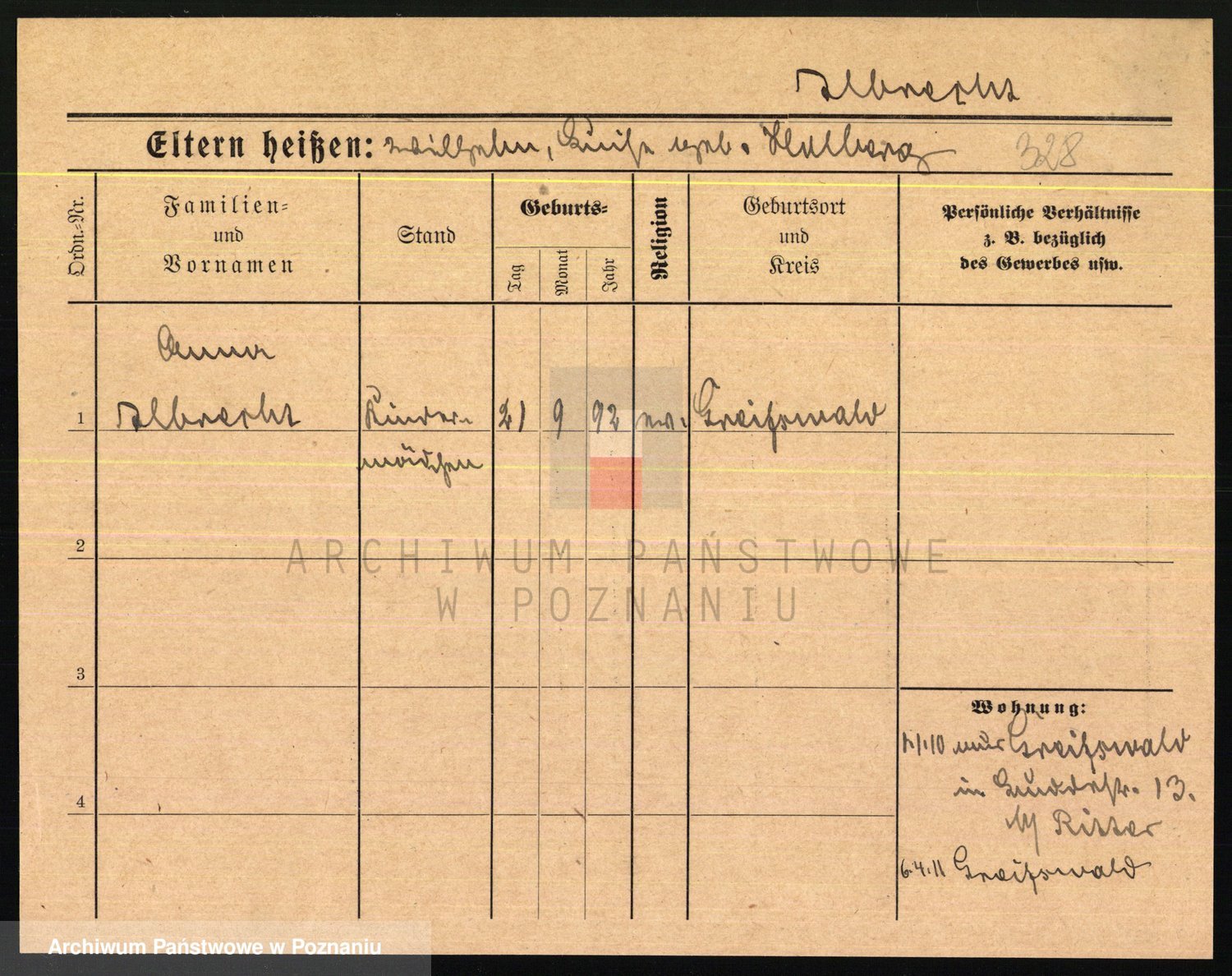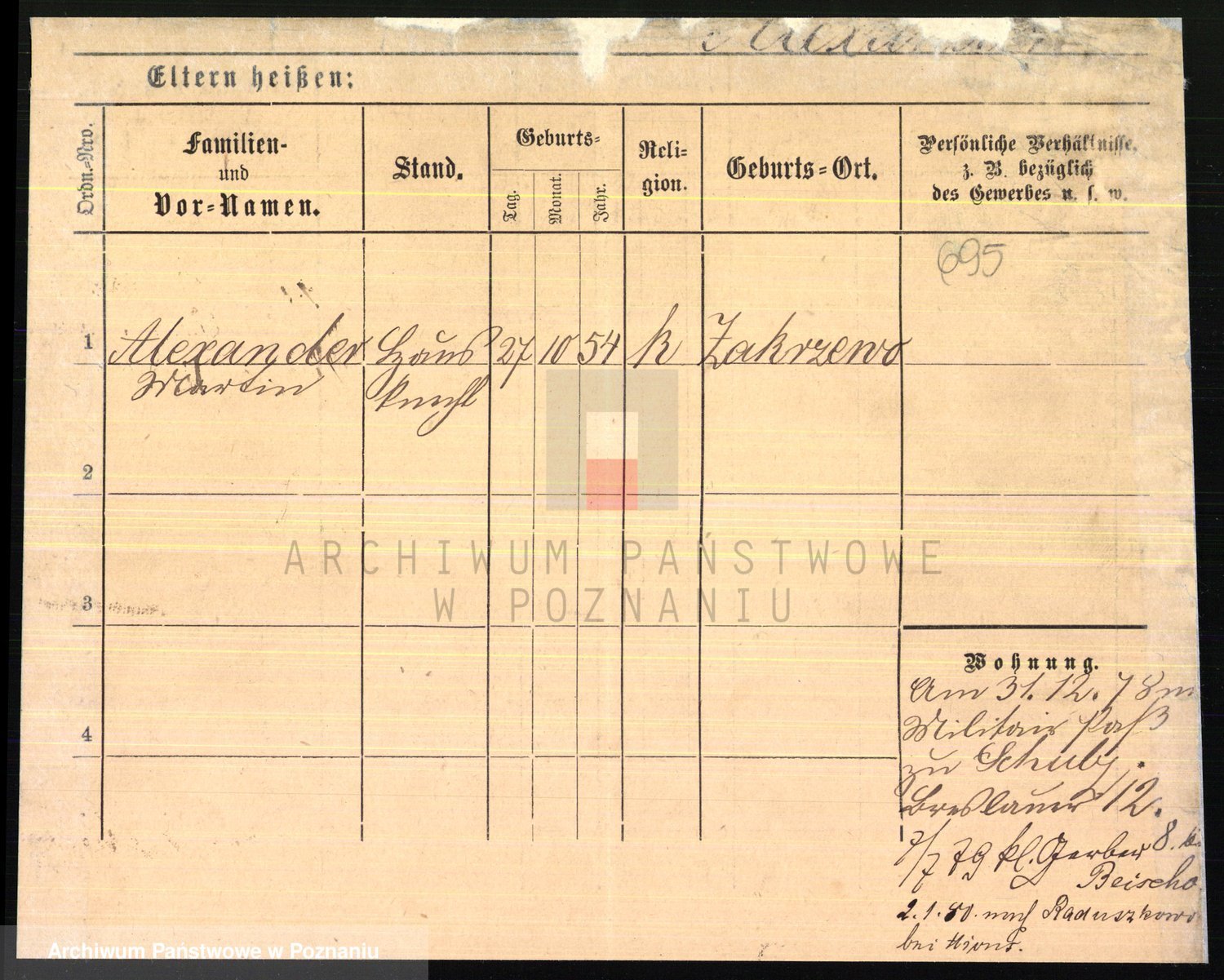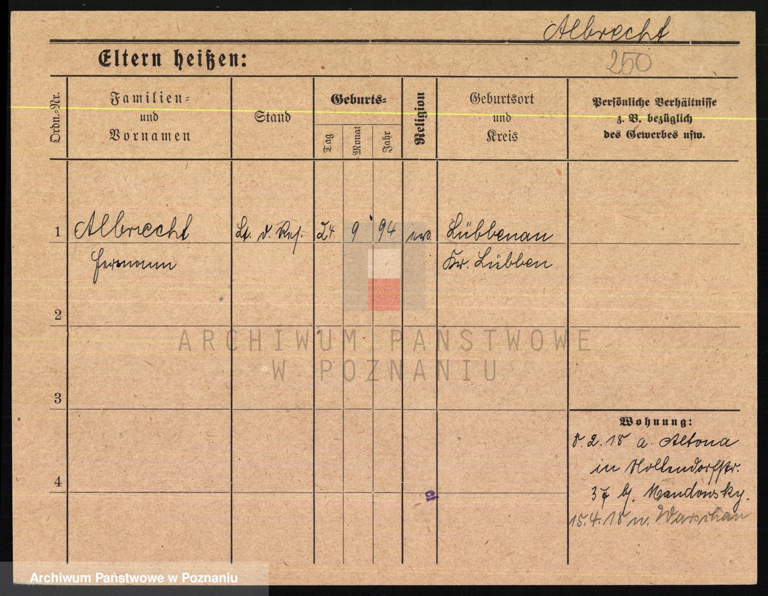 Podgląd karty osobowej dostępny jest po kliknięciu na nazwisko lub ikonkę karty. Można dokonywać powiększenia (ikony na górze) lub przechodzić między kolejnymi skanami (strzałki po bokach).