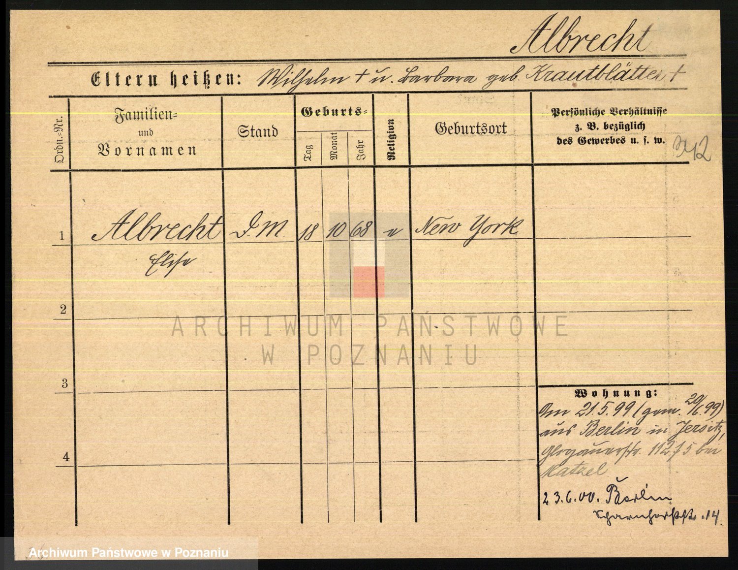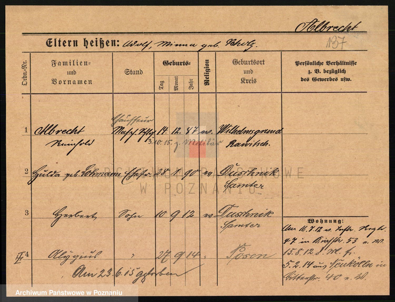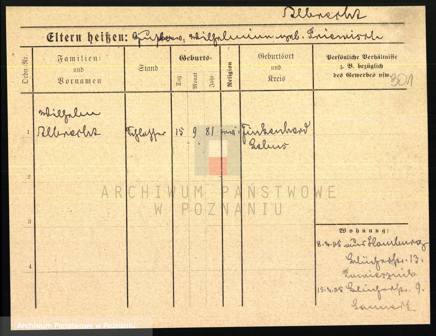 Albin, Wilhelmine