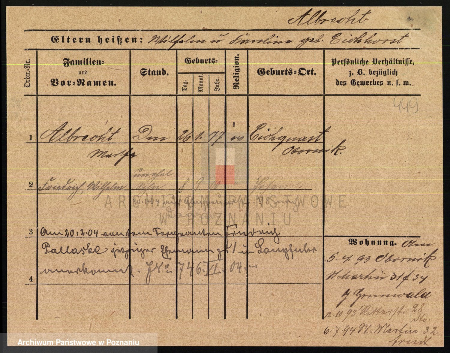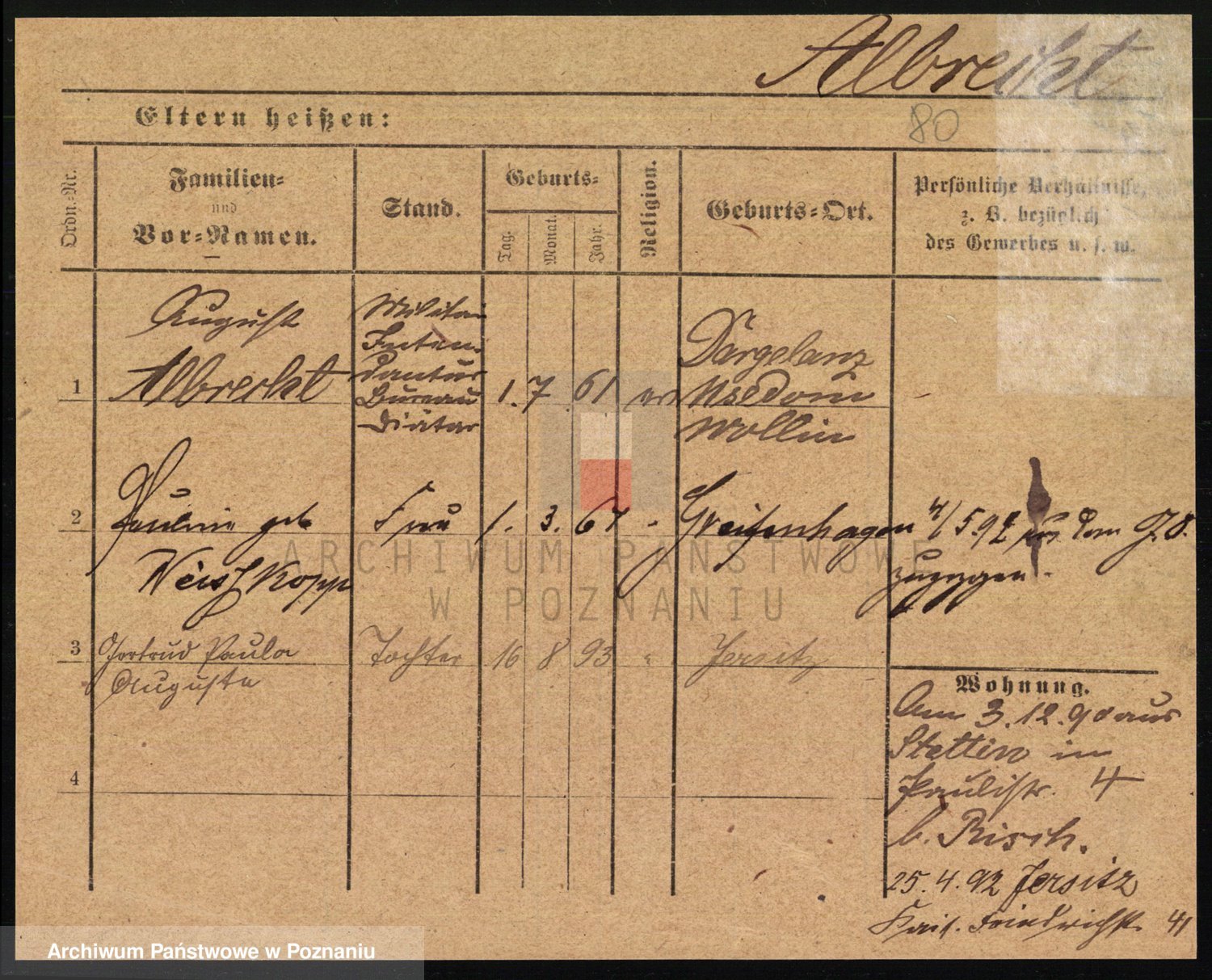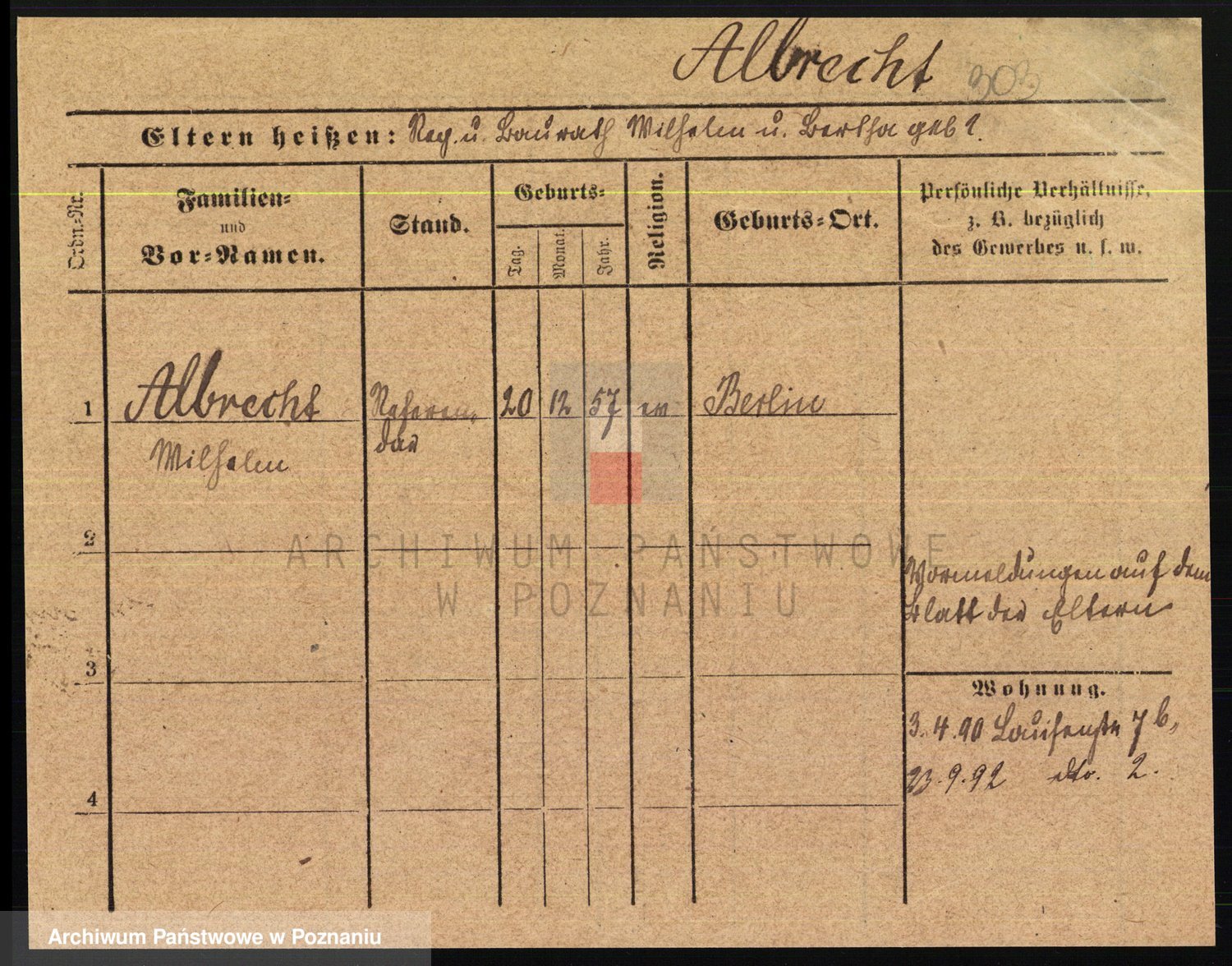 Albin, Wilhelmine