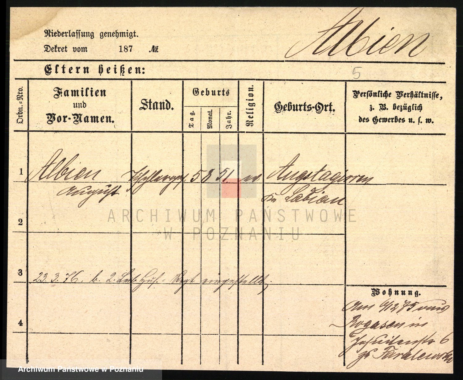 Albien, Adam August