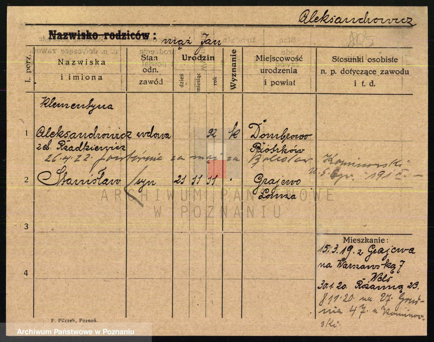 Alexandrowicz z d. Samolewska, brak imienia