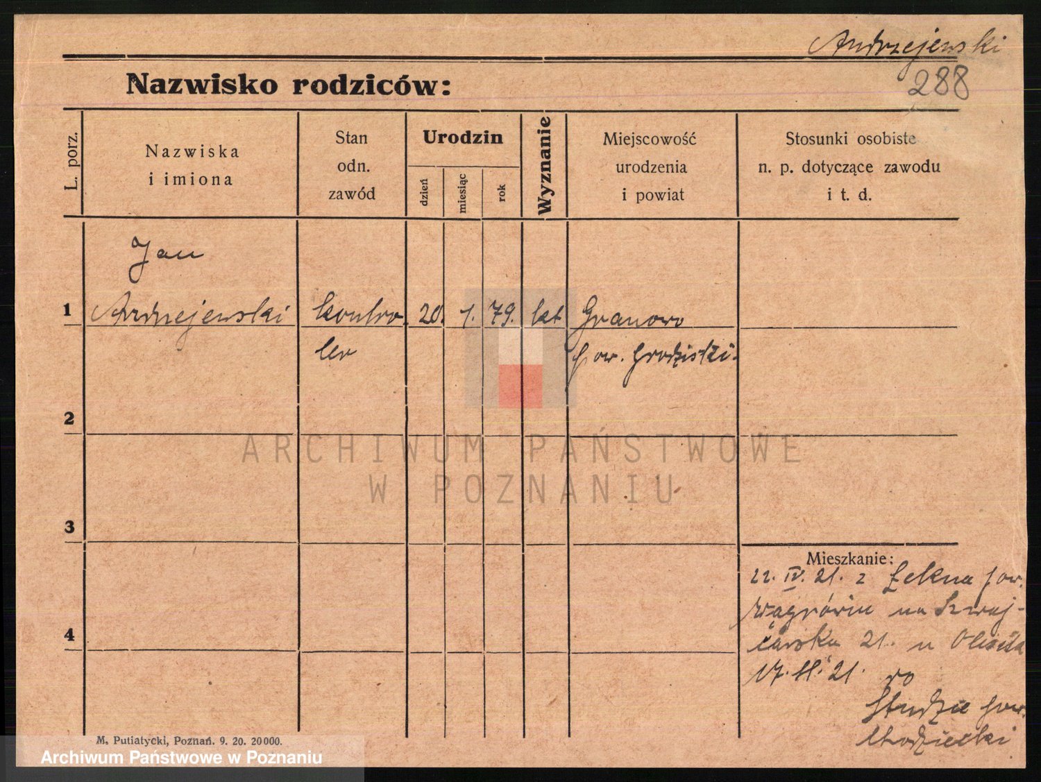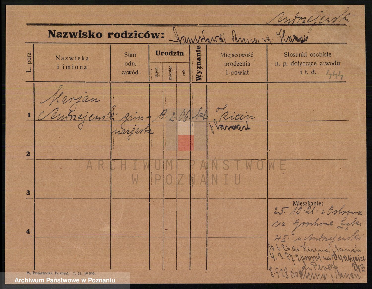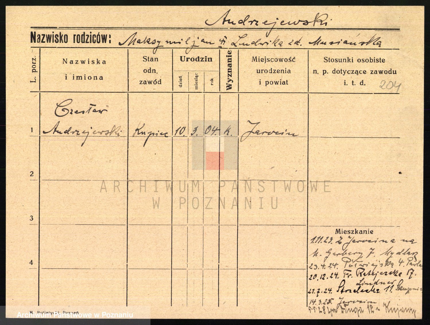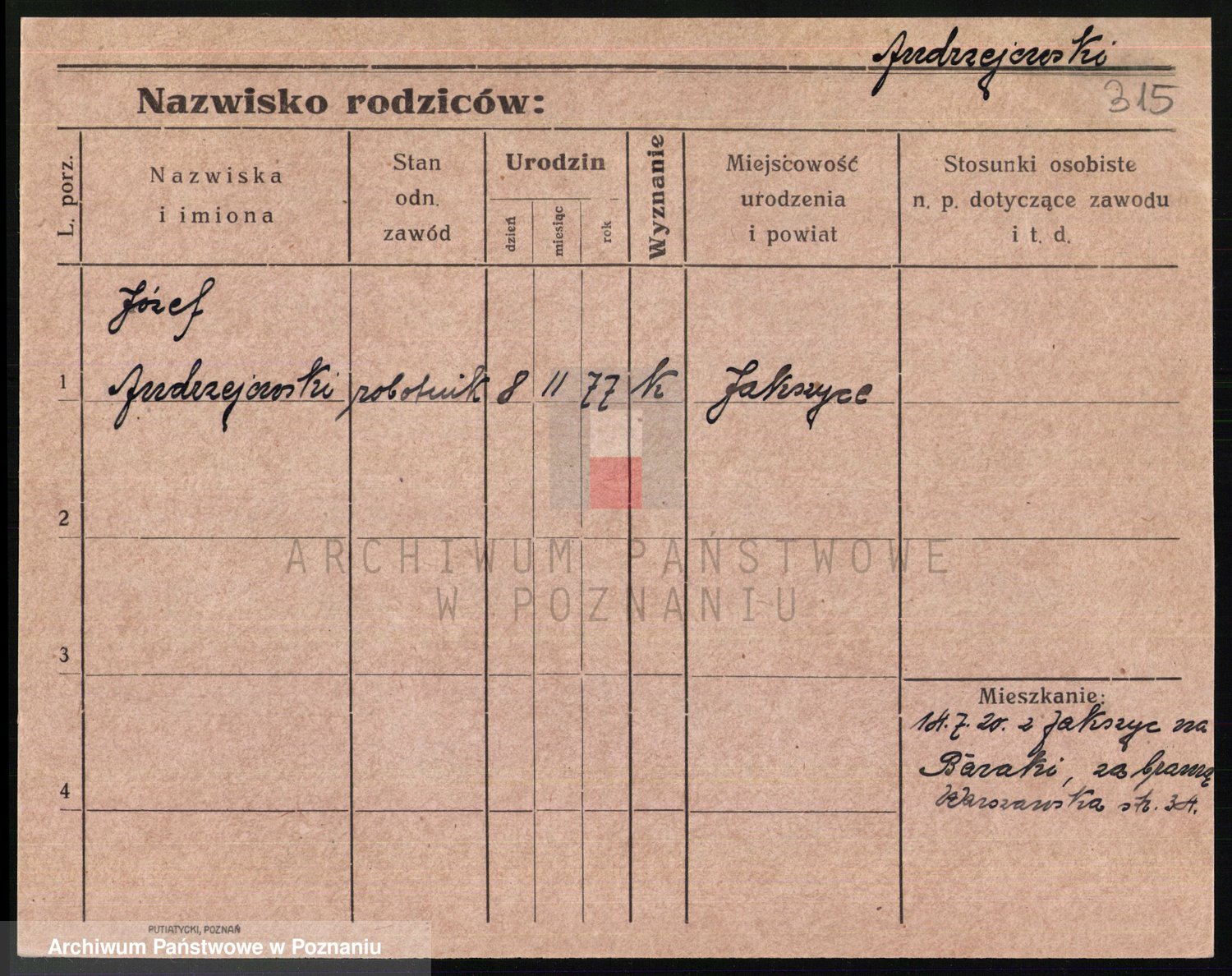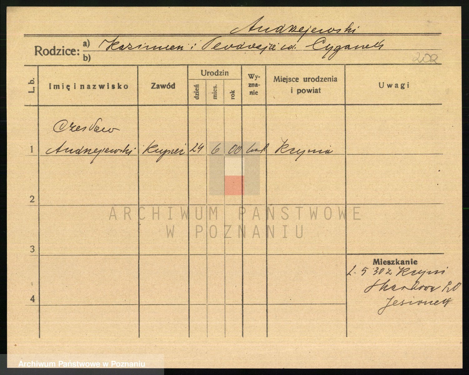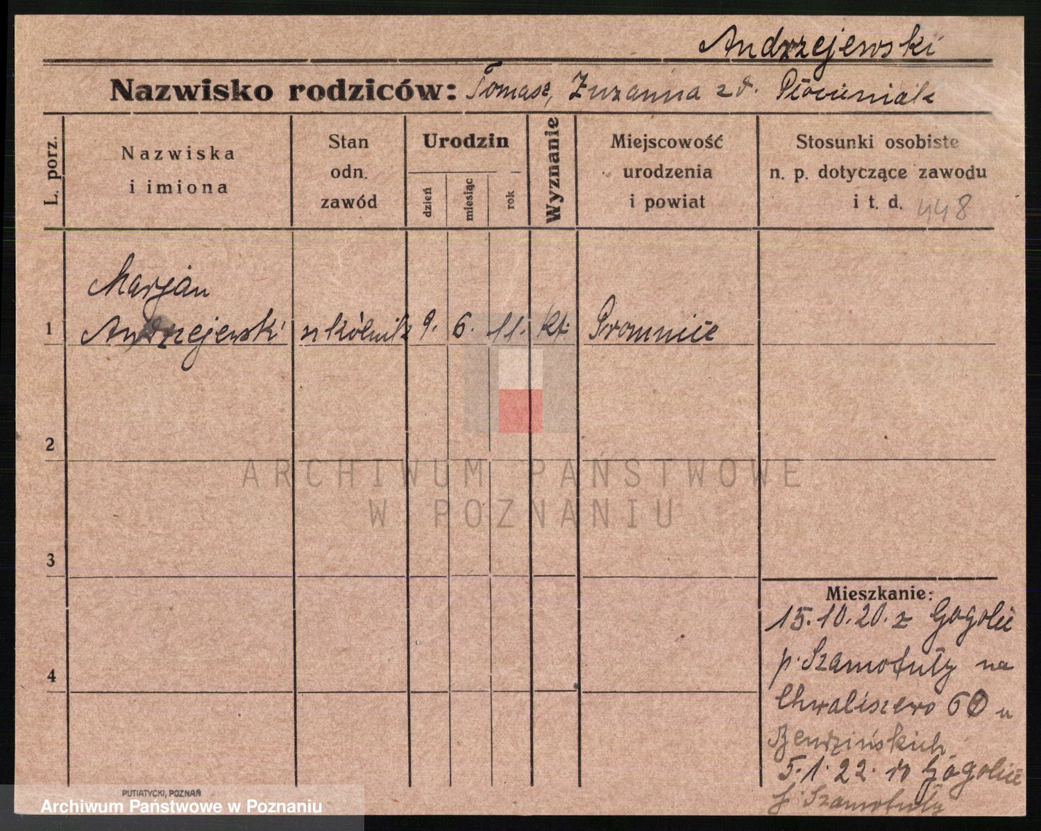 Podgląd karty osobowej dostępny jest po kliknięciu na nazwisko lub ikonkę karty. Można dokonywać powiększenia (ikony na górze) lub przechodzić między kolejnymi skanami (strzałki po bokach).