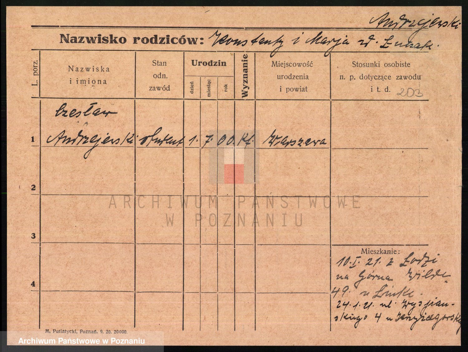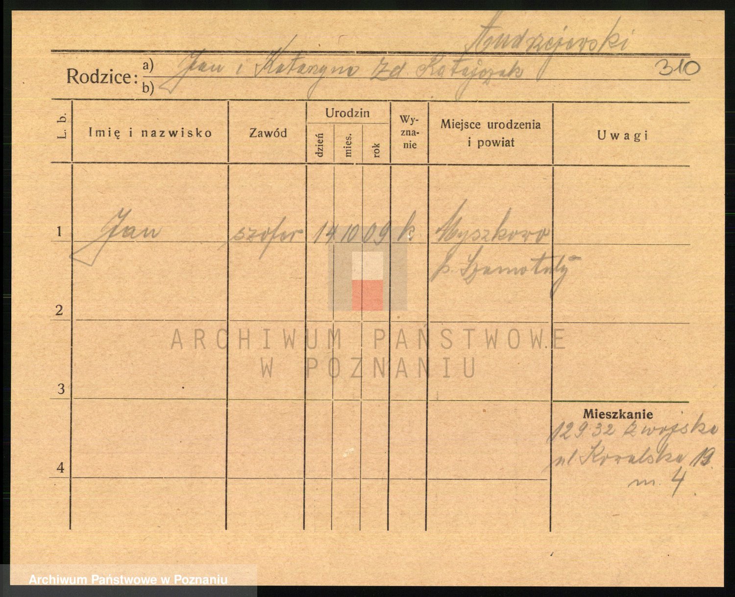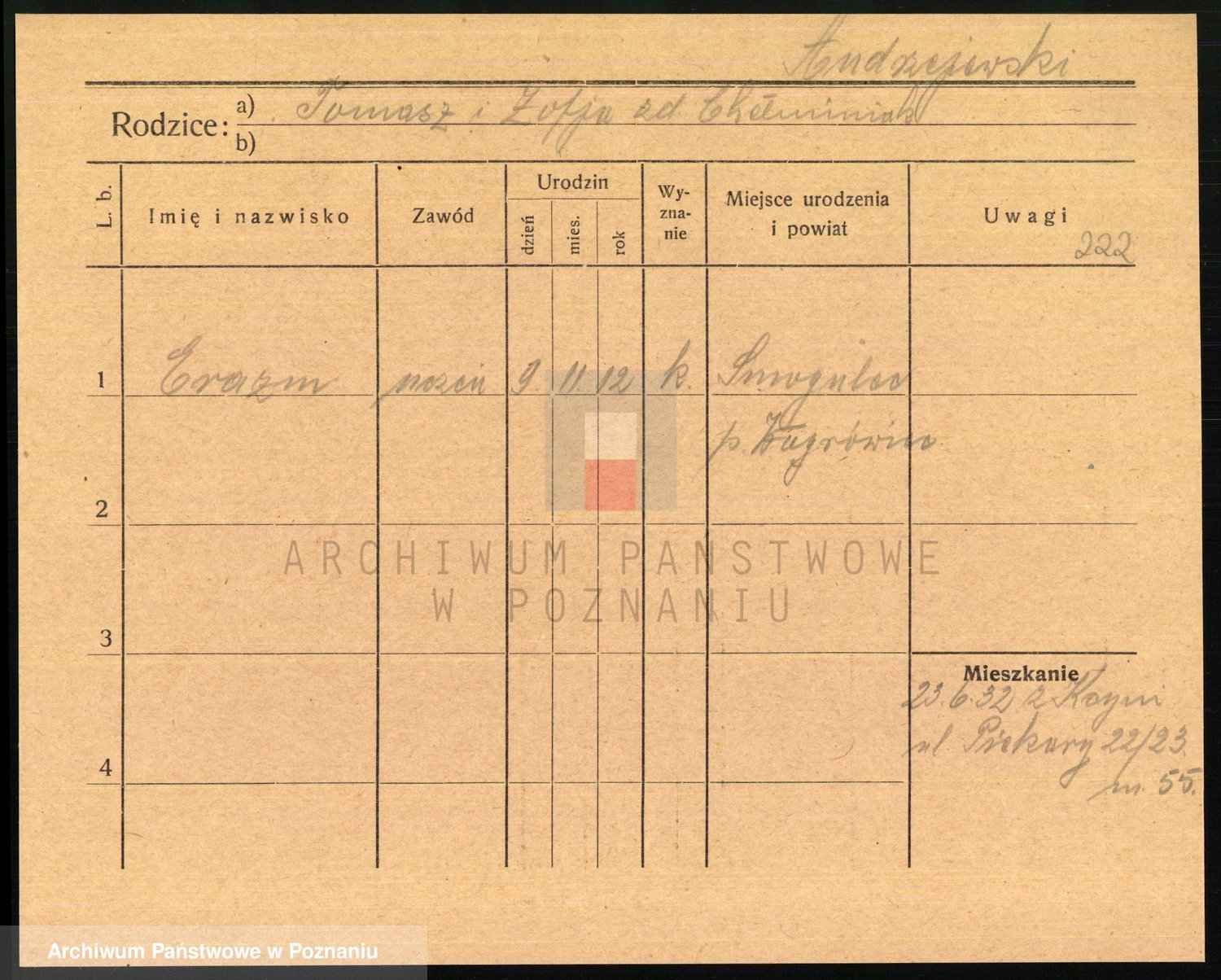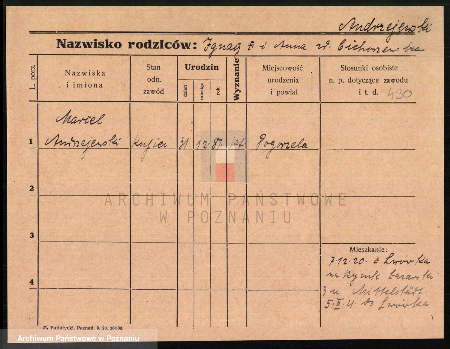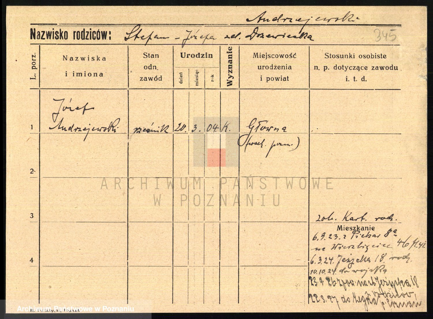 Podgląd karty osobowej dostępny jest po kliknięciu na nazwisko lub ikonkę karty. Można dokonywać powiększenia (ikony na górze) lub przechodzić między kolejnymi skanami (strzałki po bokach).