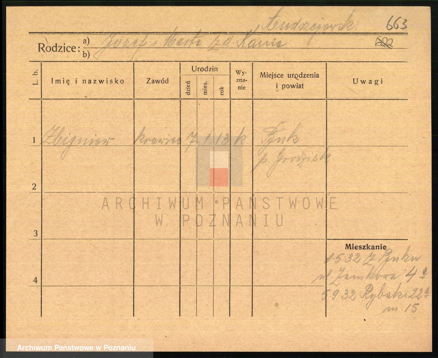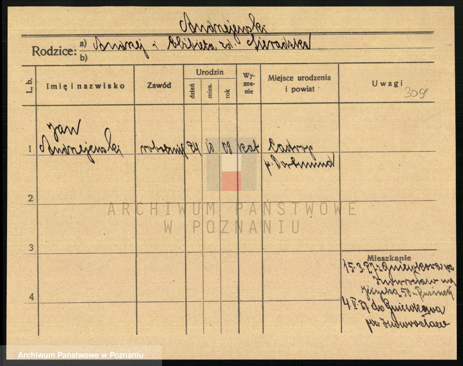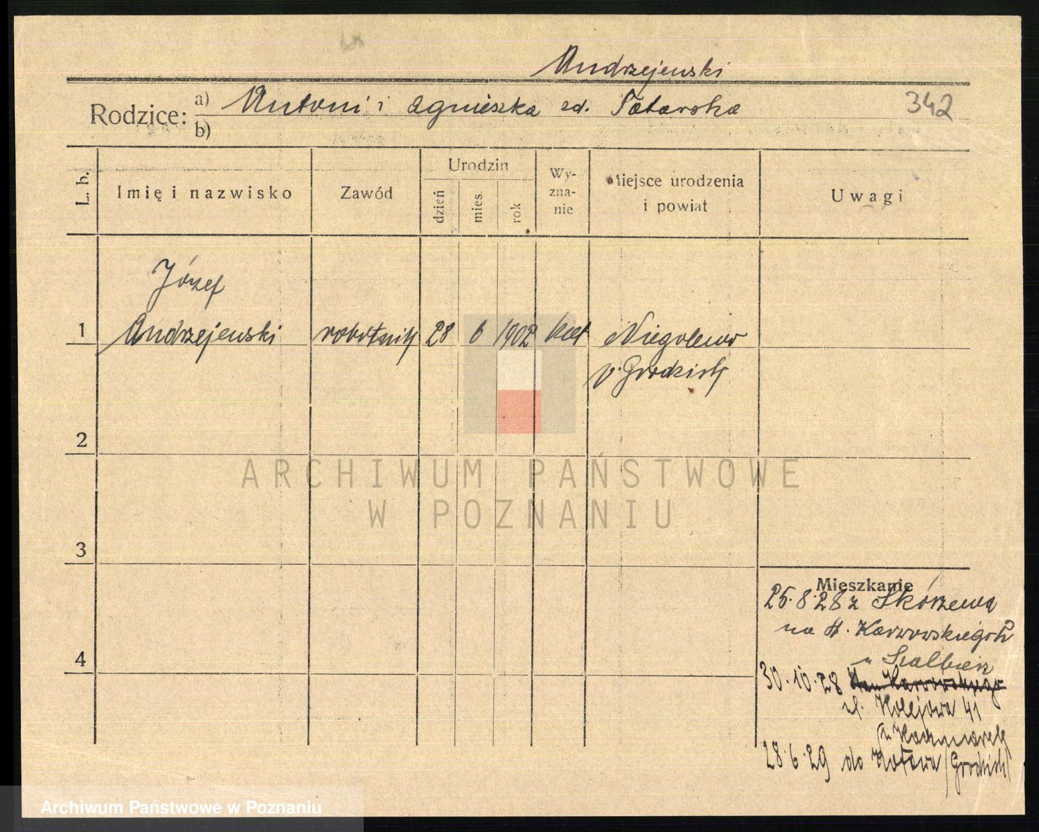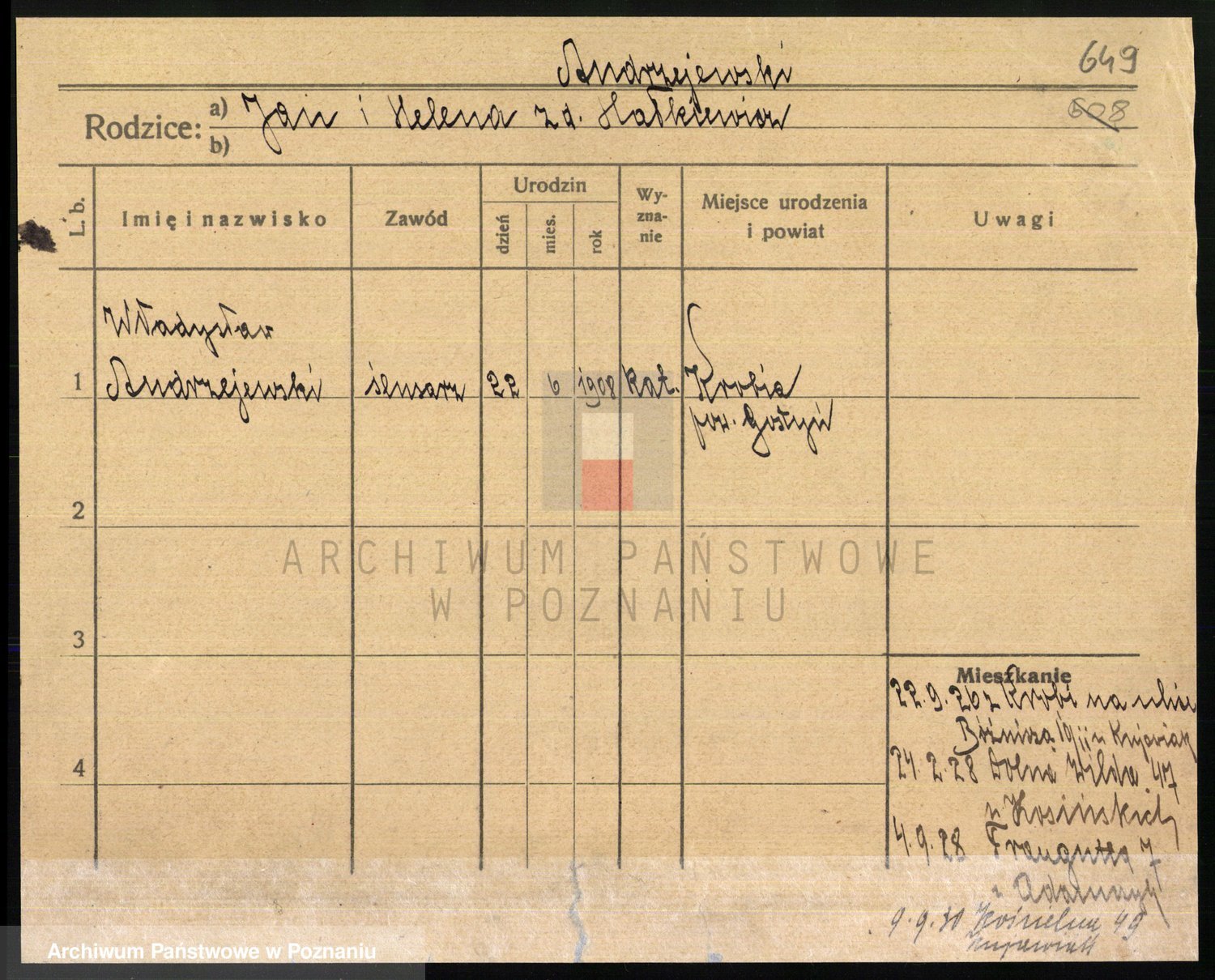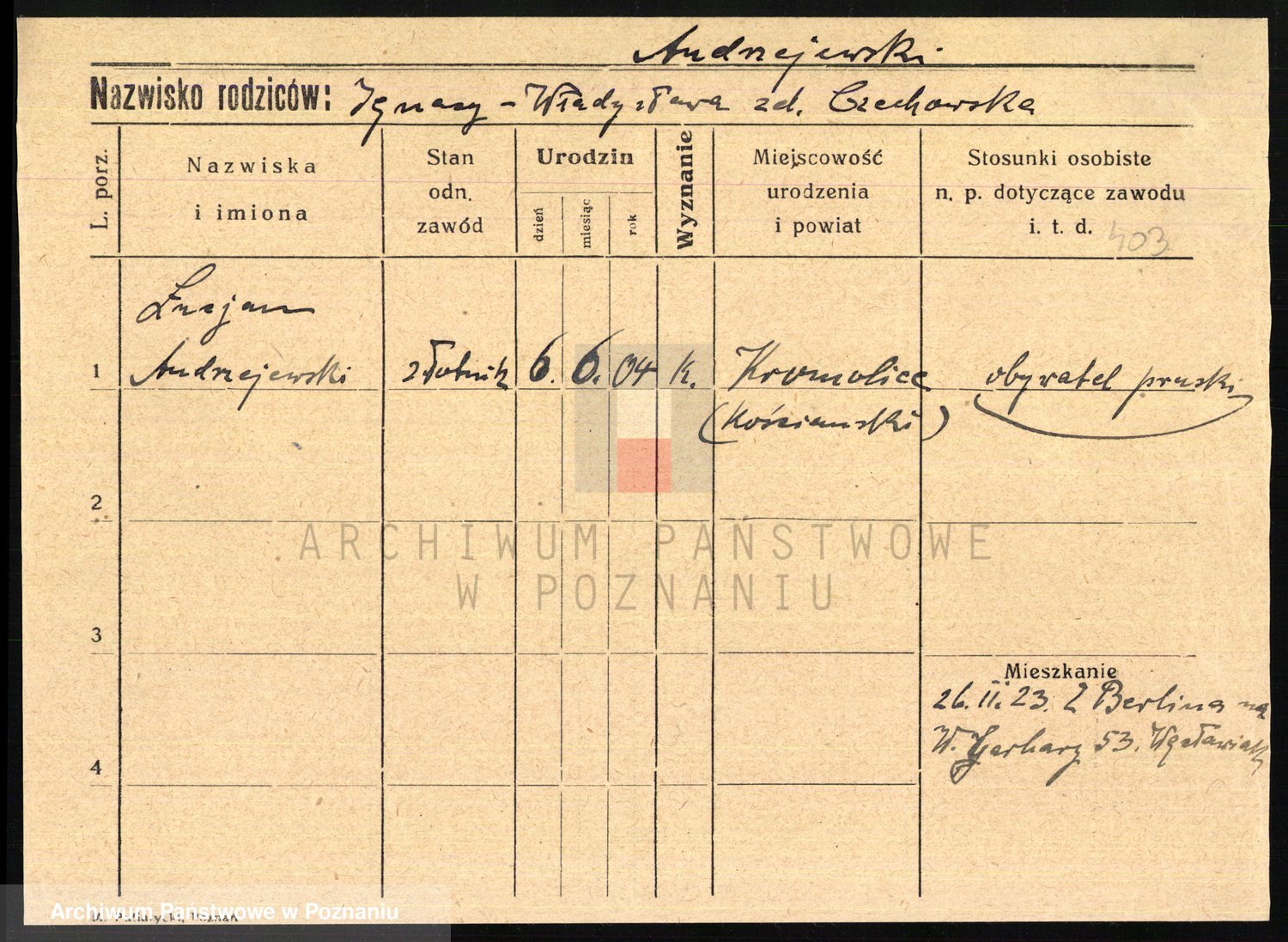 Podgląd karty osobowej dostępny jest po kliknięciu na nazwisko lub ikonkę karty. Można dokonywać powiększenia (ikony na górze) lub przechodzić między kolejnymi skanami (strzałki po bokach).