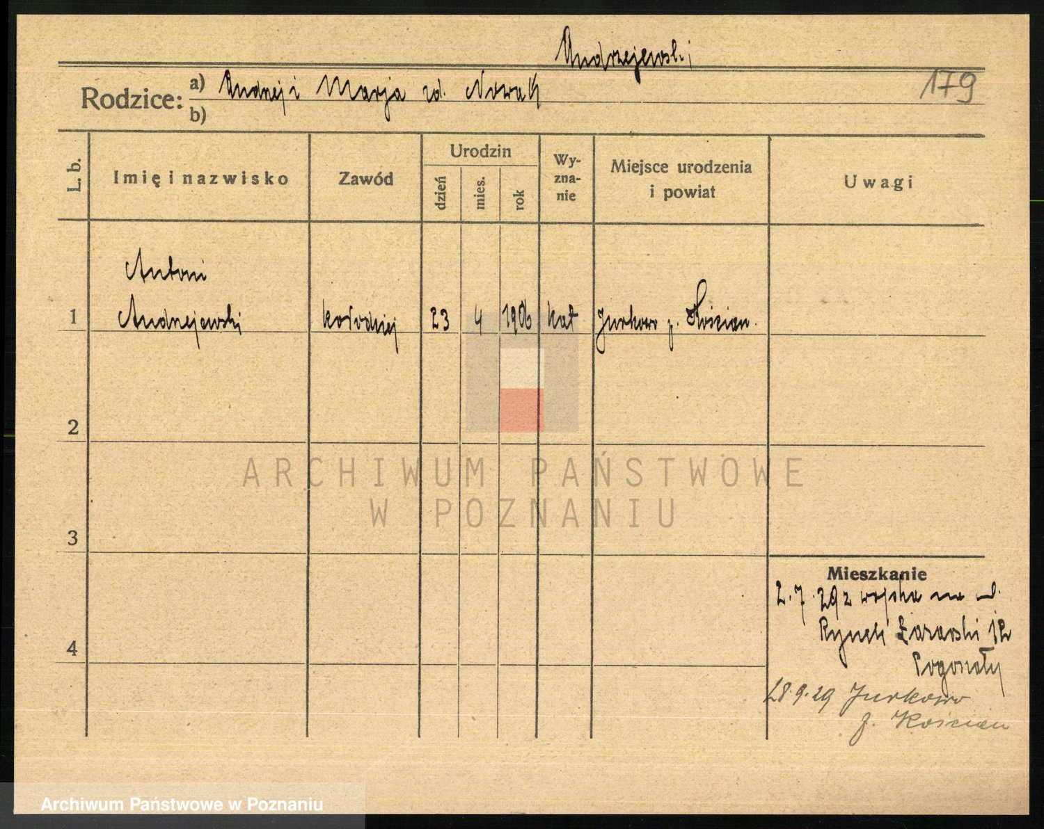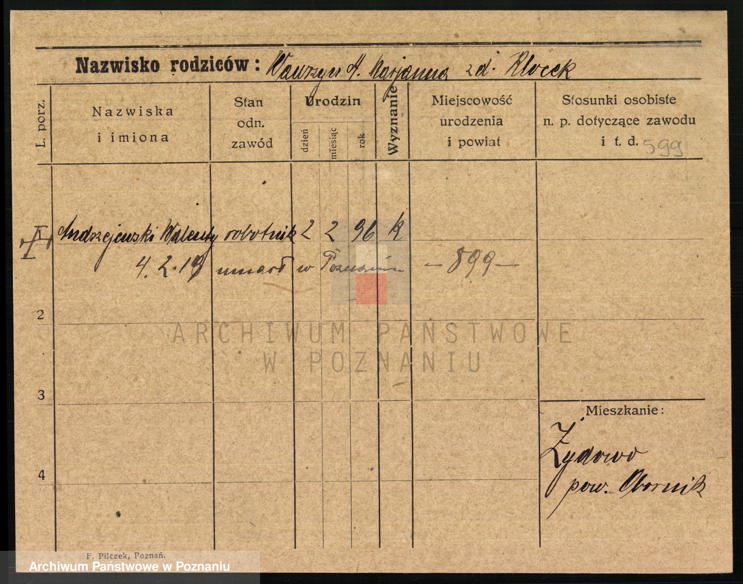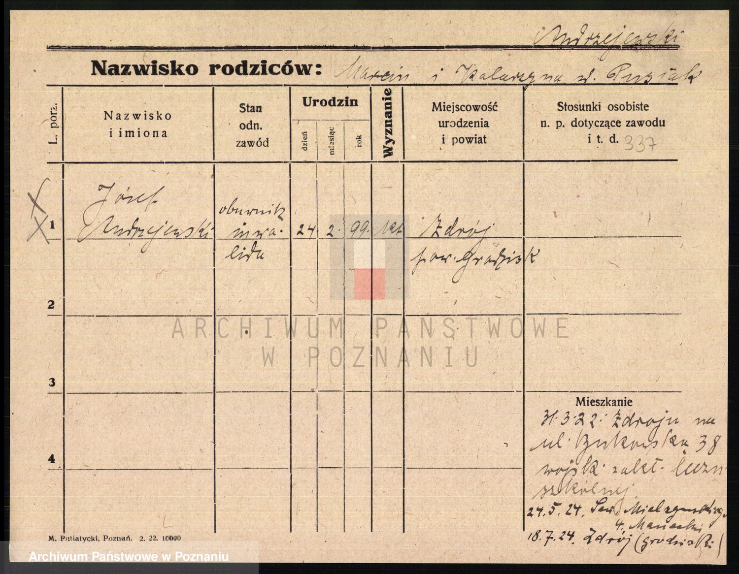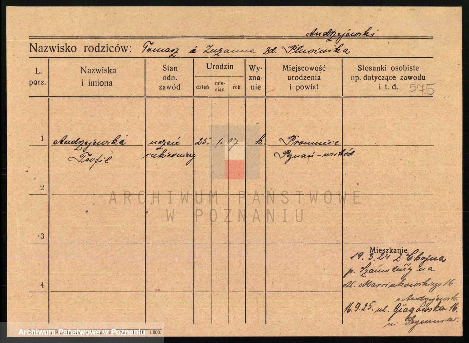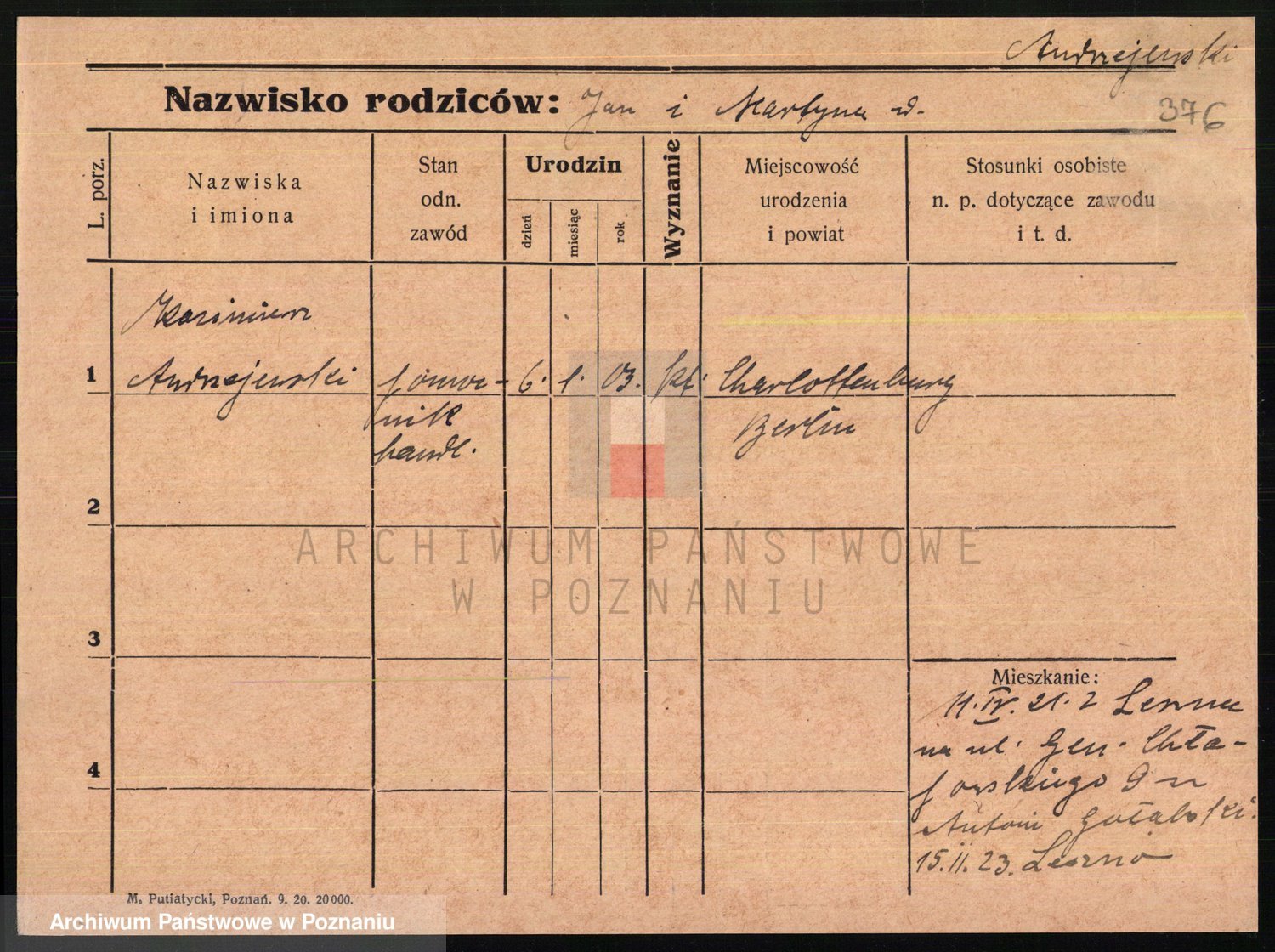 Podgląd karty osobowej dostępny jest po kliknięciu na nazwisko lub ikonkę karty. Można dokonywać powiększenia (ikony na górze) lub przechodzić między kolejnymi skanami (strzałki po bokach).