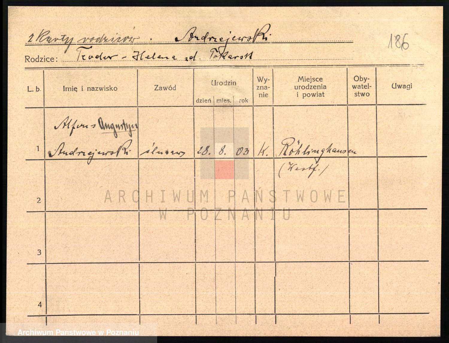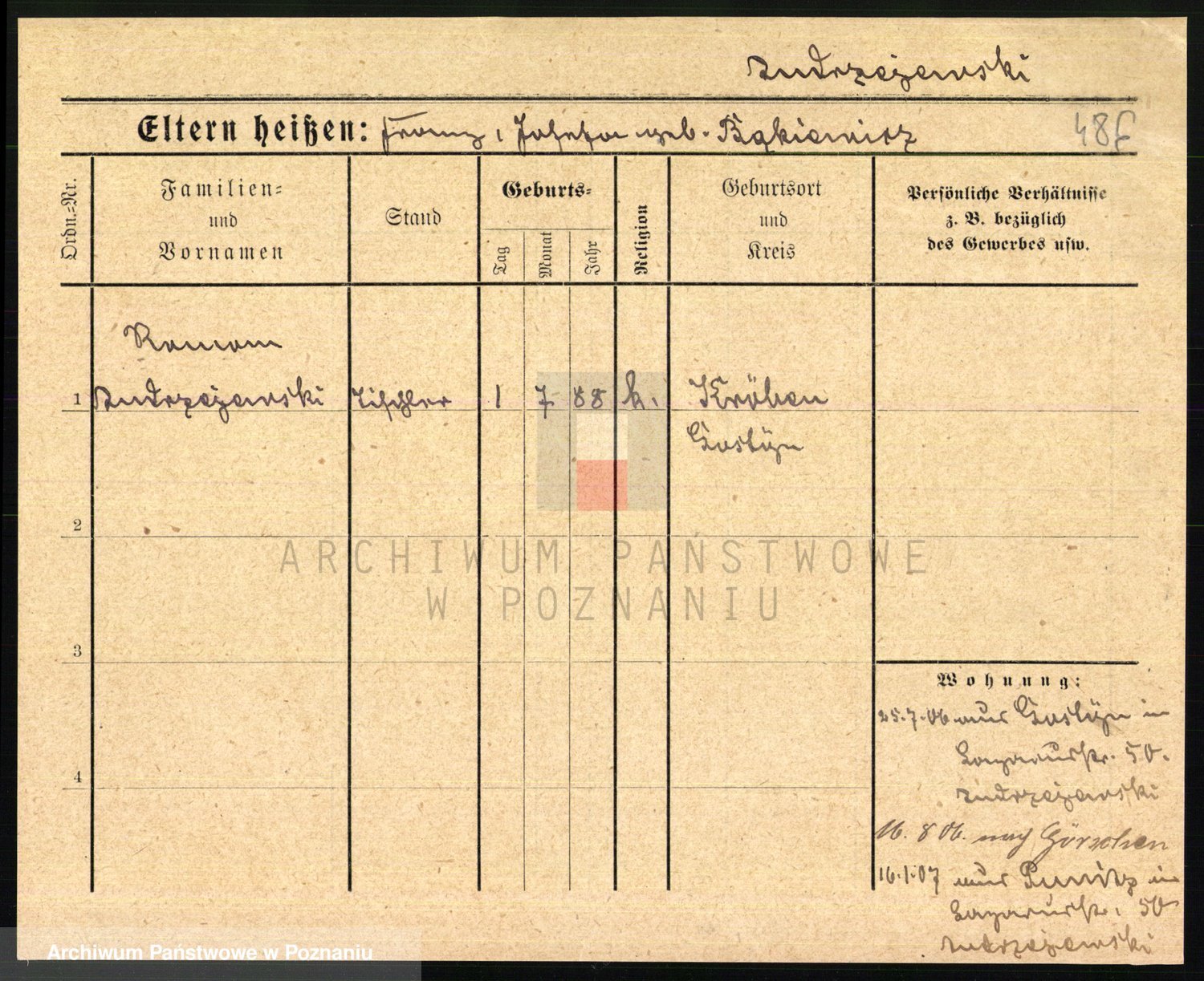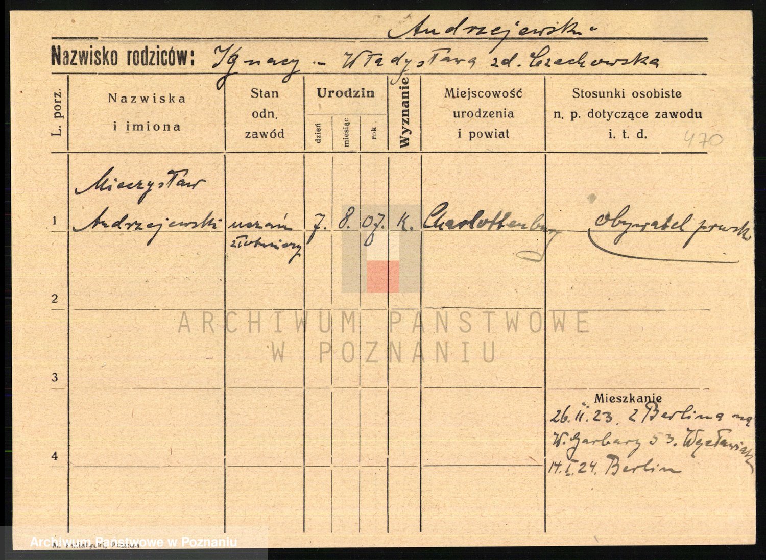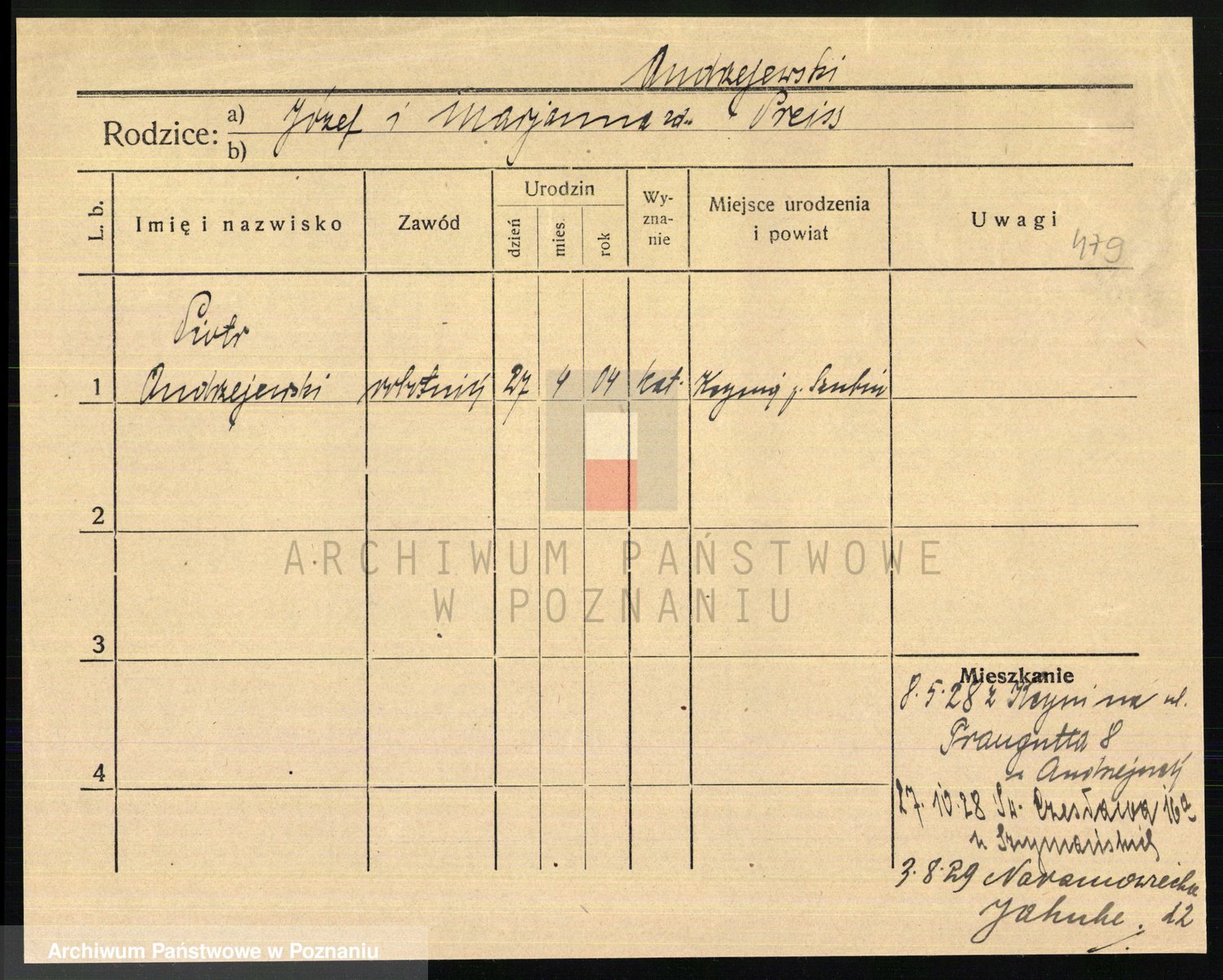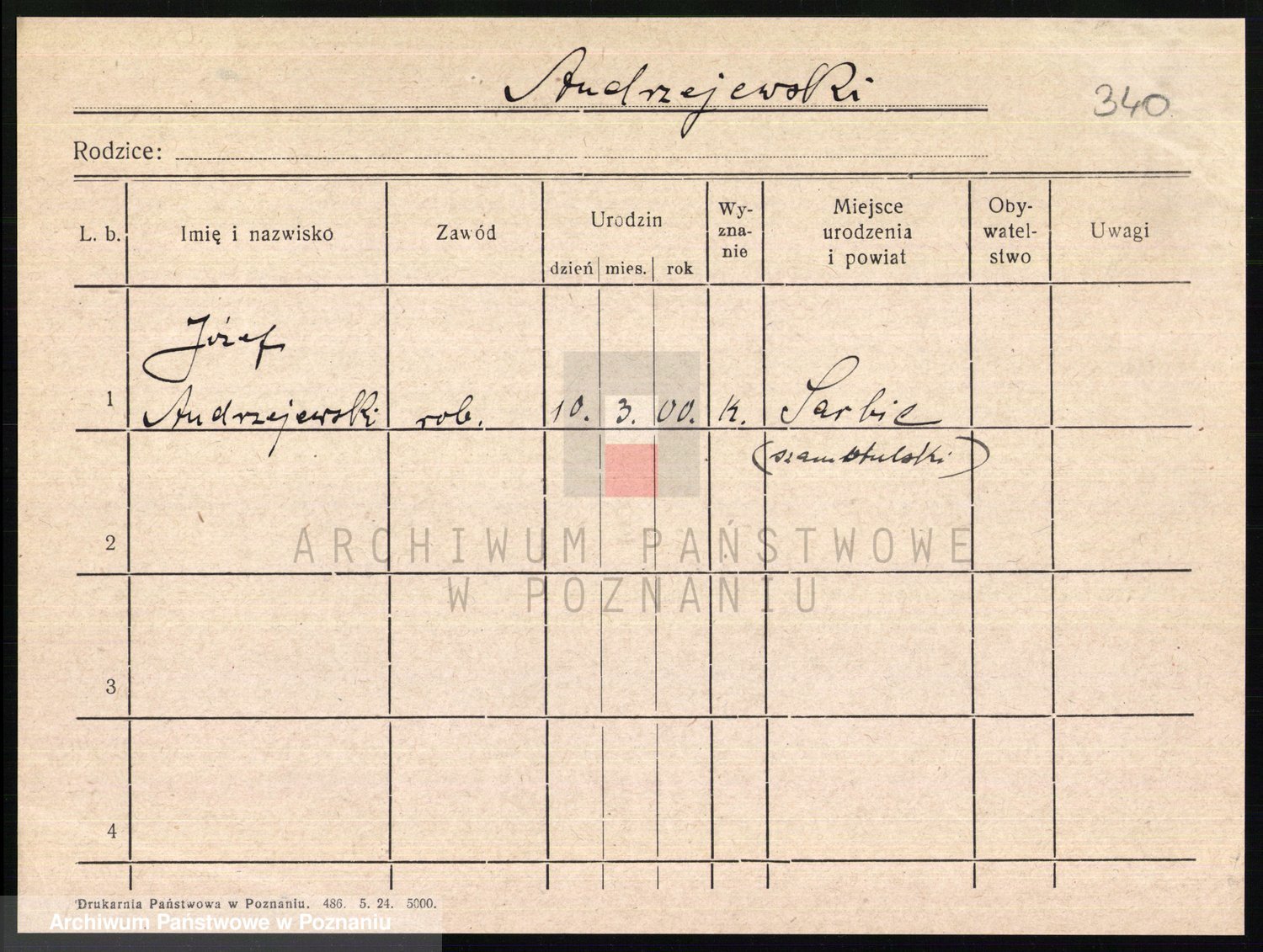 Podgląd karty osobowej dostępny jest po kliknięciu na nazwisko lub ikonkę karty. Można dokonywać powiększenia (ikony na górze) lub przechodzić między kolejnymi skanami (strzałki po bokach).