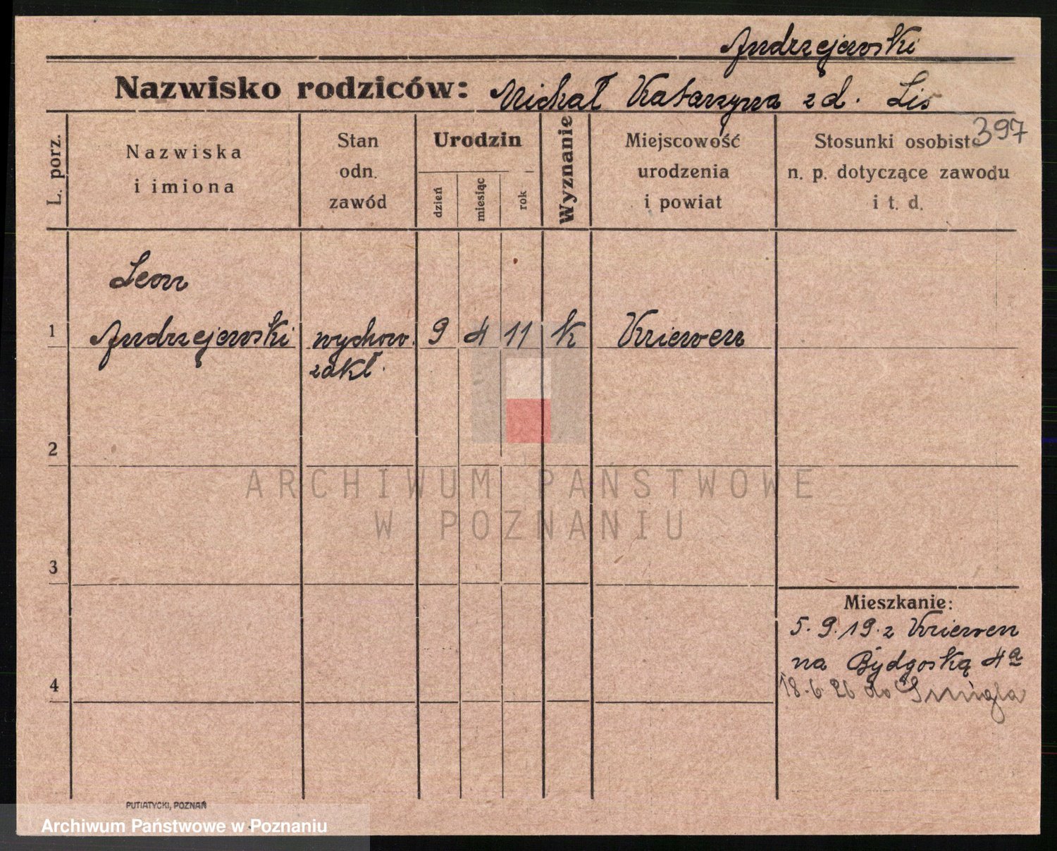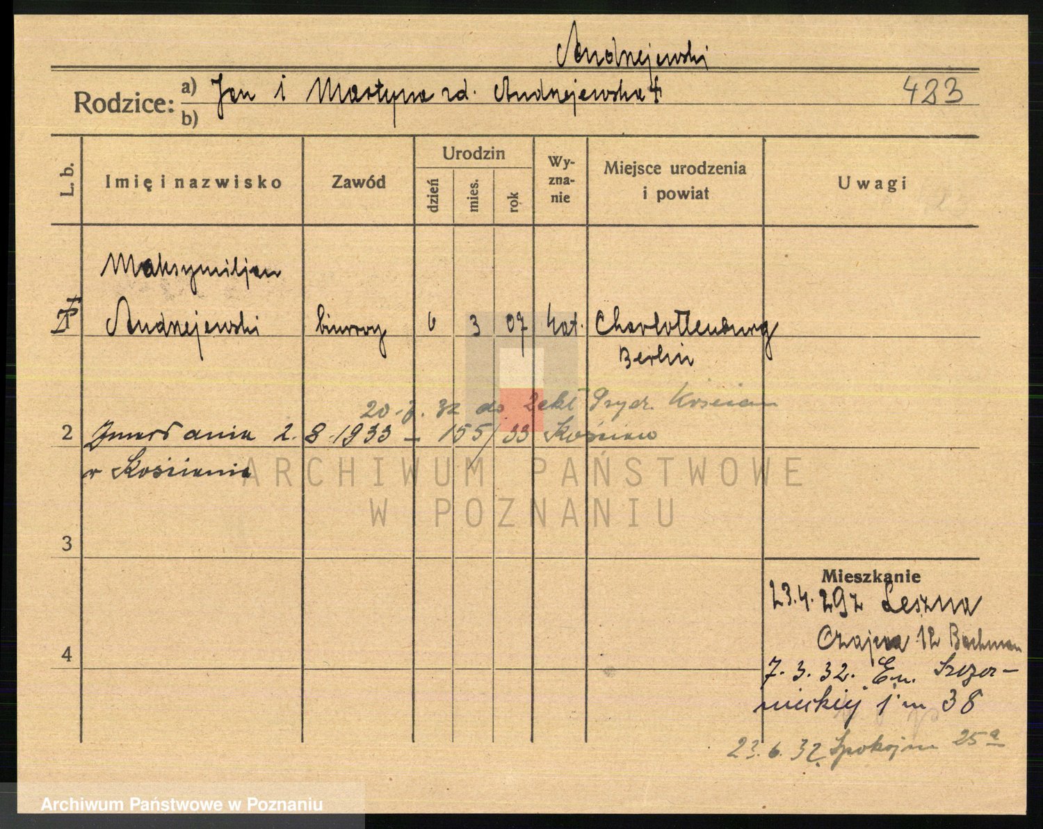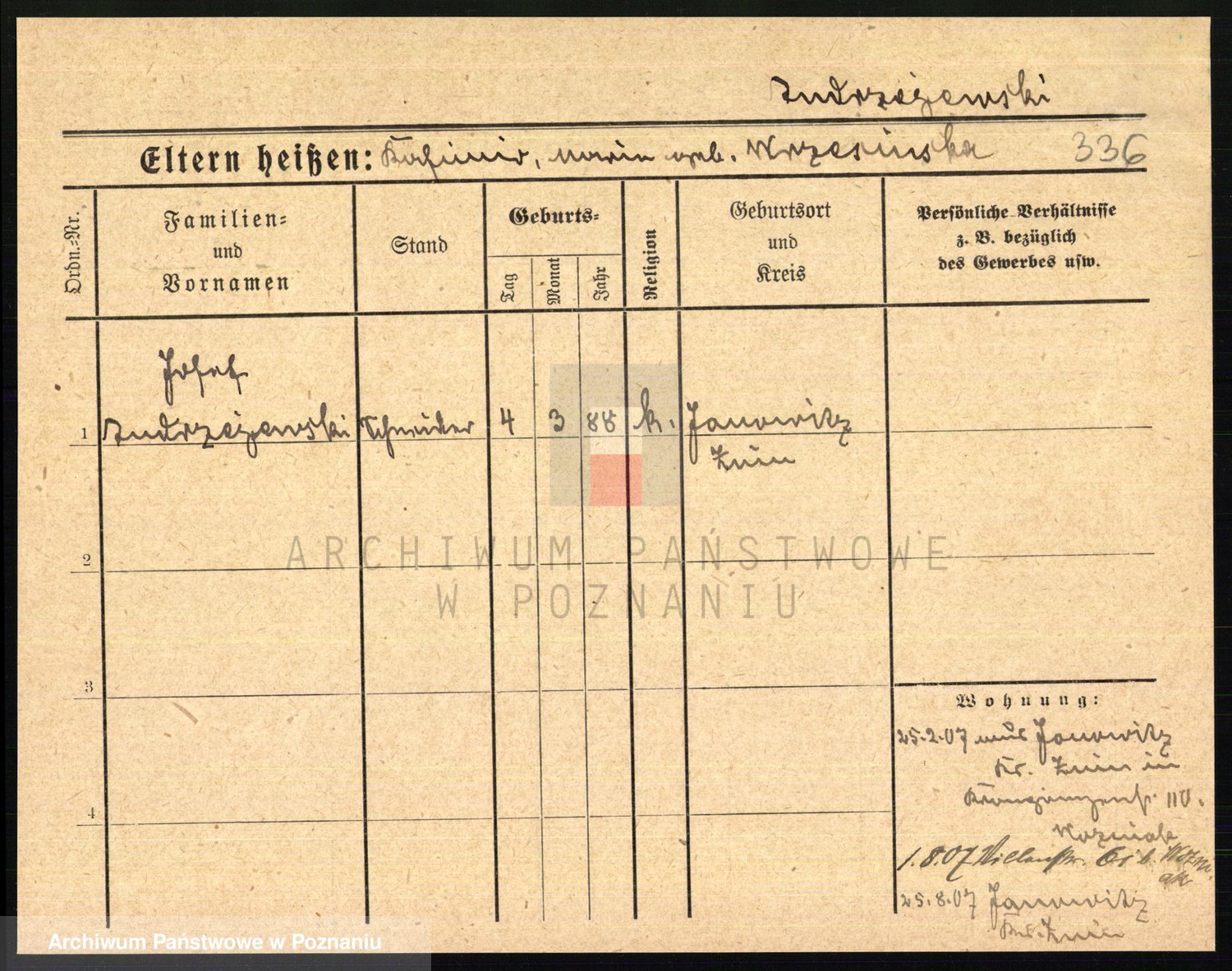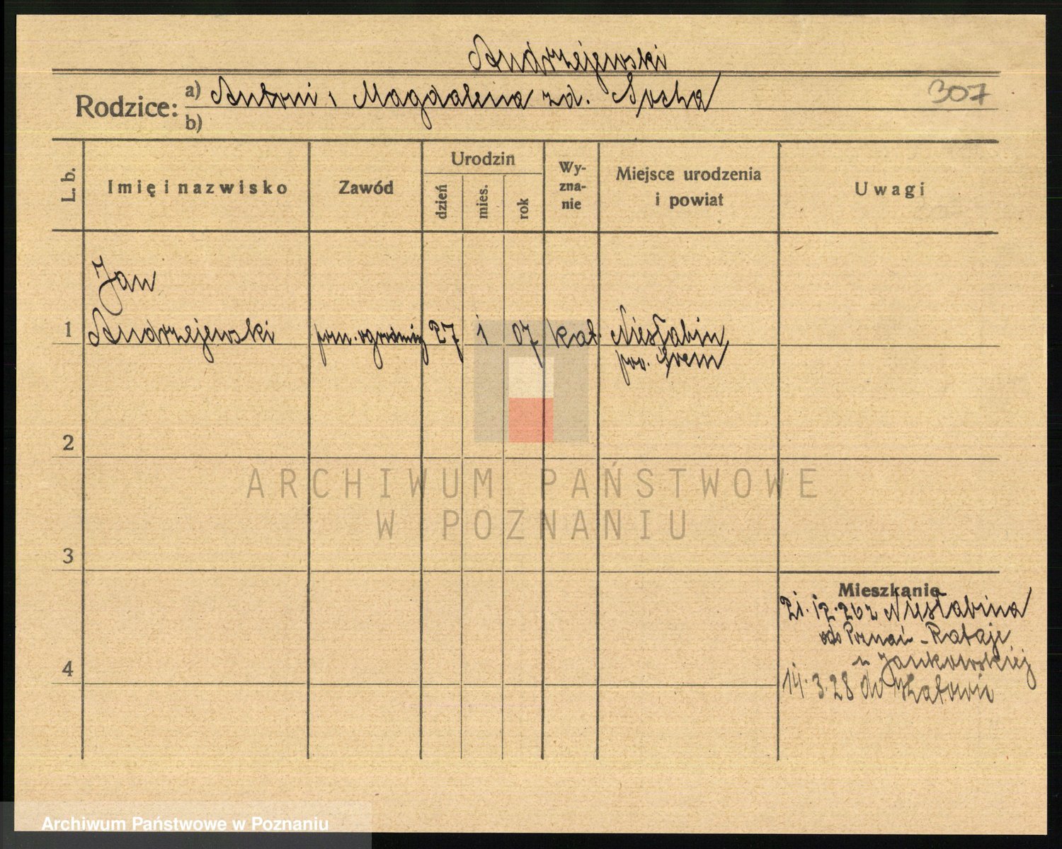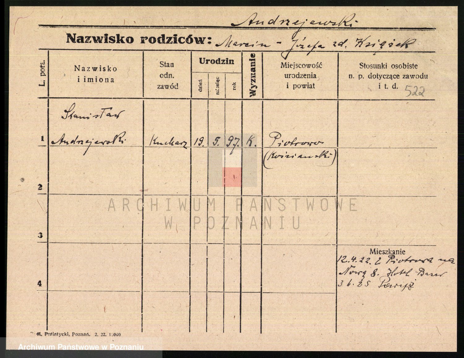 Podgląd karty osobowej dostępny jest po kliknięciu na nazwisko lub ikonkę karty. Można dokonywać powiększenia (ikony na górze) lub przechodzić między kolejnymi skanami (strzałki po bokach).