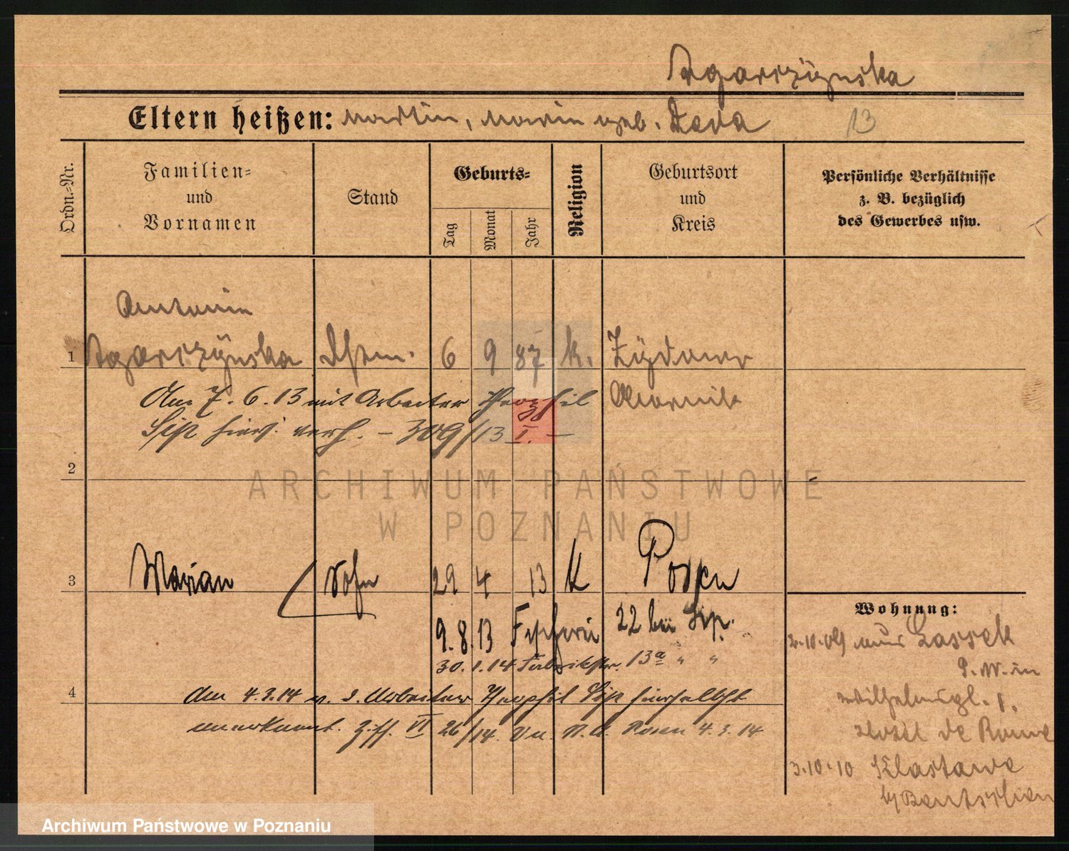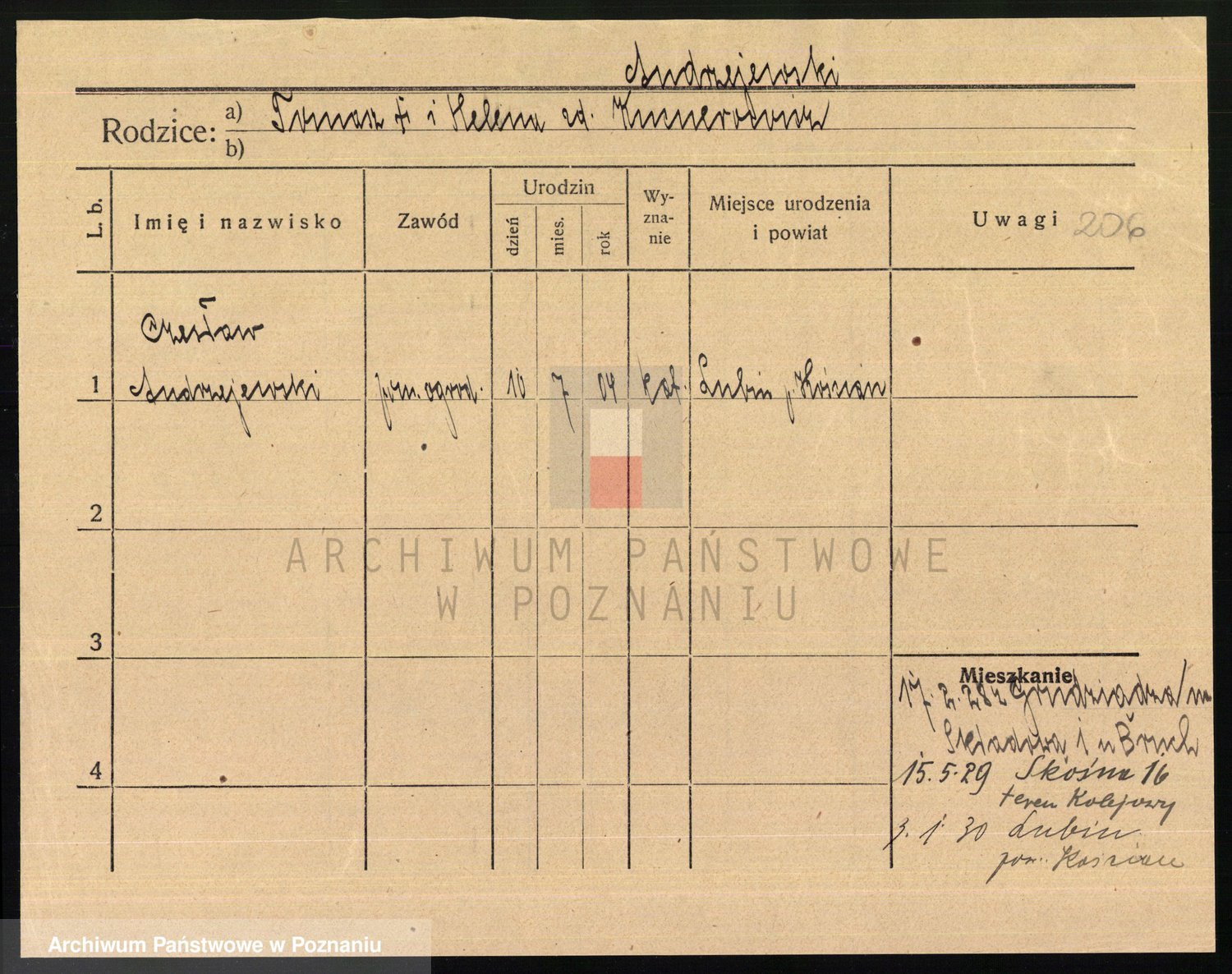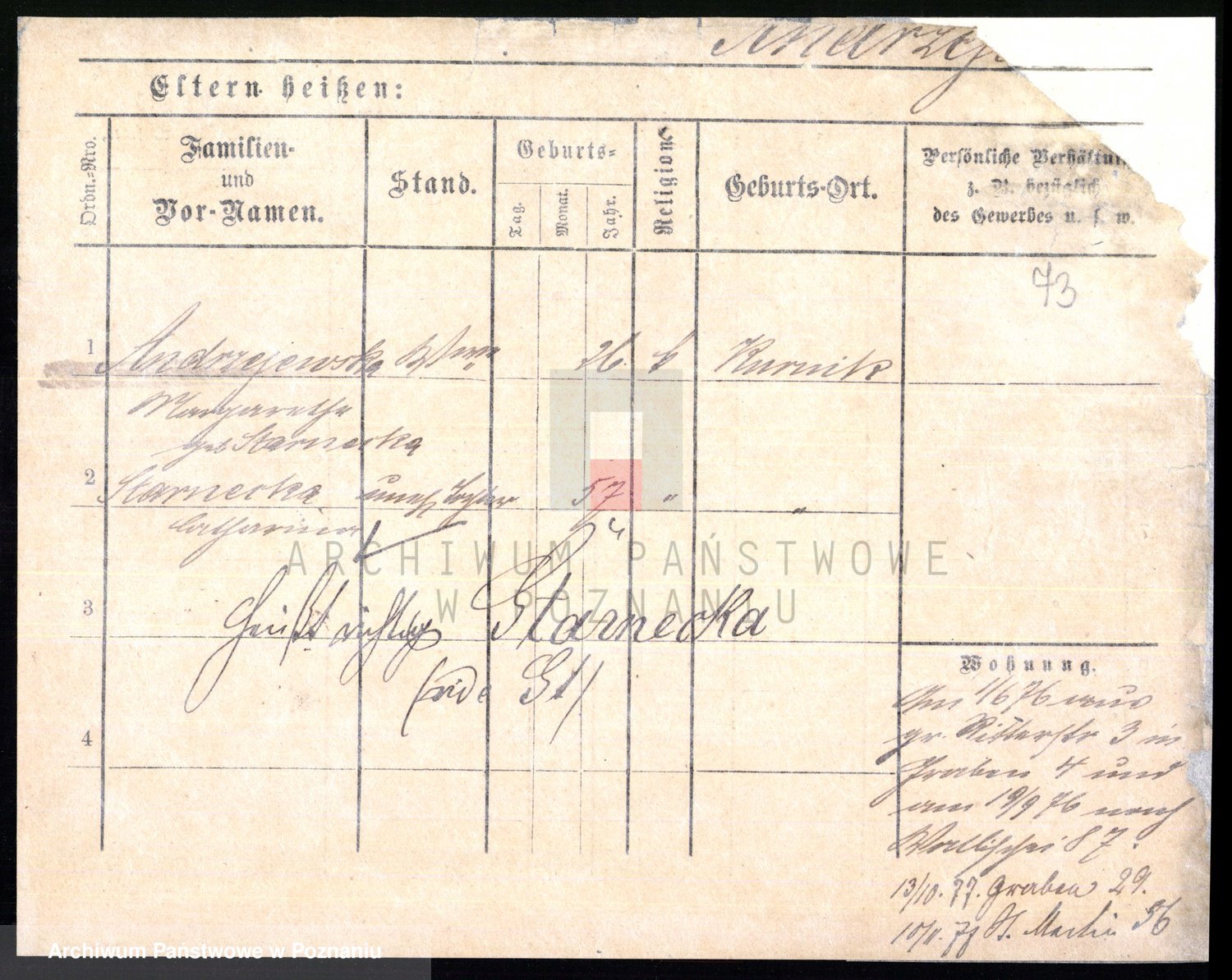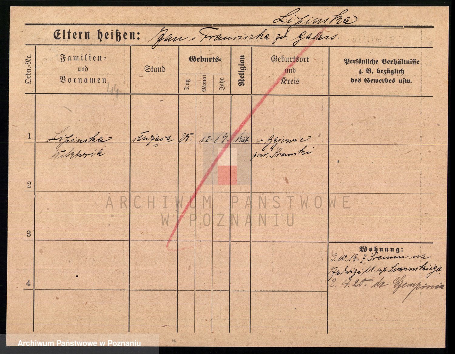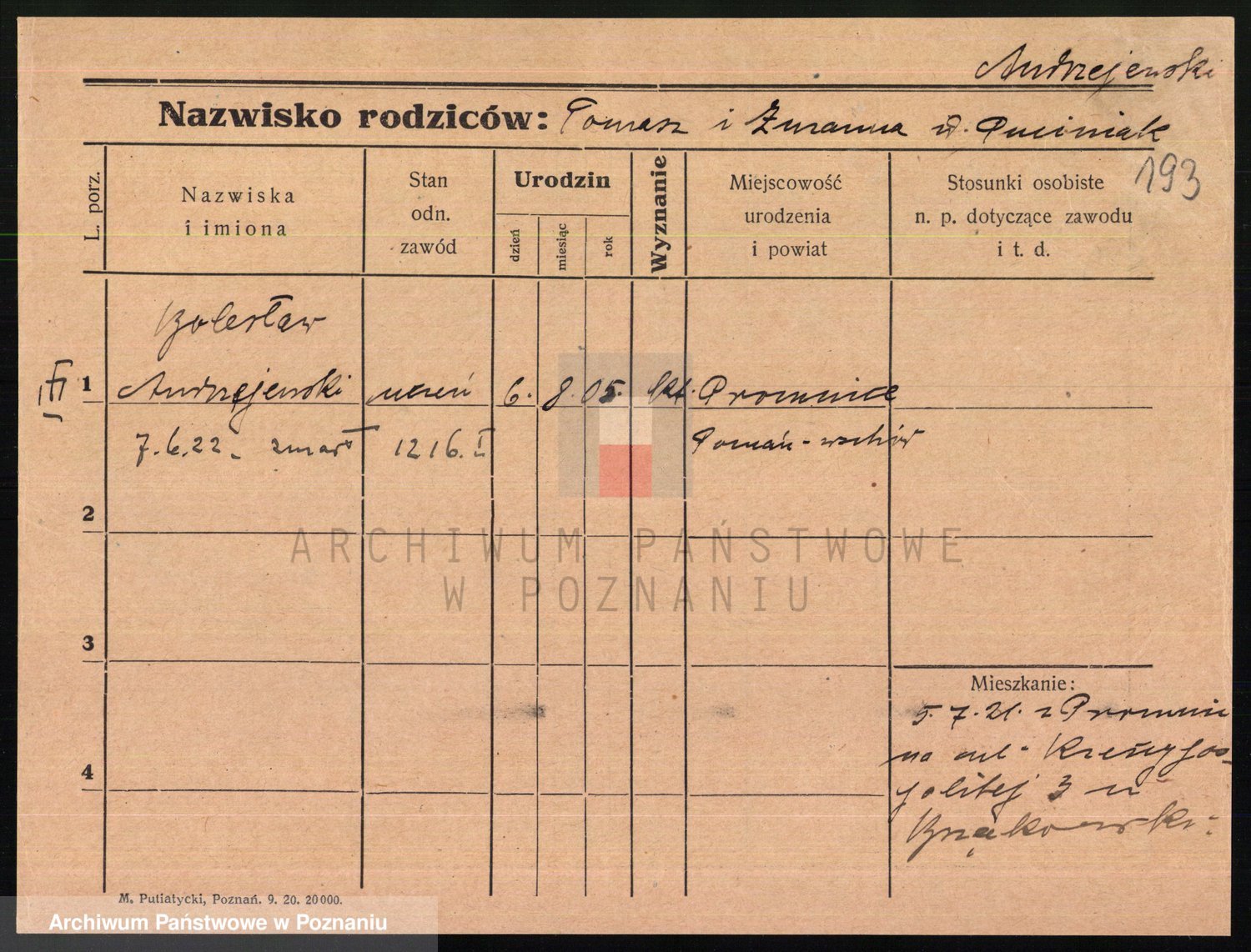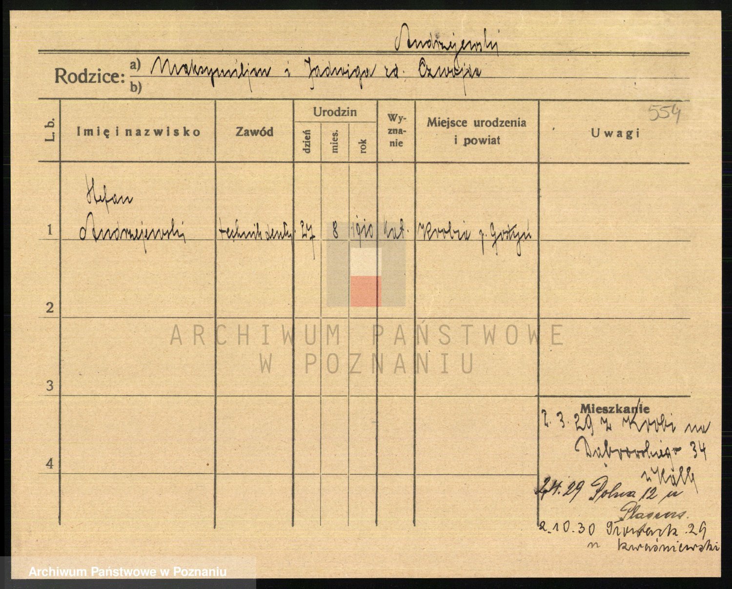 Podgląd karty osobowej dostępny jest po kliknięciu na nazwisko lub ikonkę karty. Można dokonywać powiększenia (ikony na górze) lub przechodzić między kolejnymi skanami (strzałki po bokach).