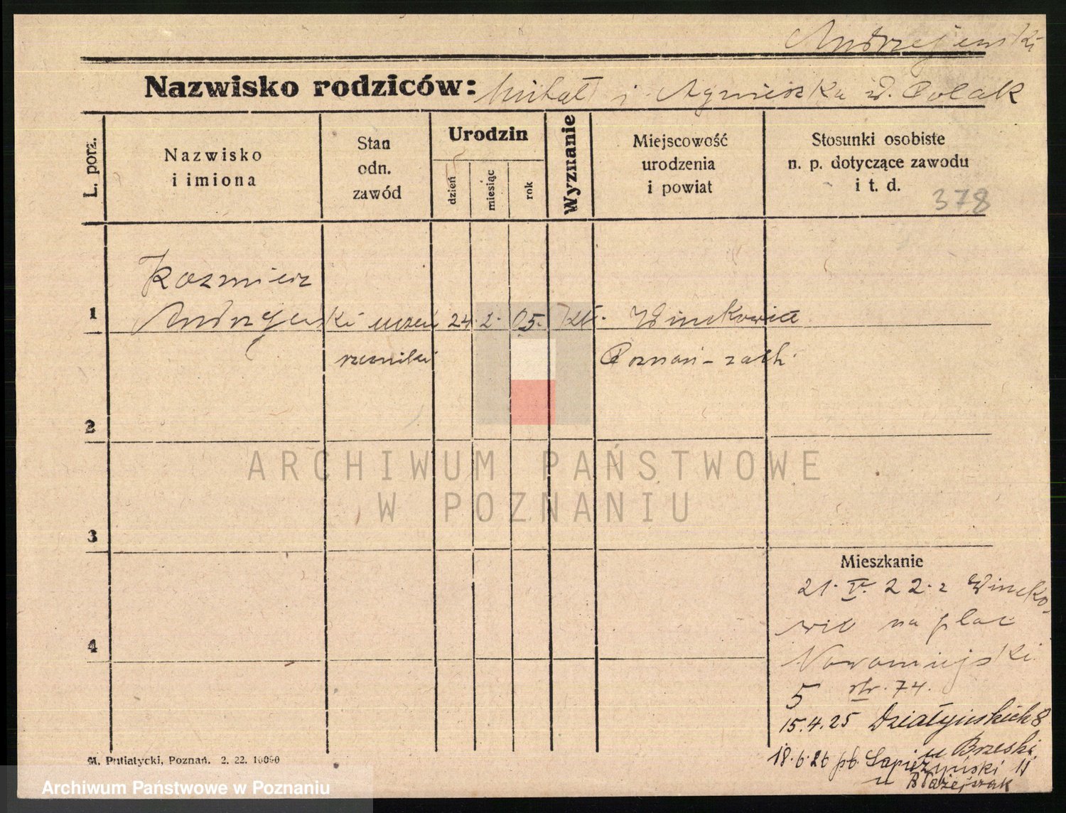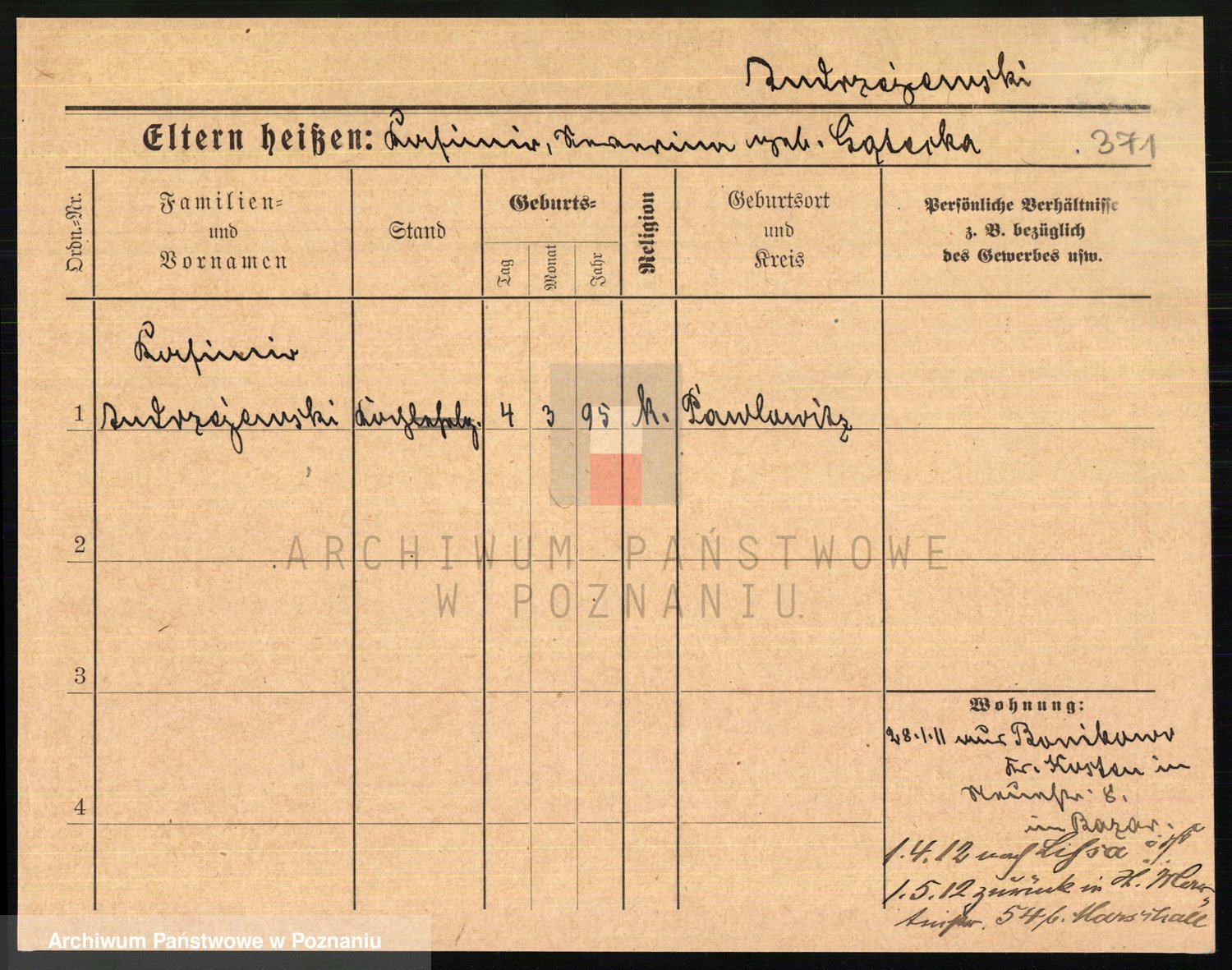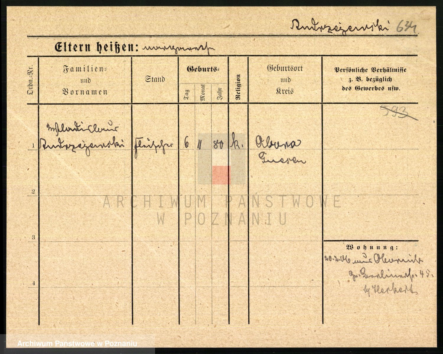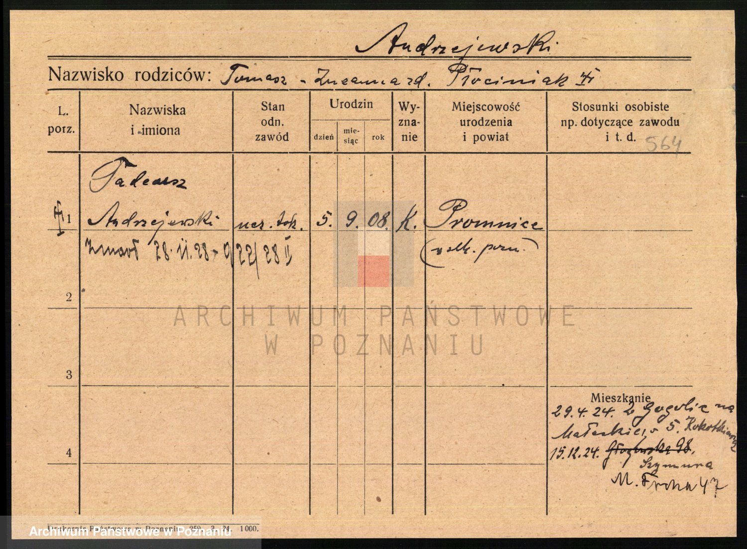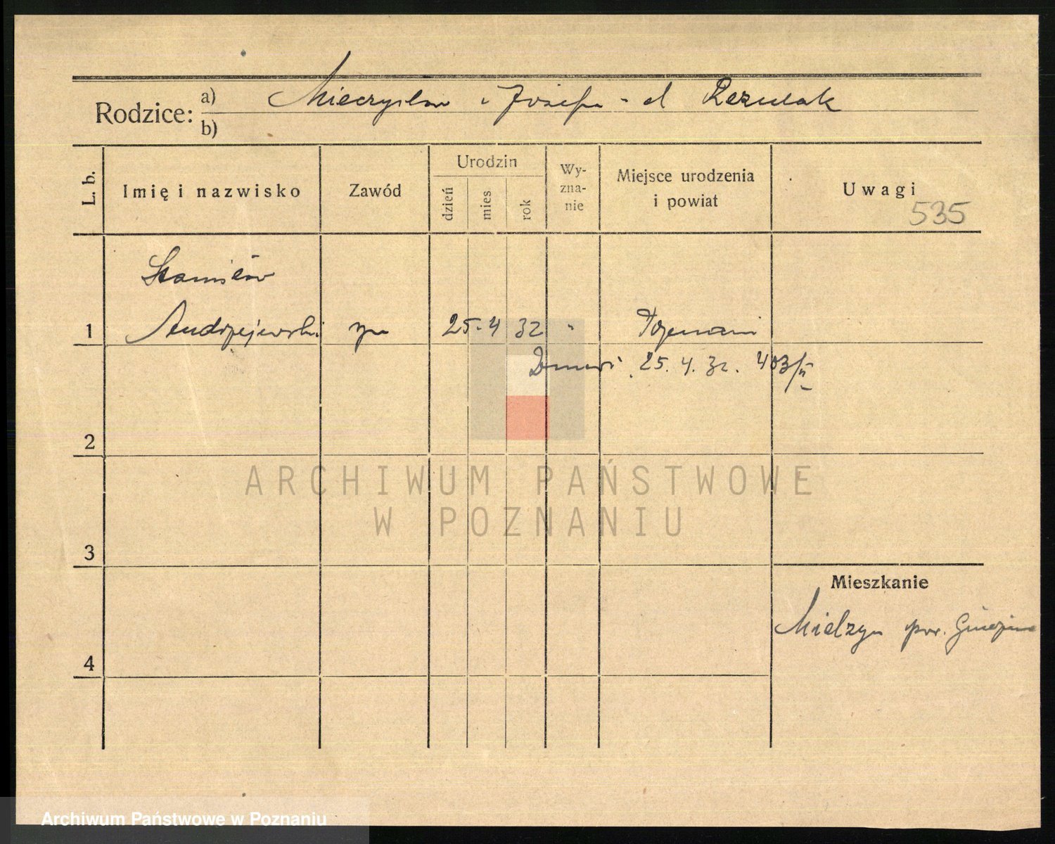 Podgląd karty osobowej dostępny jest po kliknięciu na nazwisko lub ikonkę karty. Można dokonywać powiększenia (ikony na górze) lub przechodzić między kolejnymi skanami (strzałki po bokach).