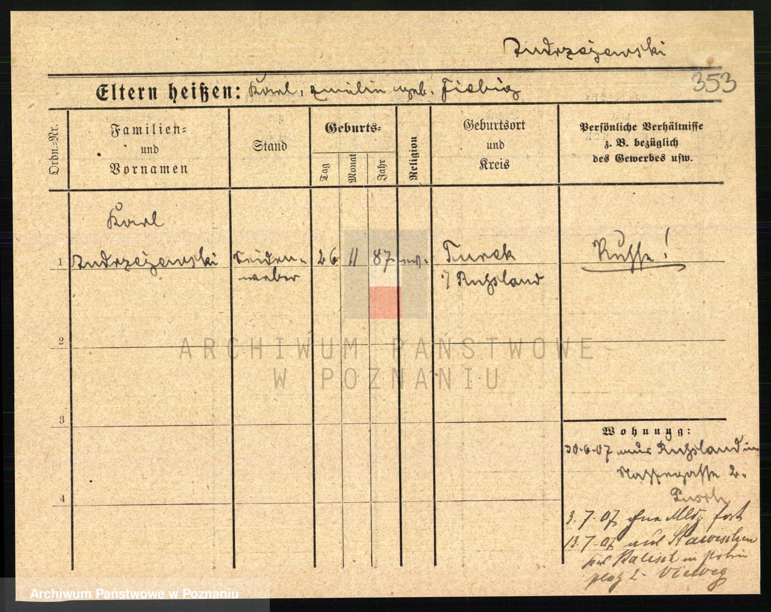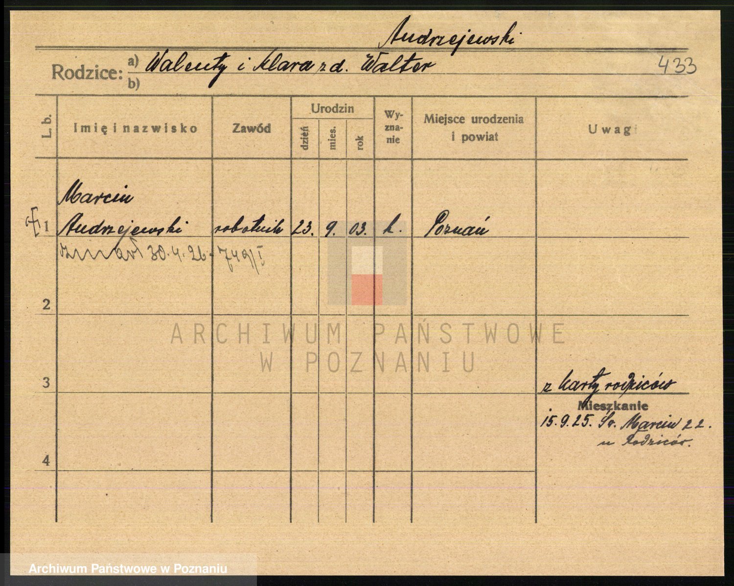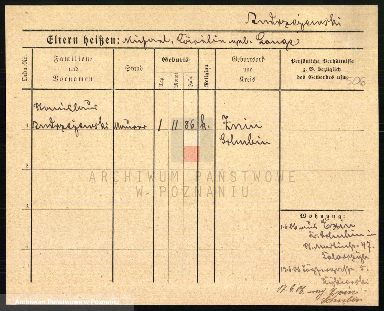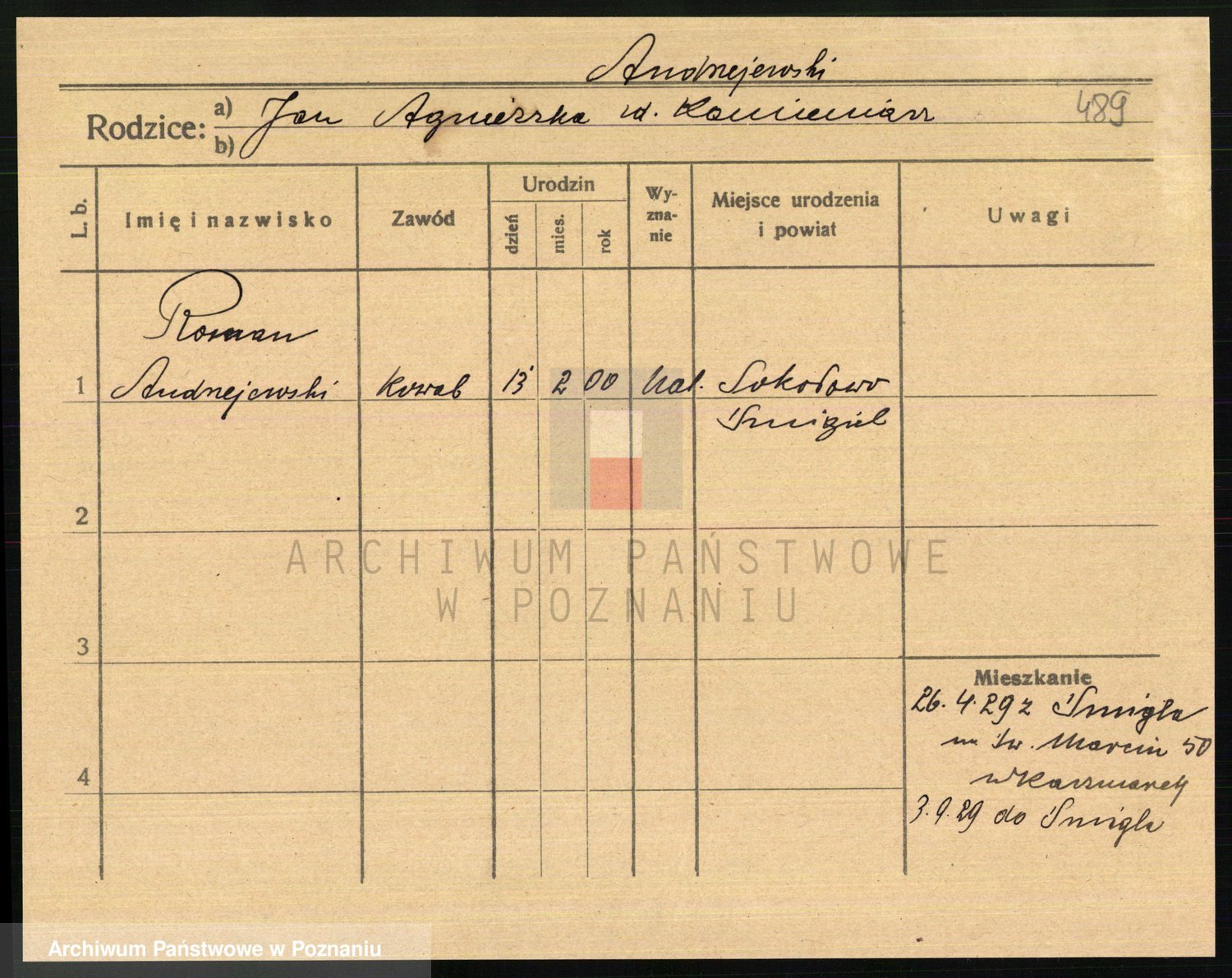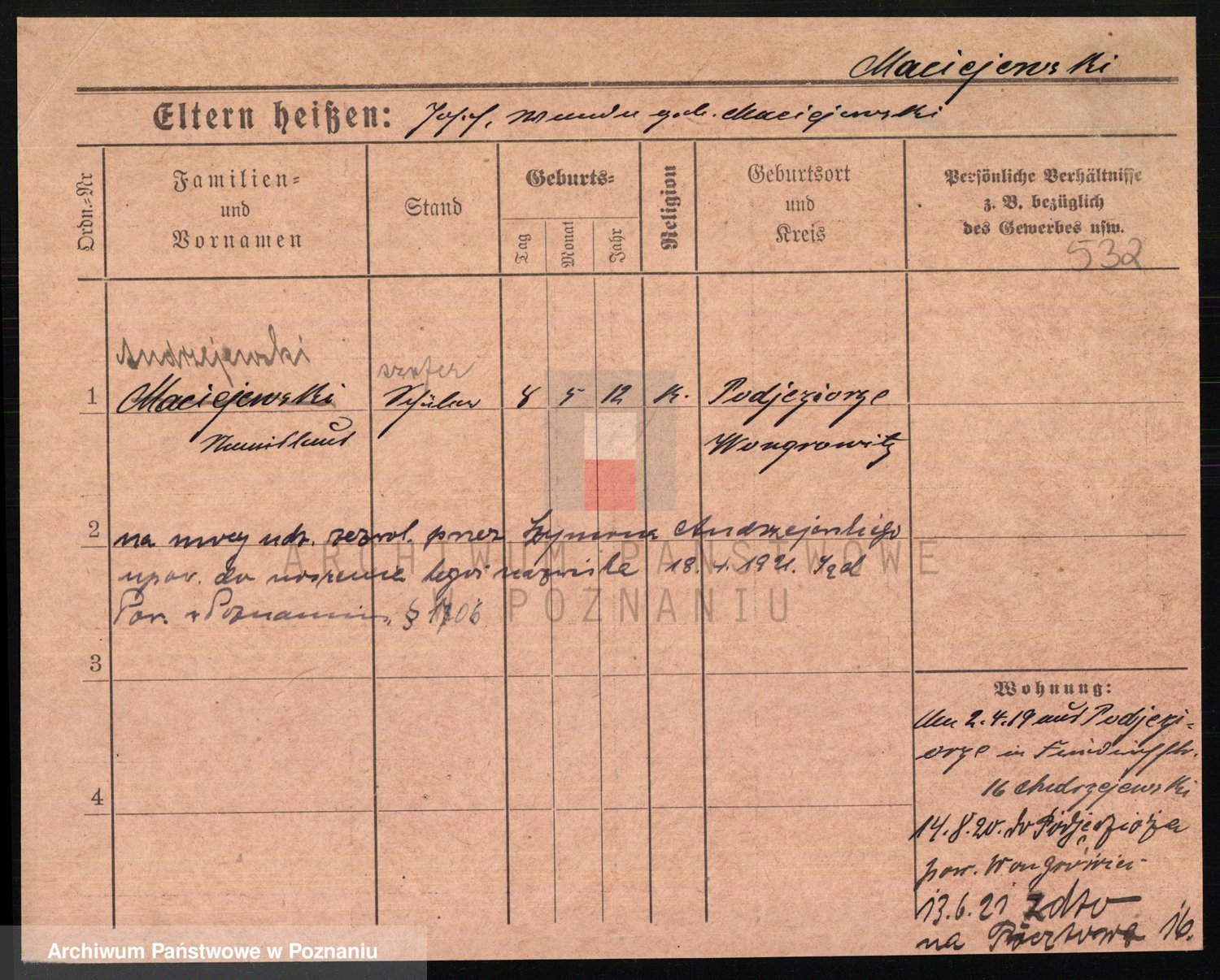 Podgląd karty osobowej dostępny jest po kliknięciu na nazwisko lub ikonkę karty. Można dokonywać powiększenia (ikony na górze) lub przechodzić między kolejnymi skanami (strzałki po bokach).