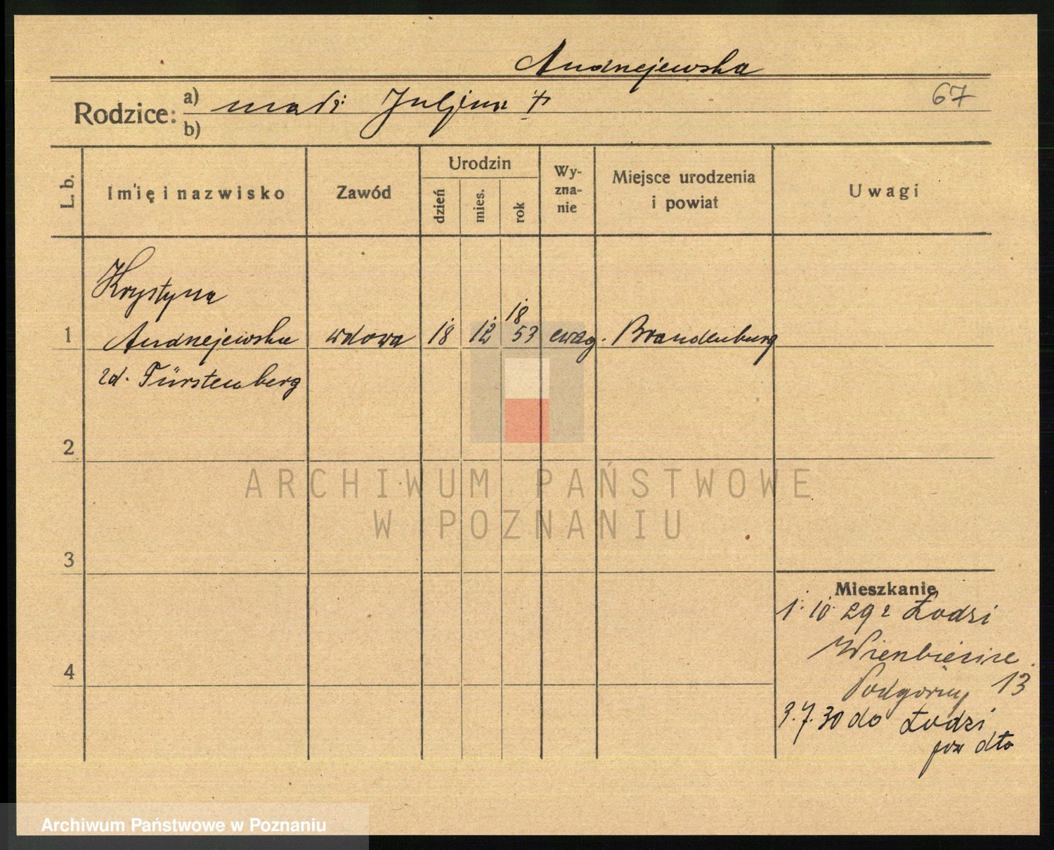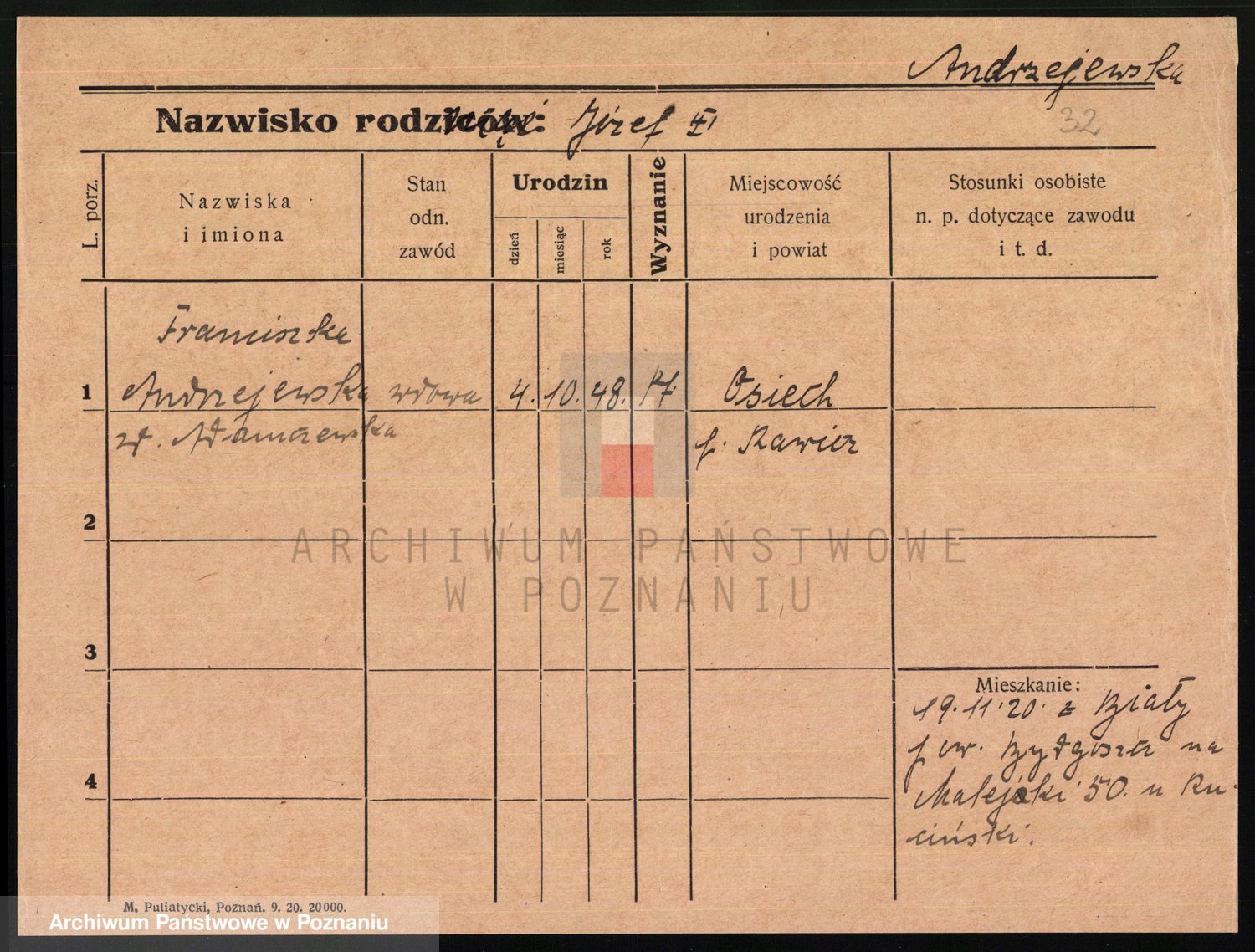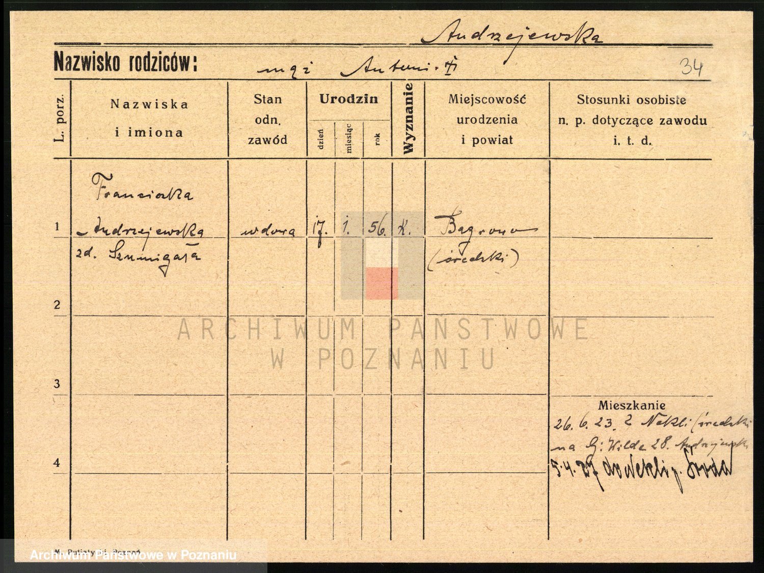 Andrzejewska z d. Napieralska, Franziska