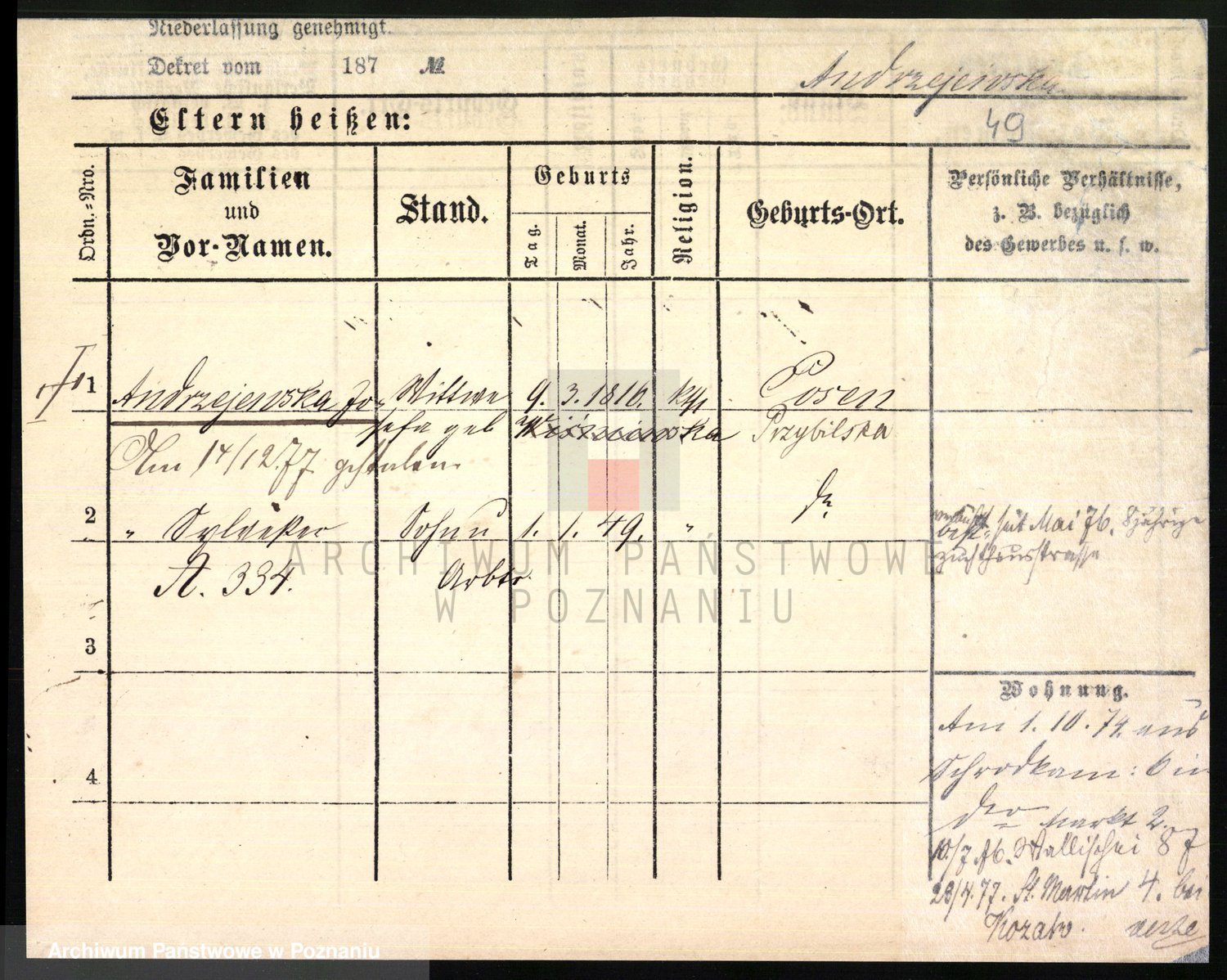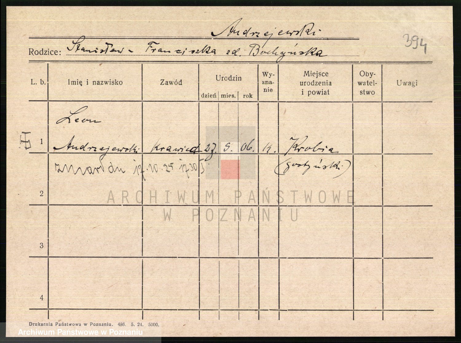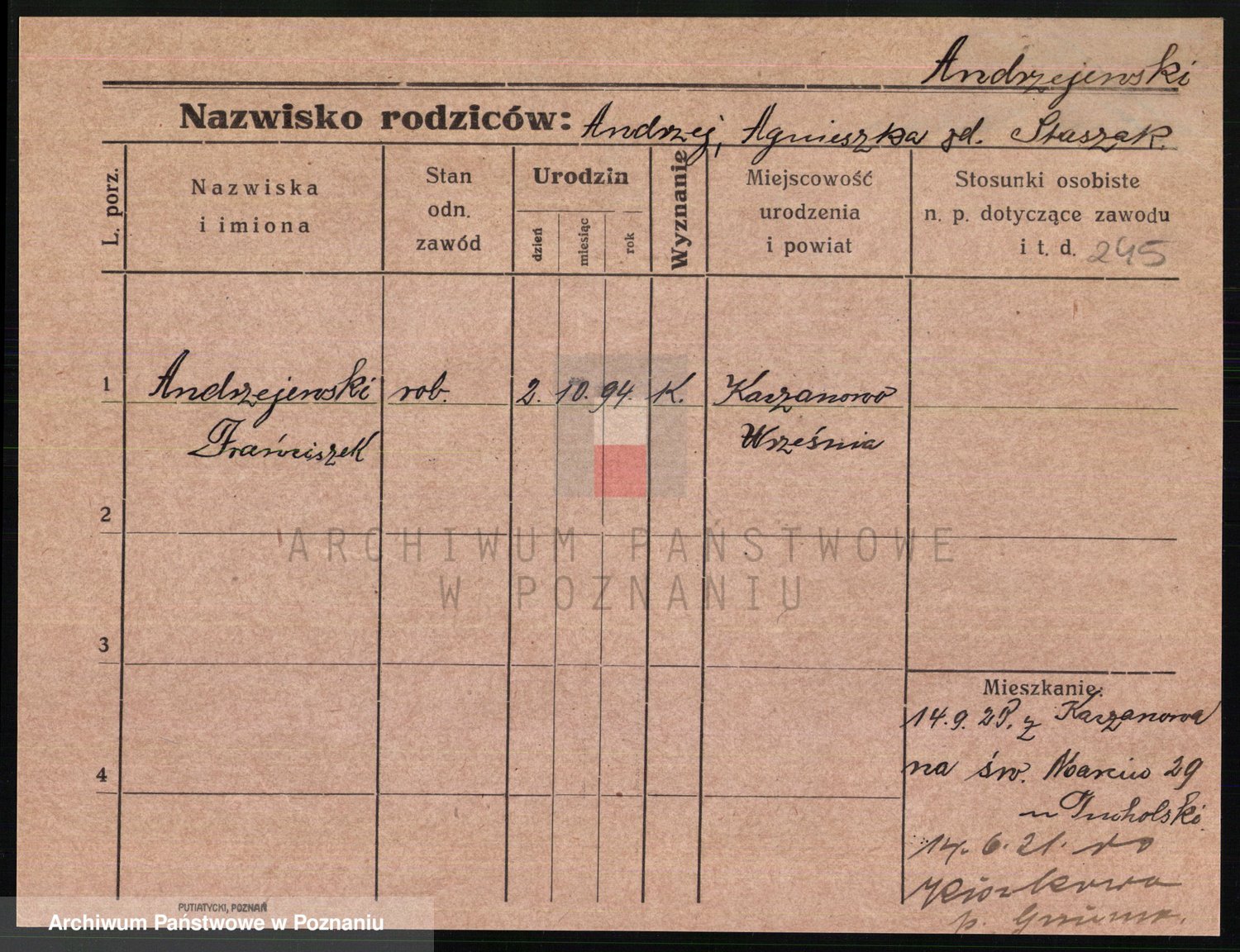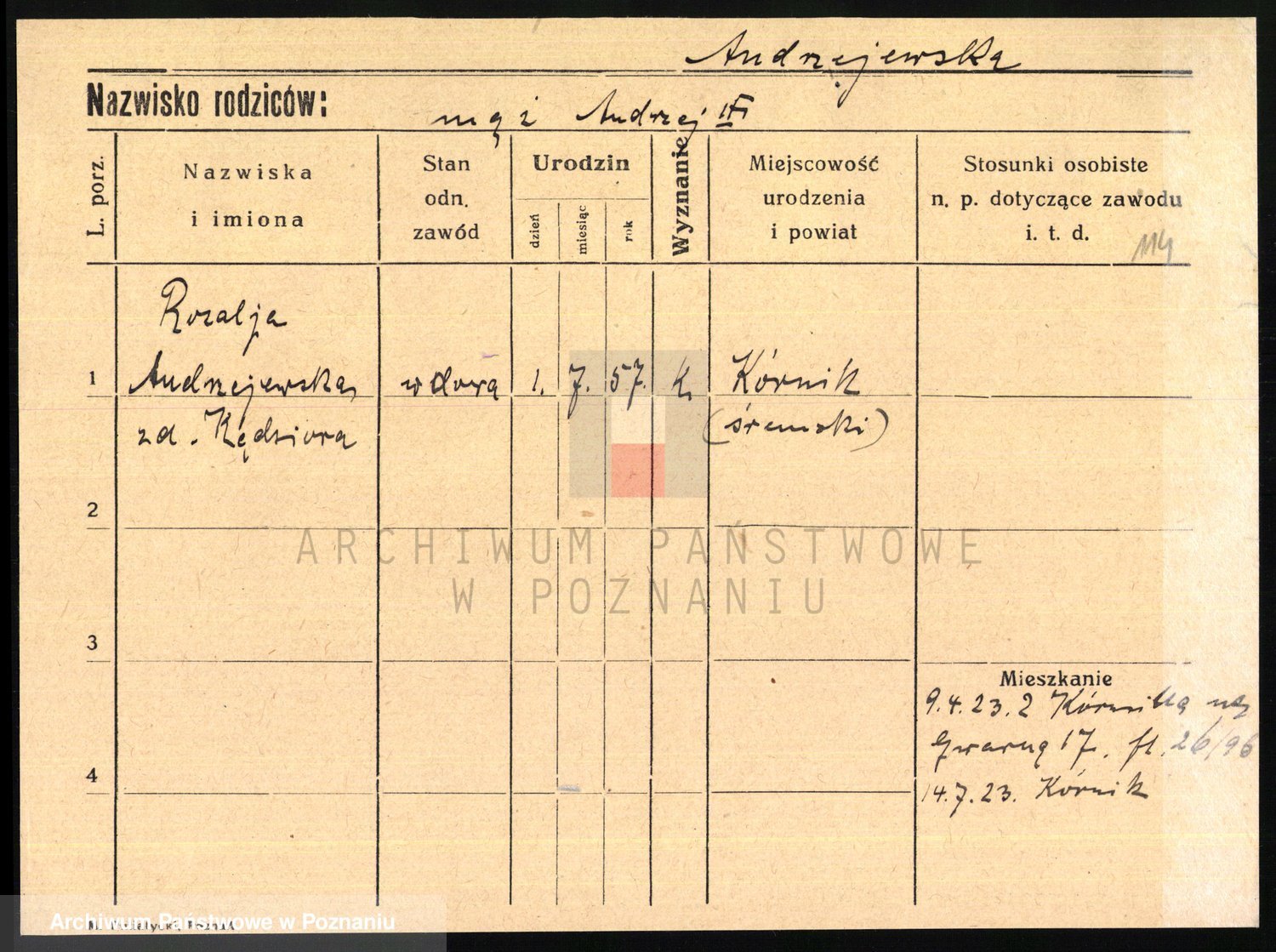 Andrzejewska z d. Napieralska, Franziska