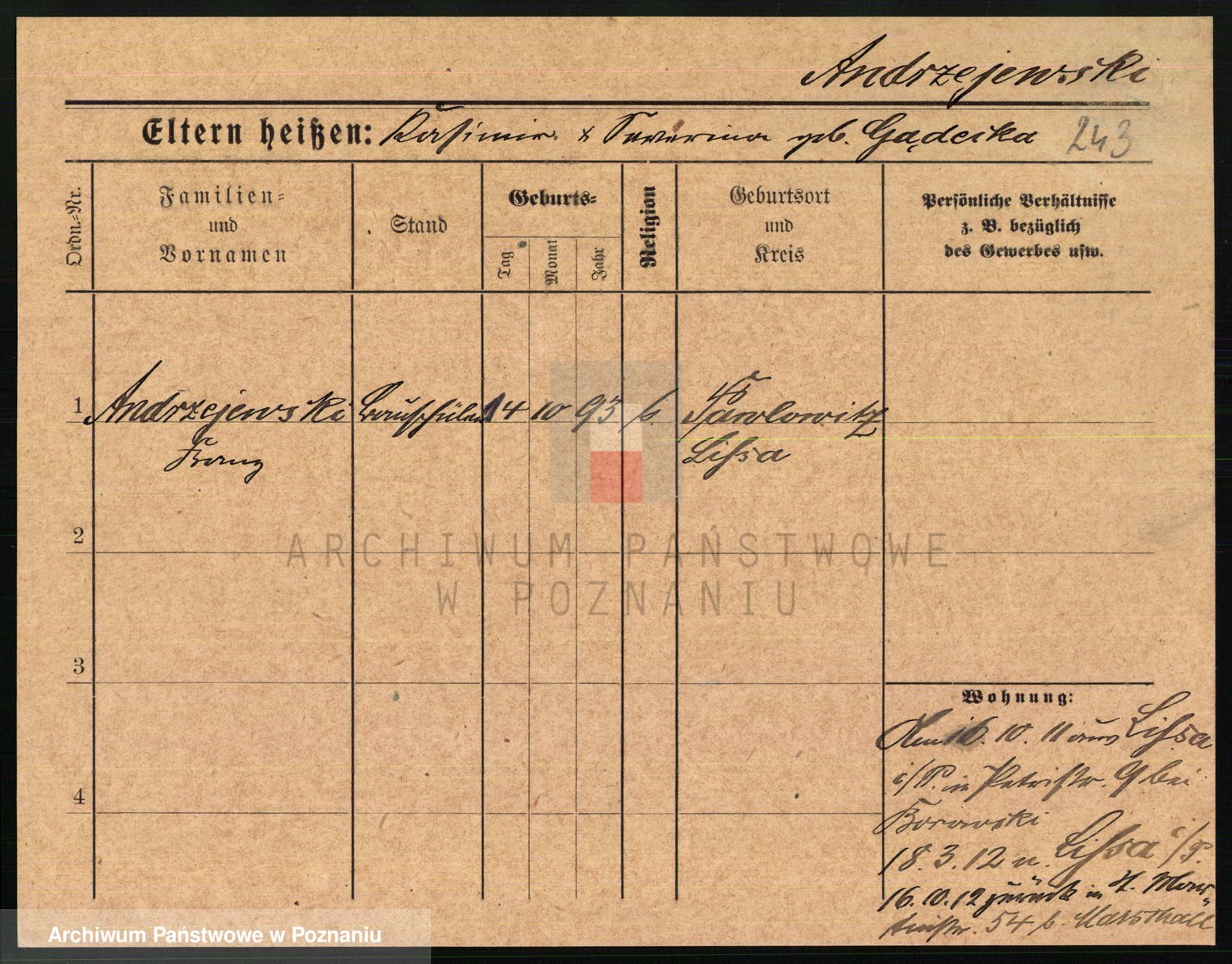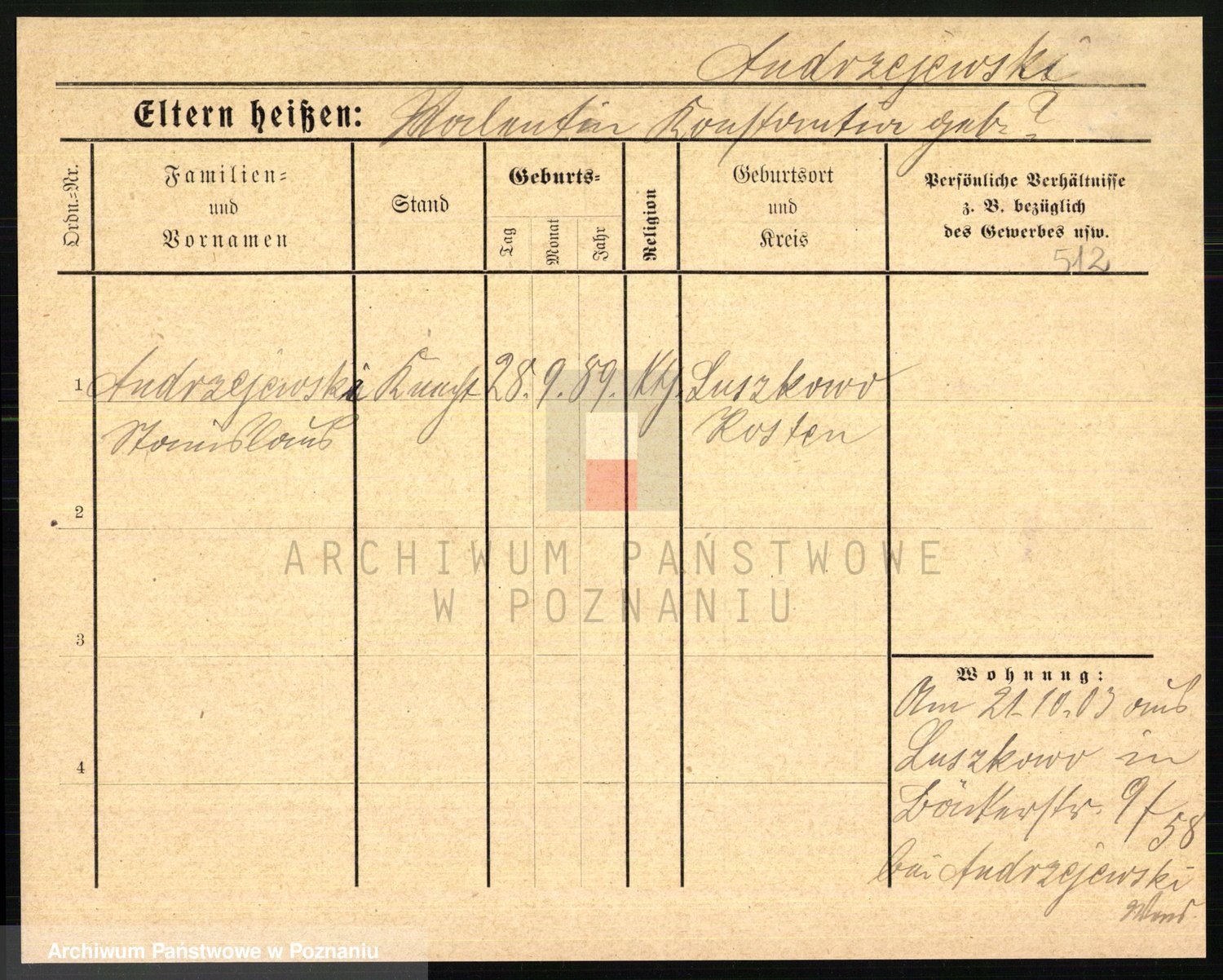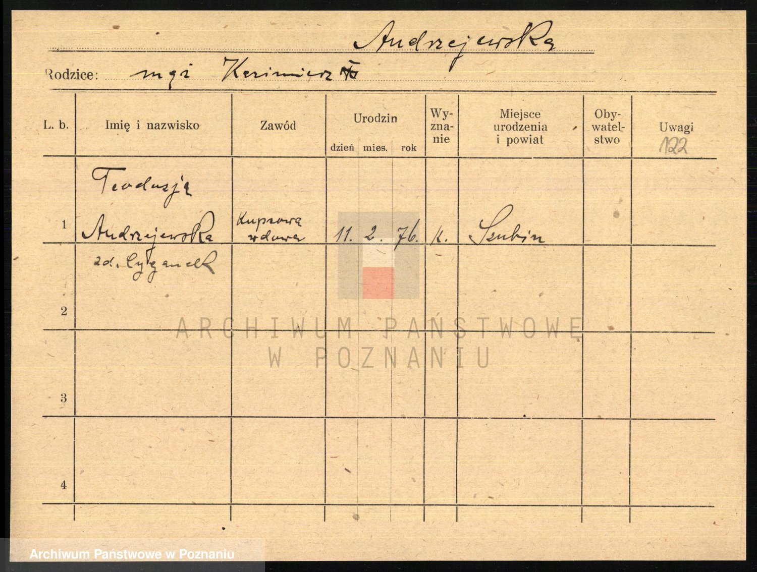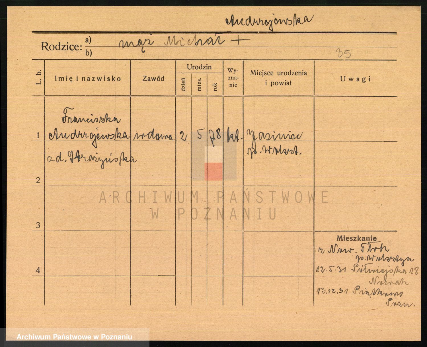 Andrzejewska z d. Poludniak, Franziska