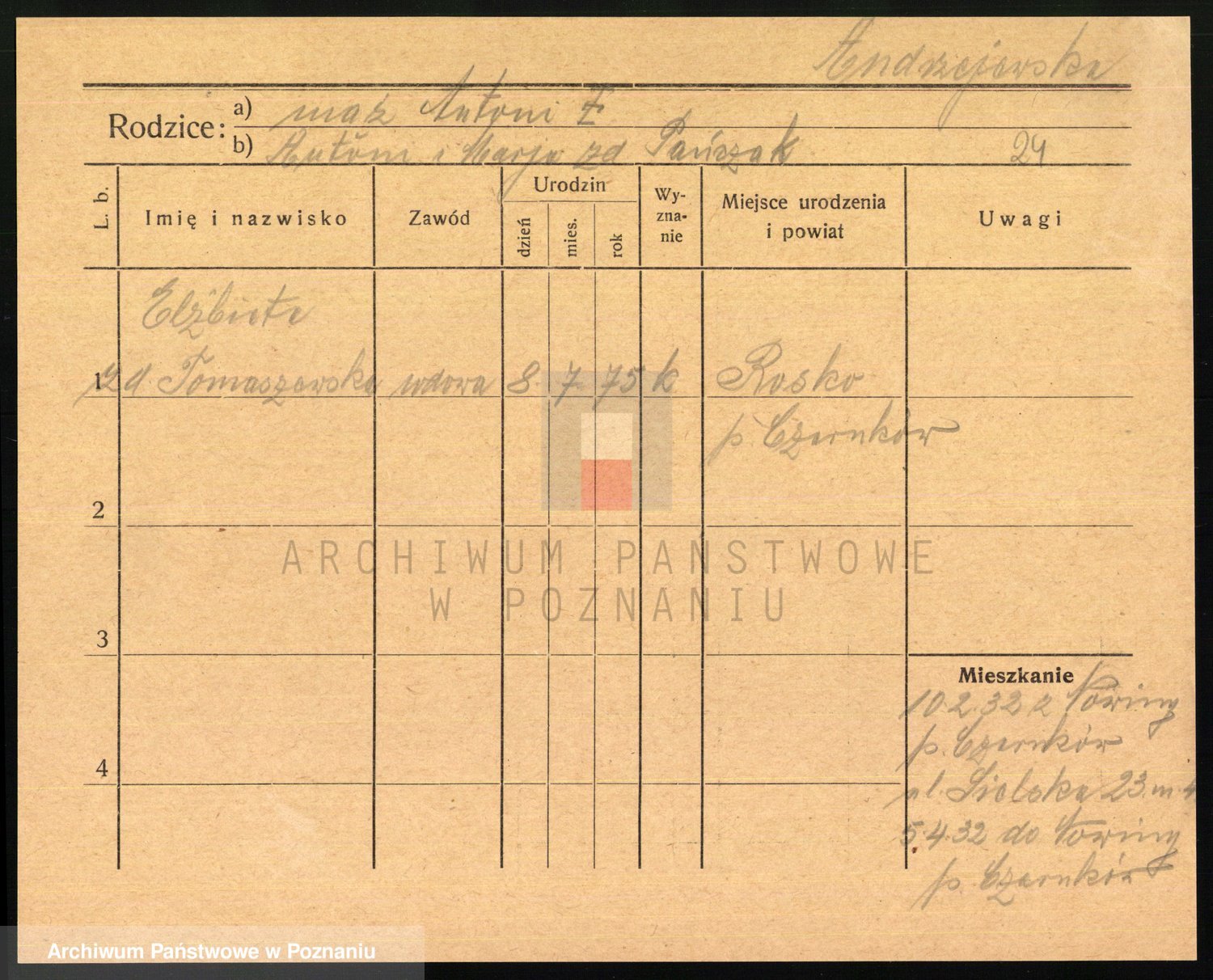 Andrzejewska z d. Tomaszewska, Elżbieta