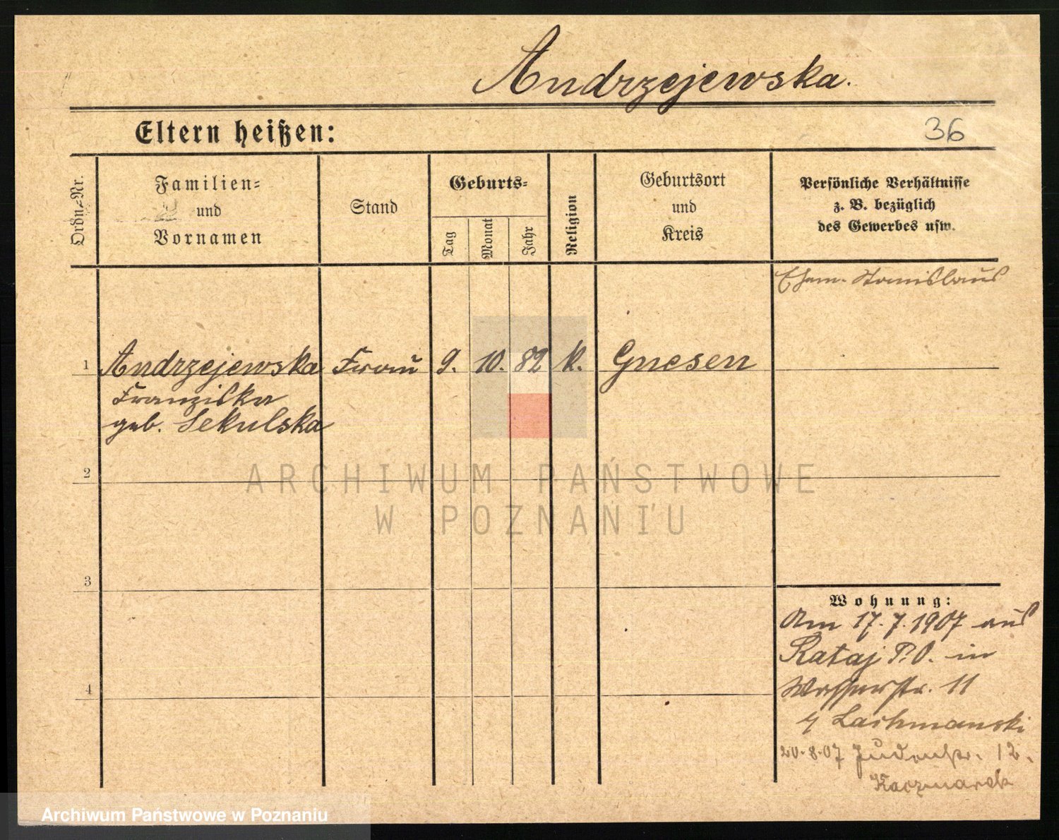 Andrzejewska z d. Sekulska, Franziska