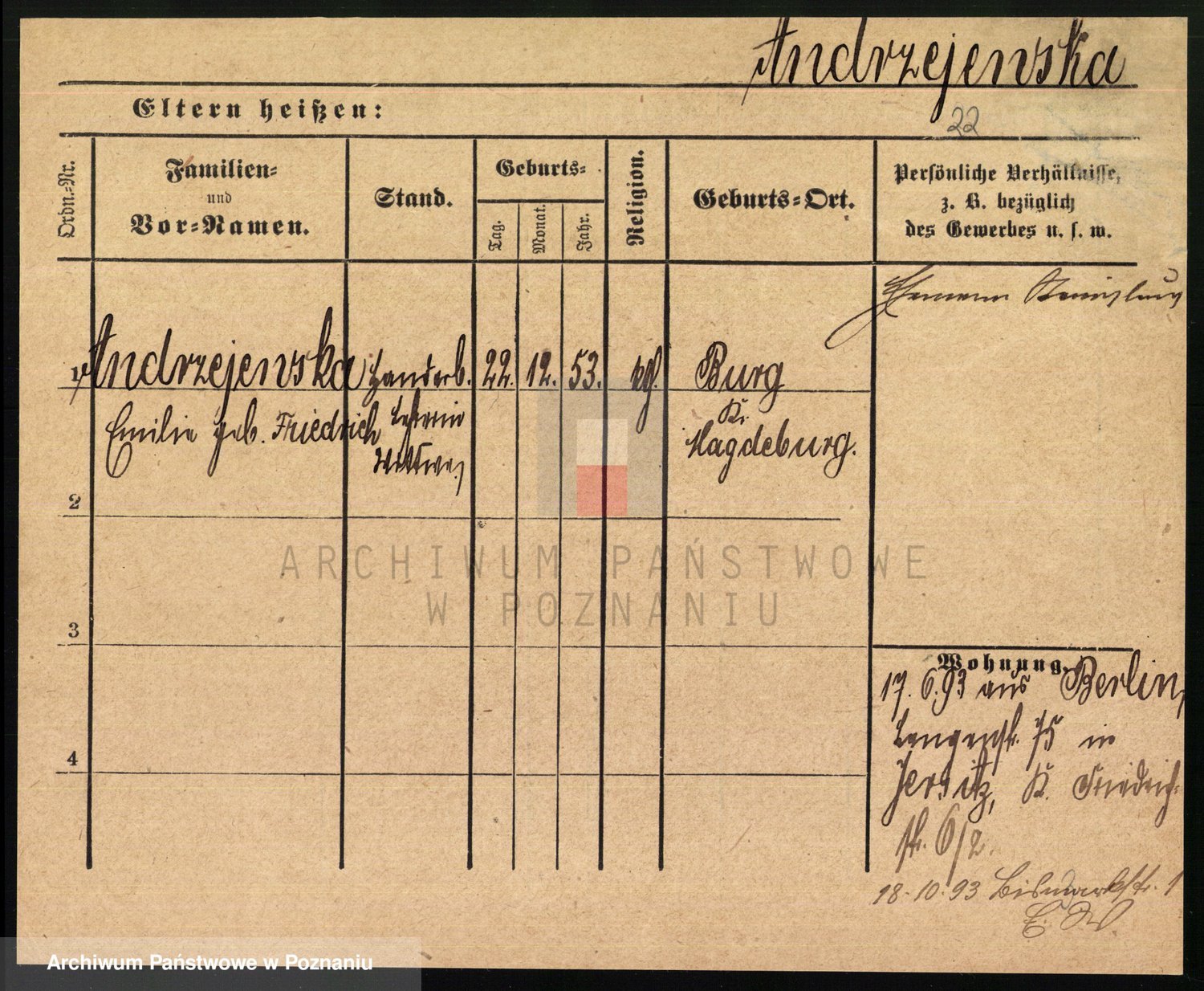 Andrzejewska z d. Friedrich, Emilie