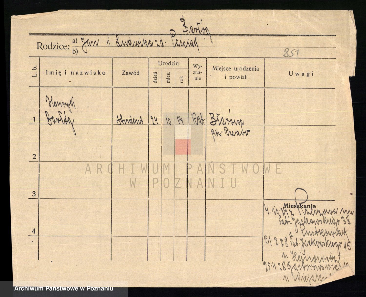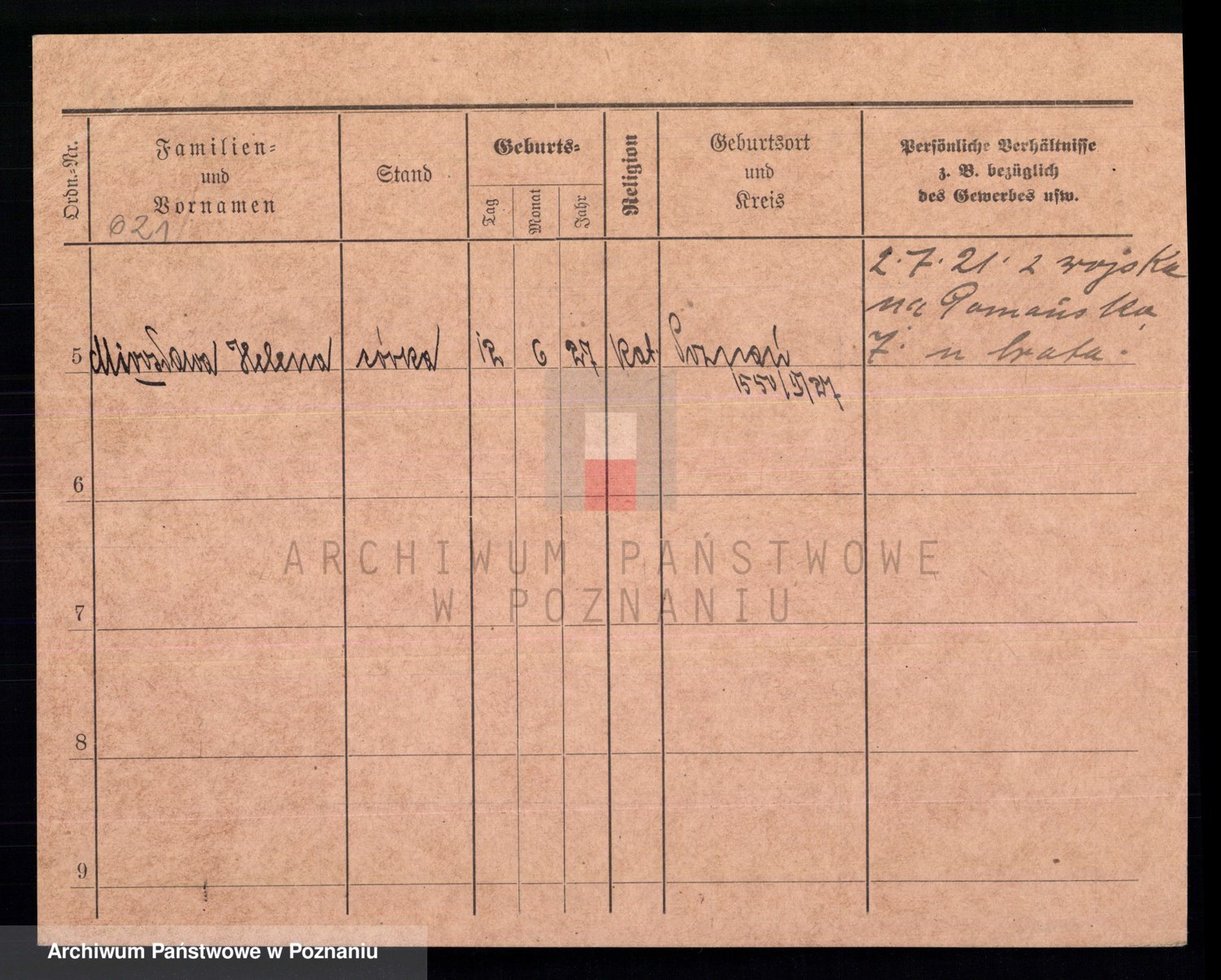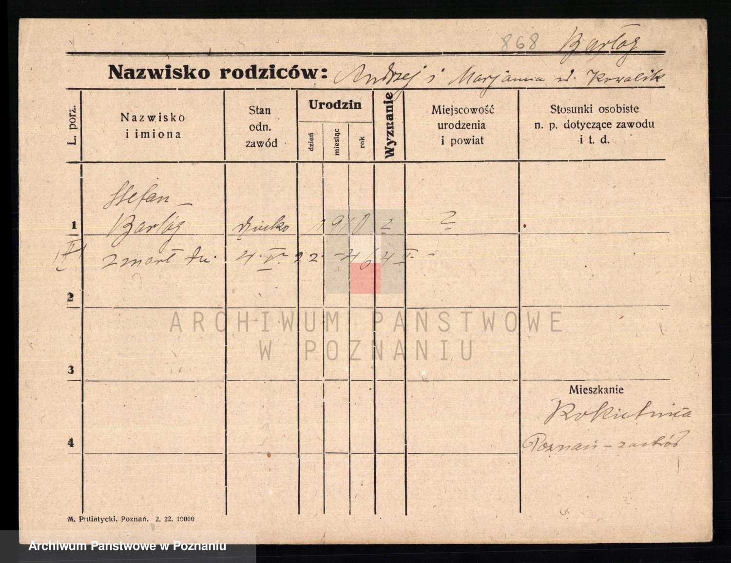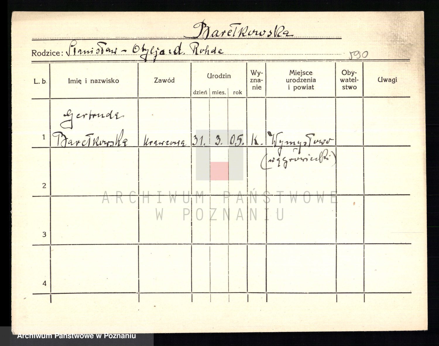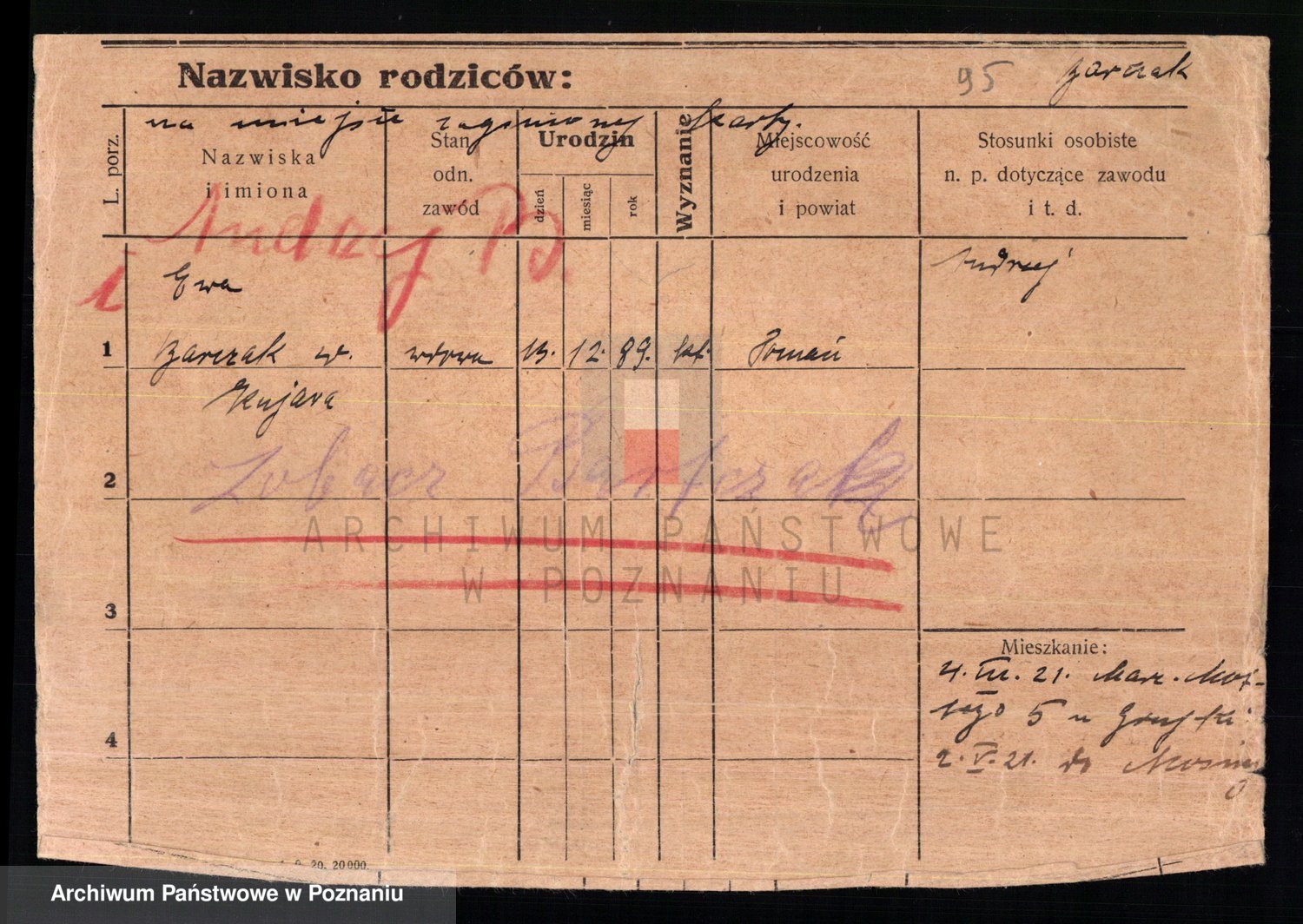 Podgląd karty osobowej dostępny jest po kliknięciu na nazwisko lub ikonkę karty. Można dokonywać powiększenia (ikony na górze) lub przechodzić między kolejnymi skanami (strzałki po bokach).