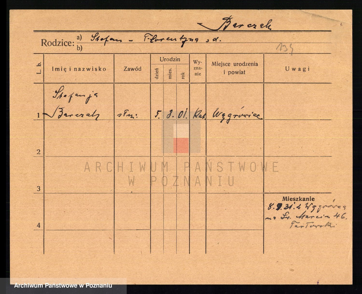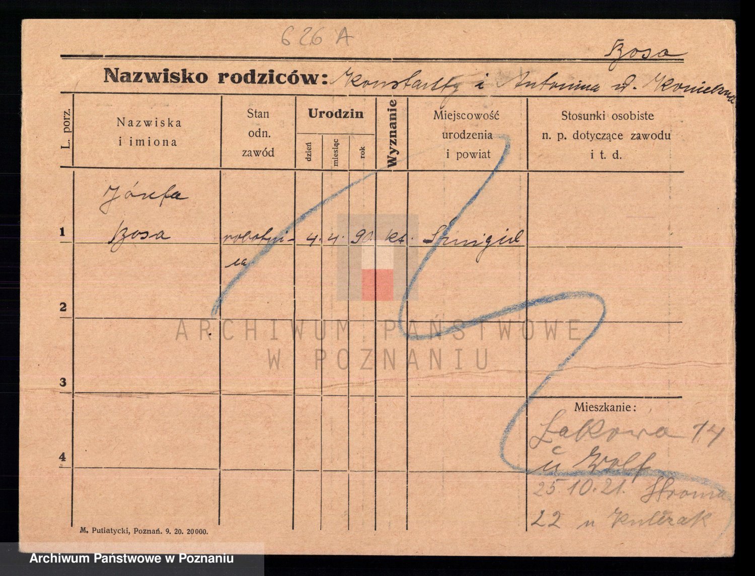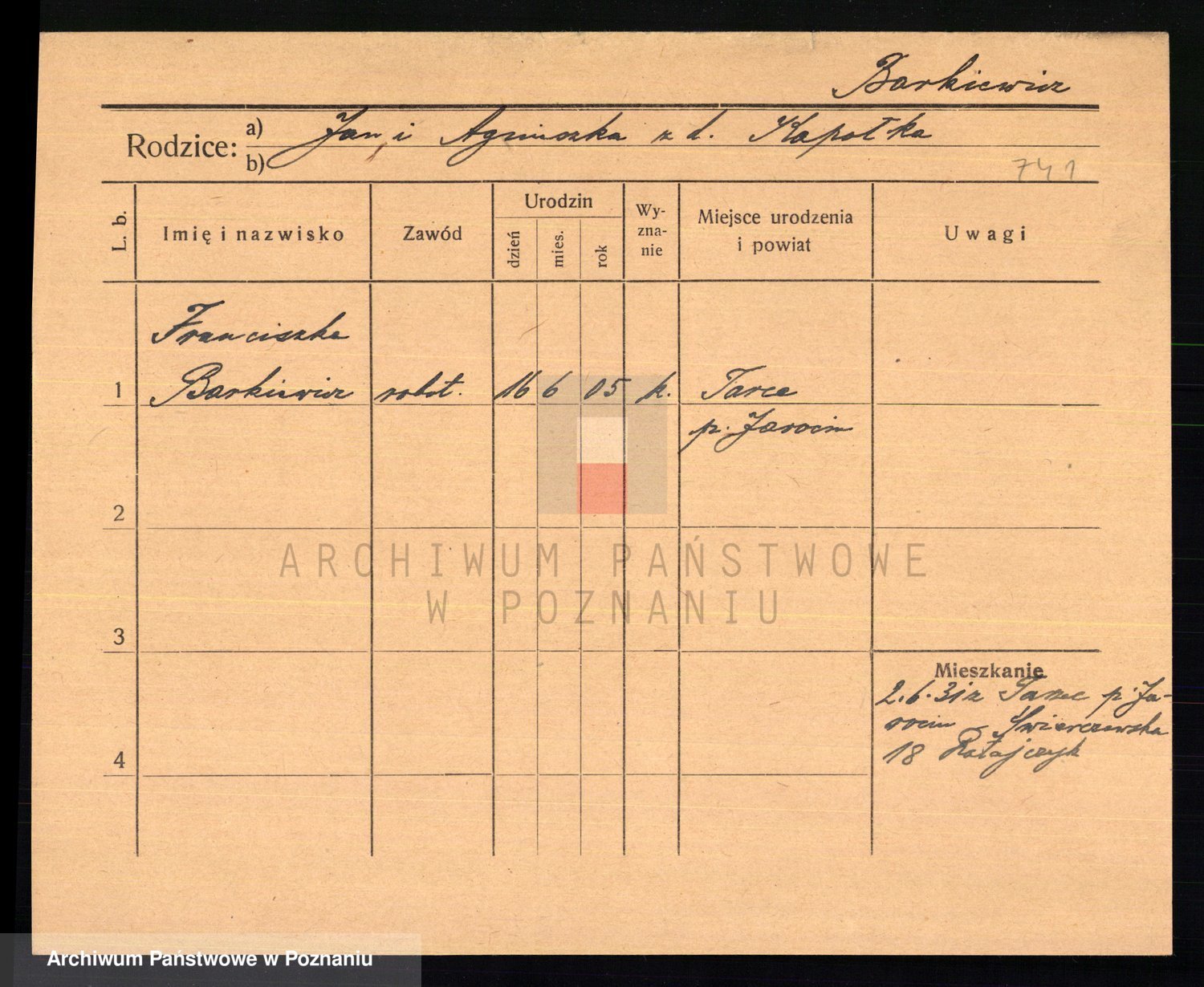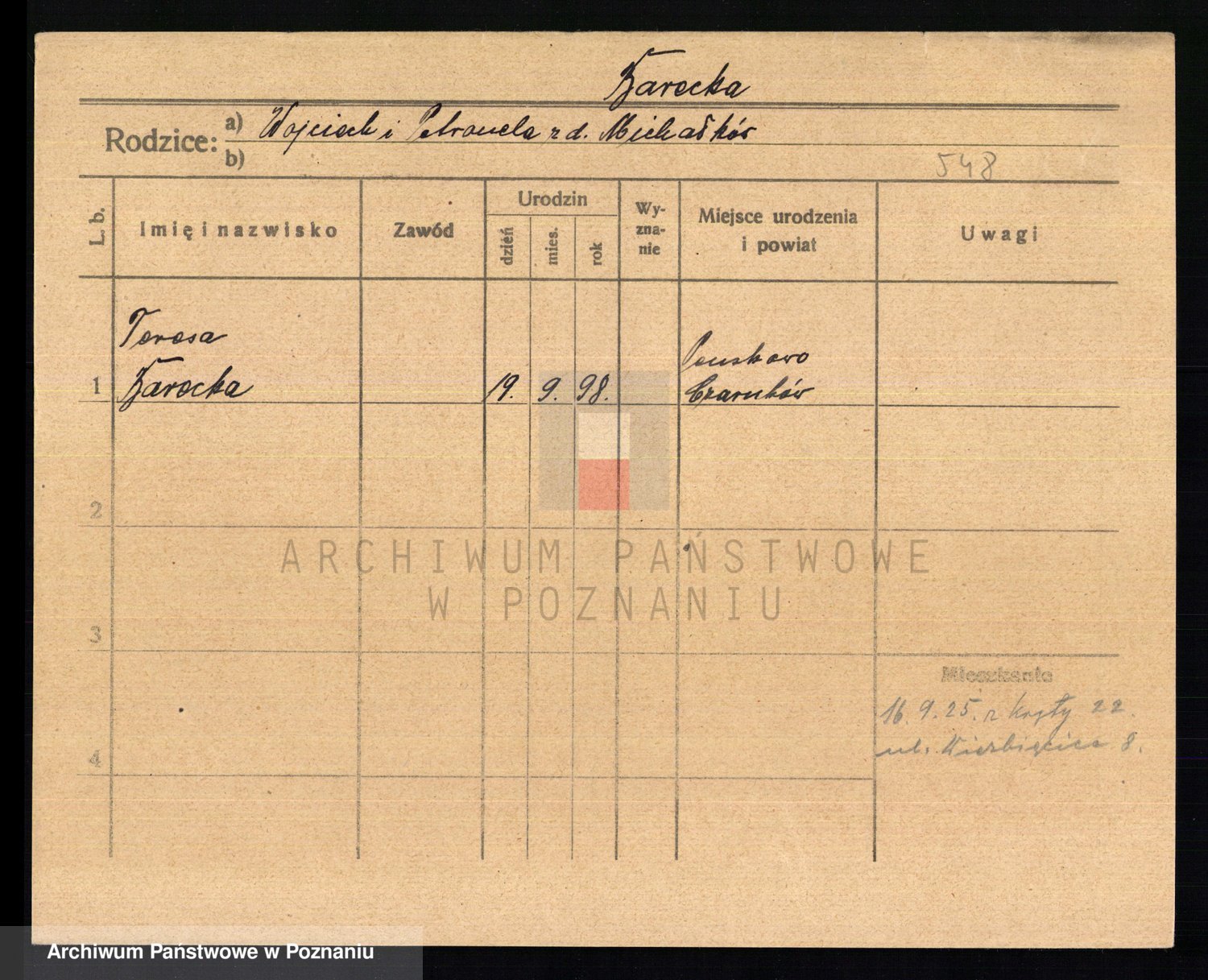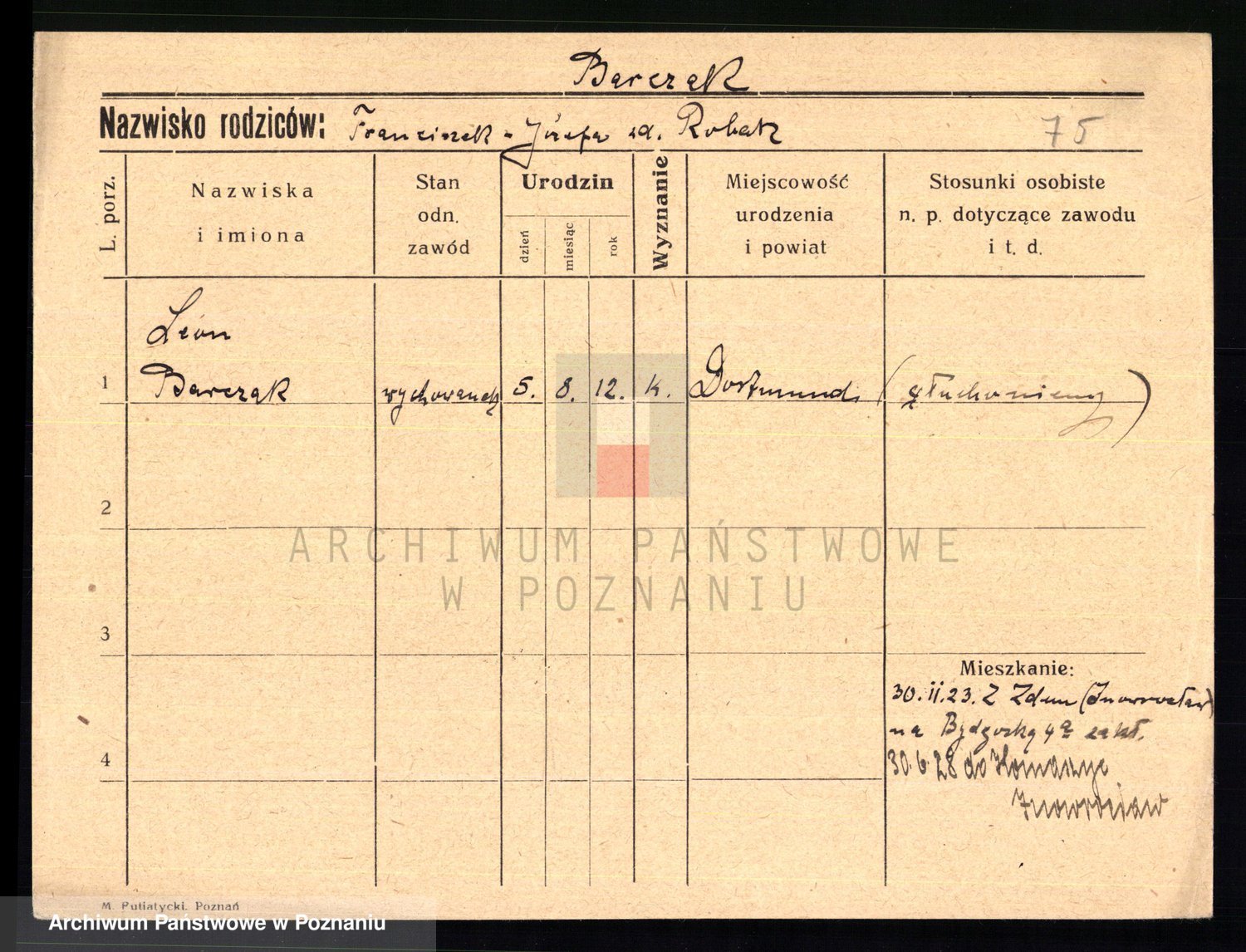 Podgląd karty osobowej dostępny jest po kliknięciu na nazwisko lub ikonkę karty. Można dokonywać powiększenia (ikony na górze) lub przechodzić między kolejnymi skanami (strzałki po bokach).