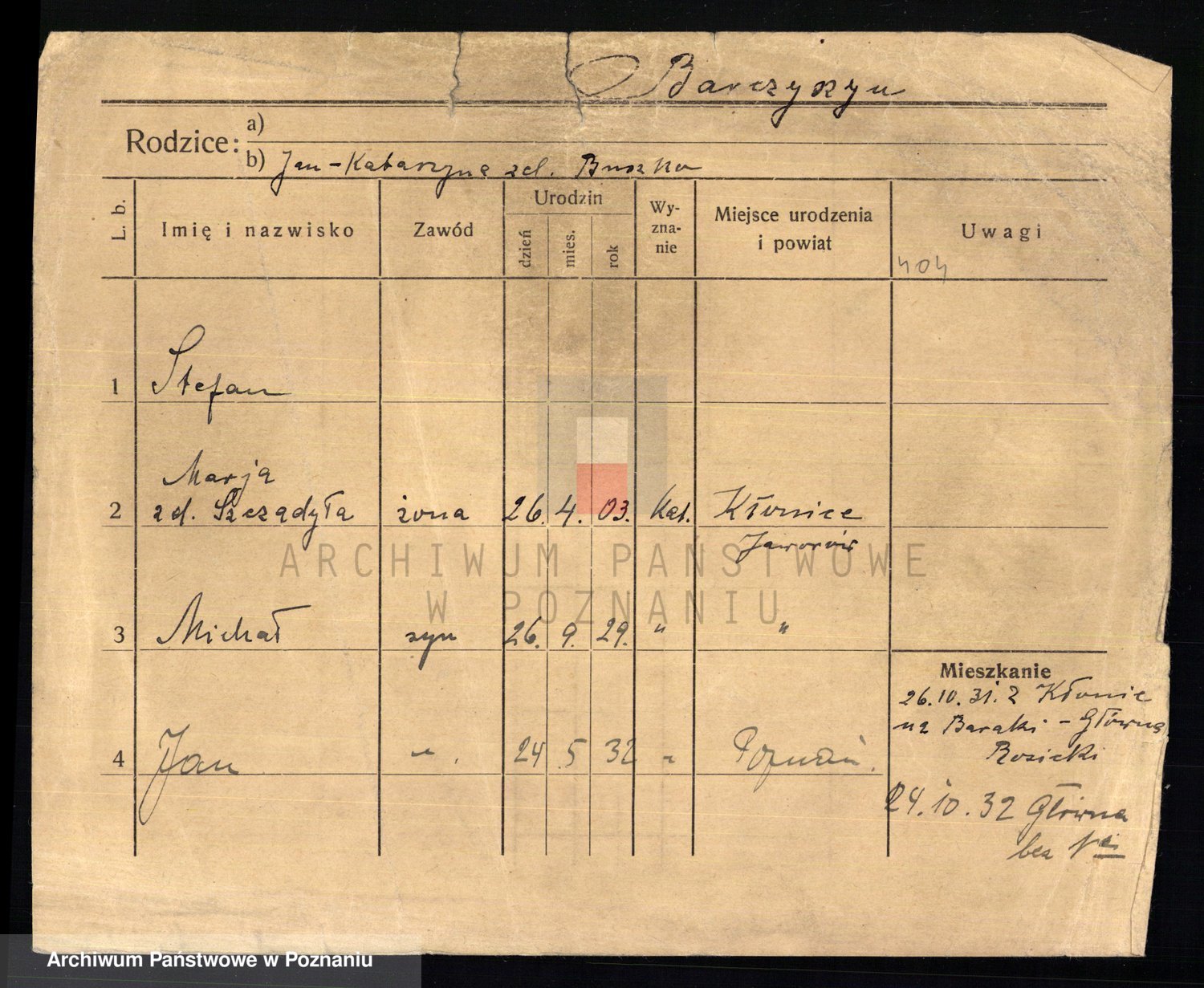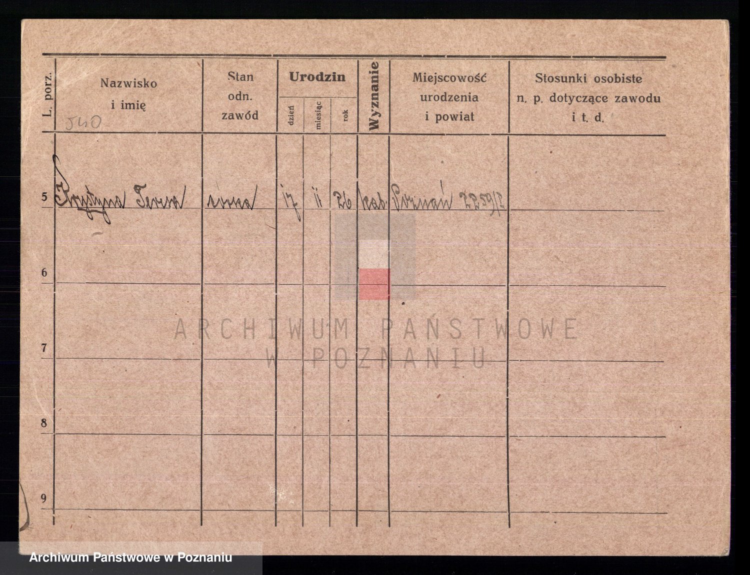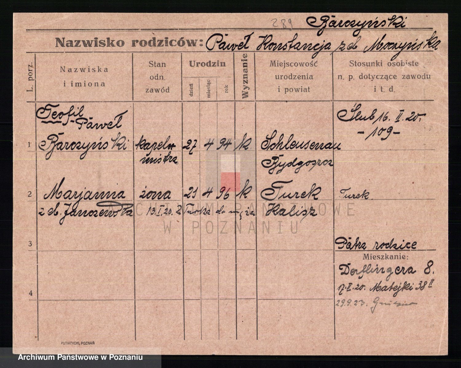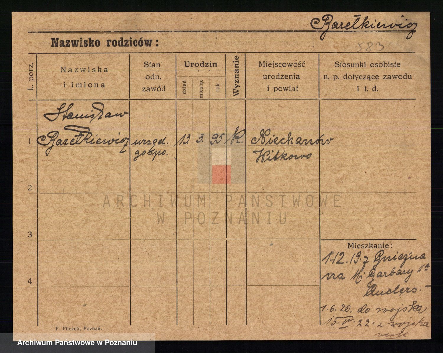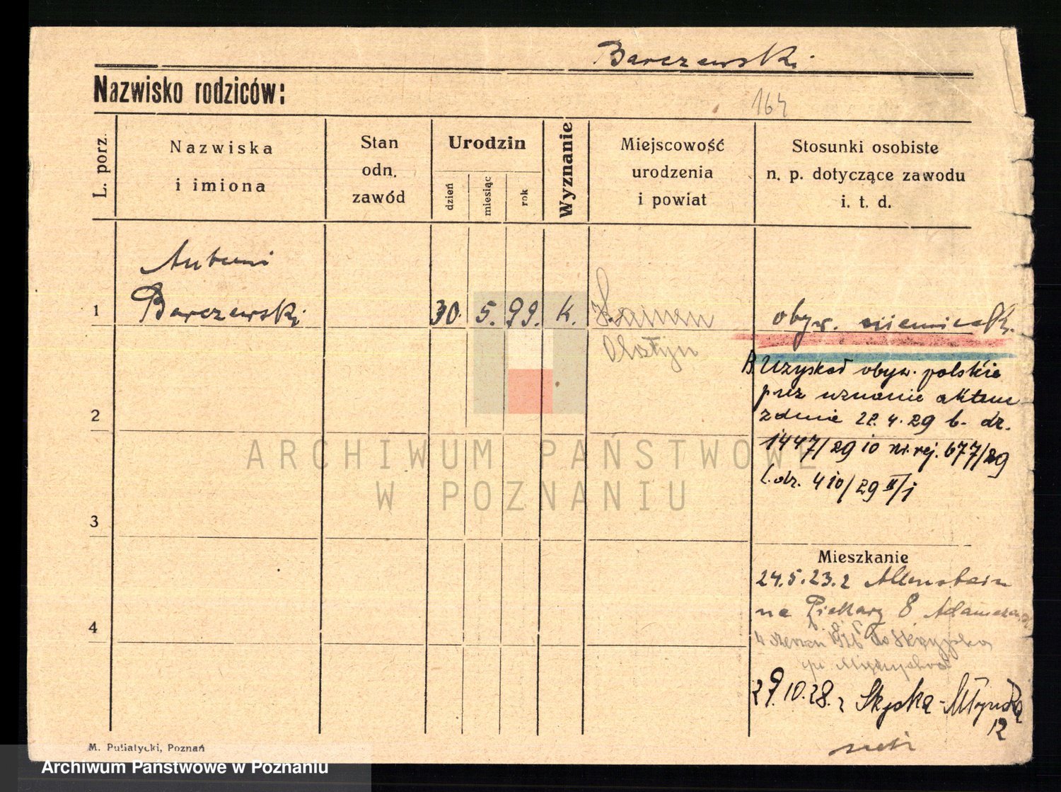 Podgląd karty osobowej dostępny jest po kliknięciu na nazwisko lub ikonkę karty. Można dokonywać powiększenia (ikony na górze) lub przechodzić między kolejnymi skanami (strzałki po bokach).