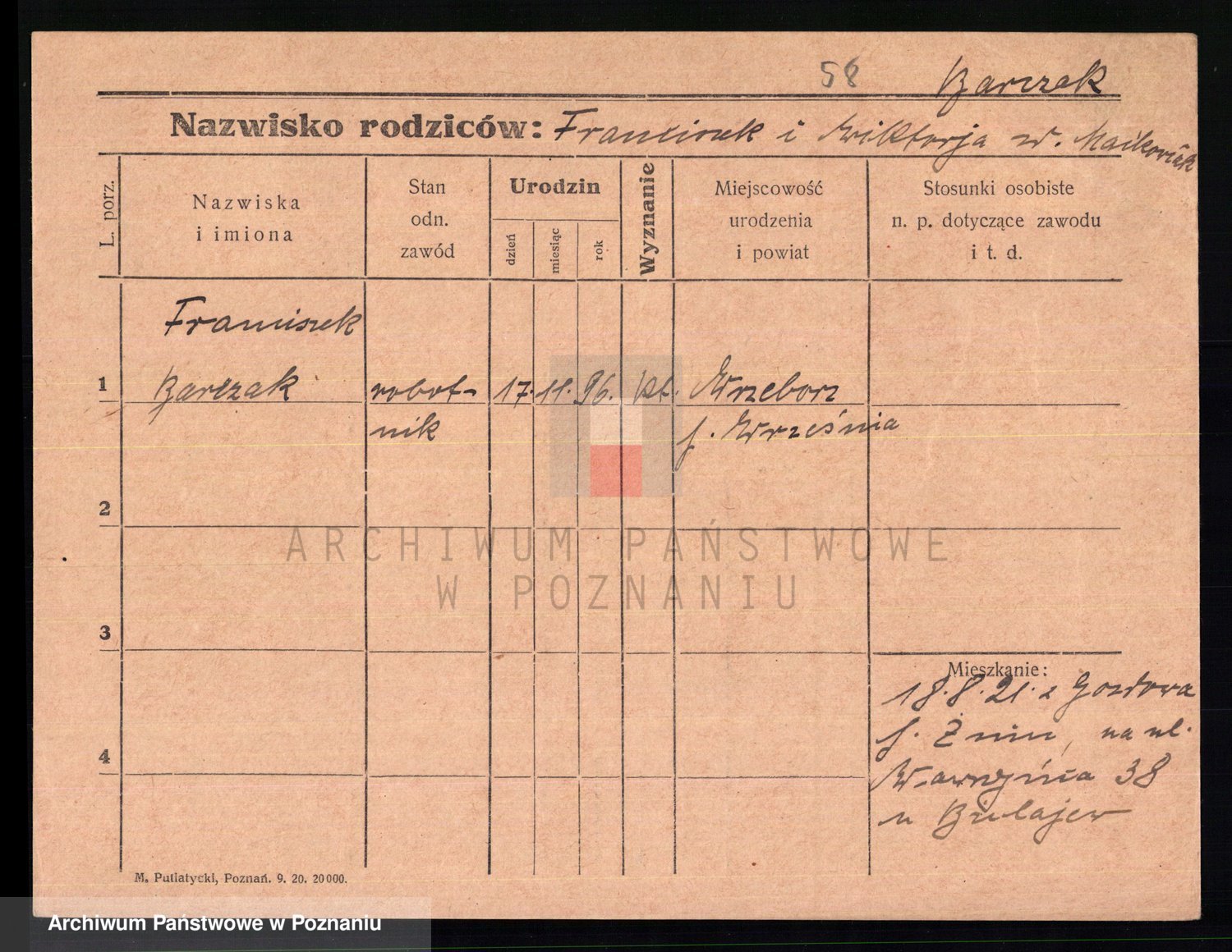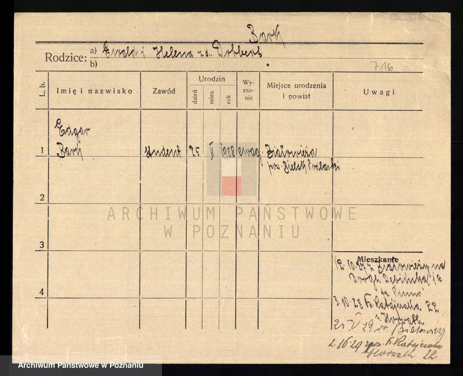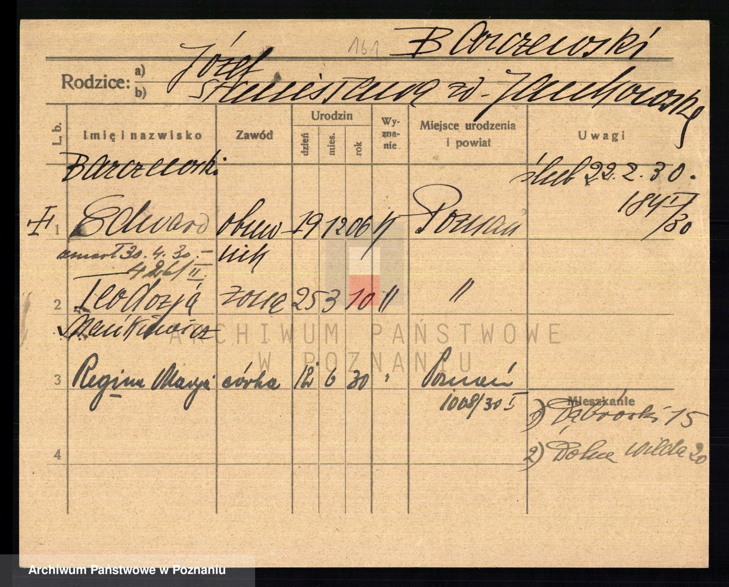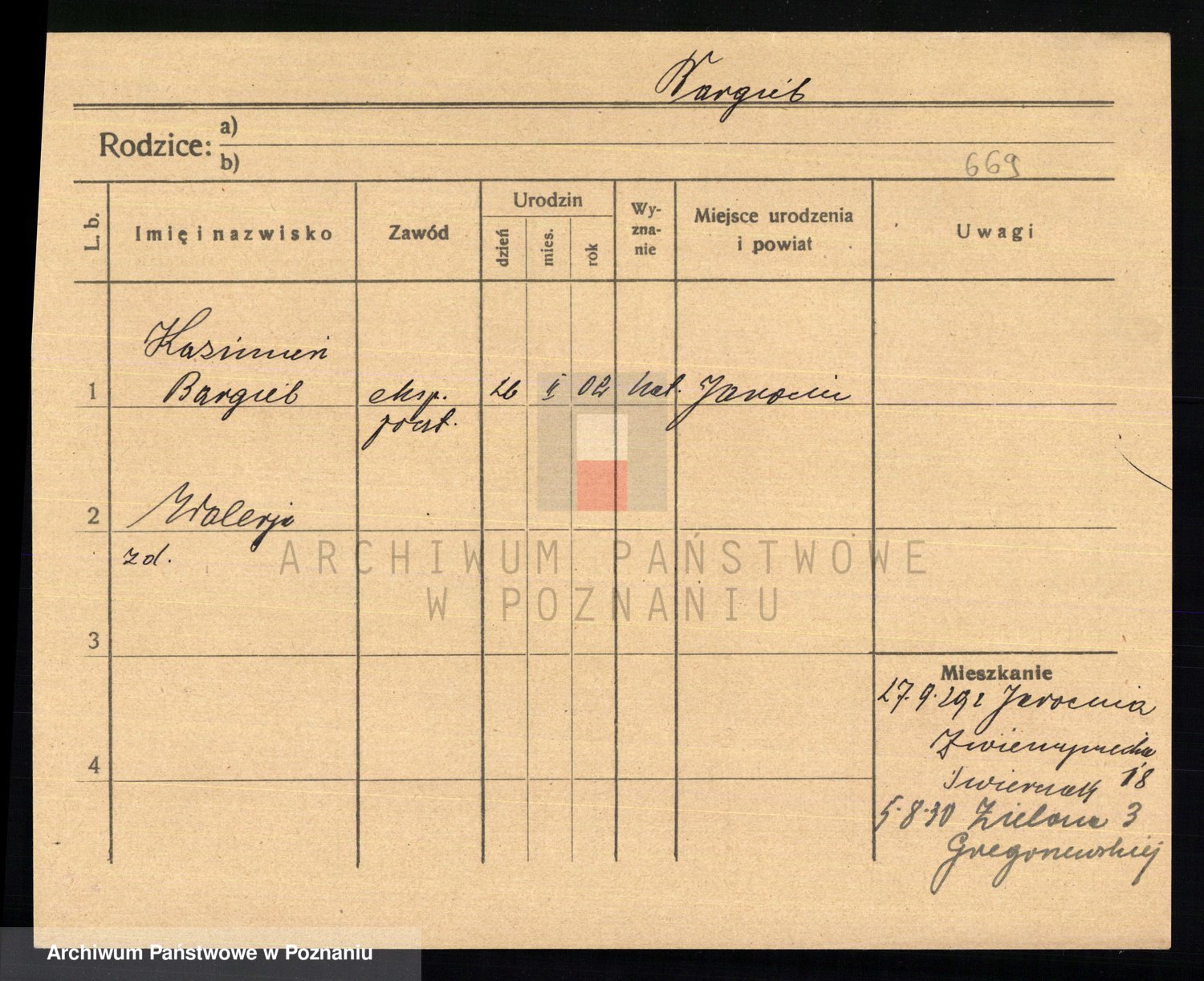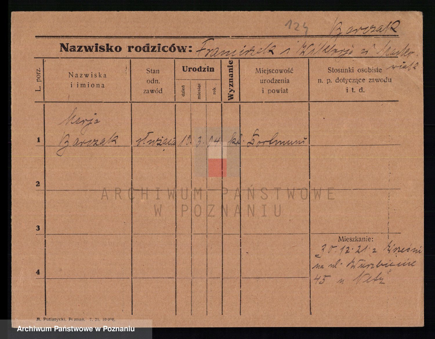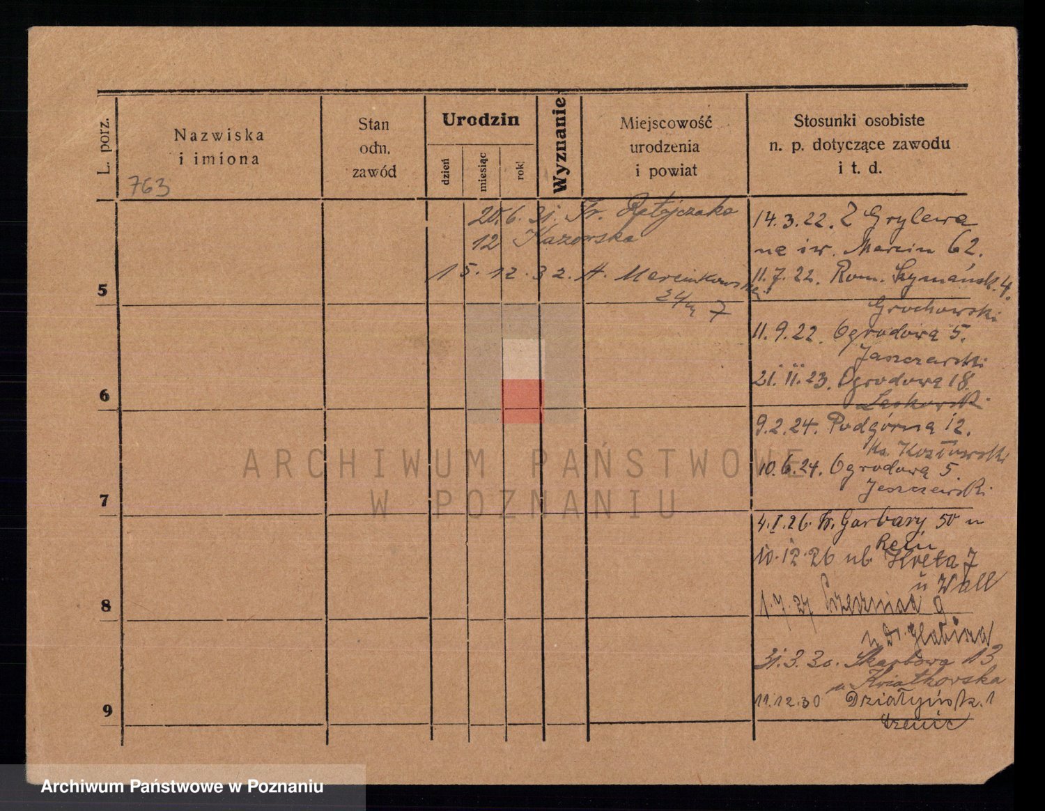 Podgląd karty osobowej dostępny jest po kliknięciu na nazwisko lub ikonkę karty. Można dokonywać powiększenia (ikony na górze) lub przechodzić między kolejnymi skanami (strzałki po bokach).