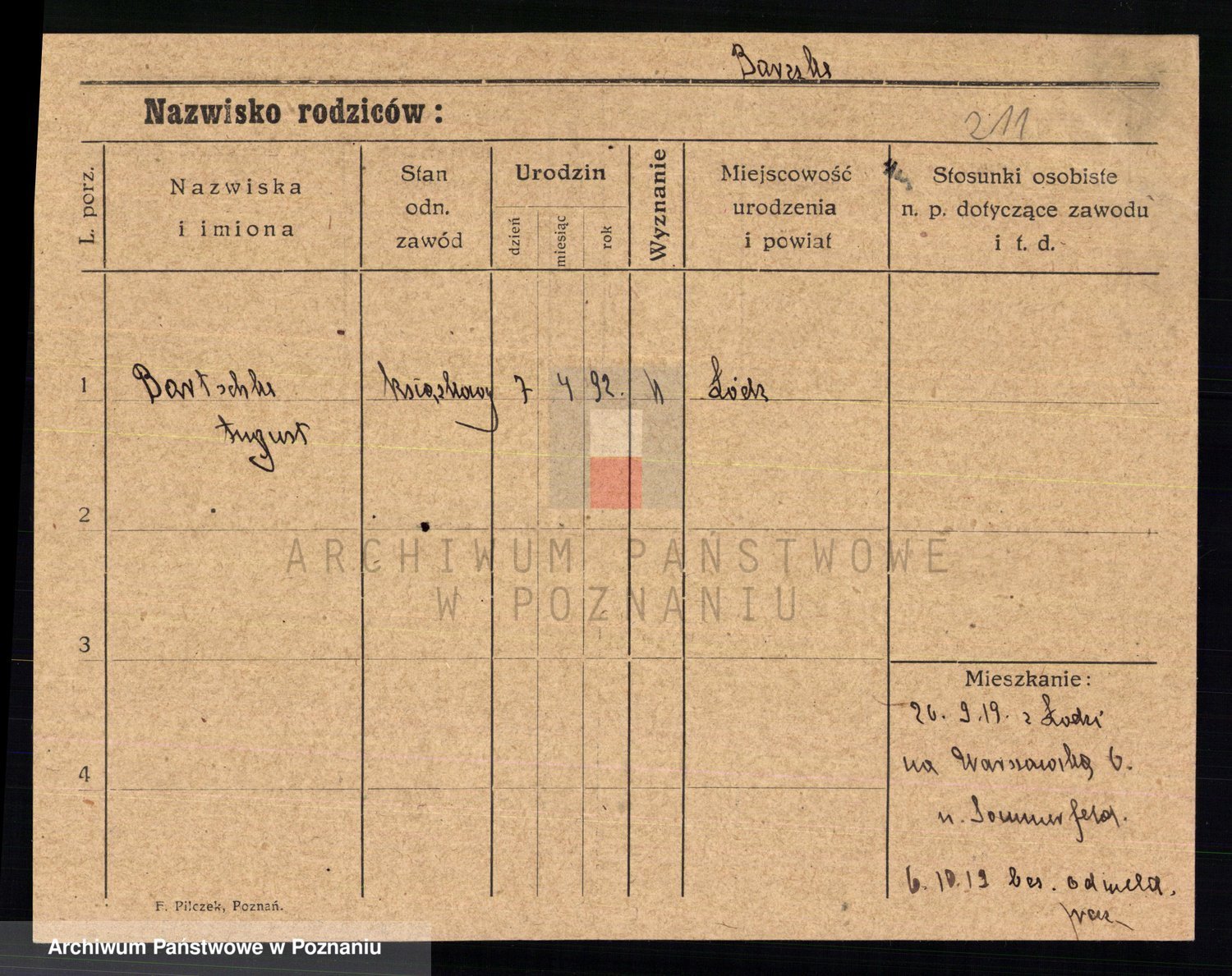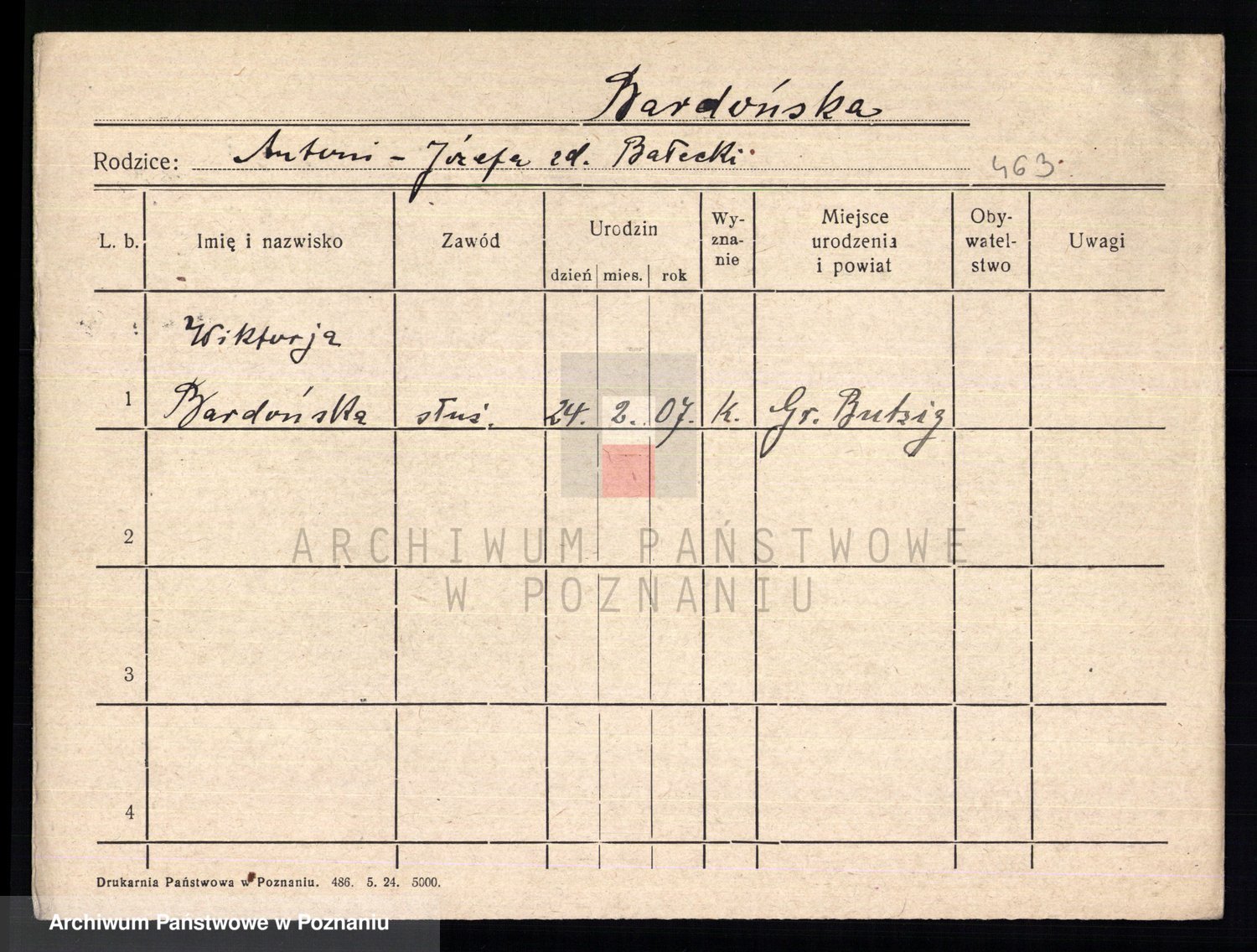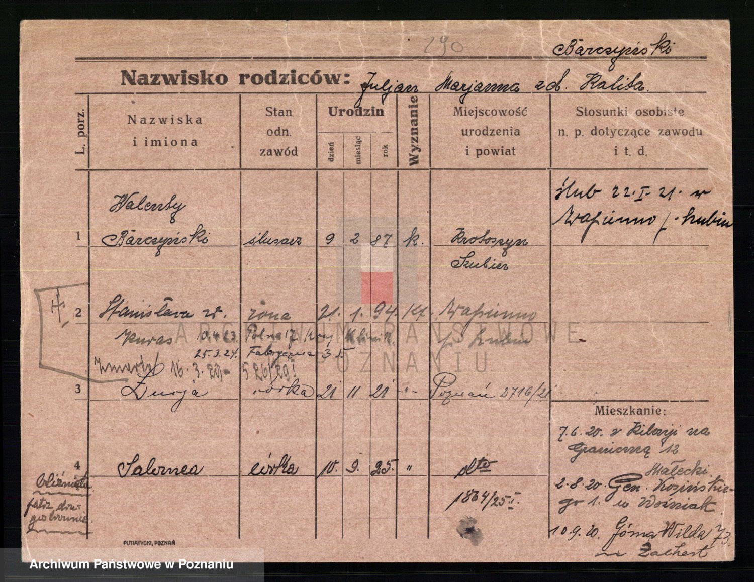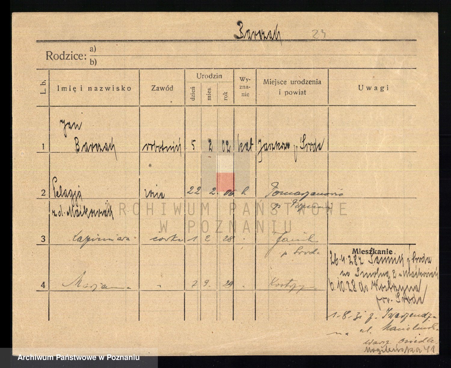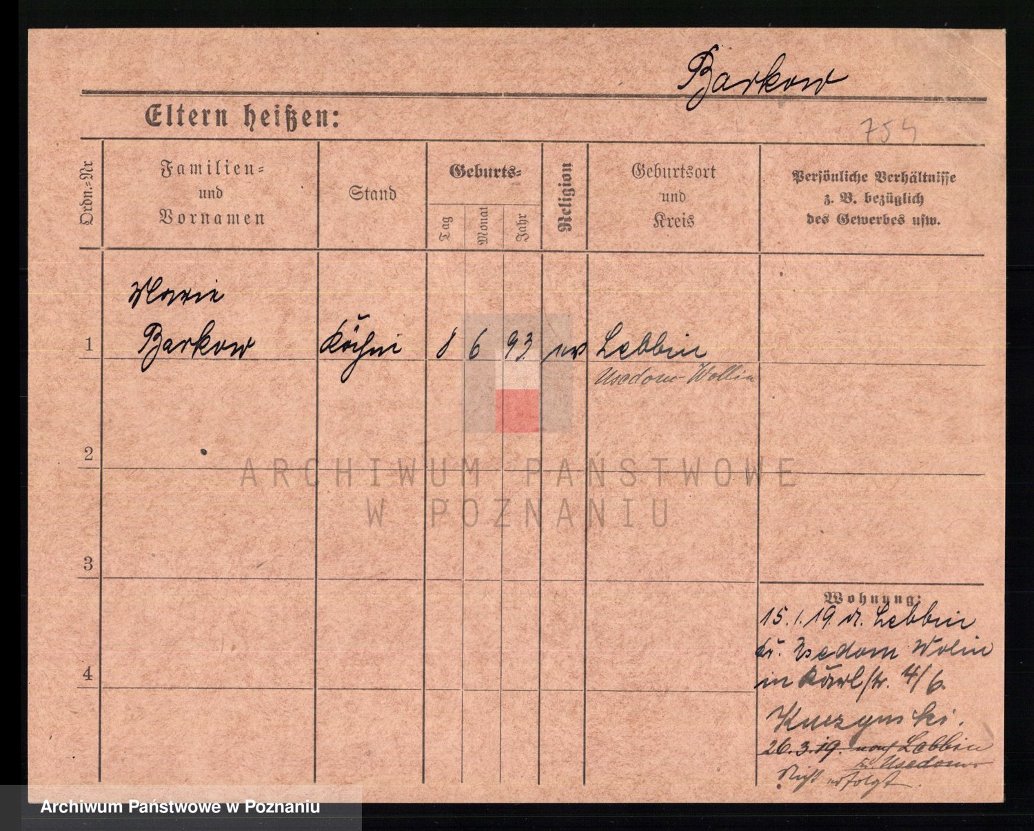 Podgląd karty osobowej dostępny jest po kliknięciu na nazwisko lub ikonkę karty. Można dokonywać powiększenia (ikony na górze) lub przechodzić między kolejnymi skanami (strzałki po bokach).