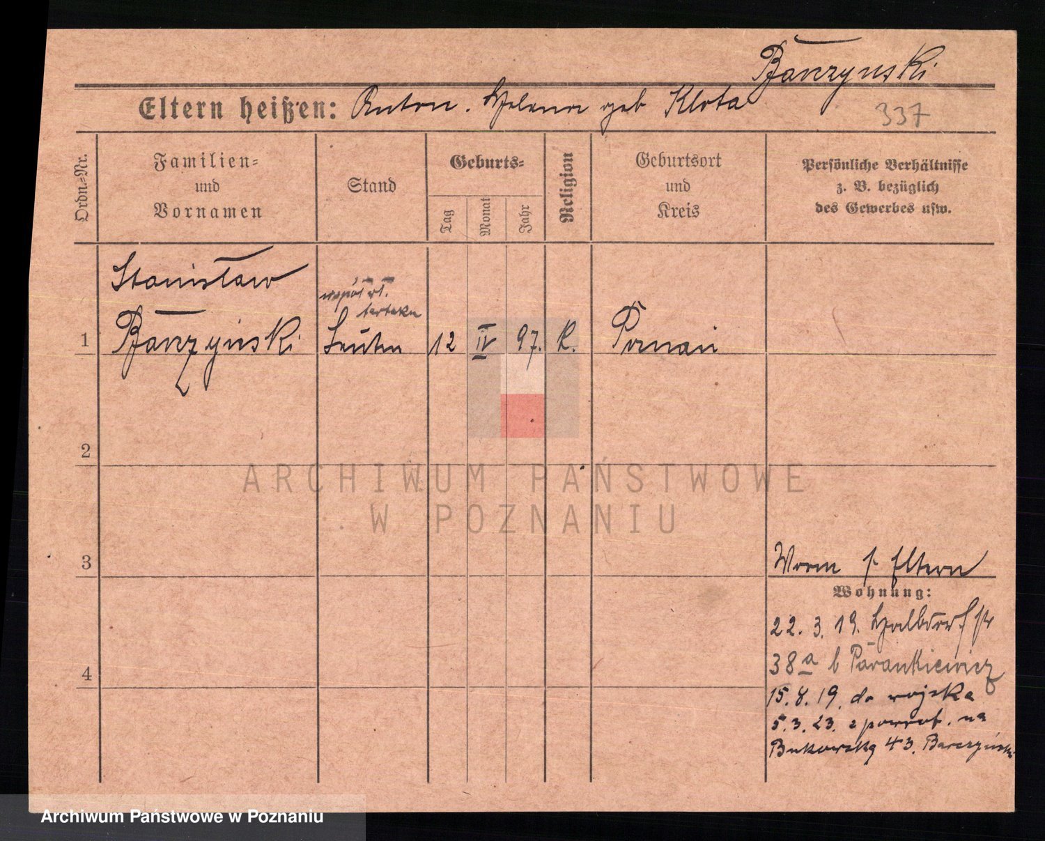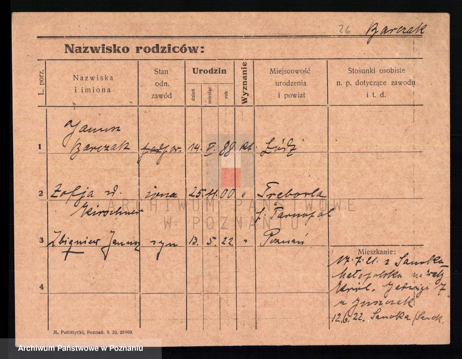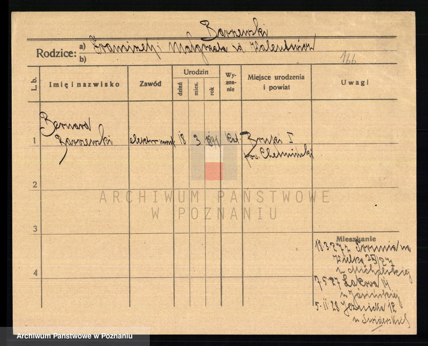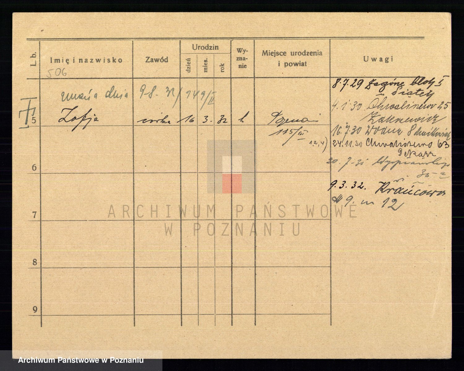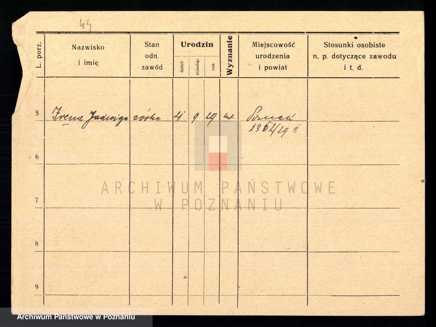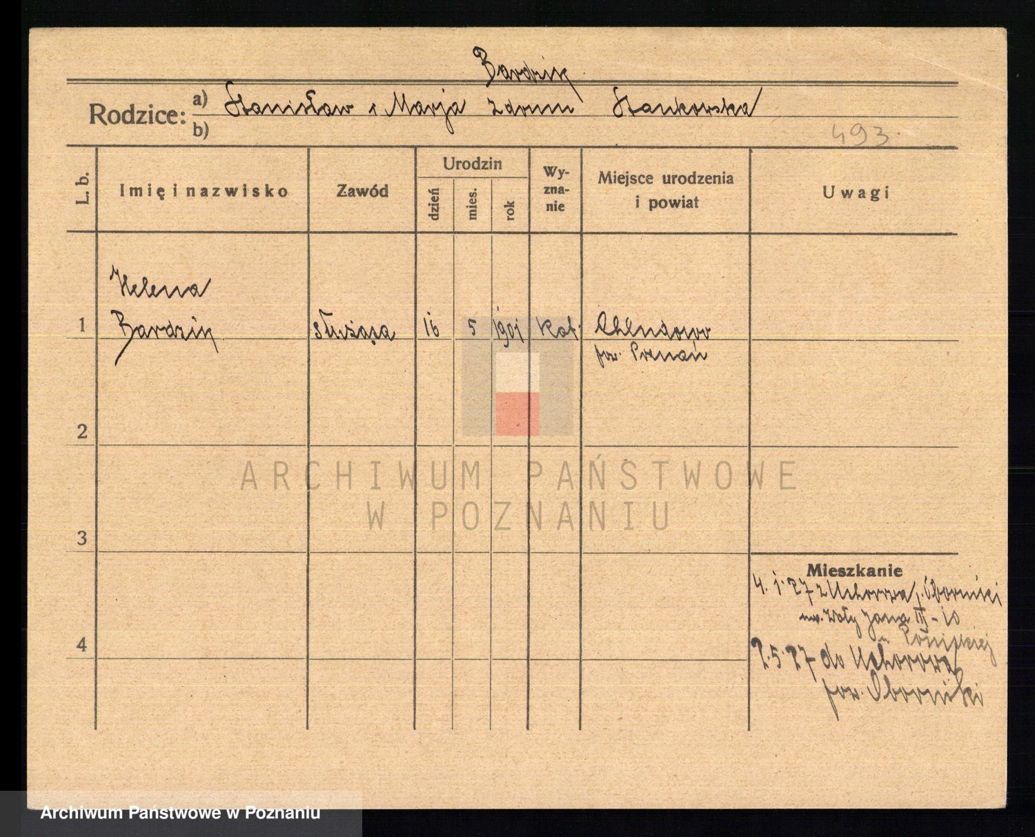 Podgląd karty osobowej dostępny jest po kliknięciu na nazwisko lub ikonkę karty. Można dokonywać powiększenia (ikony na górze) lub przechodzić między kolejnymi skanami (strzałki po bokach).