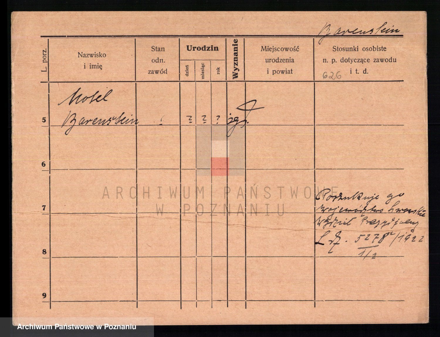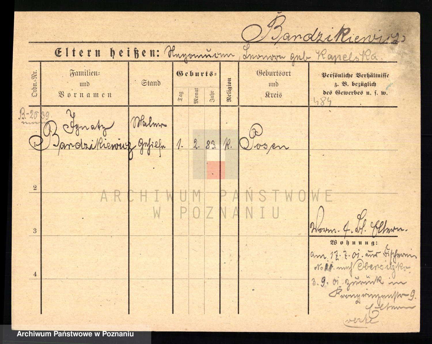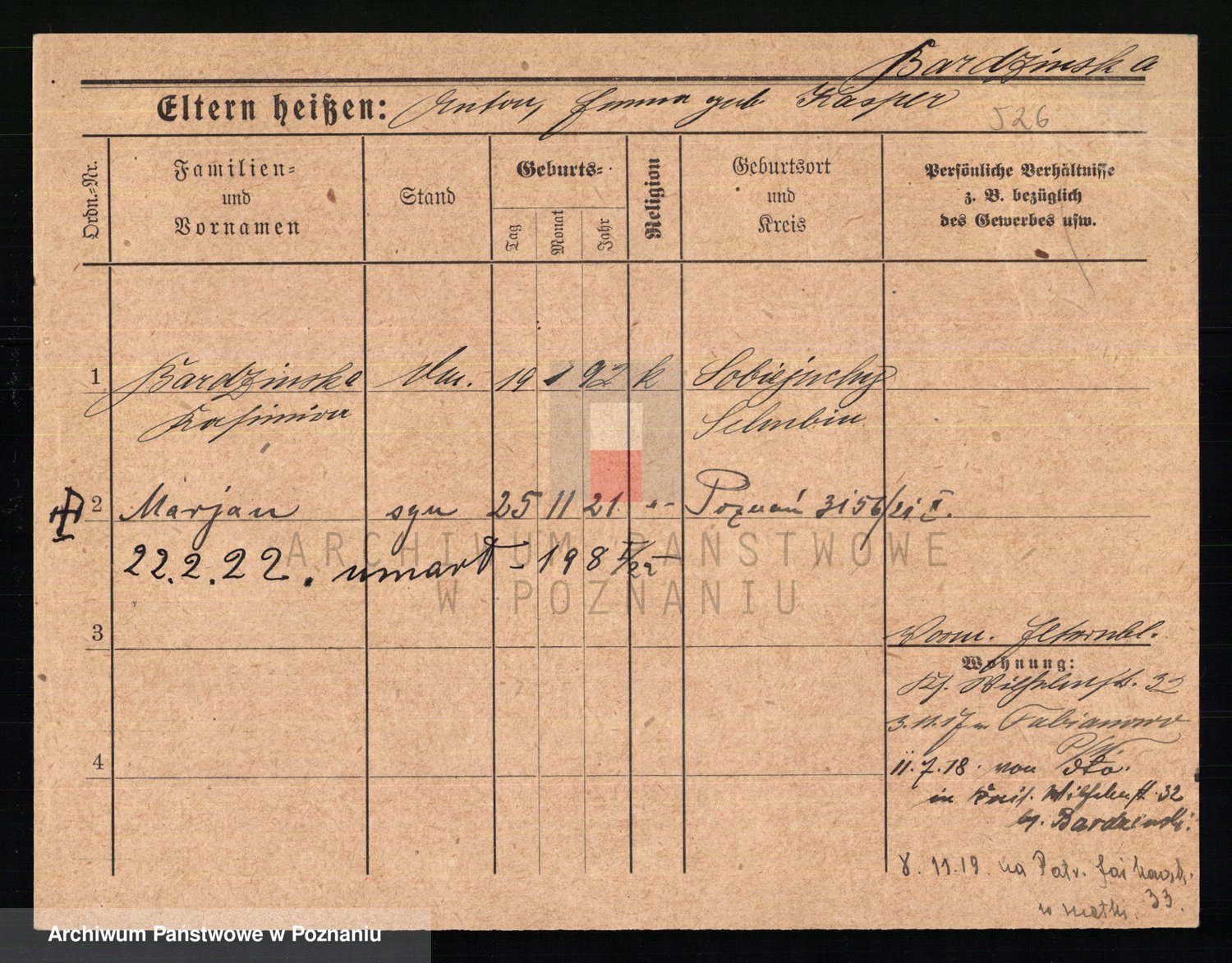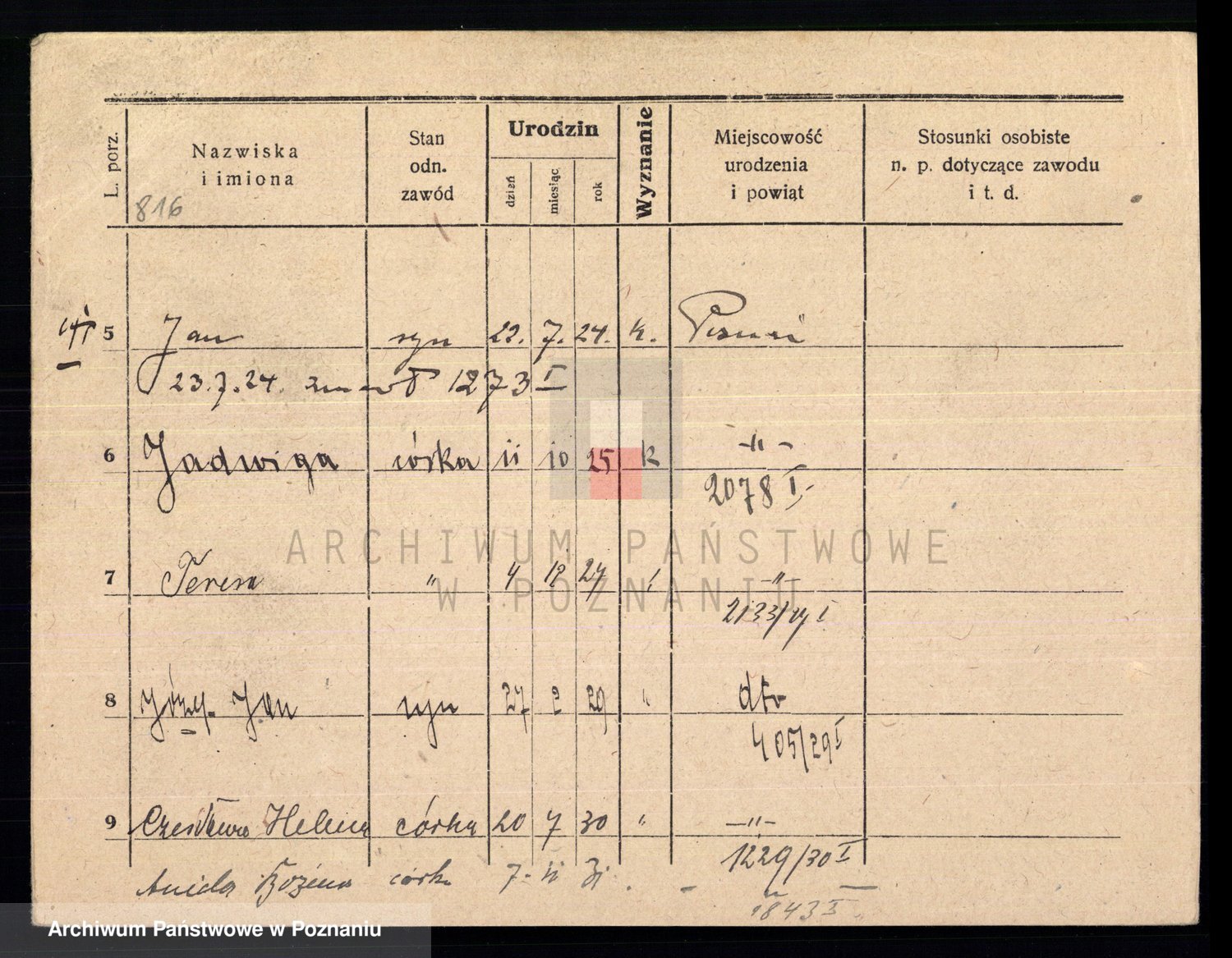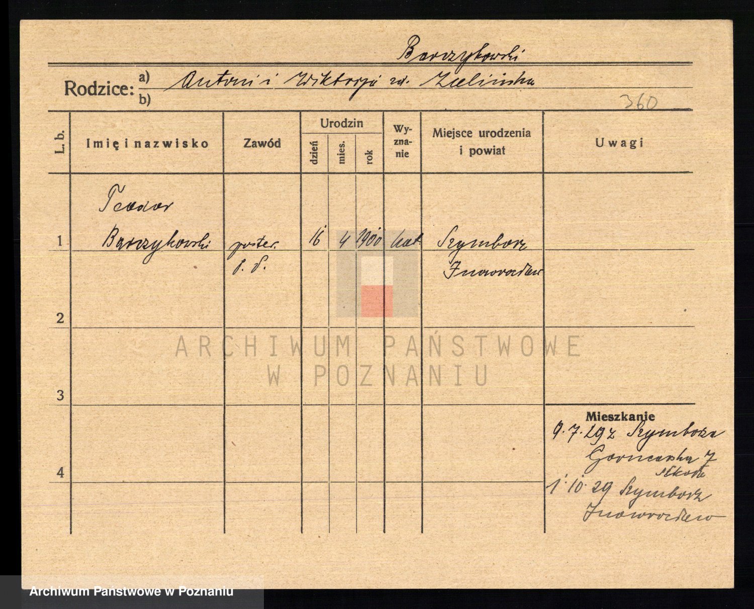 Podgląd karty osobowej dostępny jest po kliknięciu na nazwisko lub ikonkę karty. Można dokonywać powiększenia (ikony na górze) lub przechodzić między kolejnymi skanami (strzałki po bokach).