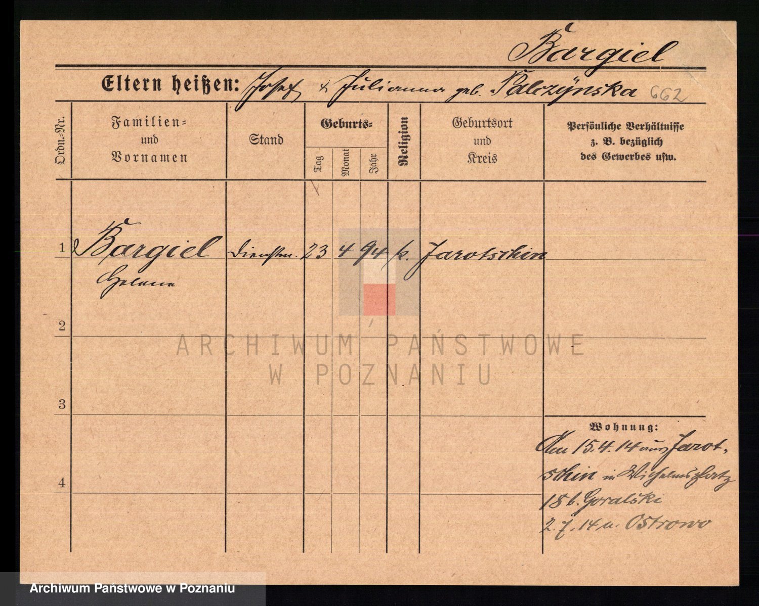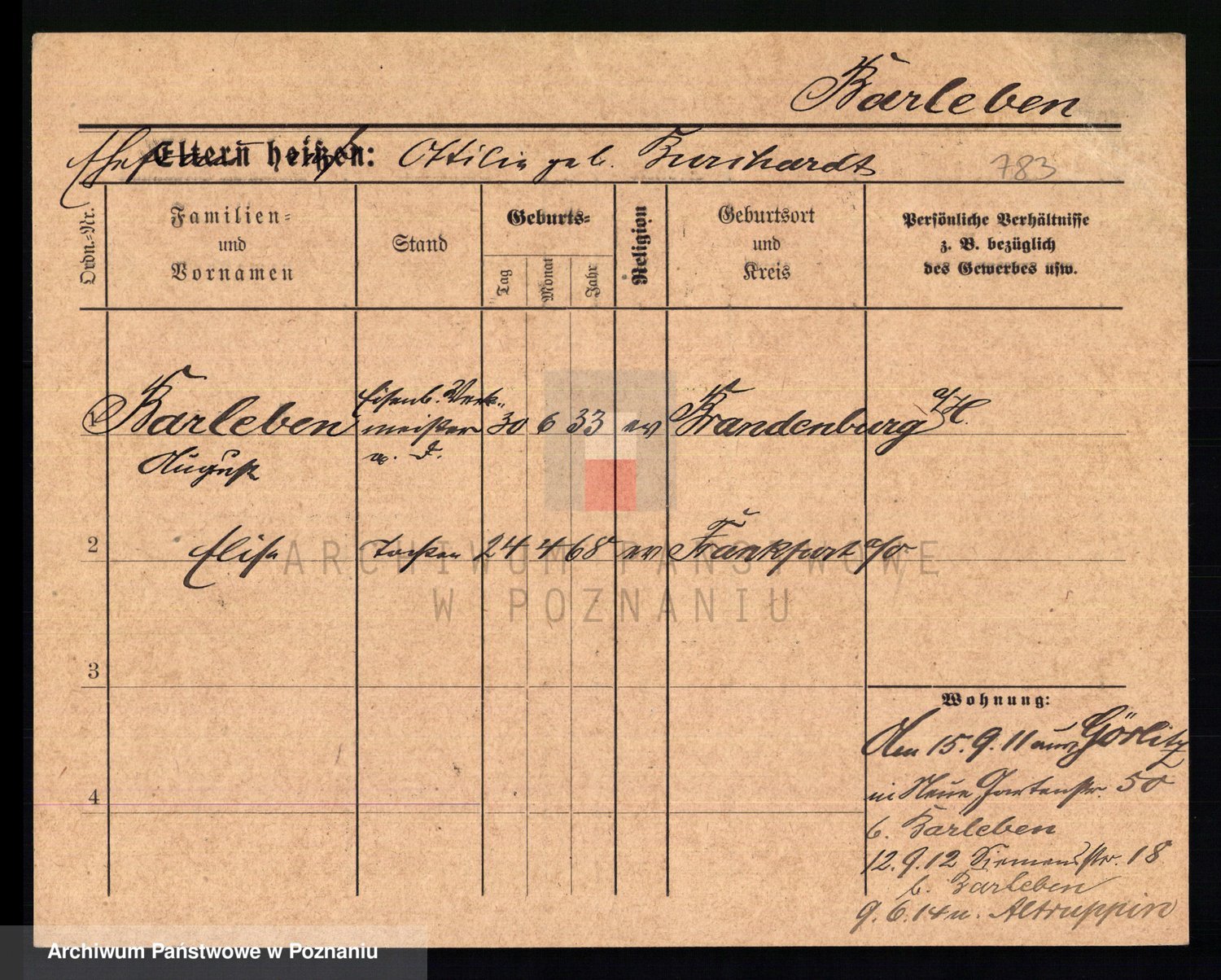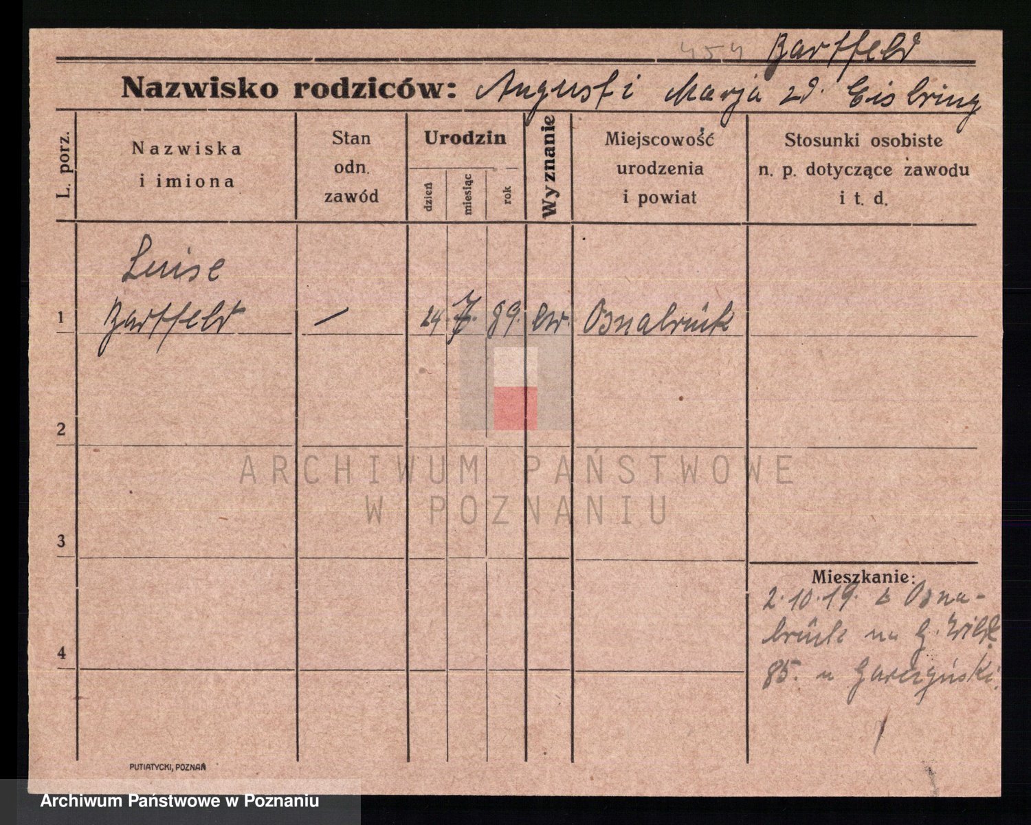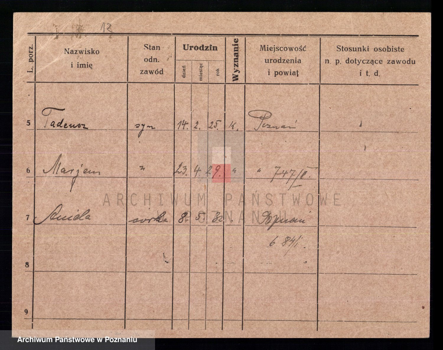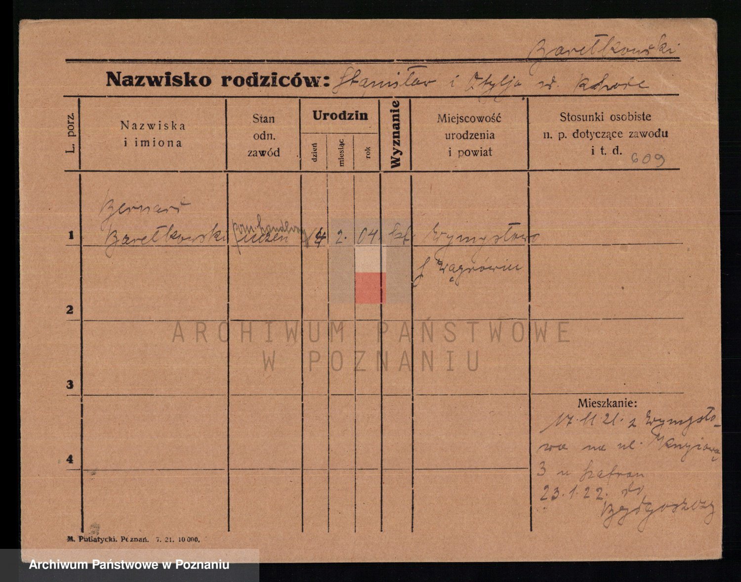 Podgląd karty osobowej dostępny jest po kliknięciu na nazwisko lub ikonkę karty. Można dokonywać powiększenia (ikony na górze) lub przechodzić między kolejnymi skanami (strzałki po bokach).