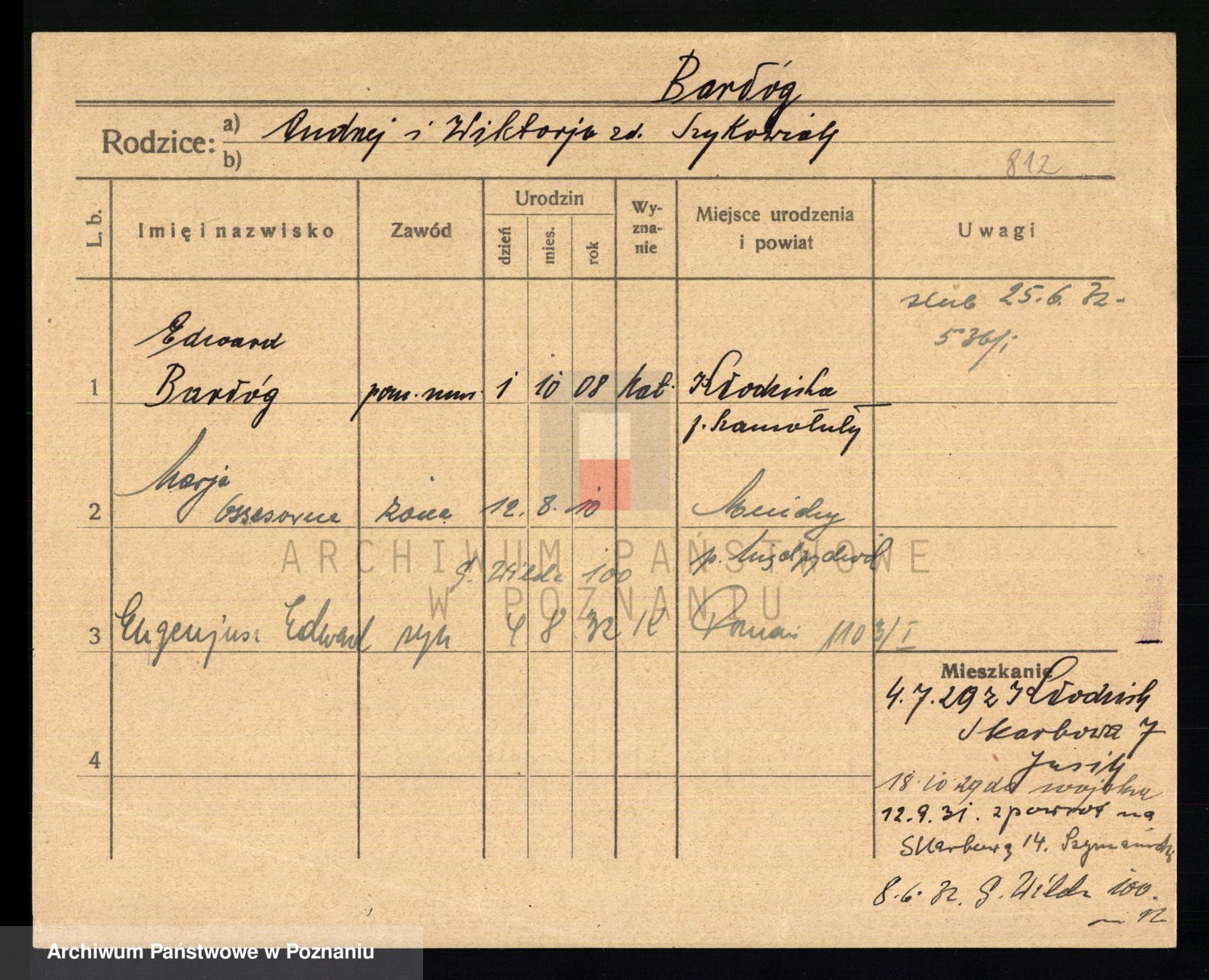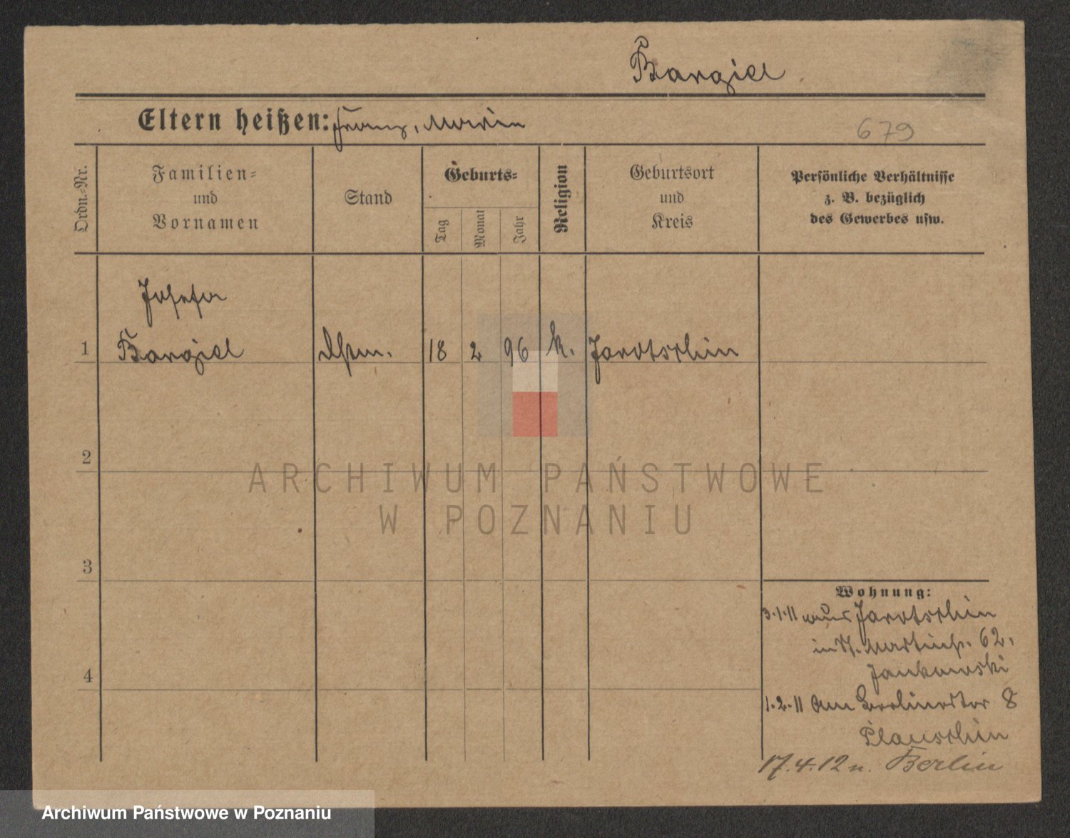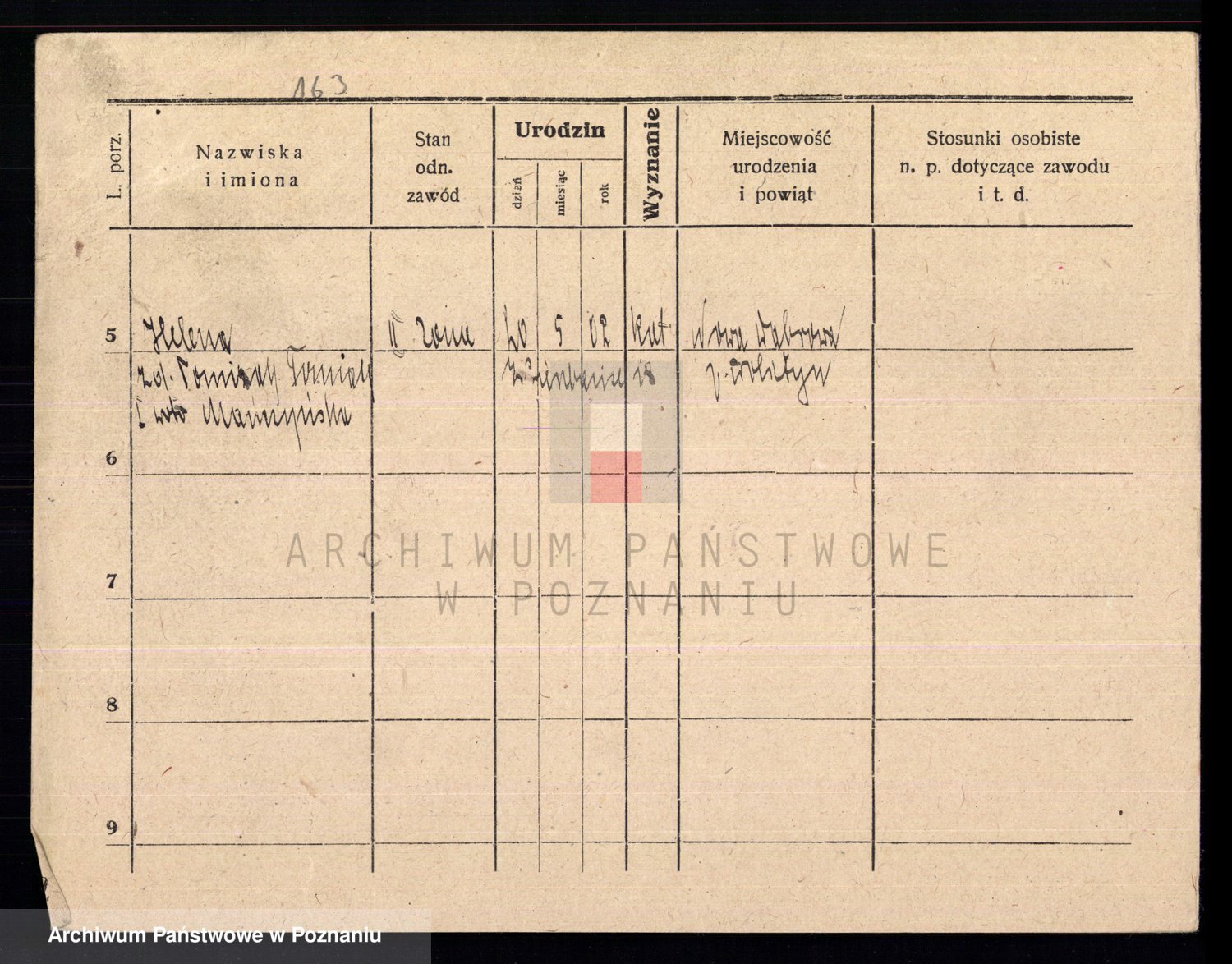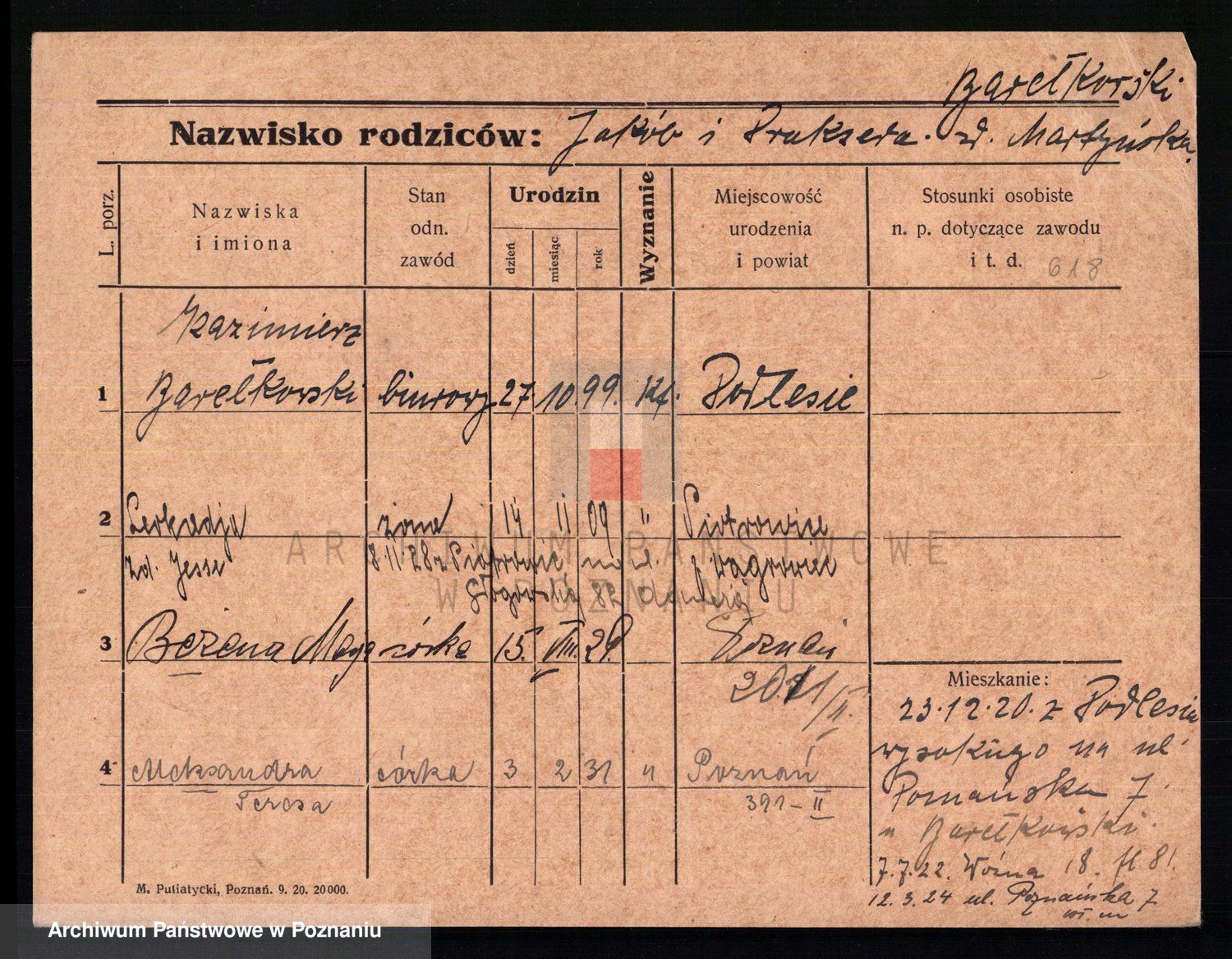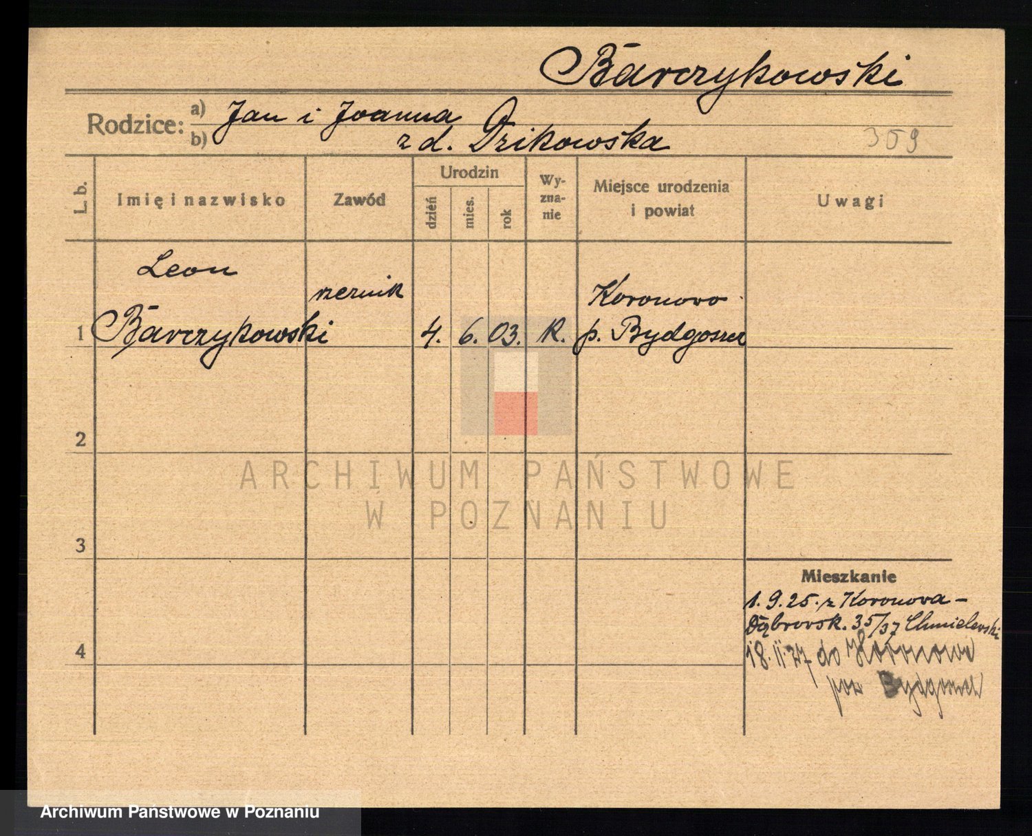 Podgląd karty osobowej dostępny jest po kliknięciu na nazwisko lub ikonkę karty. Można dokonywać powiększenia (ikony na górze) lub przechodzić między kolejnymi skanami (strzałki po bokach).