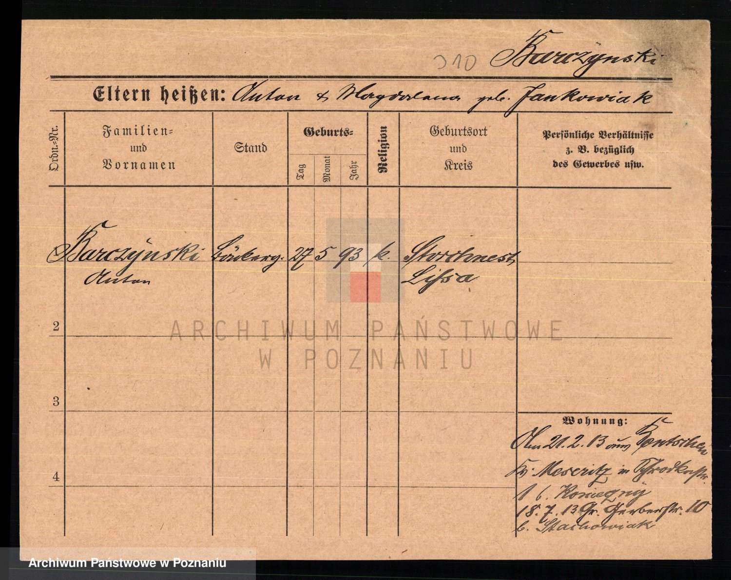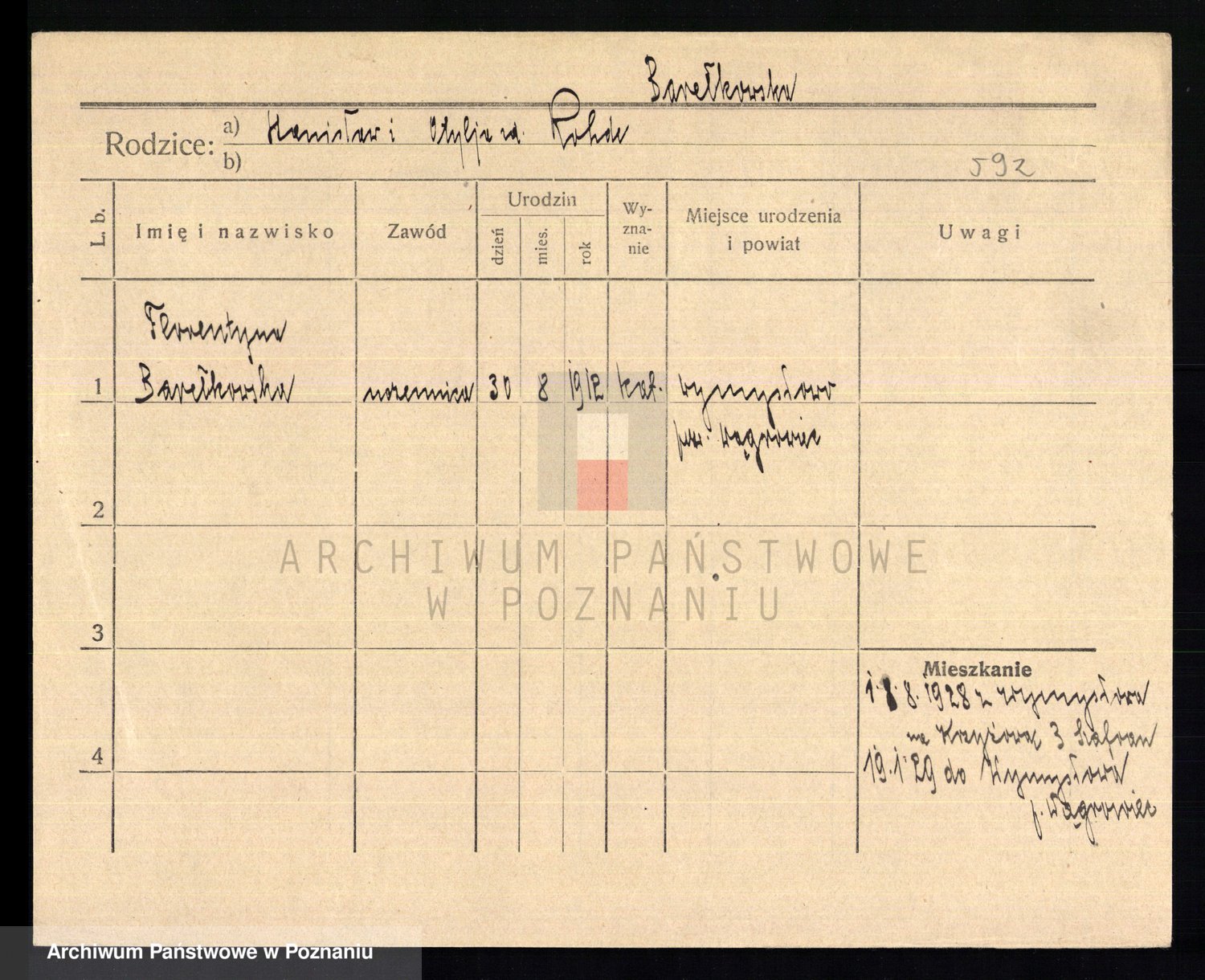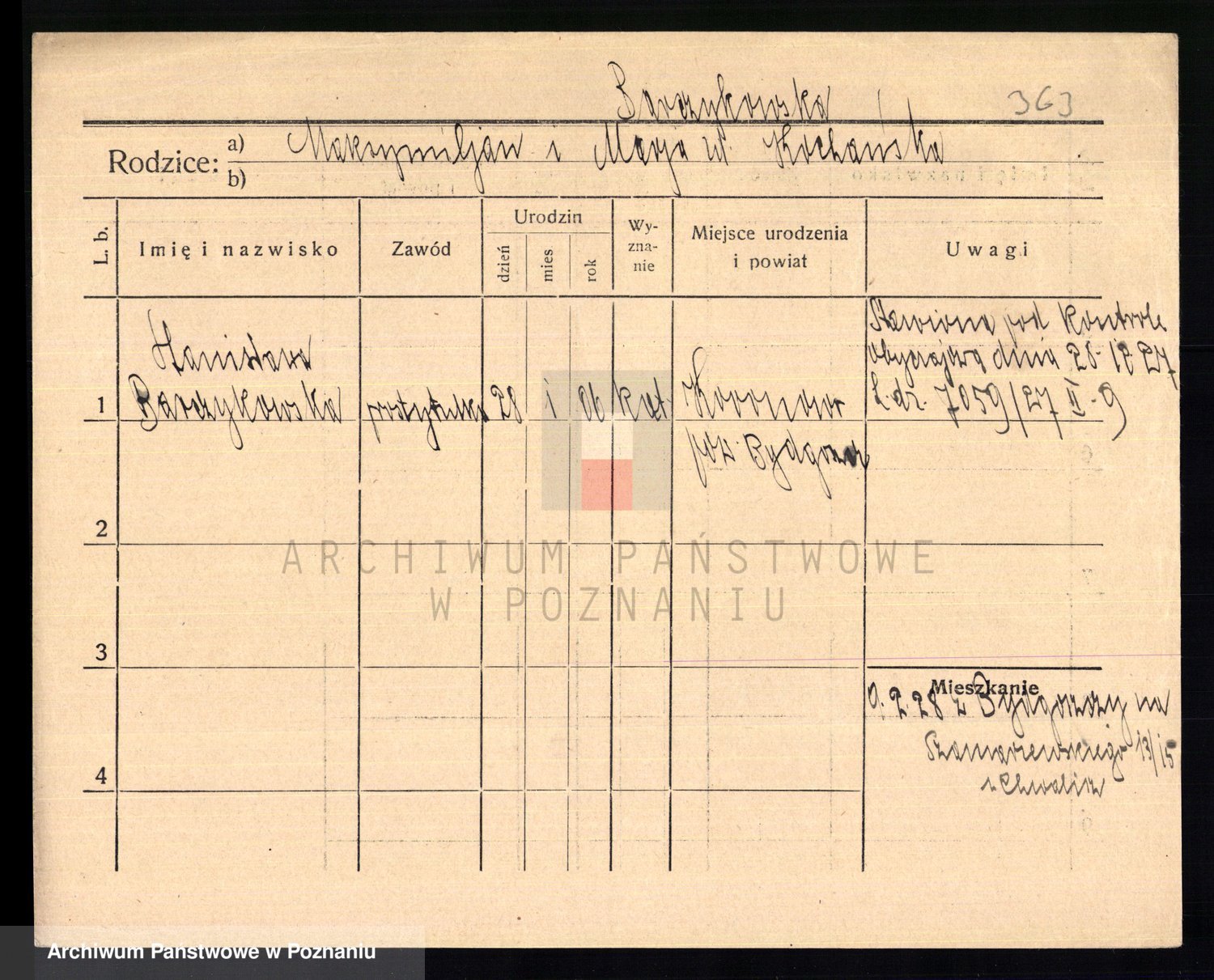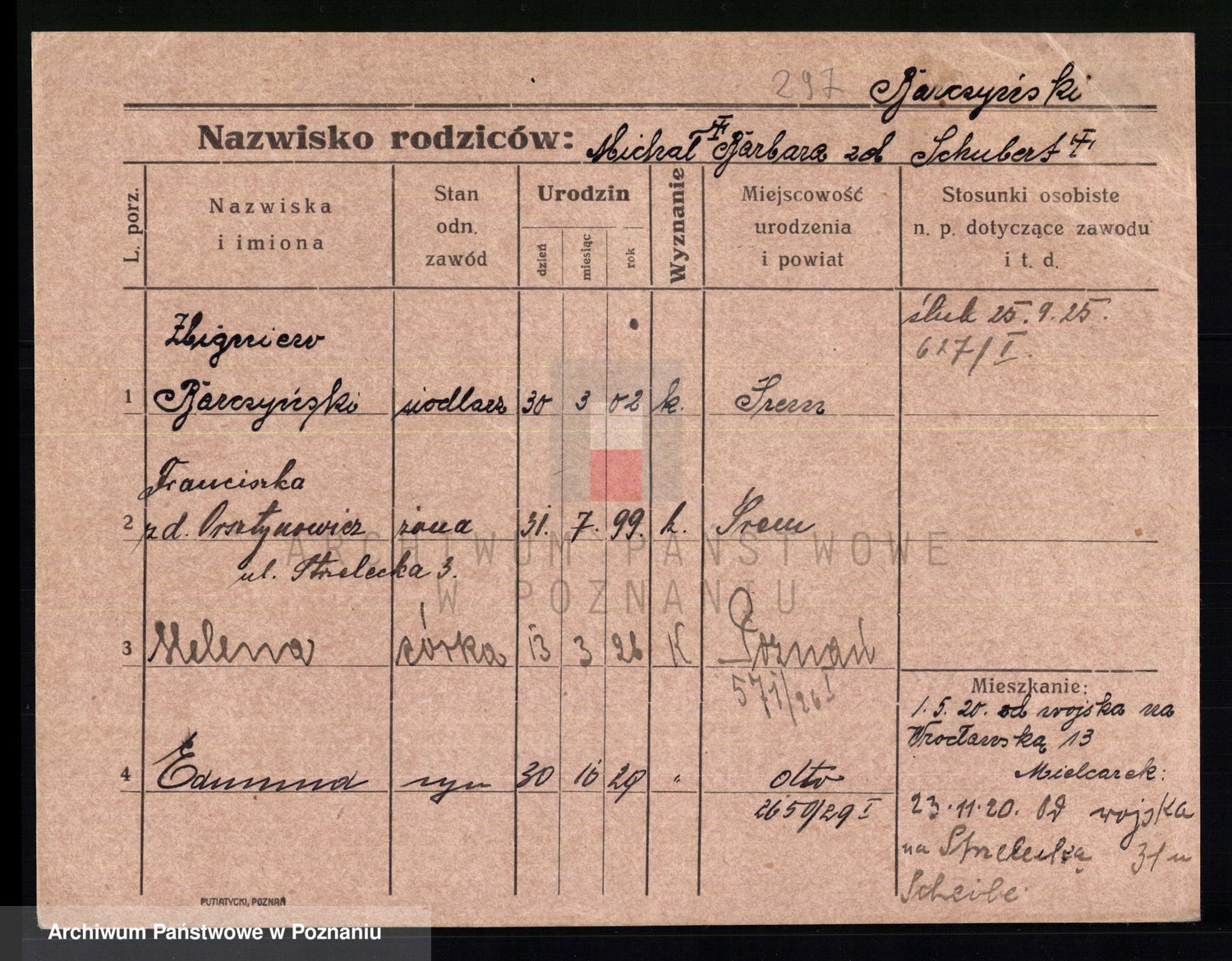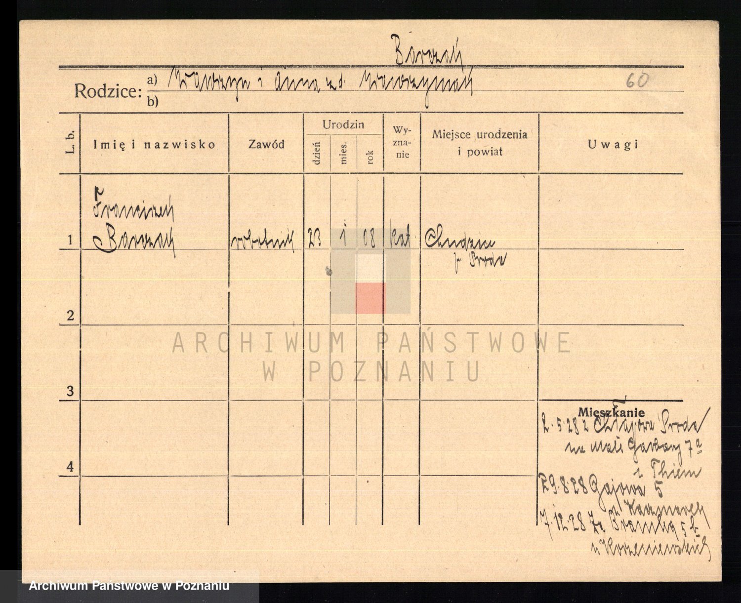Podgląd karty osobowej dostępny jest po kliknięciu na nazwisko lub ikonkę karty. Można dokonywać powiększenia (ikony na górze) lub przechodzić między kolejnymi skanami (strzałki po bokach).
