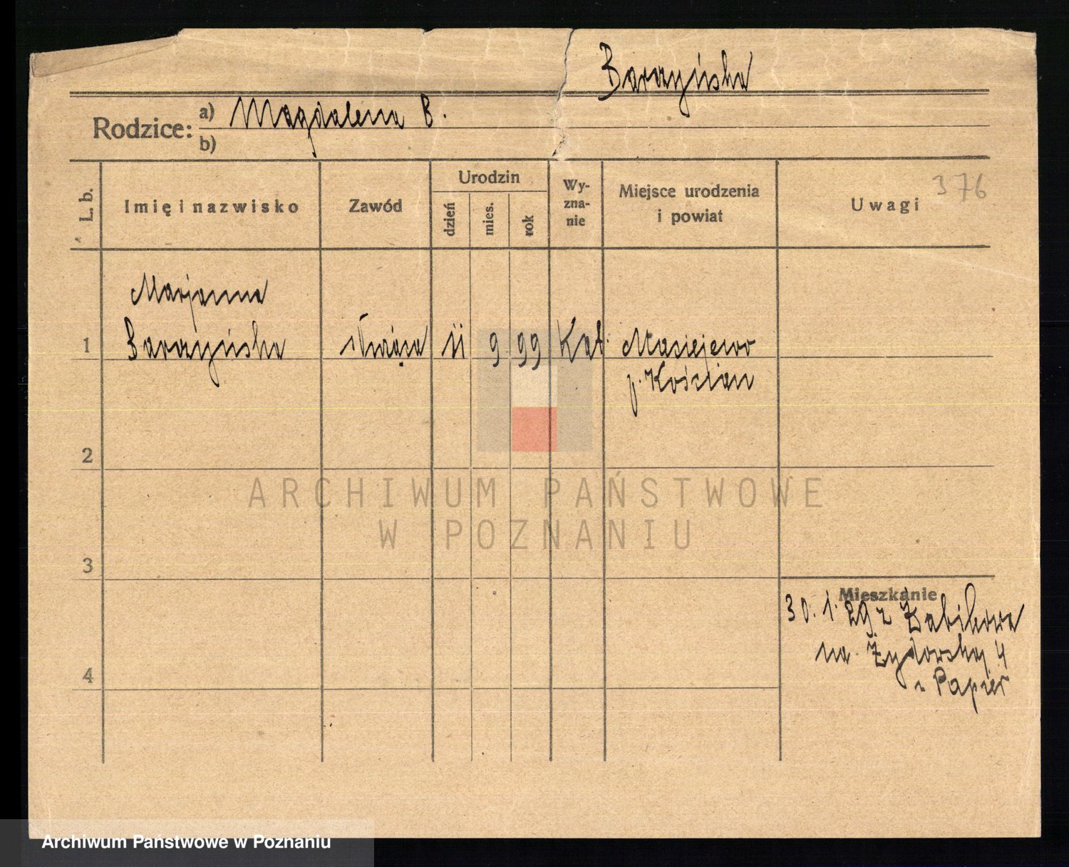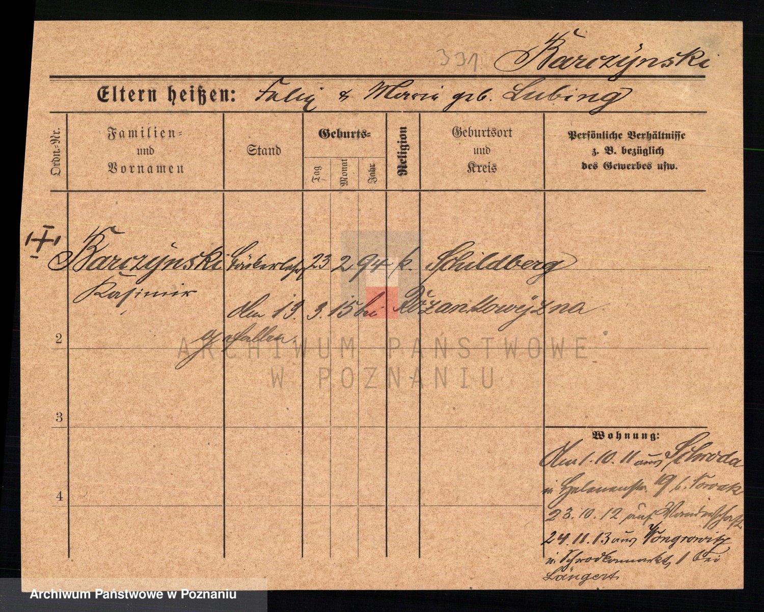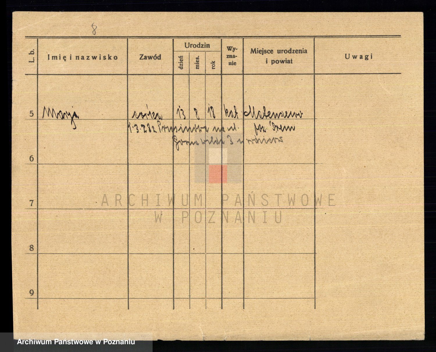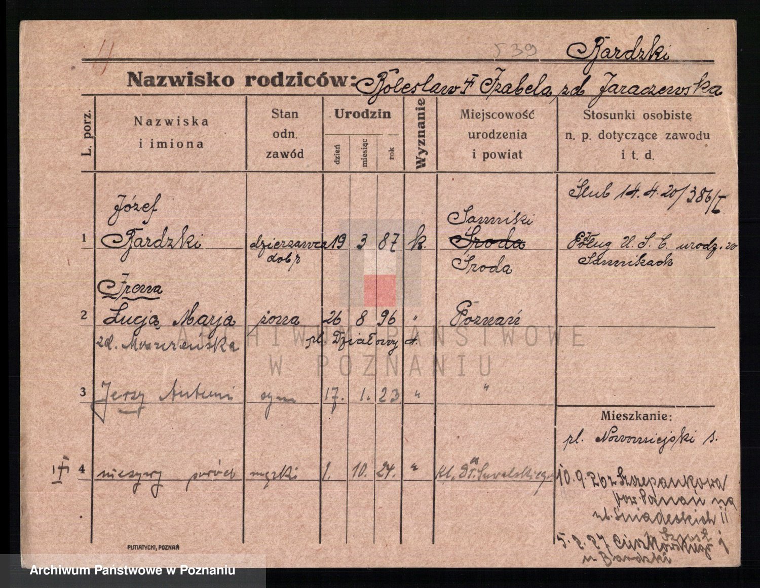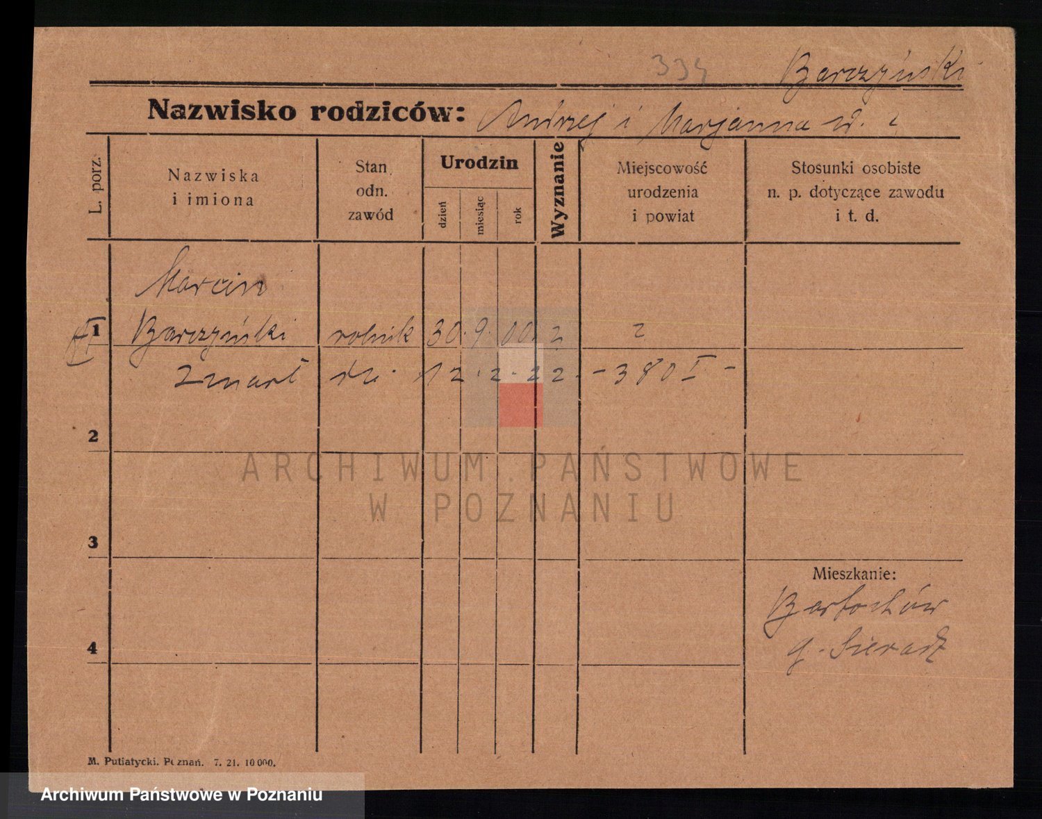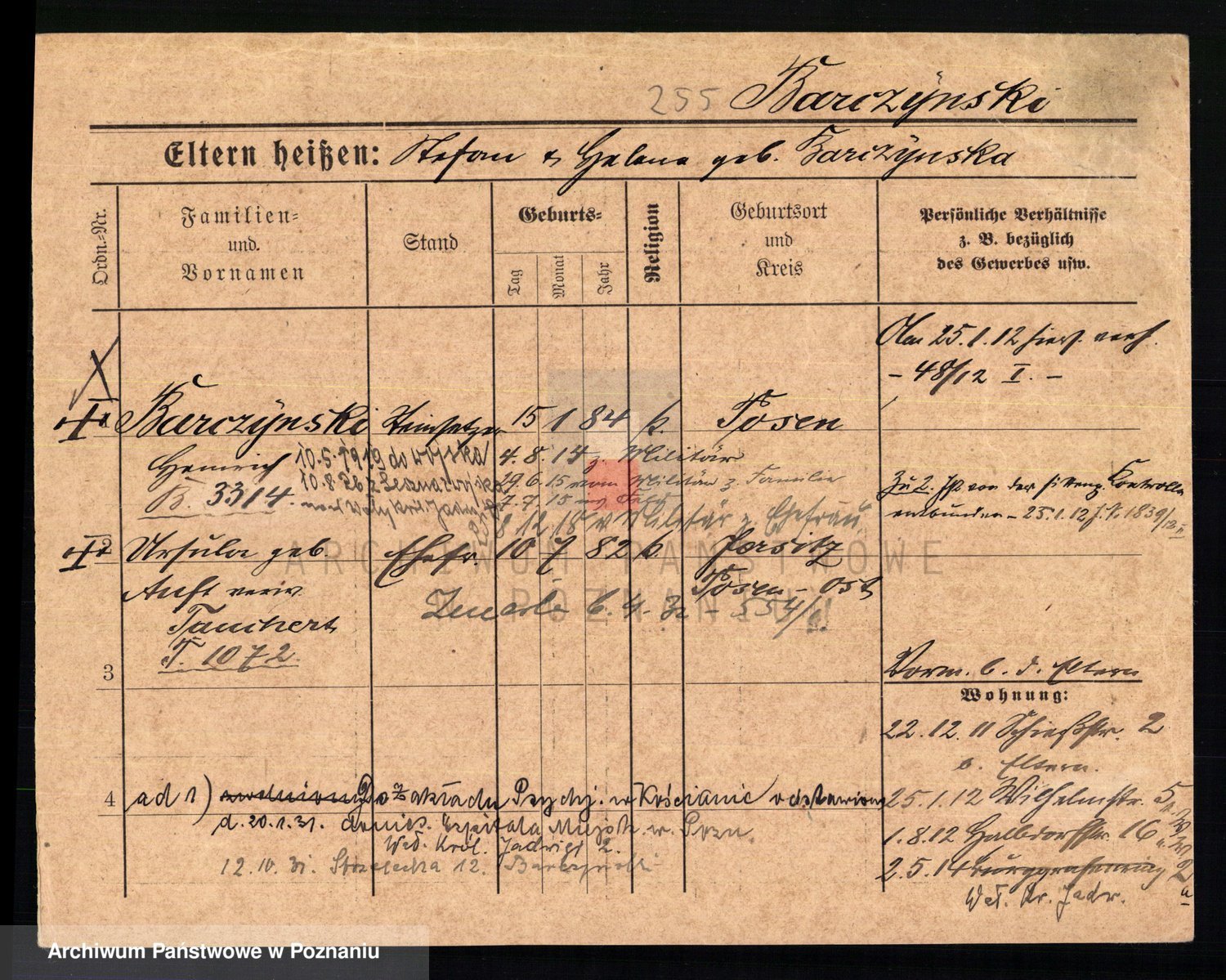 Podgląd karty osobowej dostępny jest po kliknięciu na nazwisko lub ikonkę karty. Można dokonywać powiększenia (ikony na górze) lub przechodzić między kolejnymi skanami (strzałki po bokach).