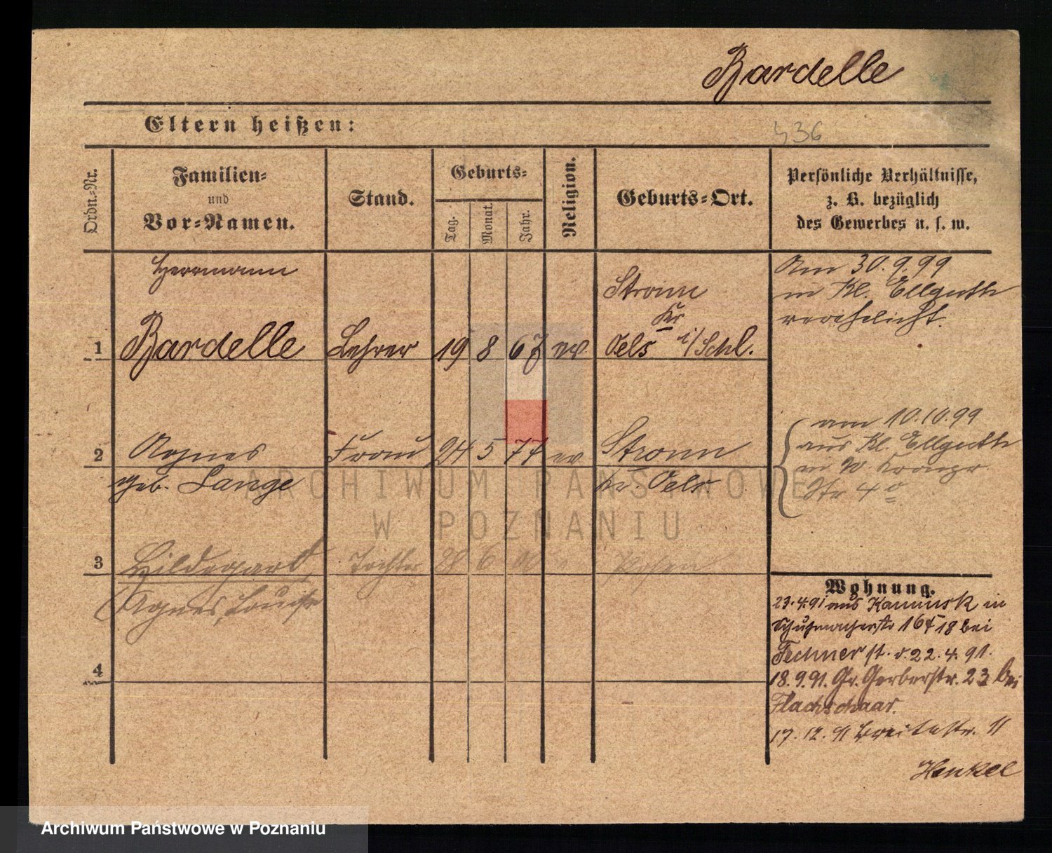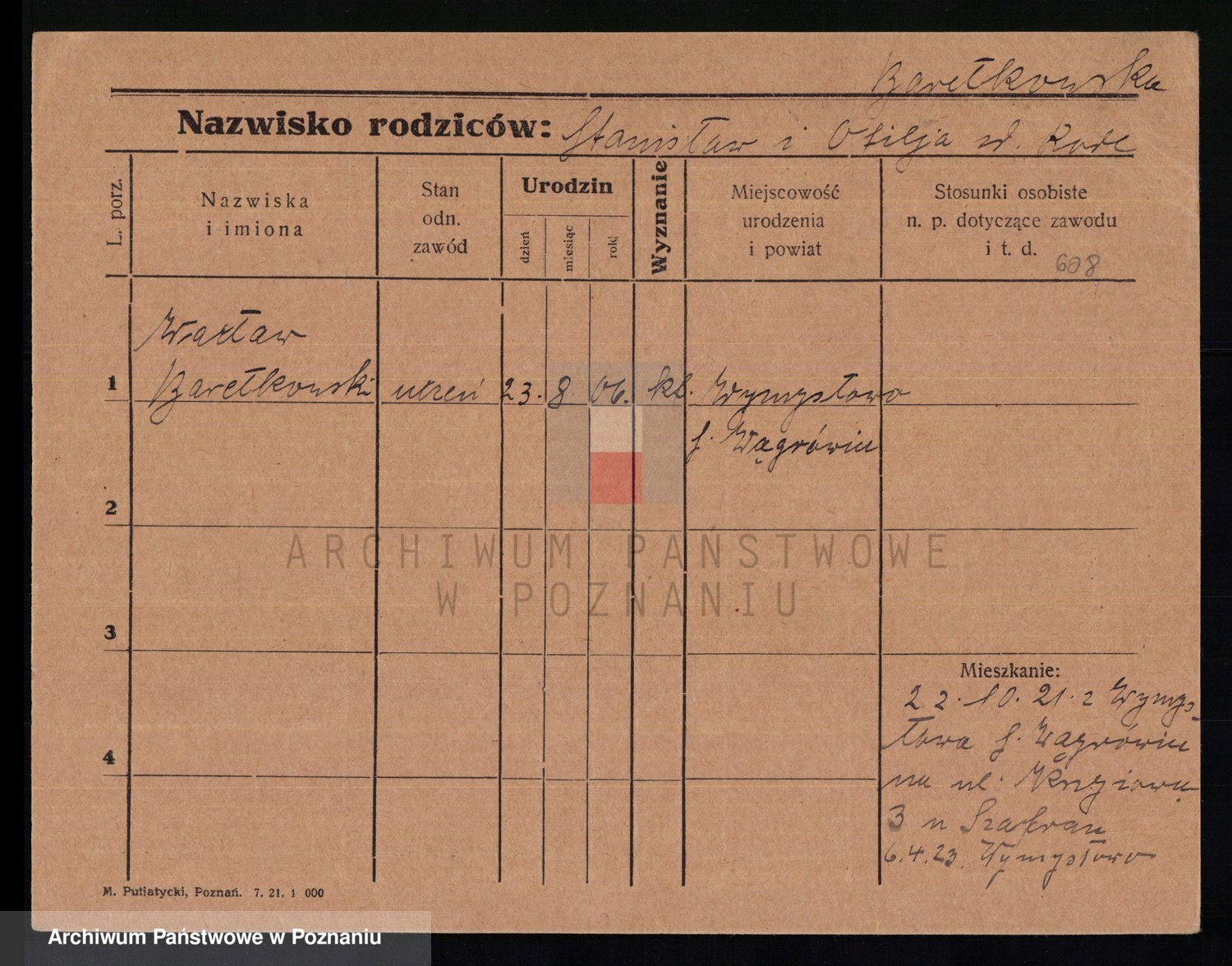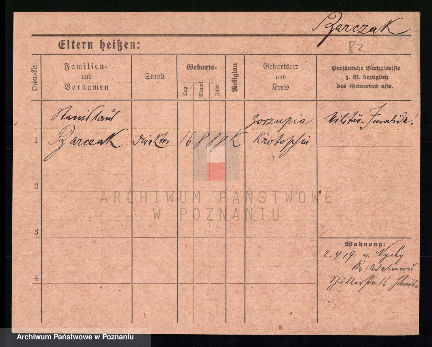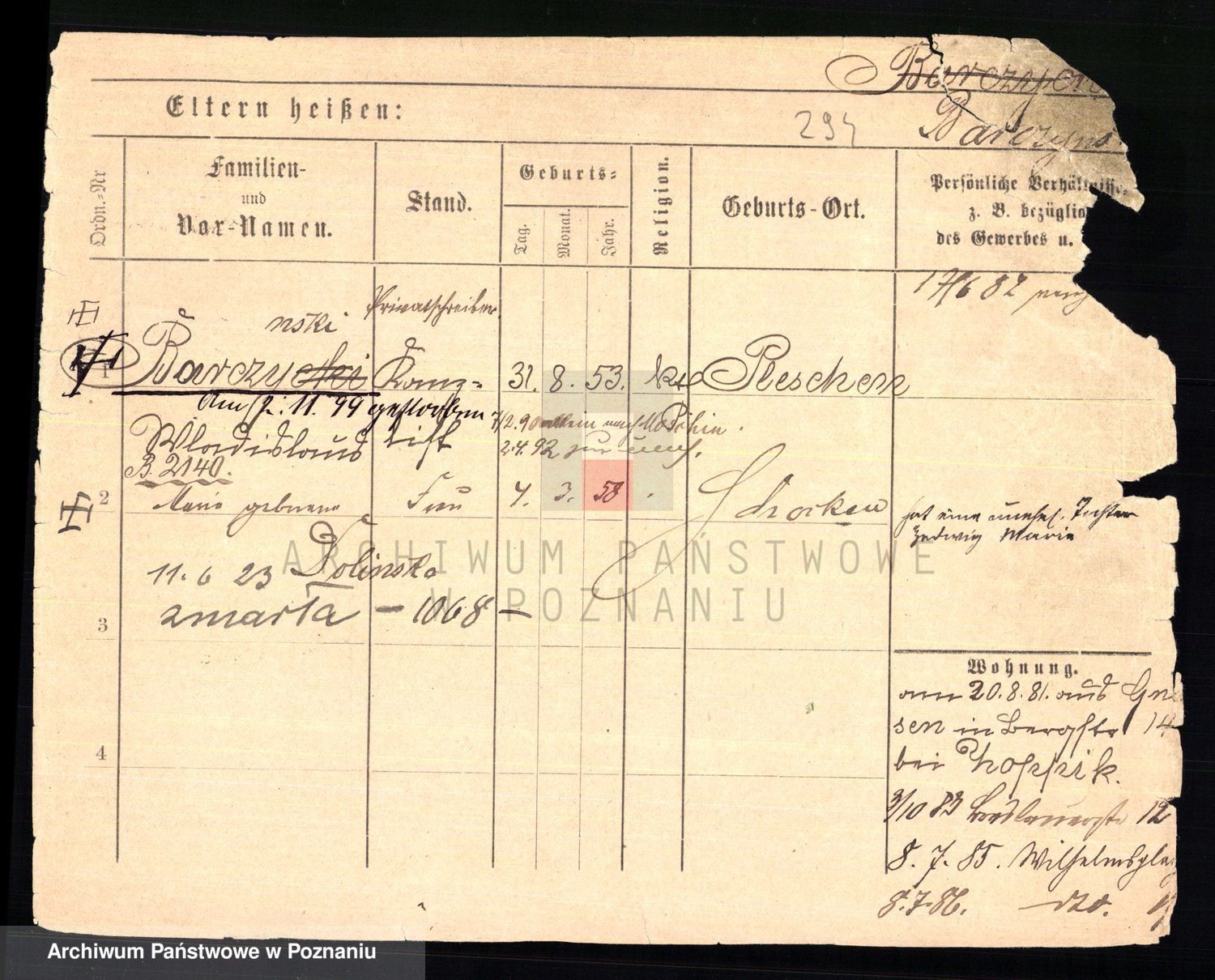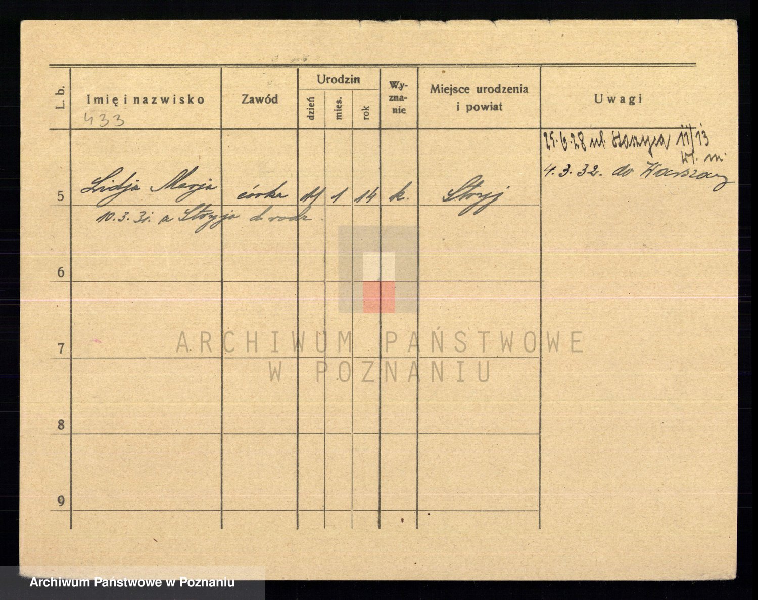 Podgląd karty osobowej dostępny jest po kliknięciu na nazwisko lub ikonkę karty. Można dokonywać powiększenia (ikony na górze) lub przechodzić między kolejnymi skanami (strzałki po bokach).