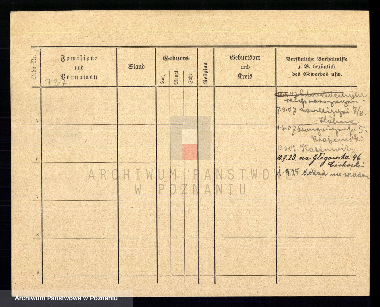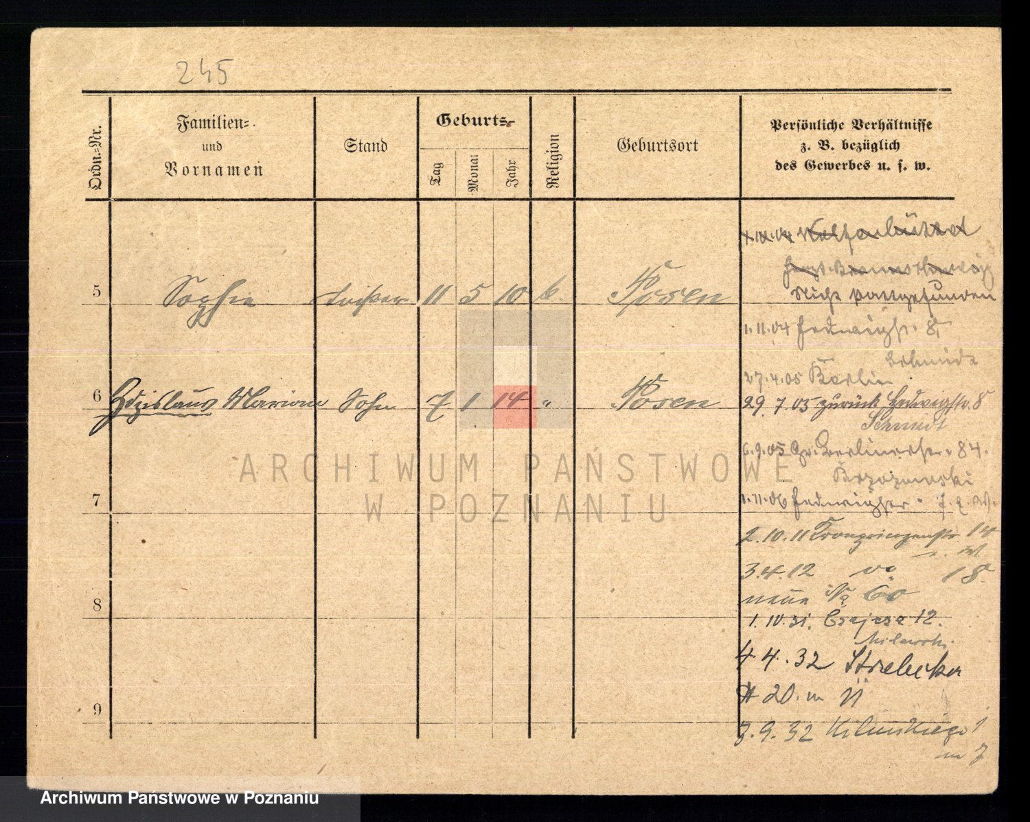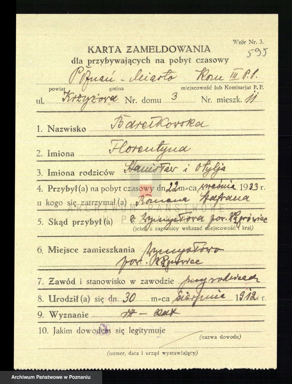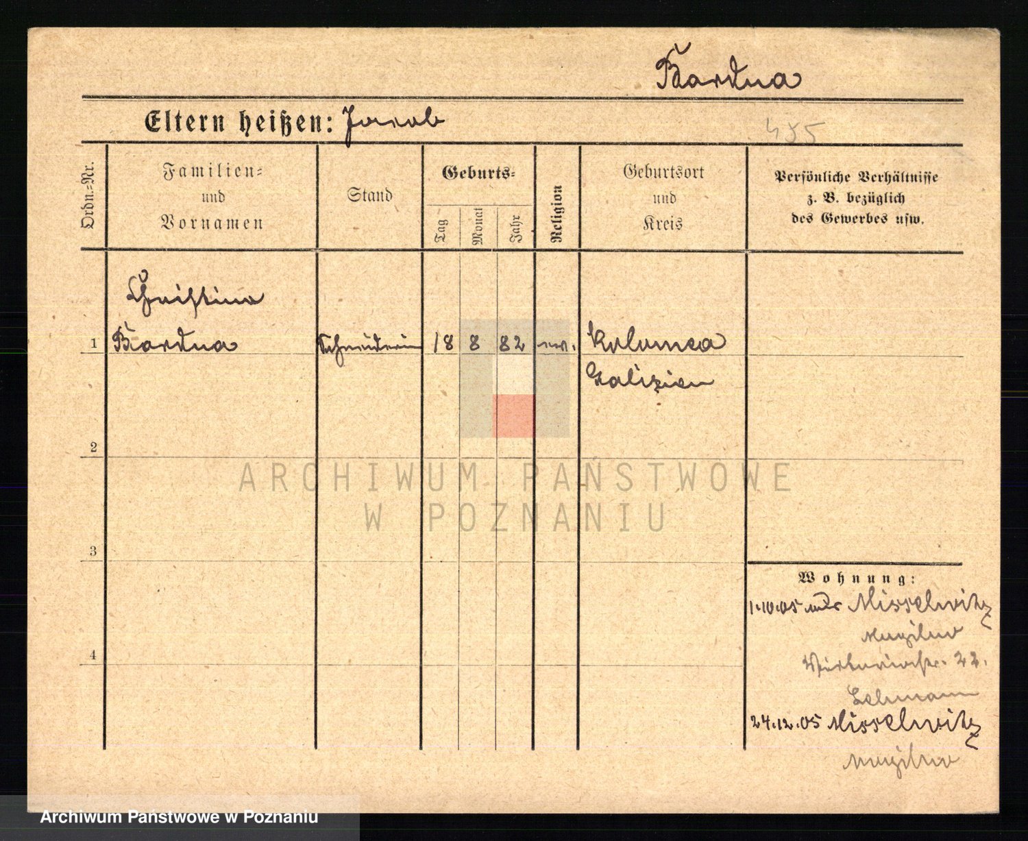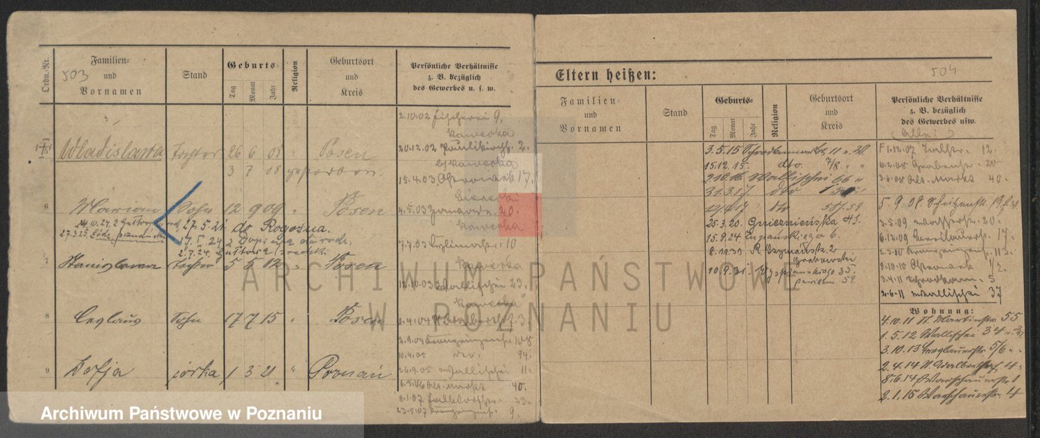 Podgląd karty osobowej dostępny jest po kliknięciu na nazwisko lub ikonkę karty. Można dokonywać powiększenia (ikony na górze) lub przechodzić między kolejnymi skanami (strzałki po bokach).