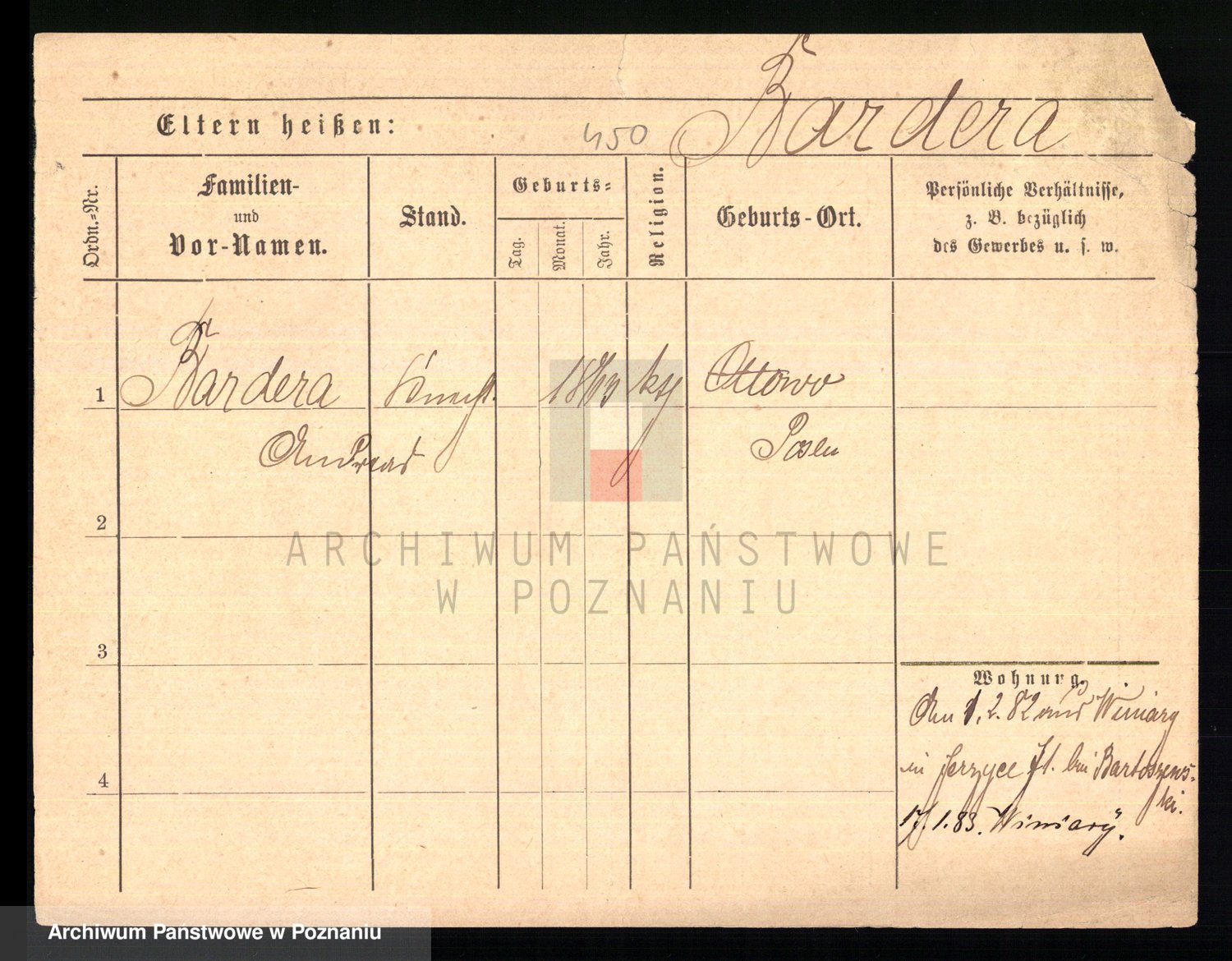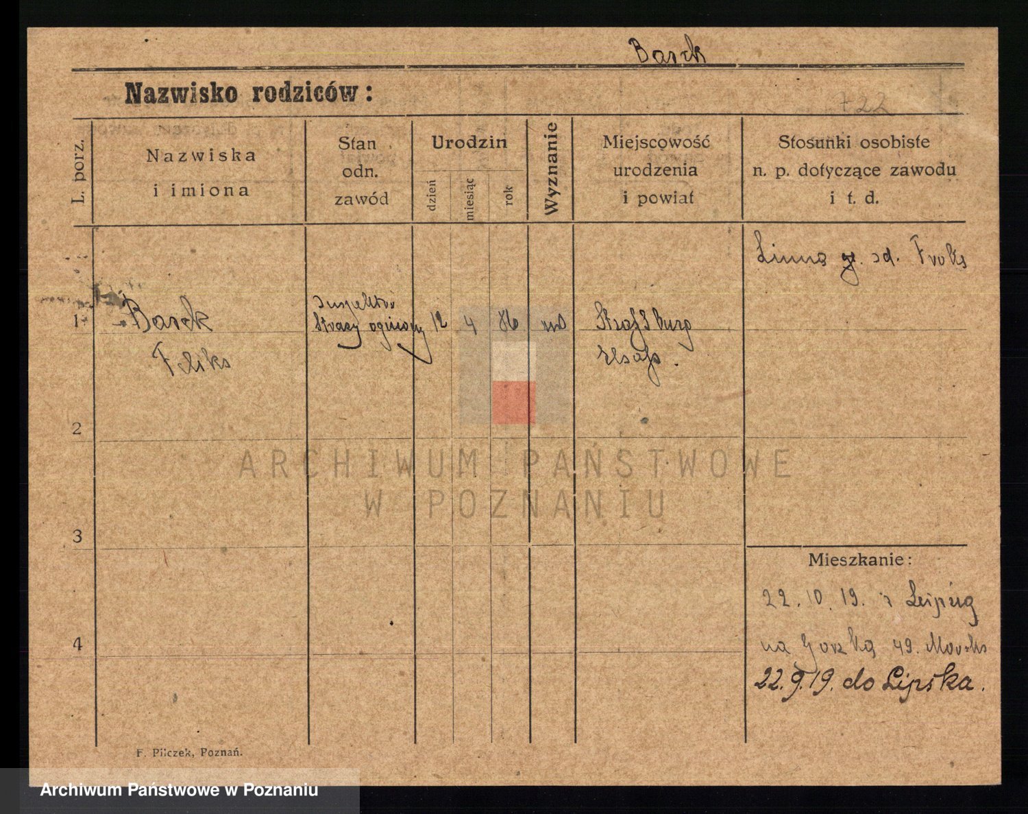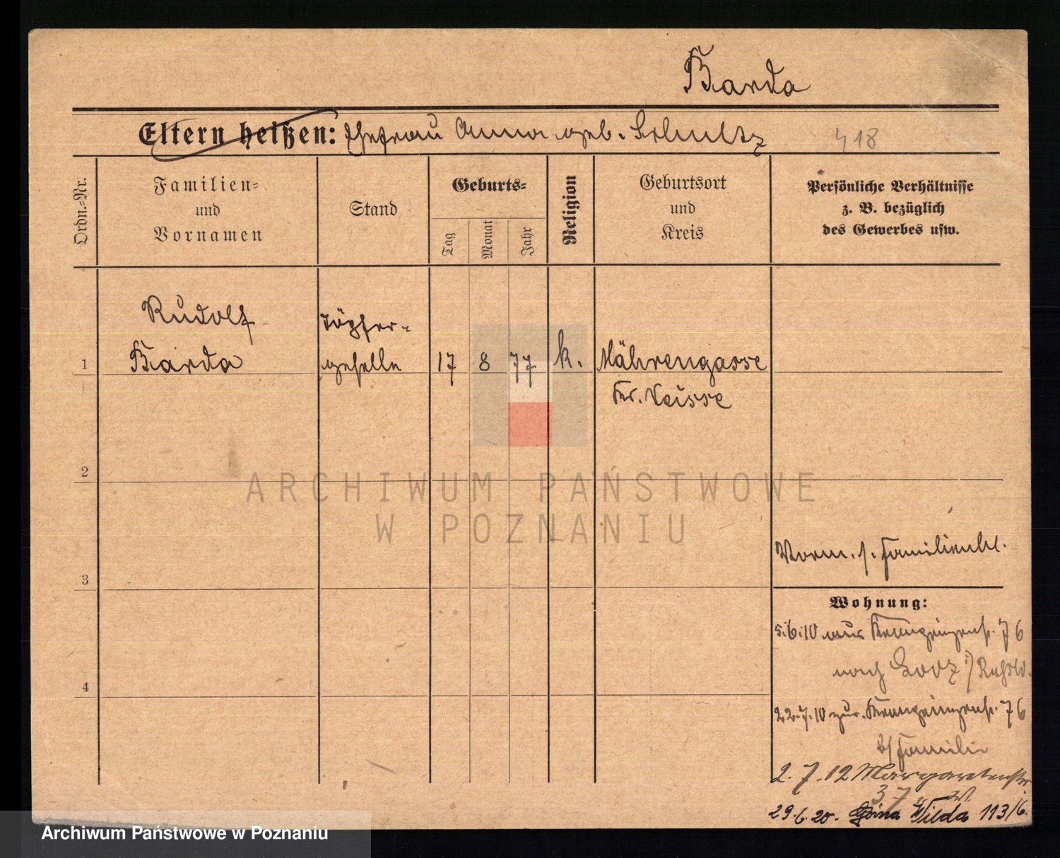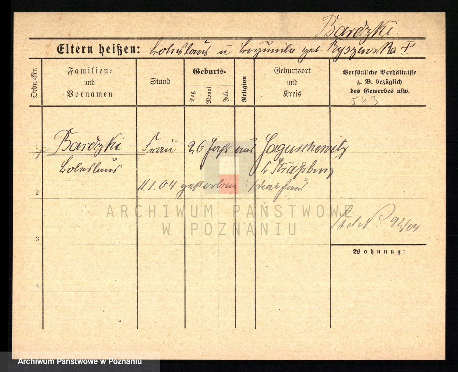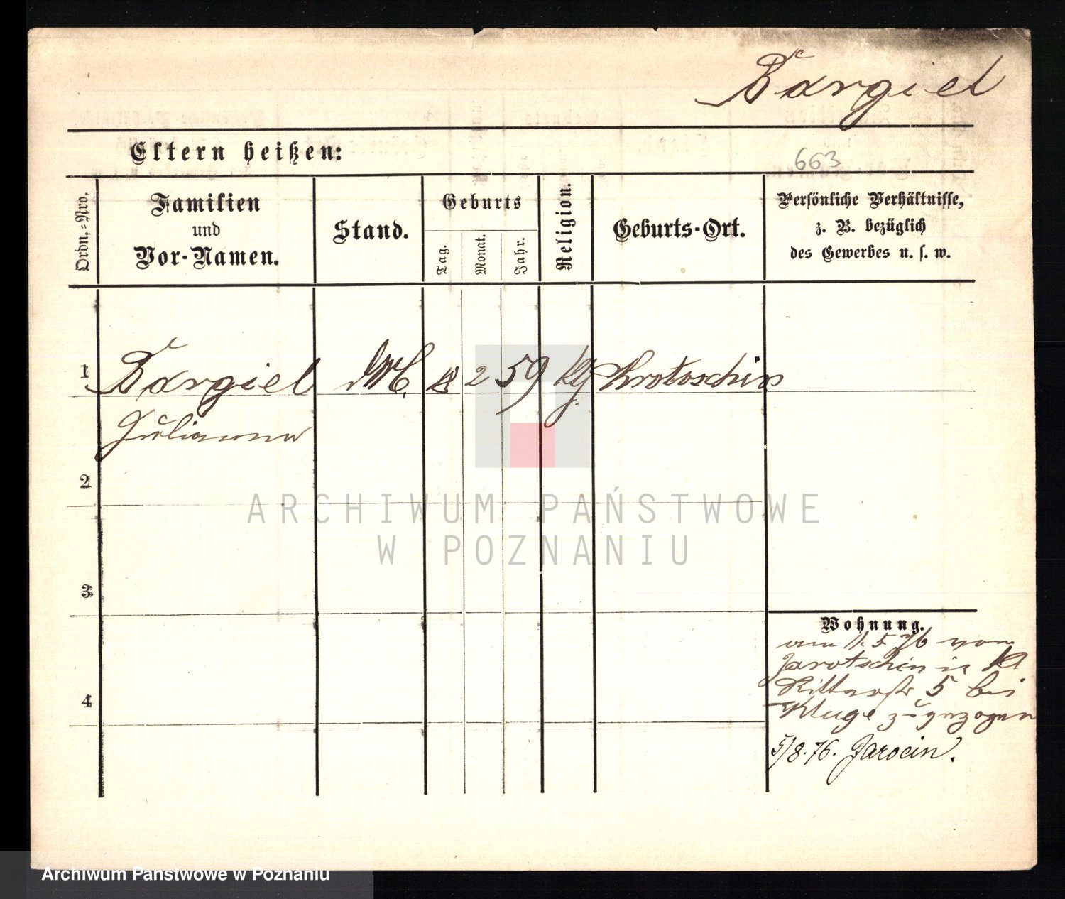 Podgląd karty osobowej dostępny jest po kliknięciu na nazwisko lub ikonkę karty. Można dokonywać powiększenia (ikony na górze) lub przechodzić między kolejnymi skanami (strzałki po bokach).