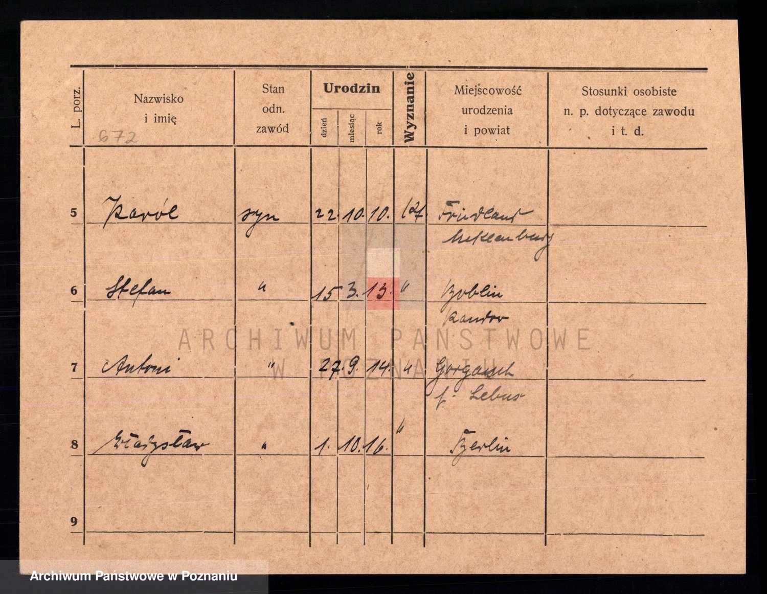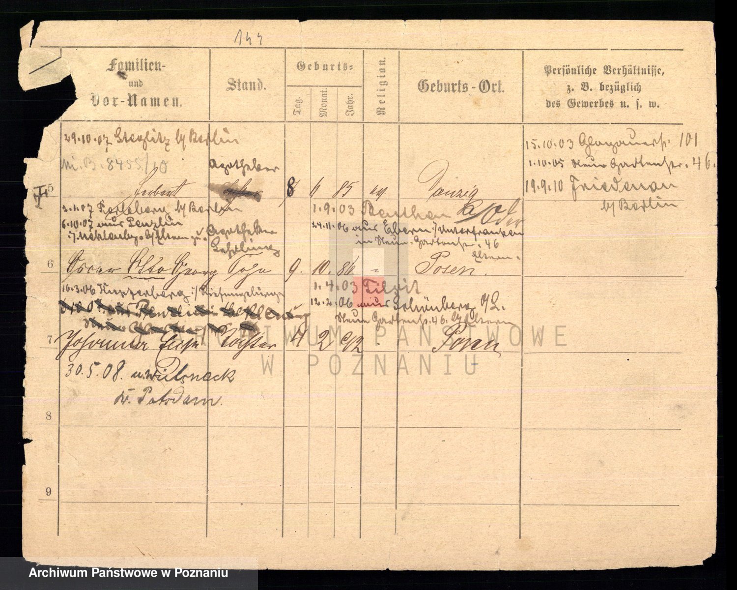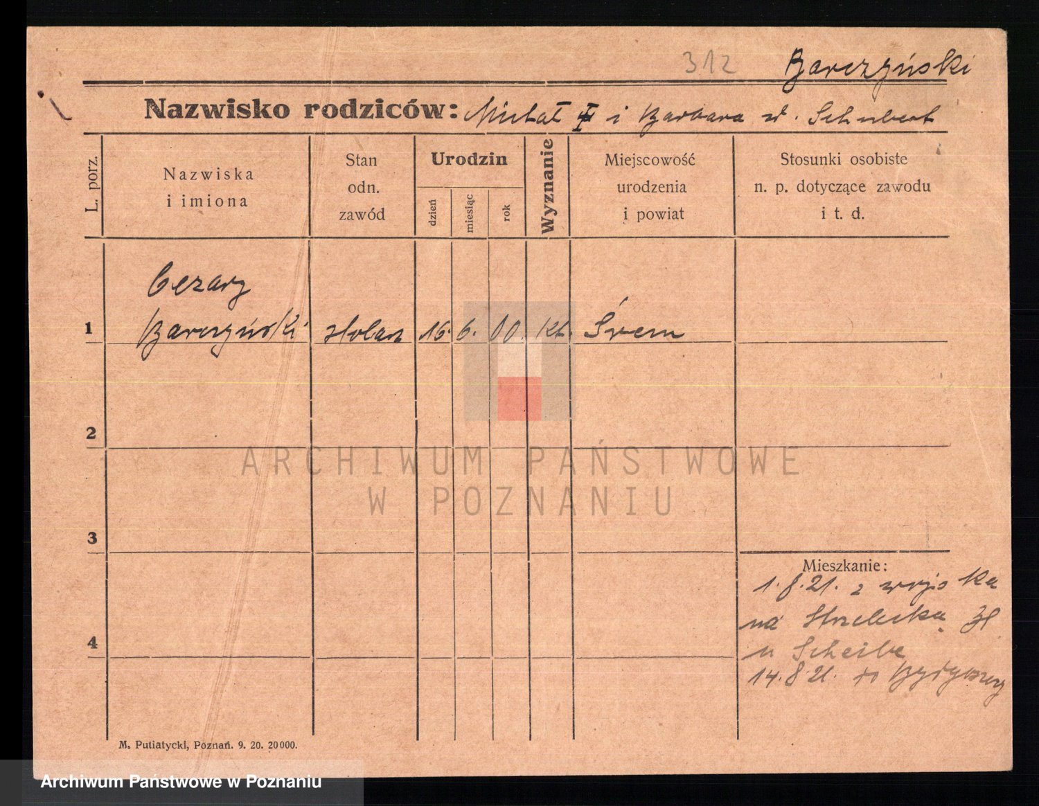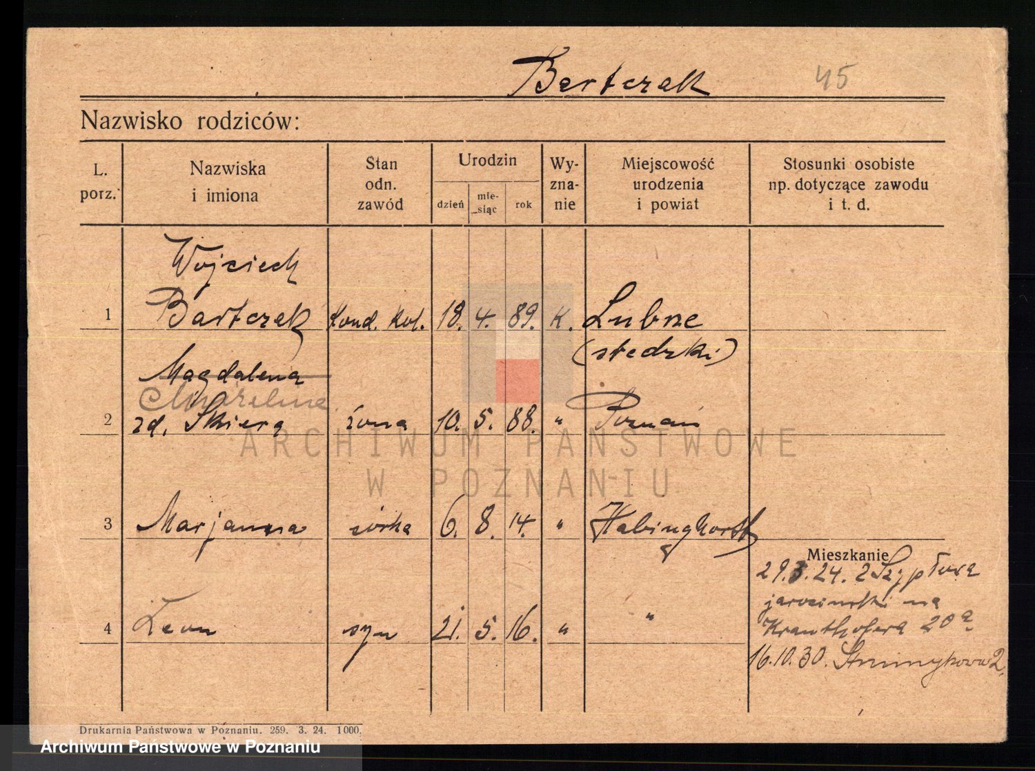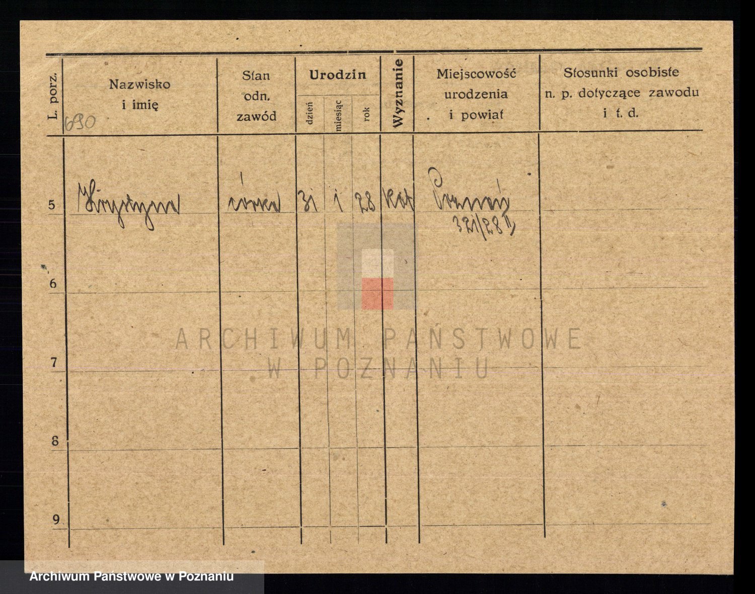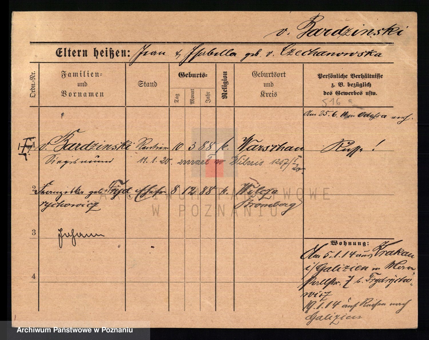 Podgląd karty osobowej dostępny jest po kliknięciu na nazwisko lub ikonkę karty. Można dokonywać powiększenia (ikony na górze) lub przechodzić między kolejnymi skanami (strzałki po bokach).
