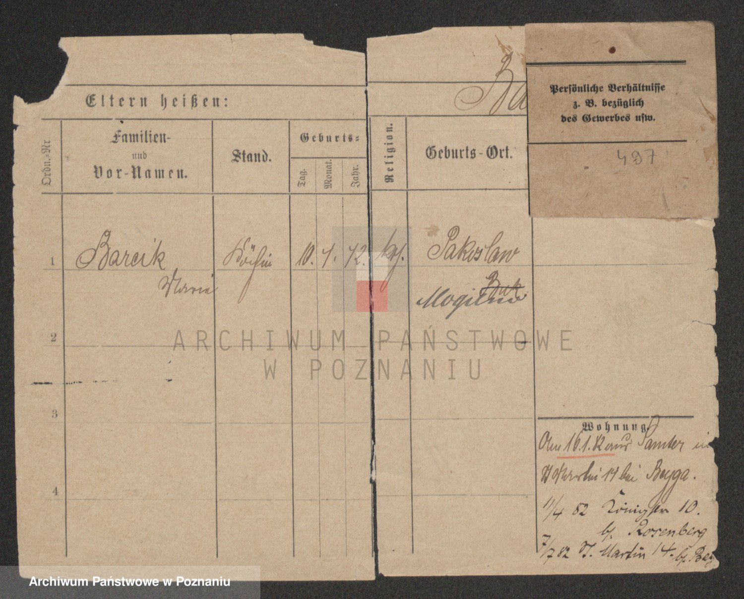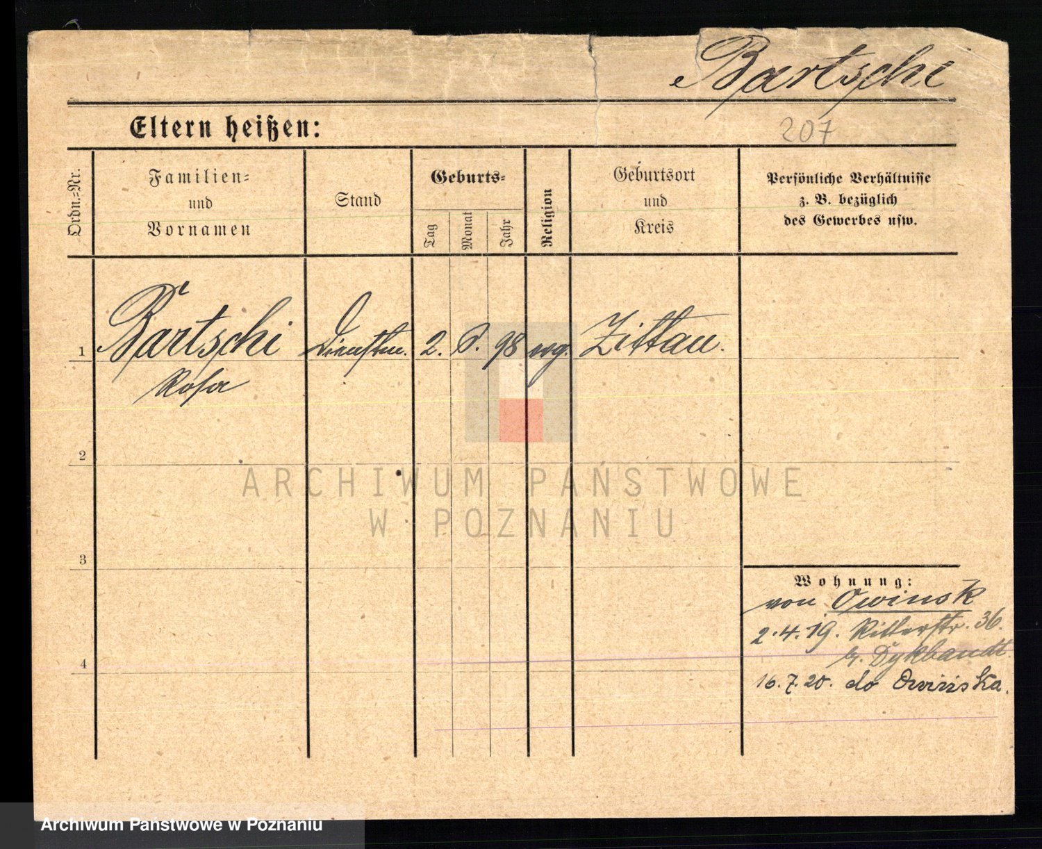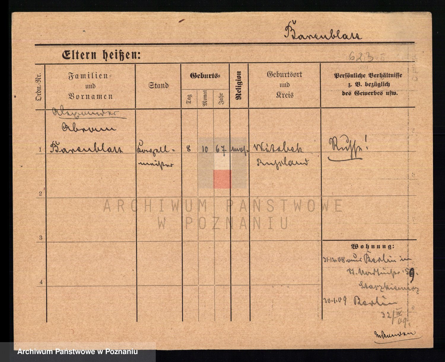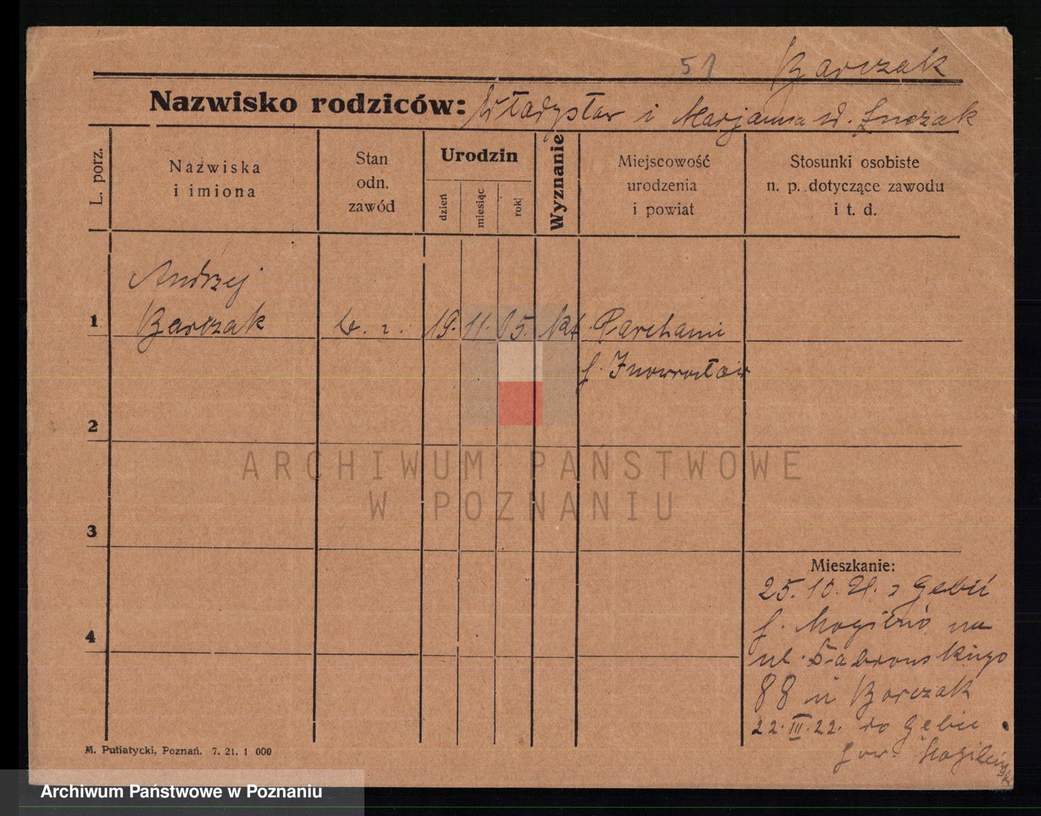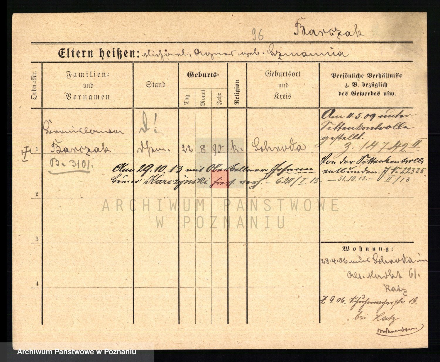Podgląd karty osobowej dostępny jest po kliknięciu na nazwisko lub ikonkę karty. Można dokonywać powiększenia (ikony na górze) lub przechodzić między kolejnymi skanami (strzałki po bokach).
